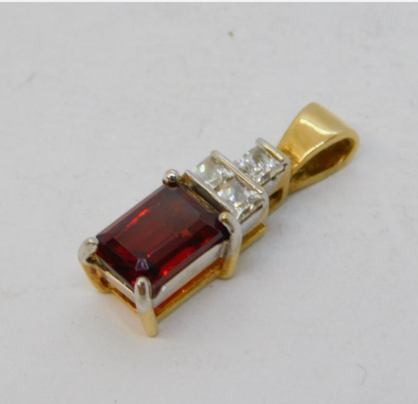 Details: A fantastic and wonderfully designed vintage 9ct yellow gold, garnet & paste set drop pendant hallmarked London 1990 to the reverse. This is a wonderful item that would make a perfect gift or addition to any collection.
