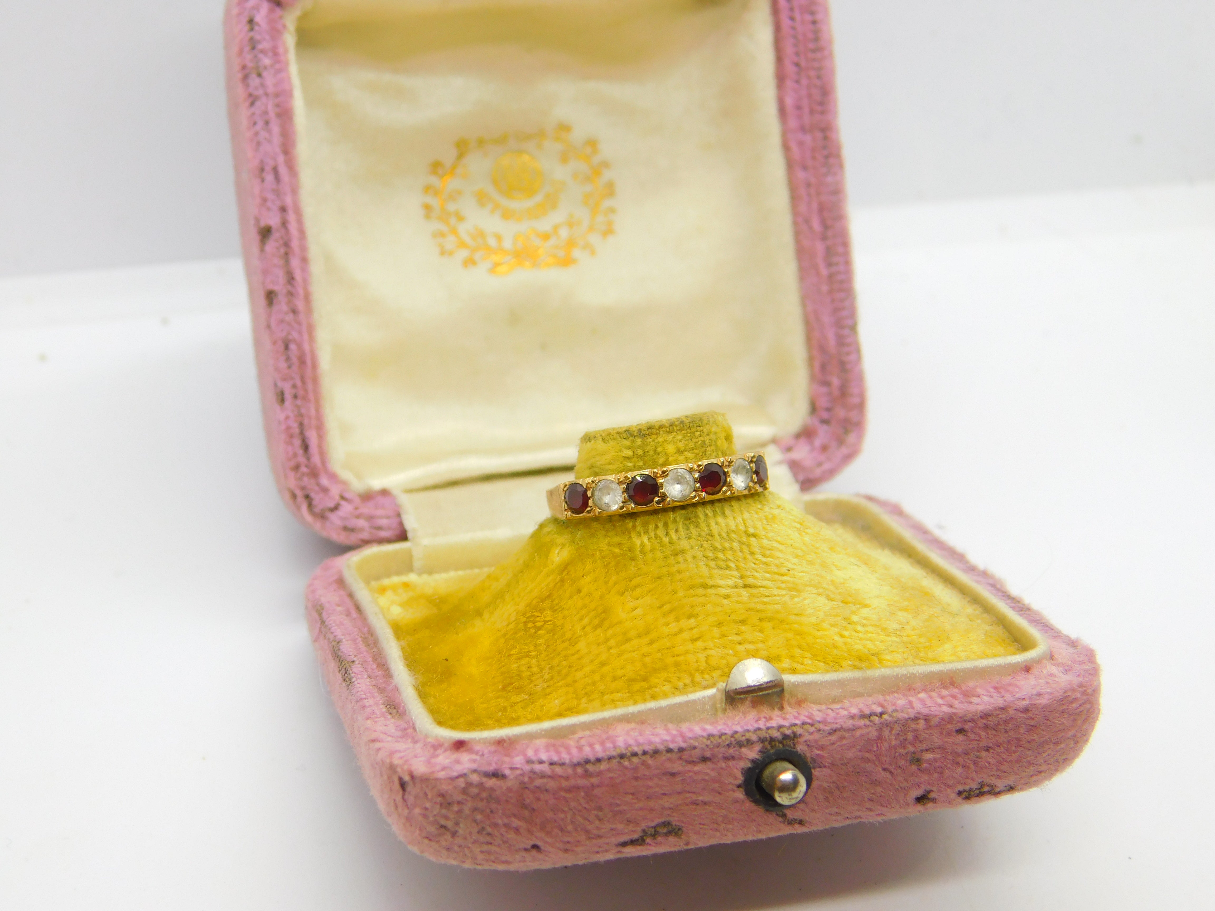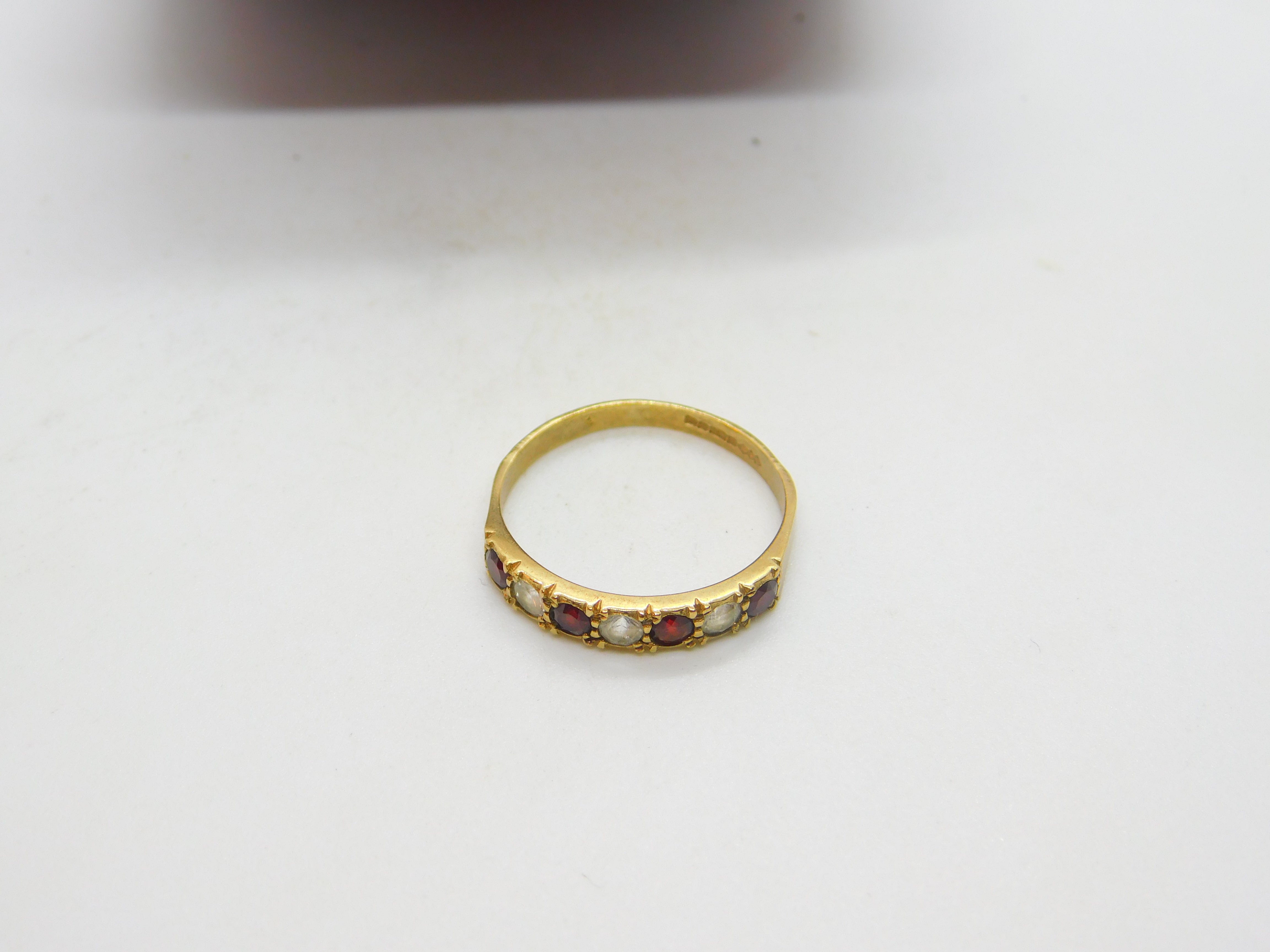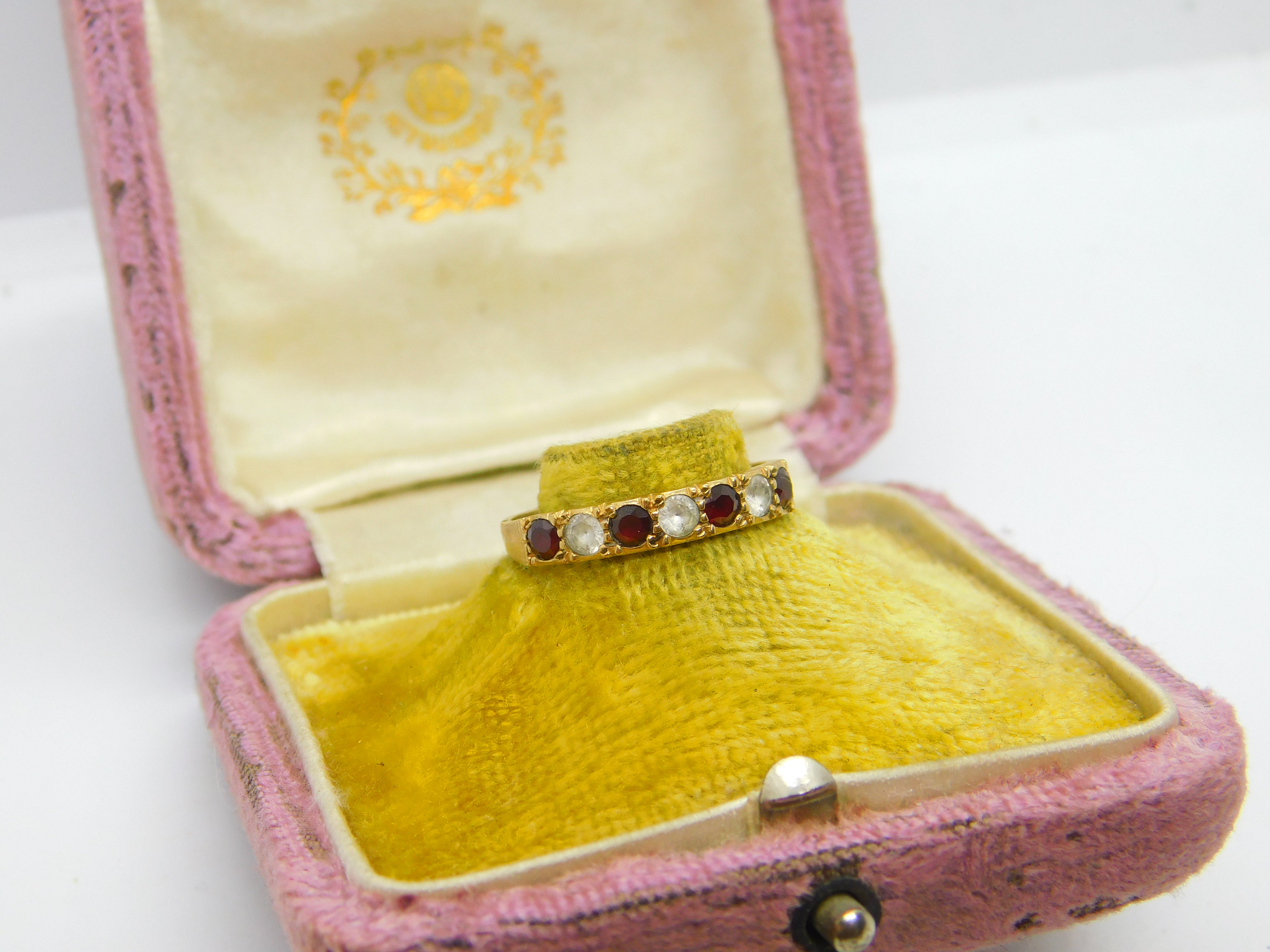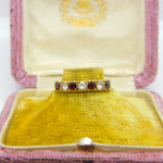 9ct Yellow Gold, Garnet & Paste Set Half Eternity Ring 1981 Birmingham Vintage
