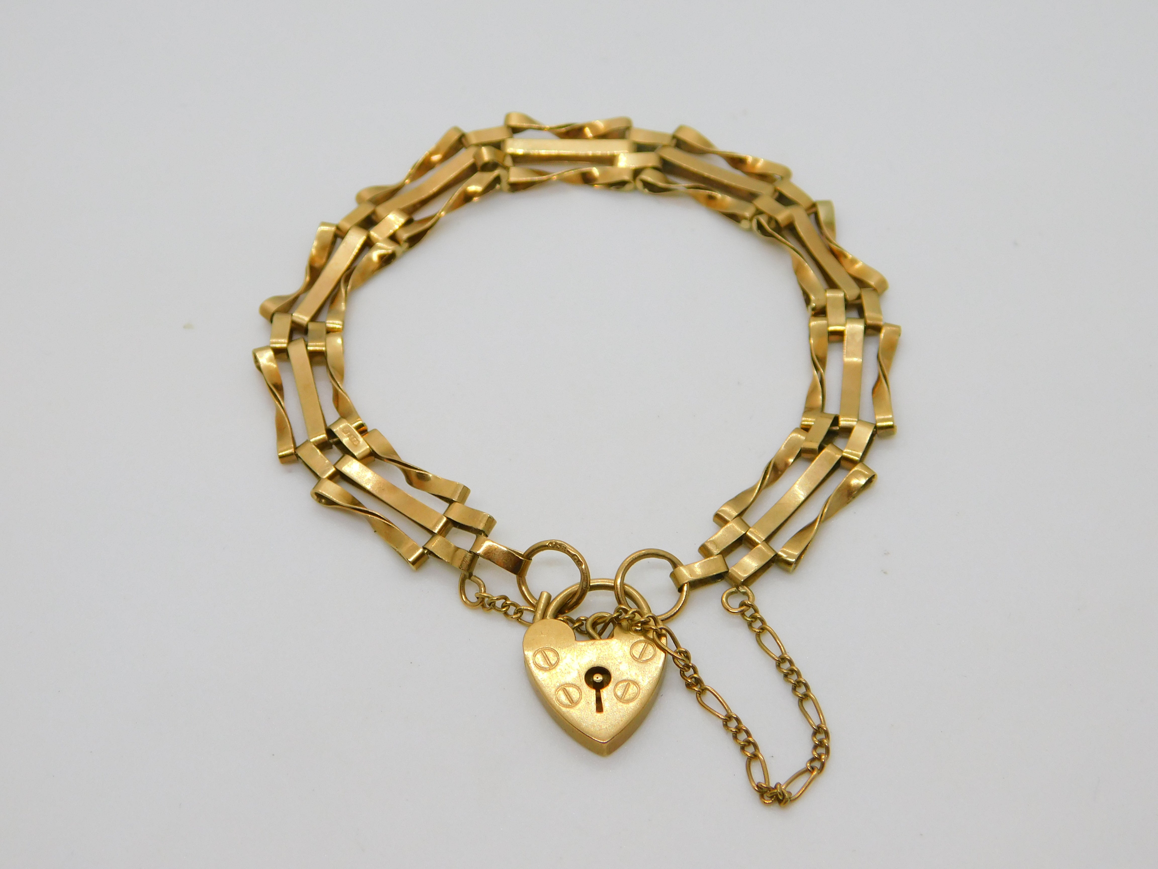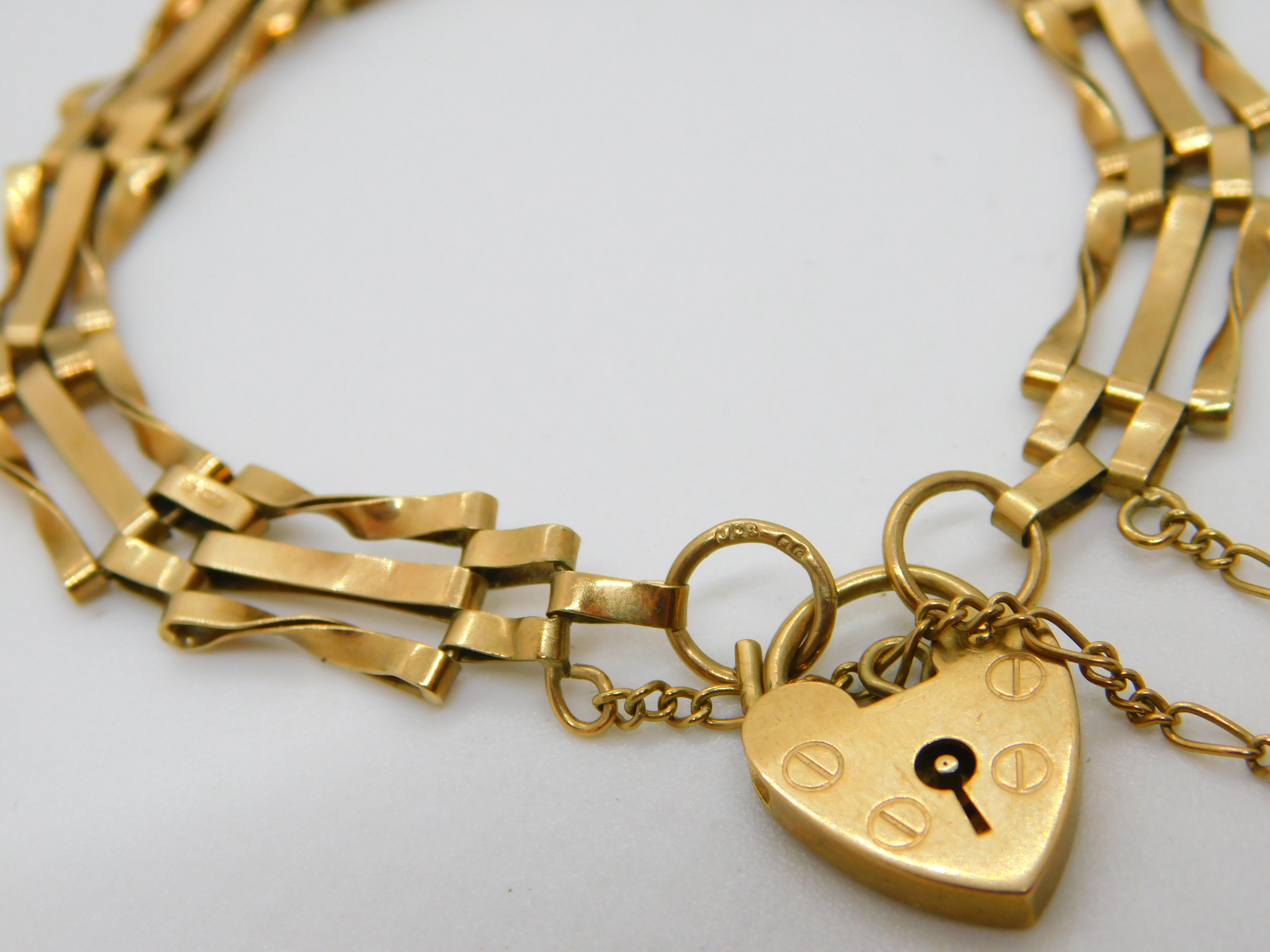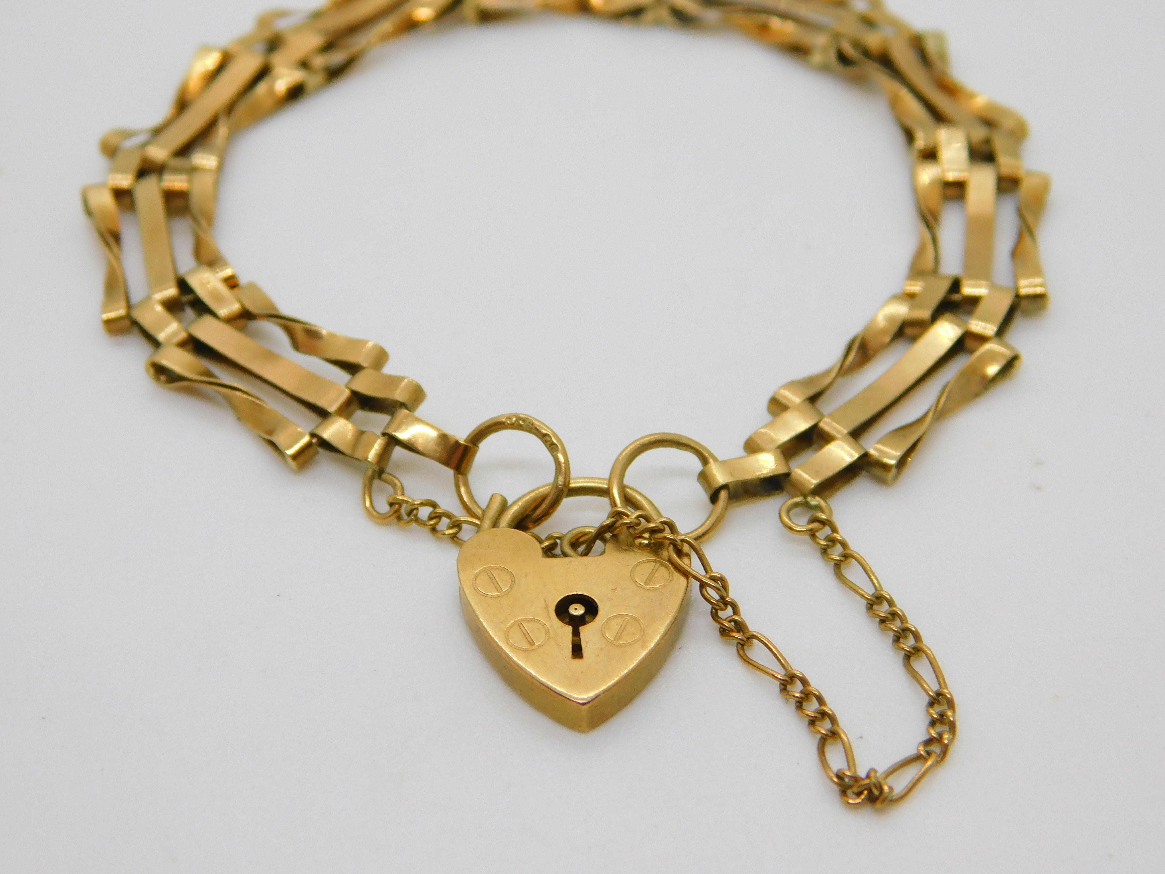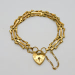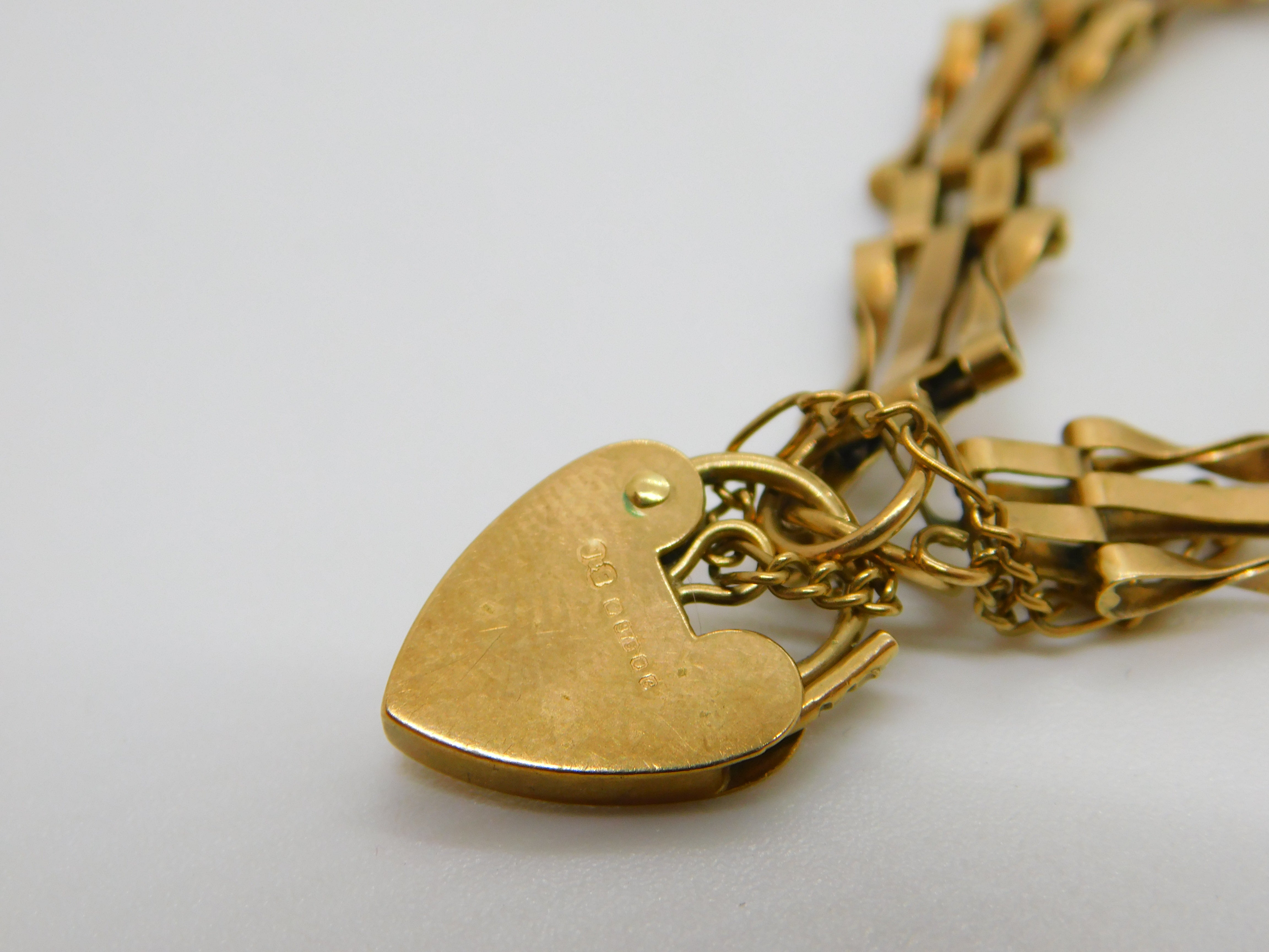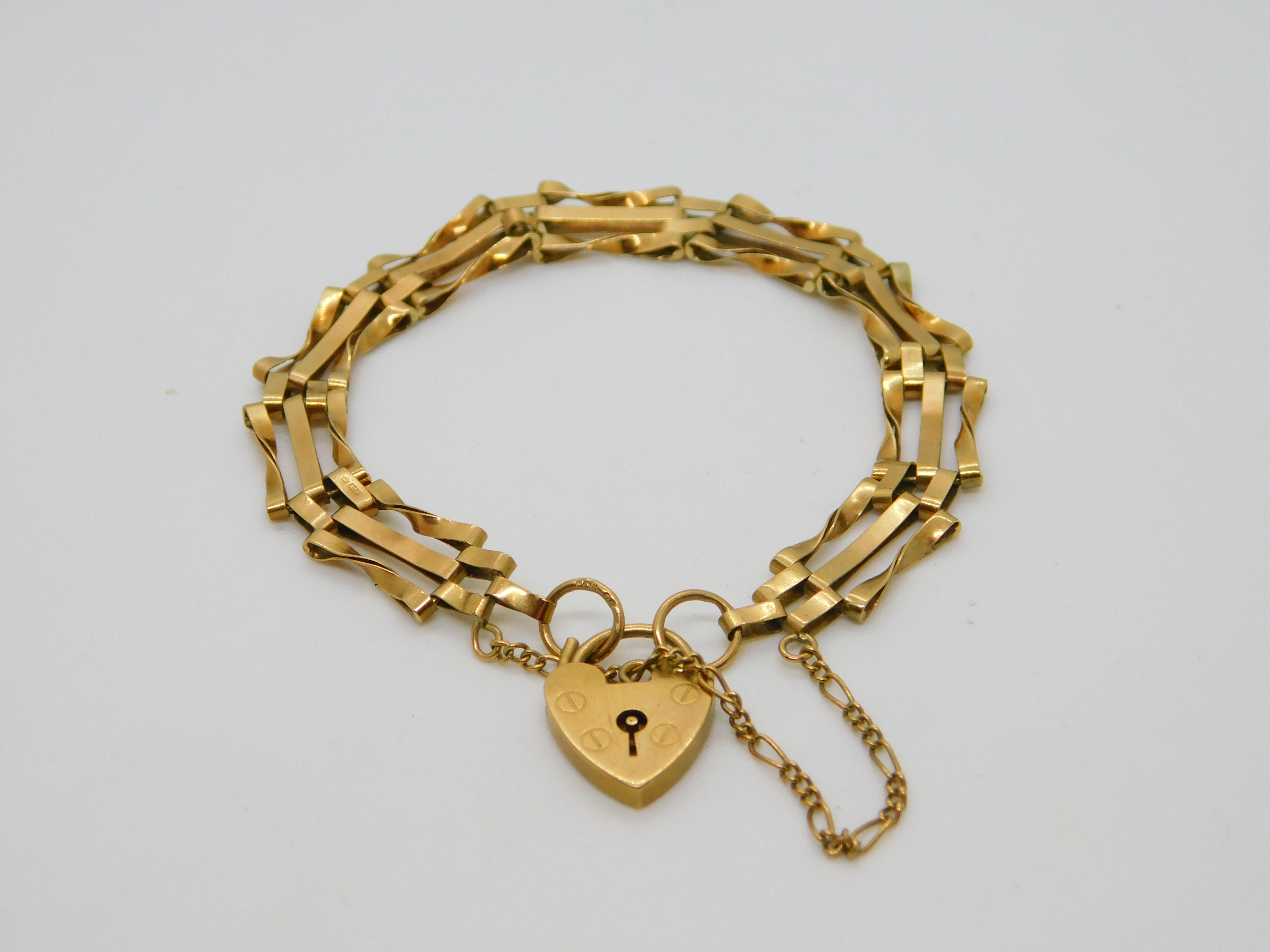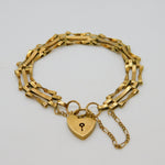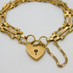 9ct Yellow Gold Gate Link Charm Bracelet Heart Lock Clasp 1977 London Vintage