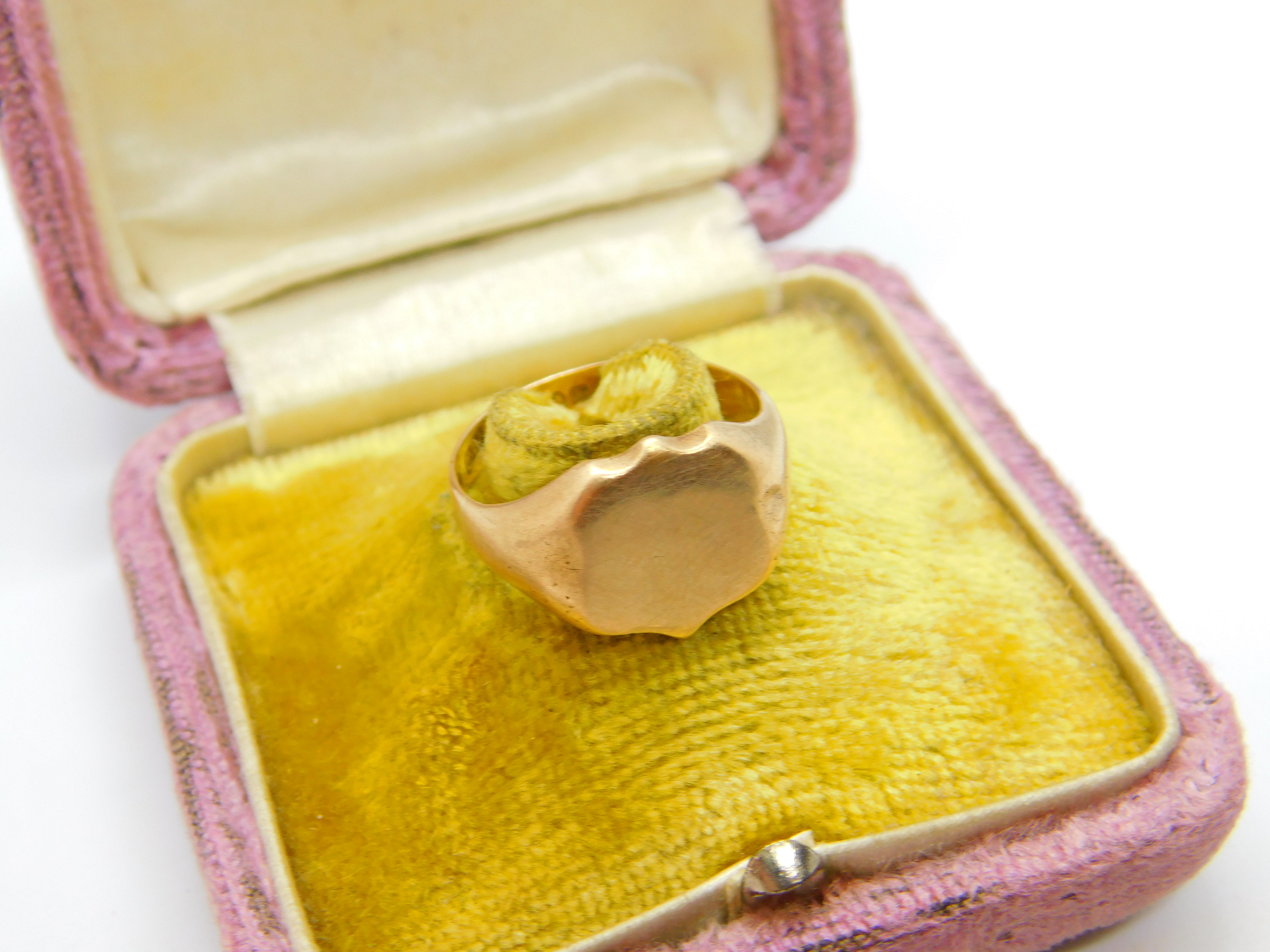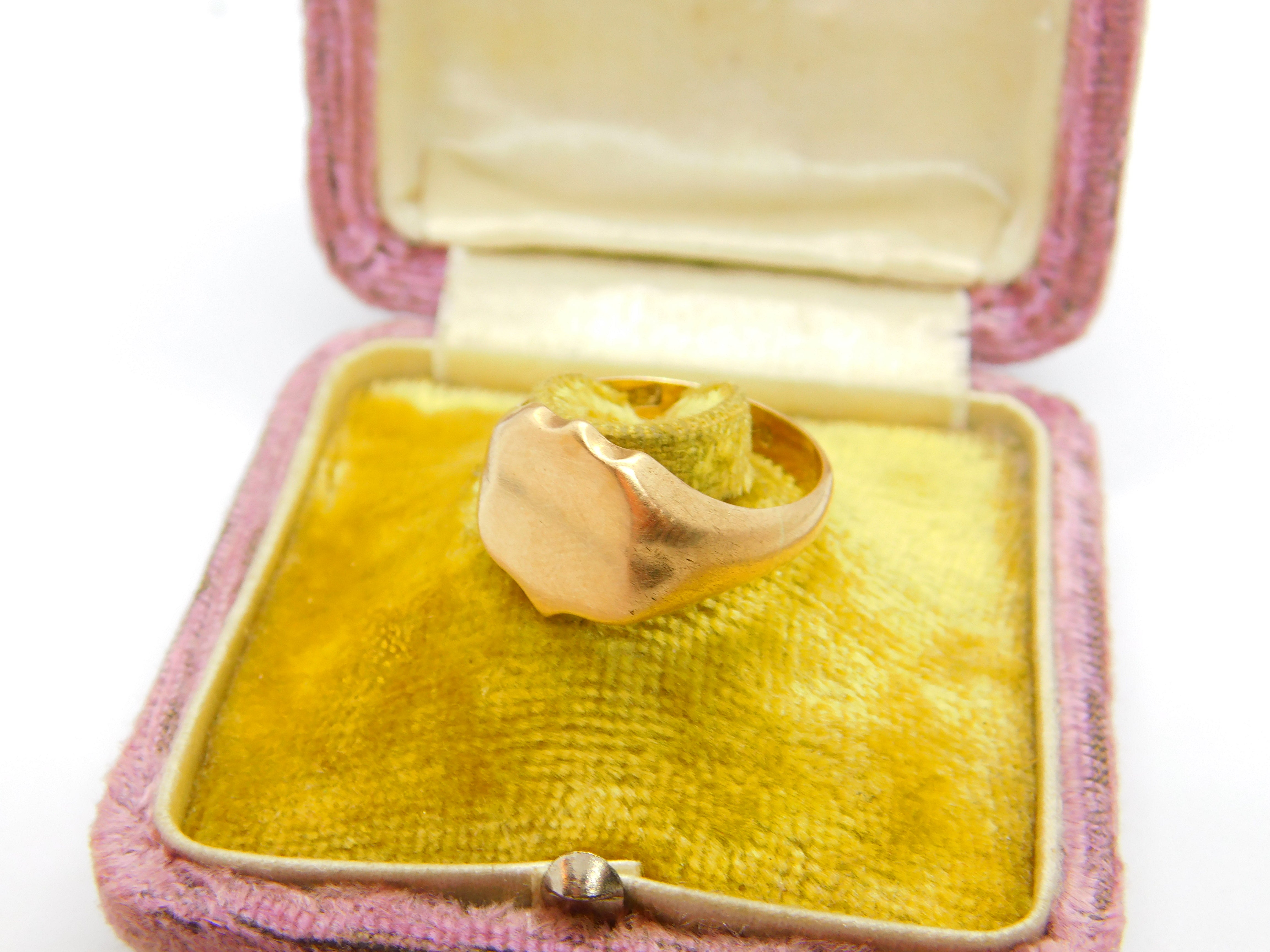 9ct Yellow Gold Gents Shield Form Signet Ring 1925 Birmingham Art Deco