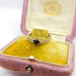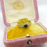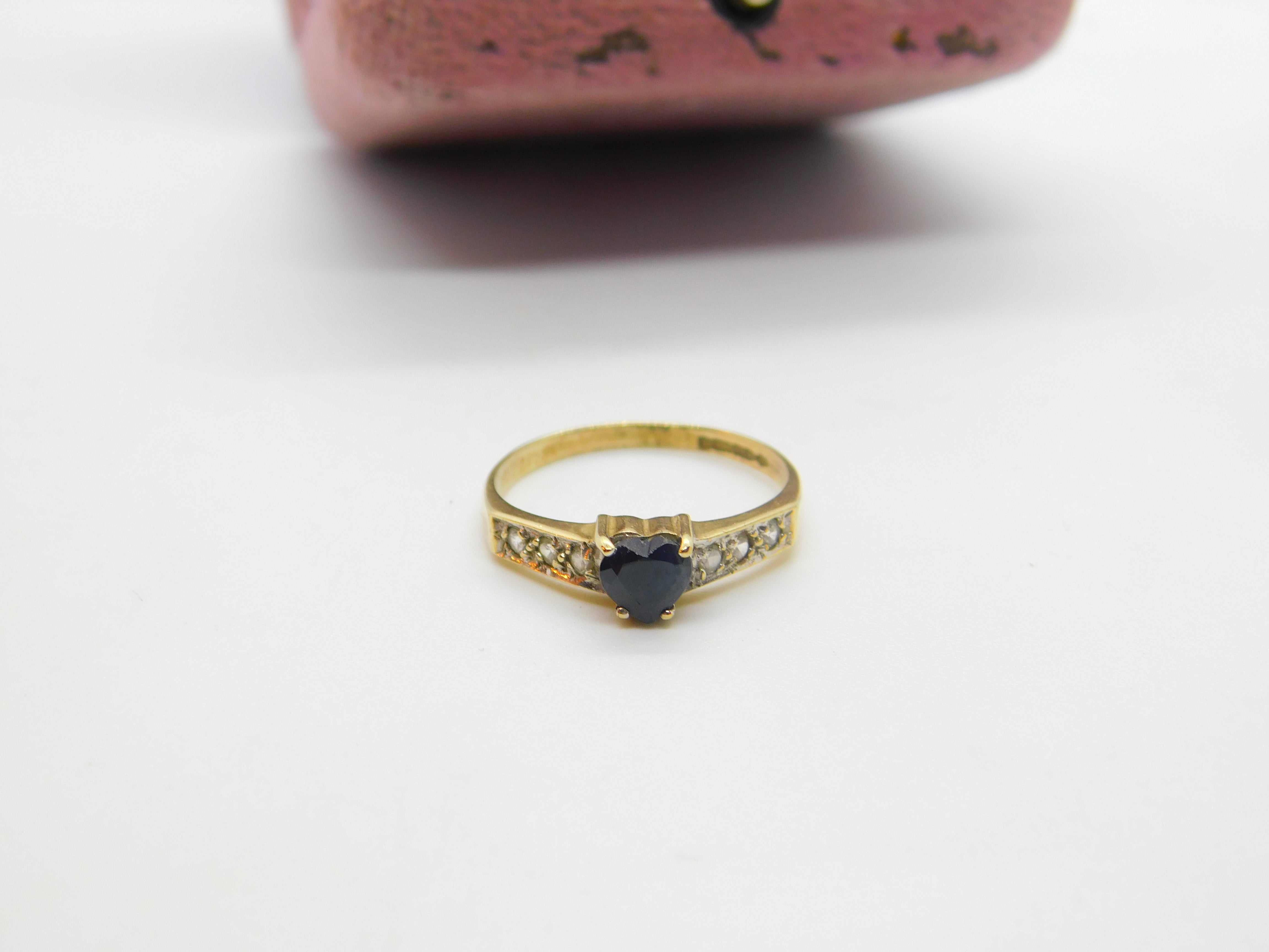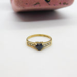 9ct Yellow Gold, Heart Cut Sapphire & Diamond Band Ring 1986 Birmingham Vintage