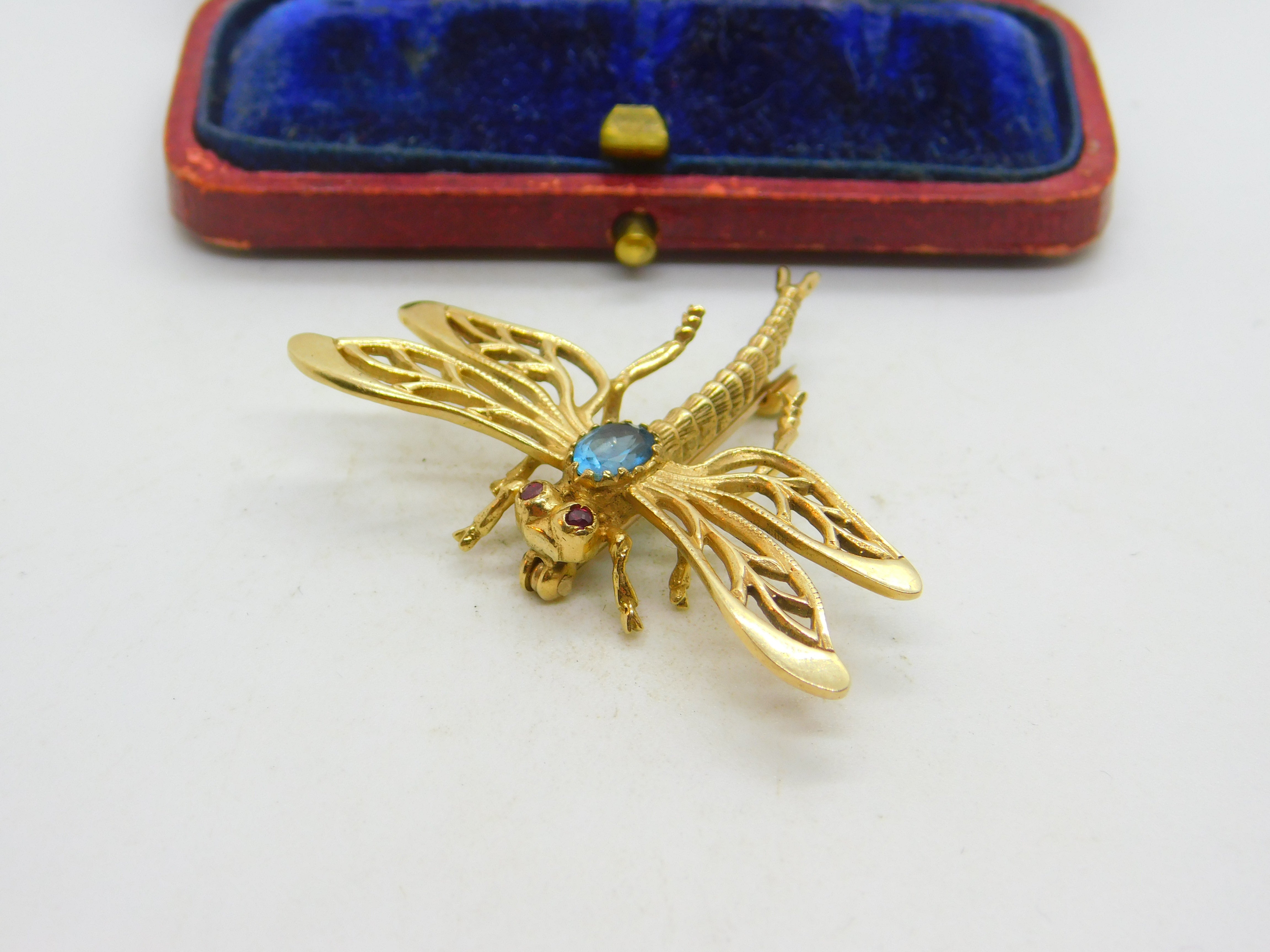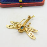 9ct Yellow Gold, Imperial Topaz & Ruby Set Dragonfly Insect Brooch 1973 London