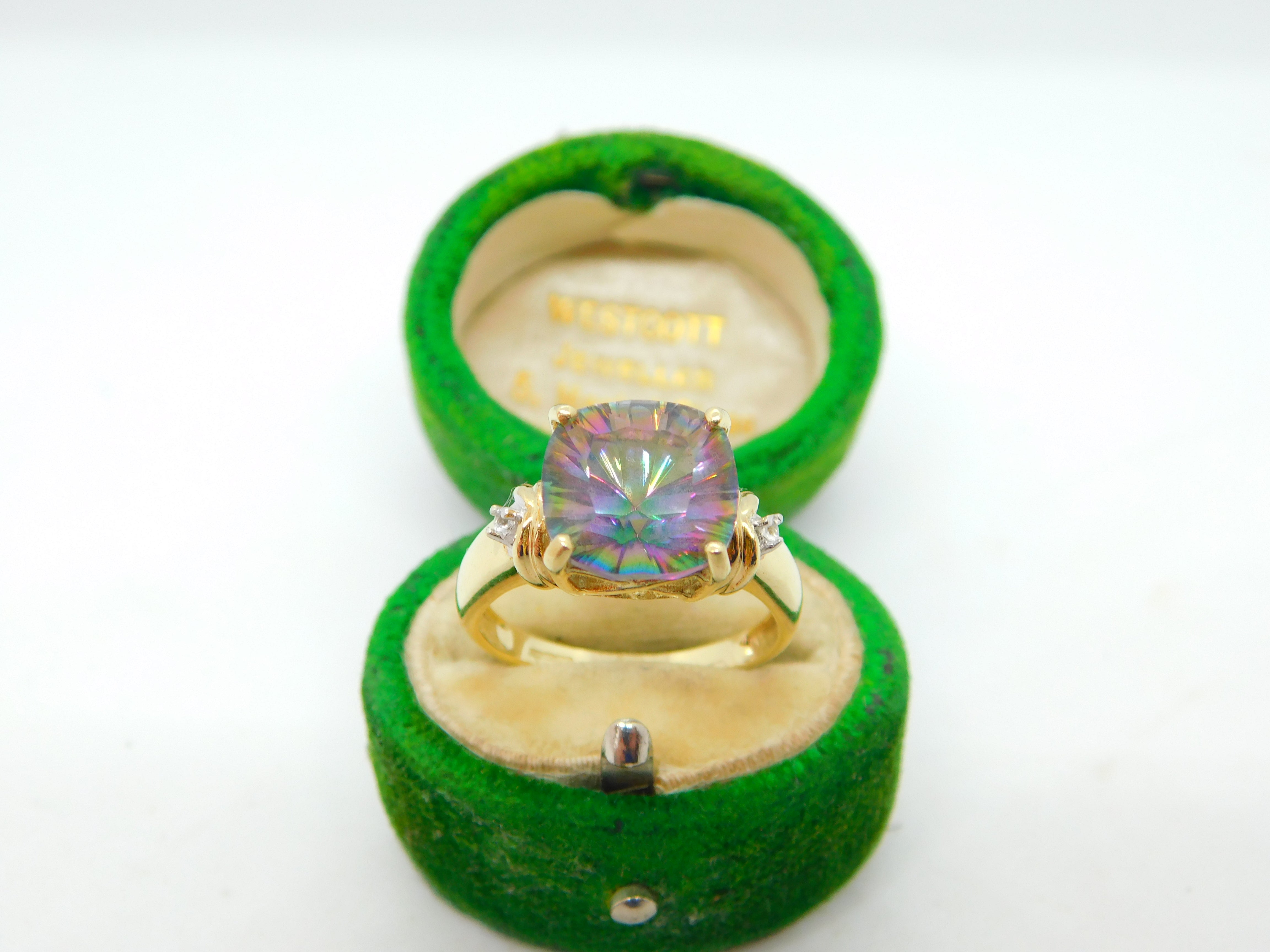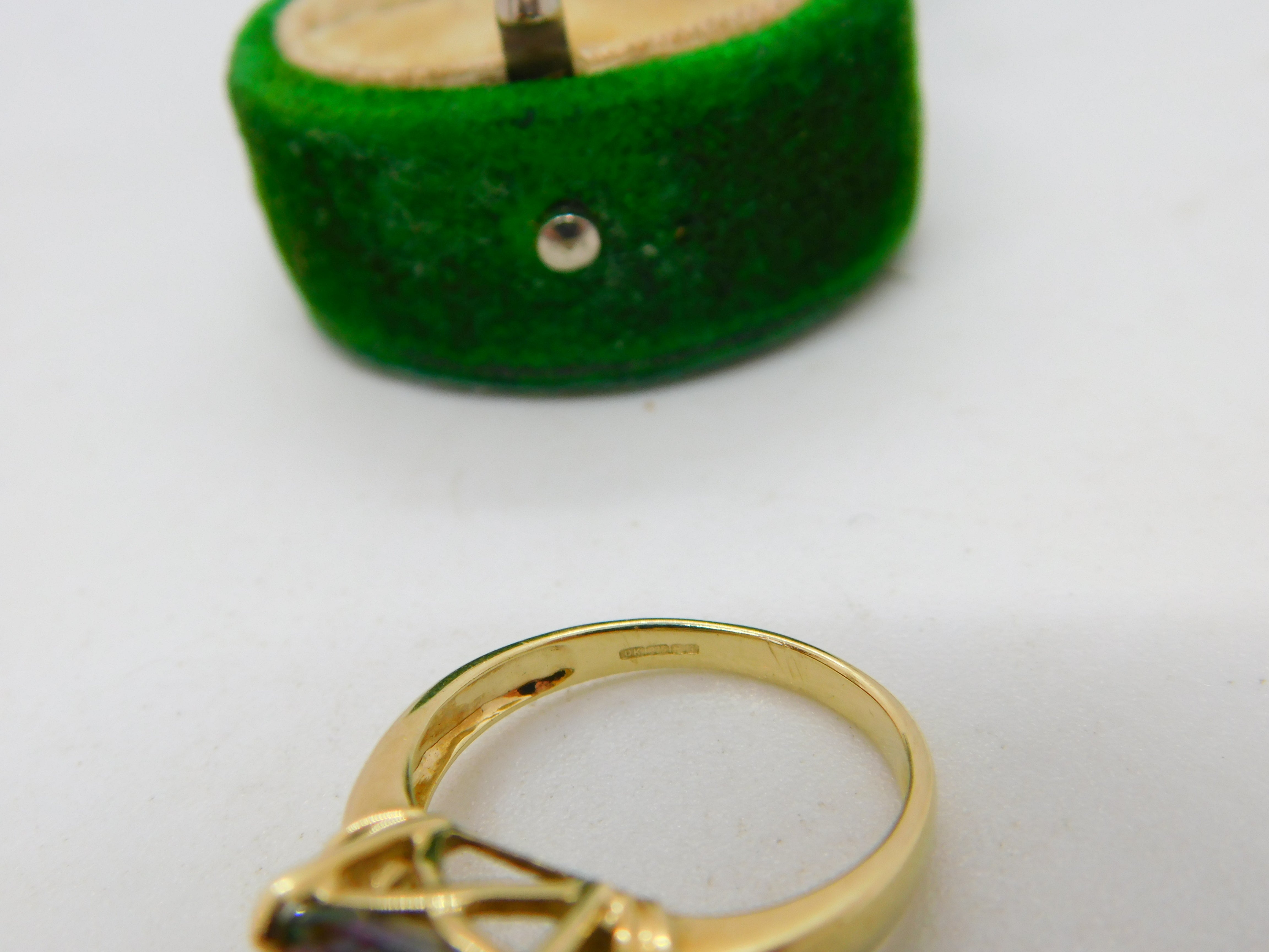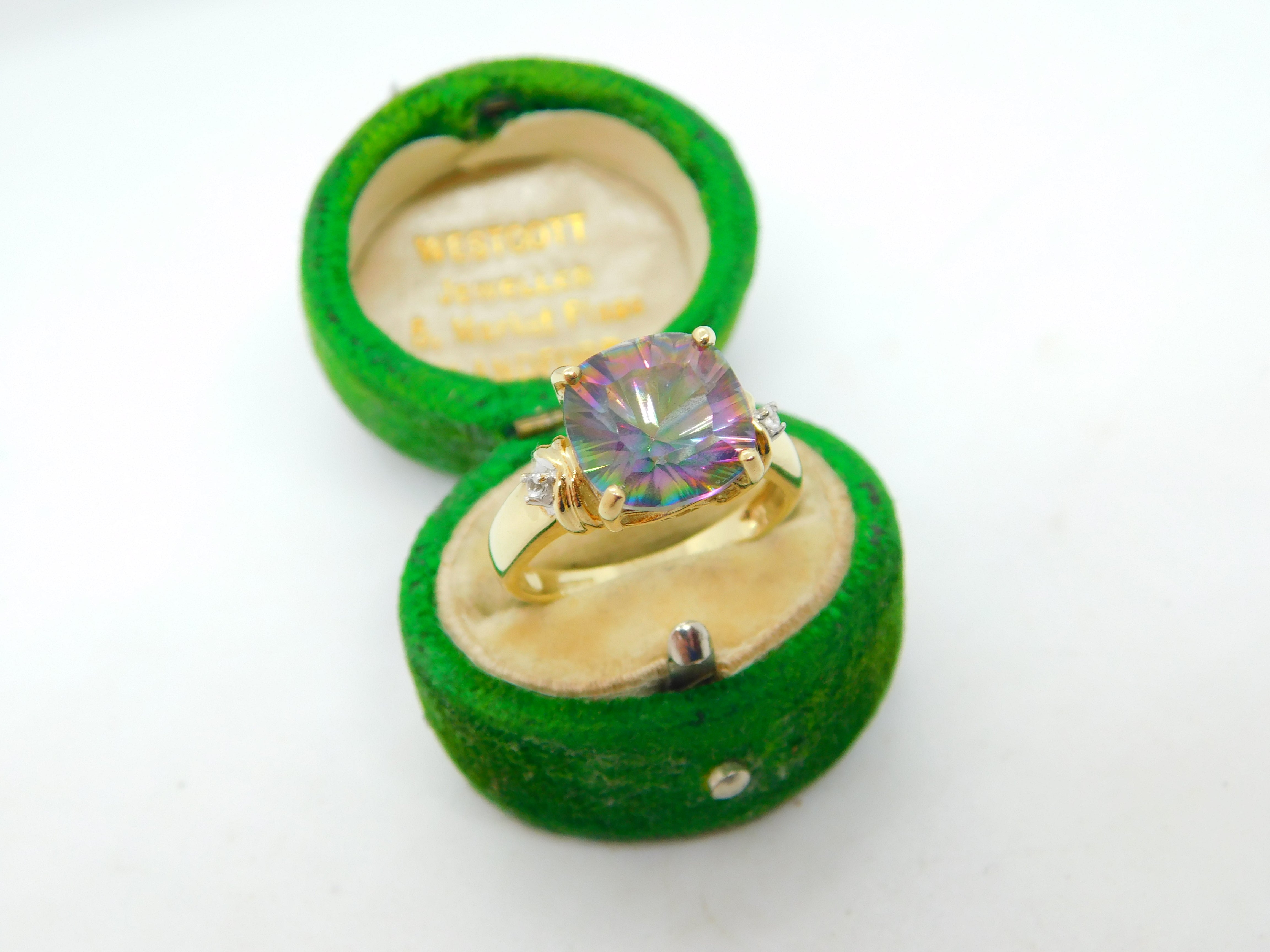 9ct Yellow Gold & Iridescent Glass Dress Ring Vintage 2015 Birmingham