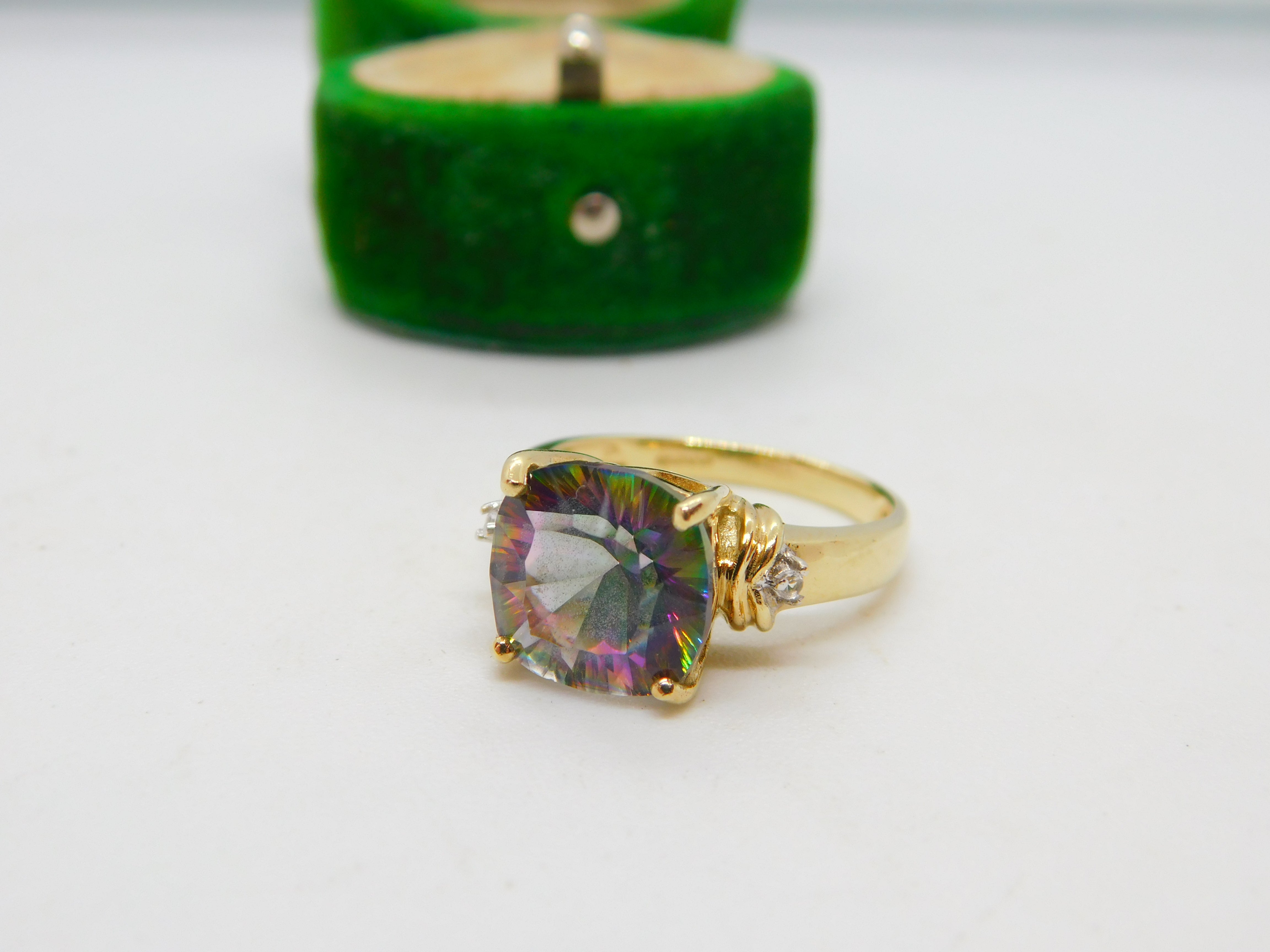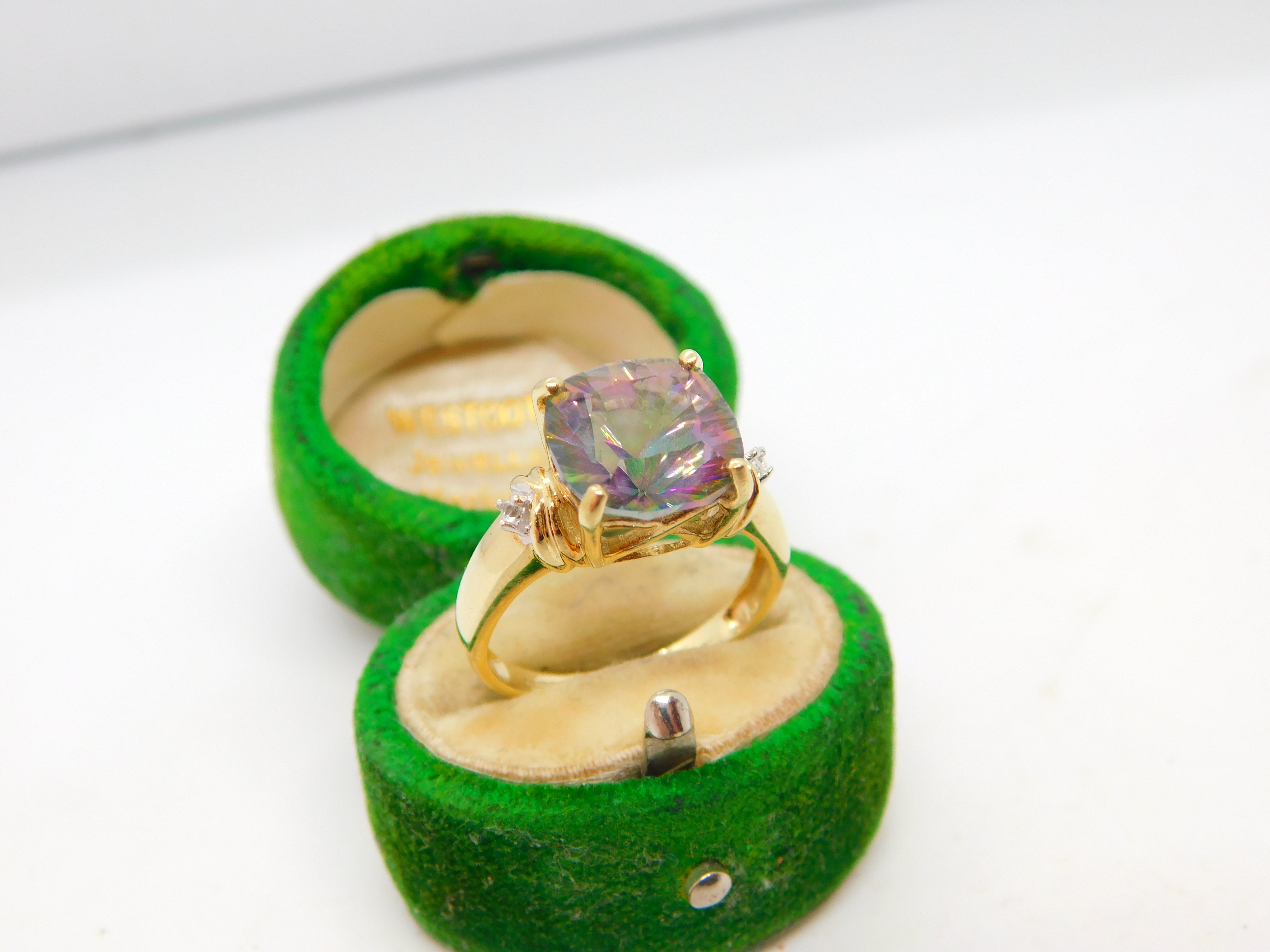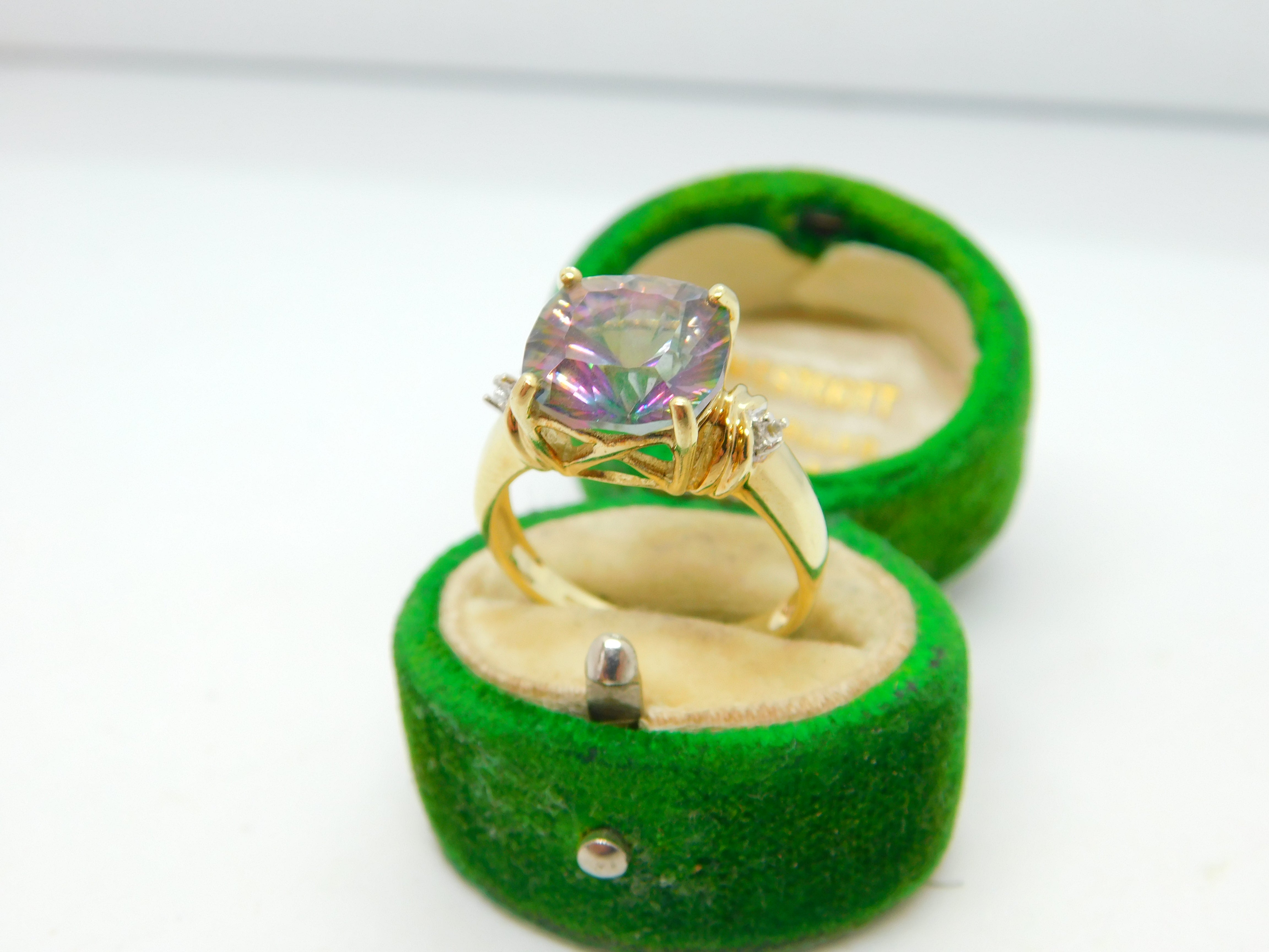 9ct Yellow Gold & Iridescent Glass Dress Ring Vintage 2015 Birmingham