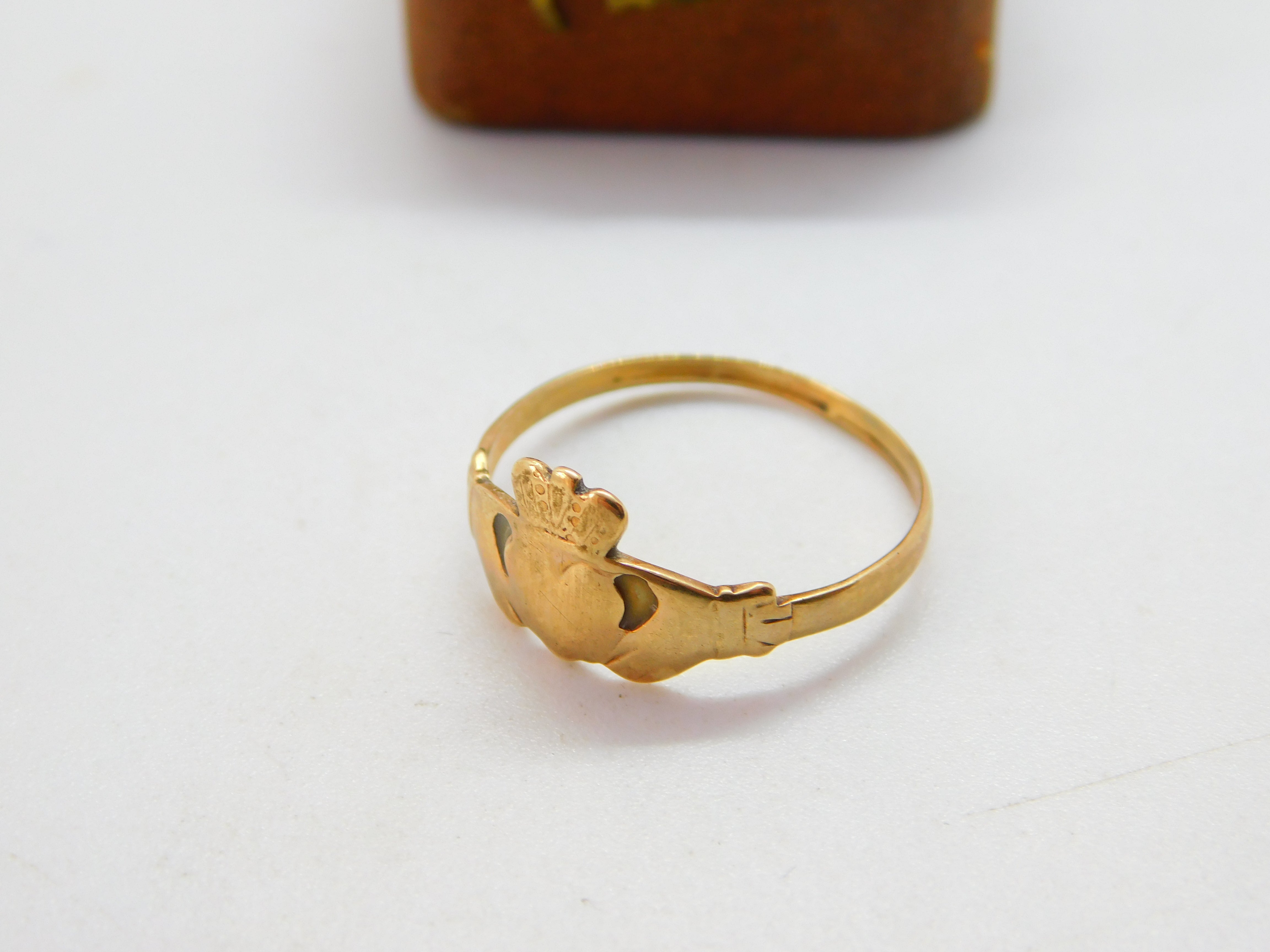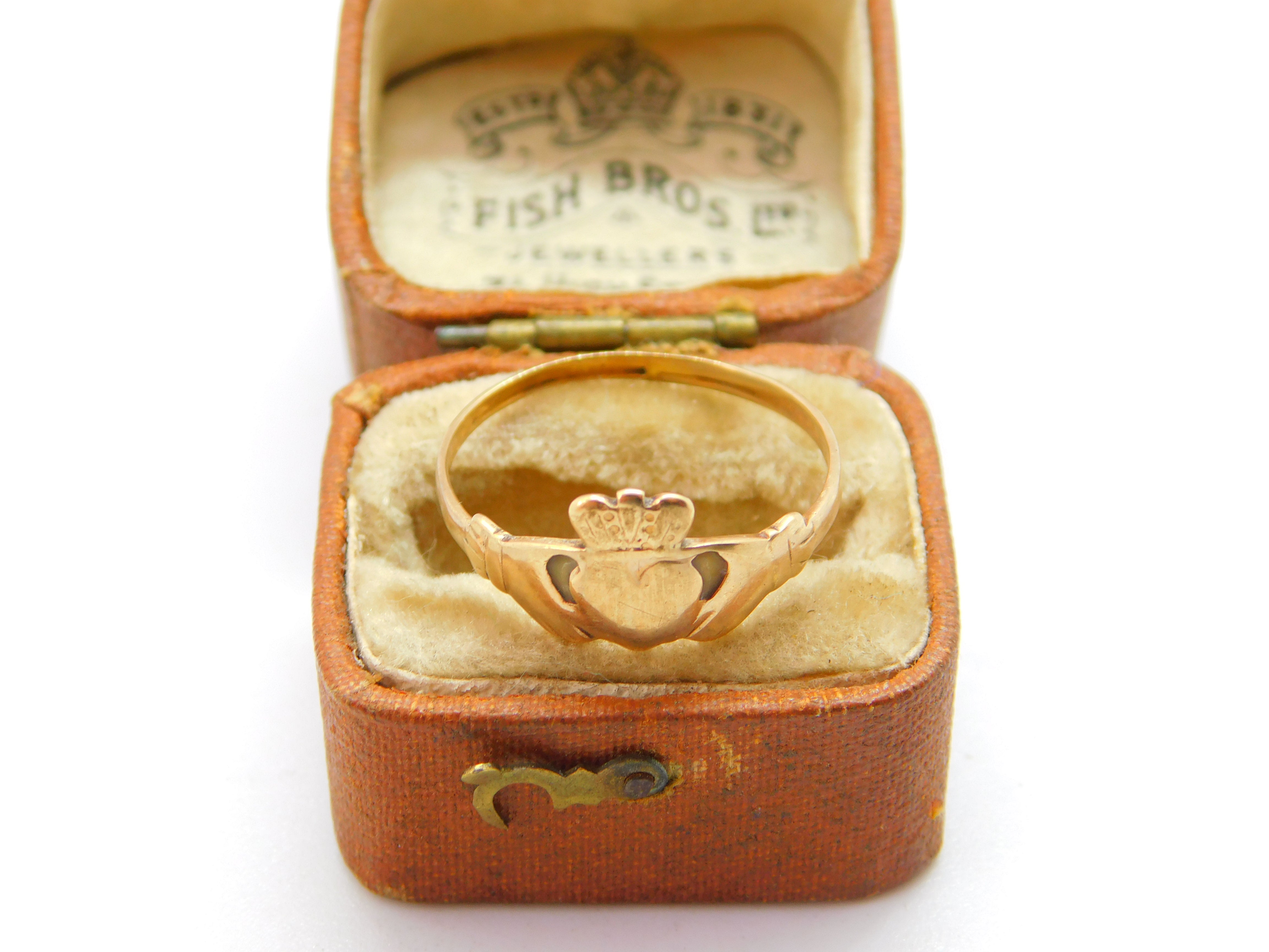 9ct Yellow Gold Irish Claddagh Wedding Band Ring Vintage c1970