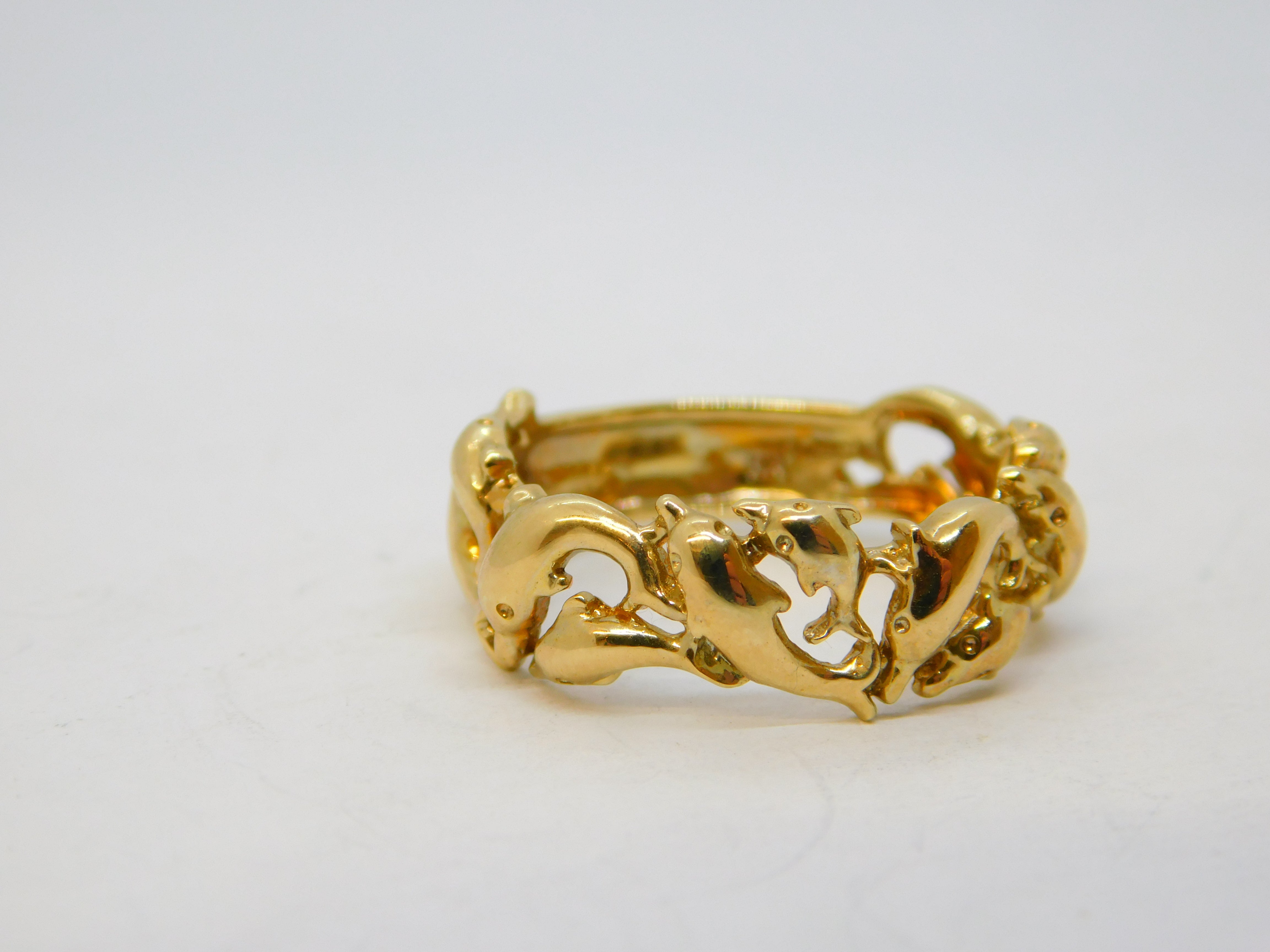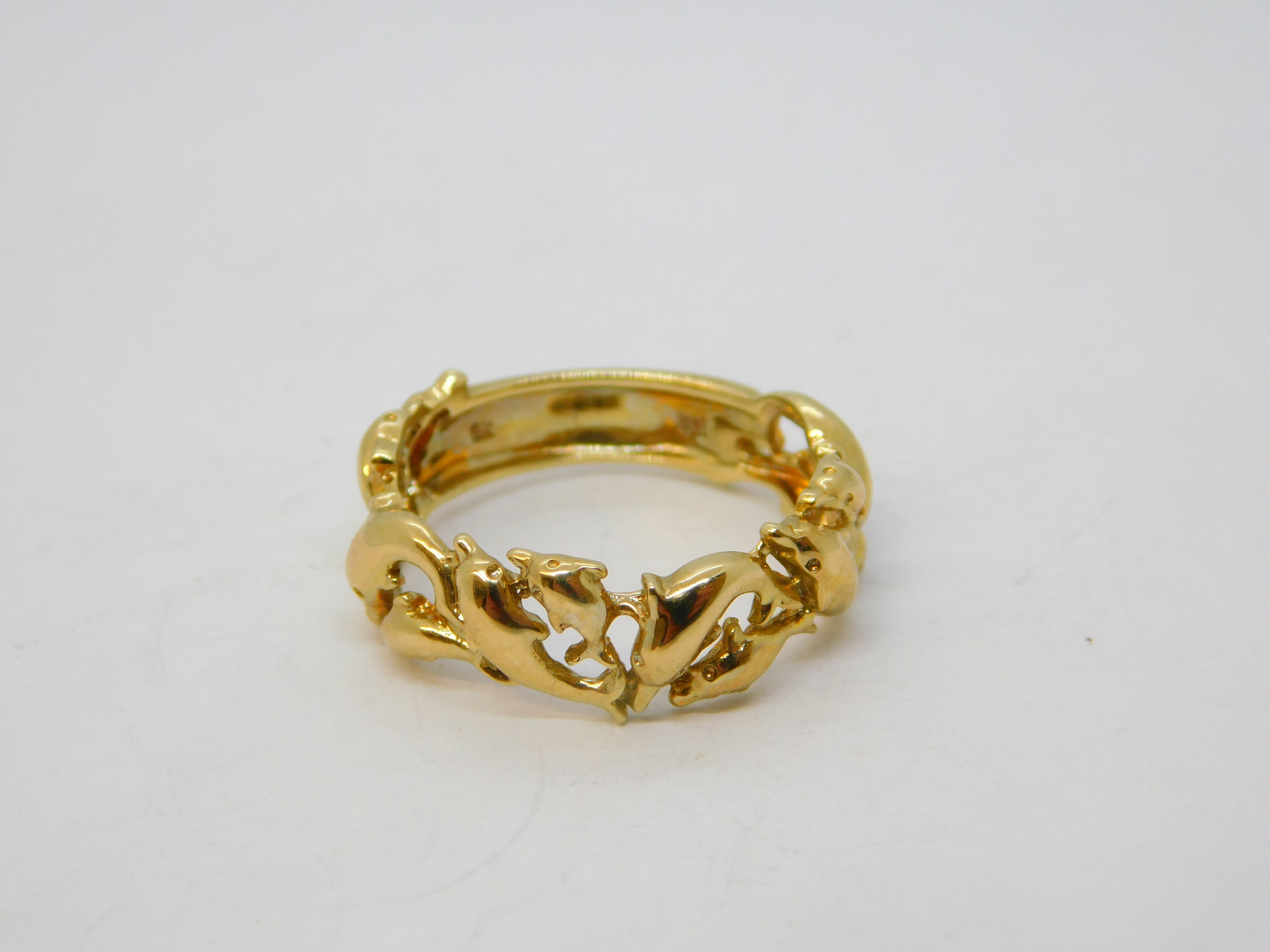 9ct Yellow Gold Jumping Dolphin Band Ring Vintage 2004 Birmingham