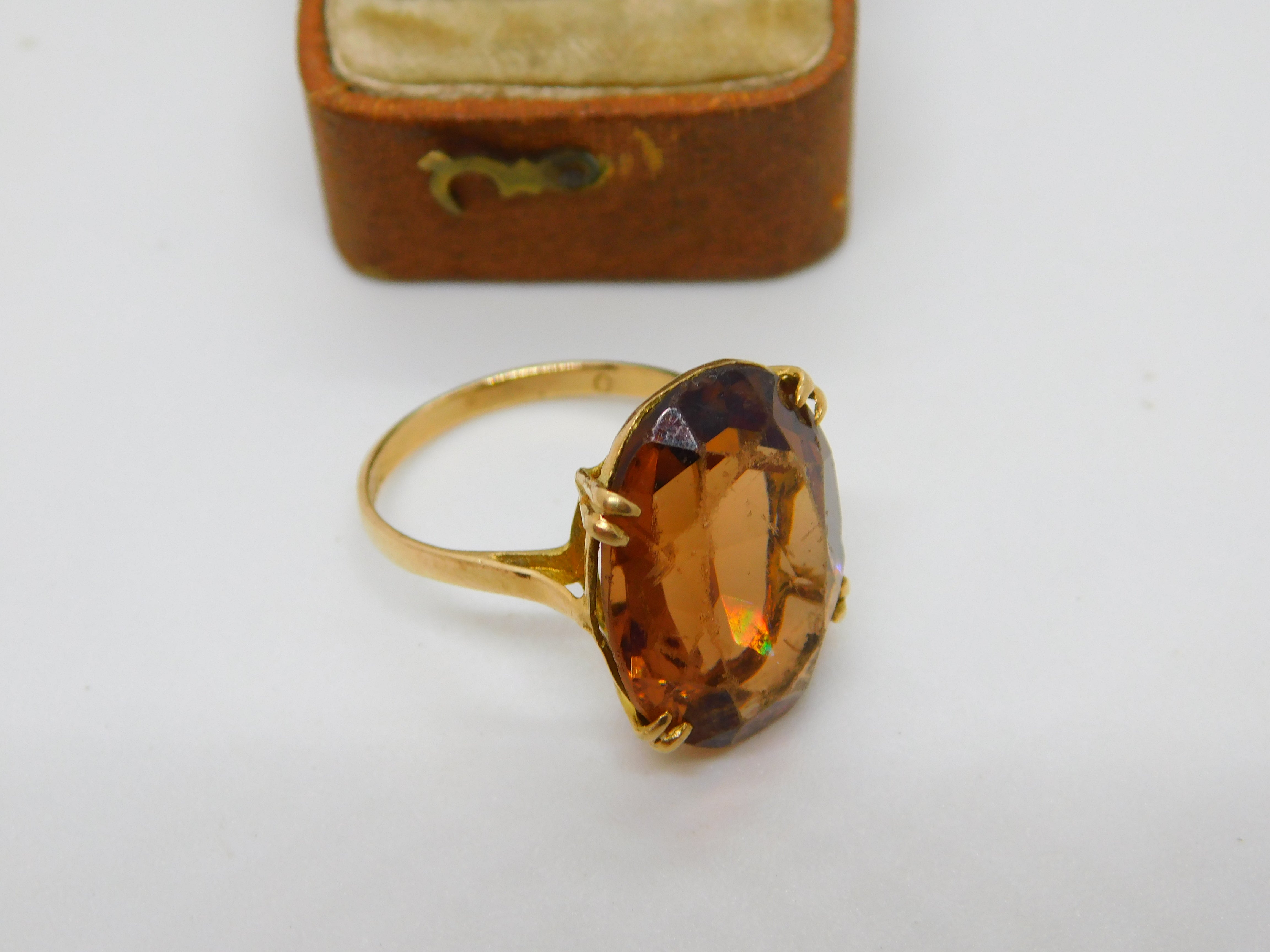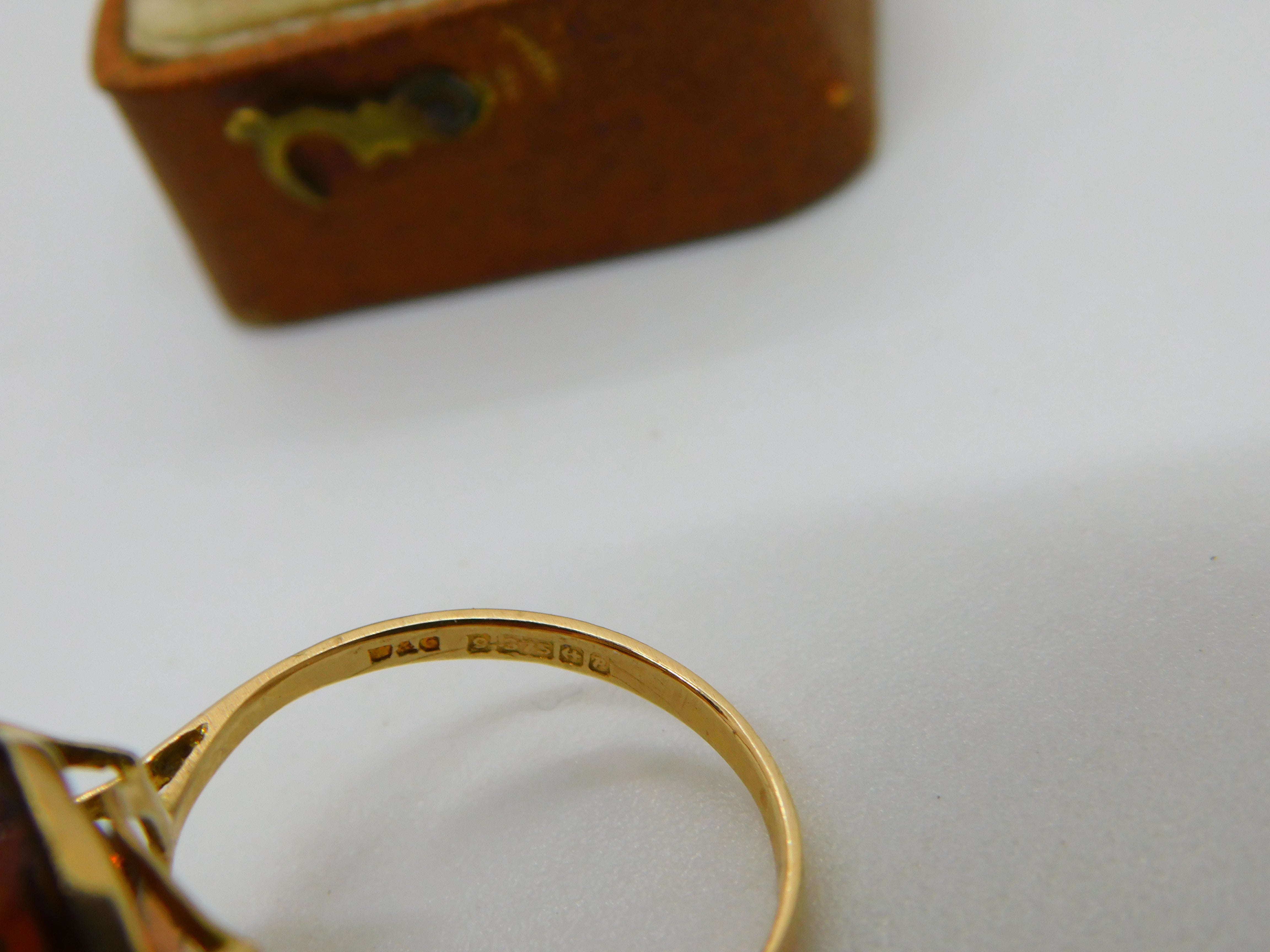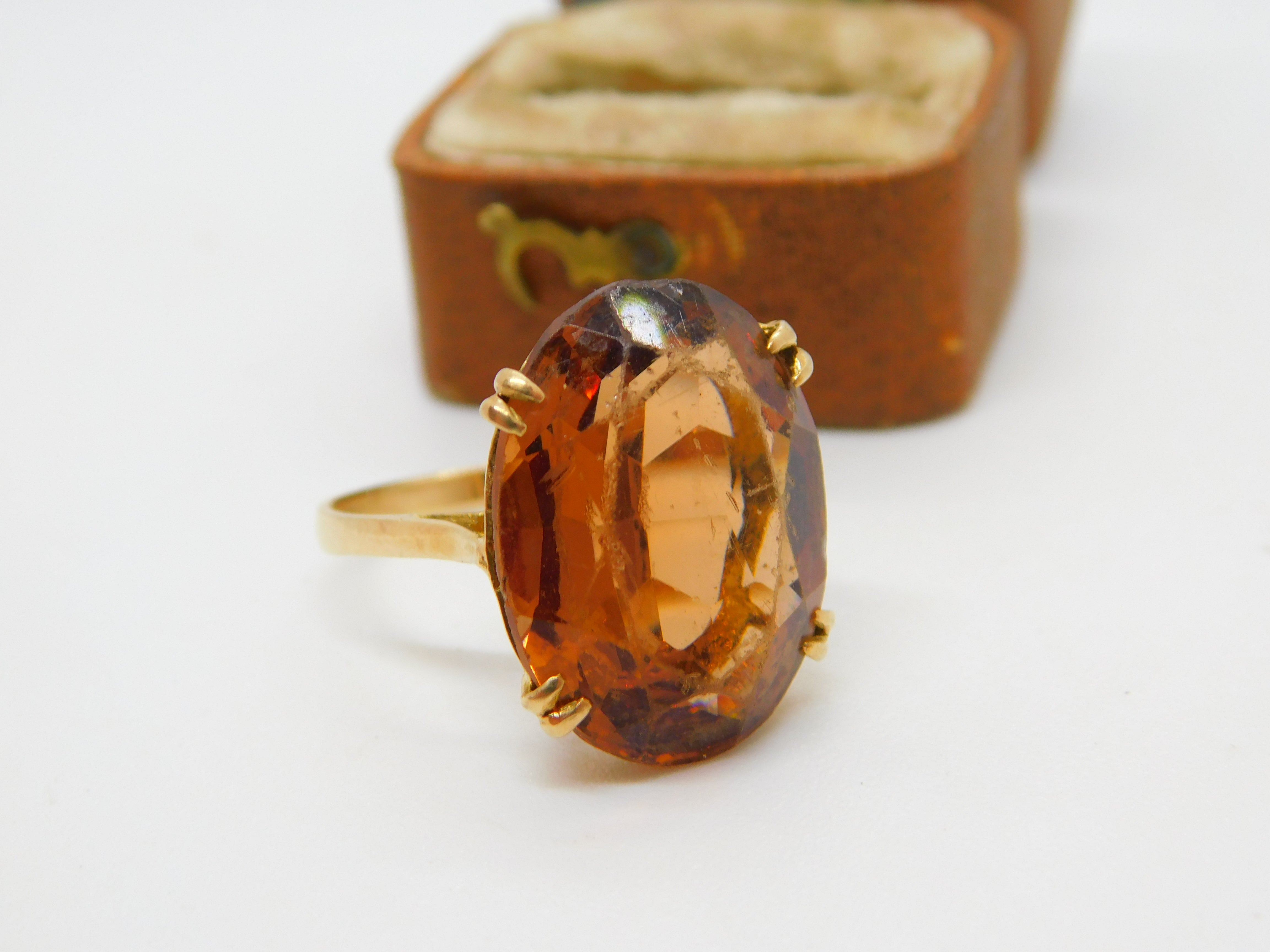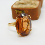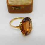 9ct Yellow Gold Large Faceted Citrine Cocktail Ring Vintage 1964 Birmingham
