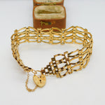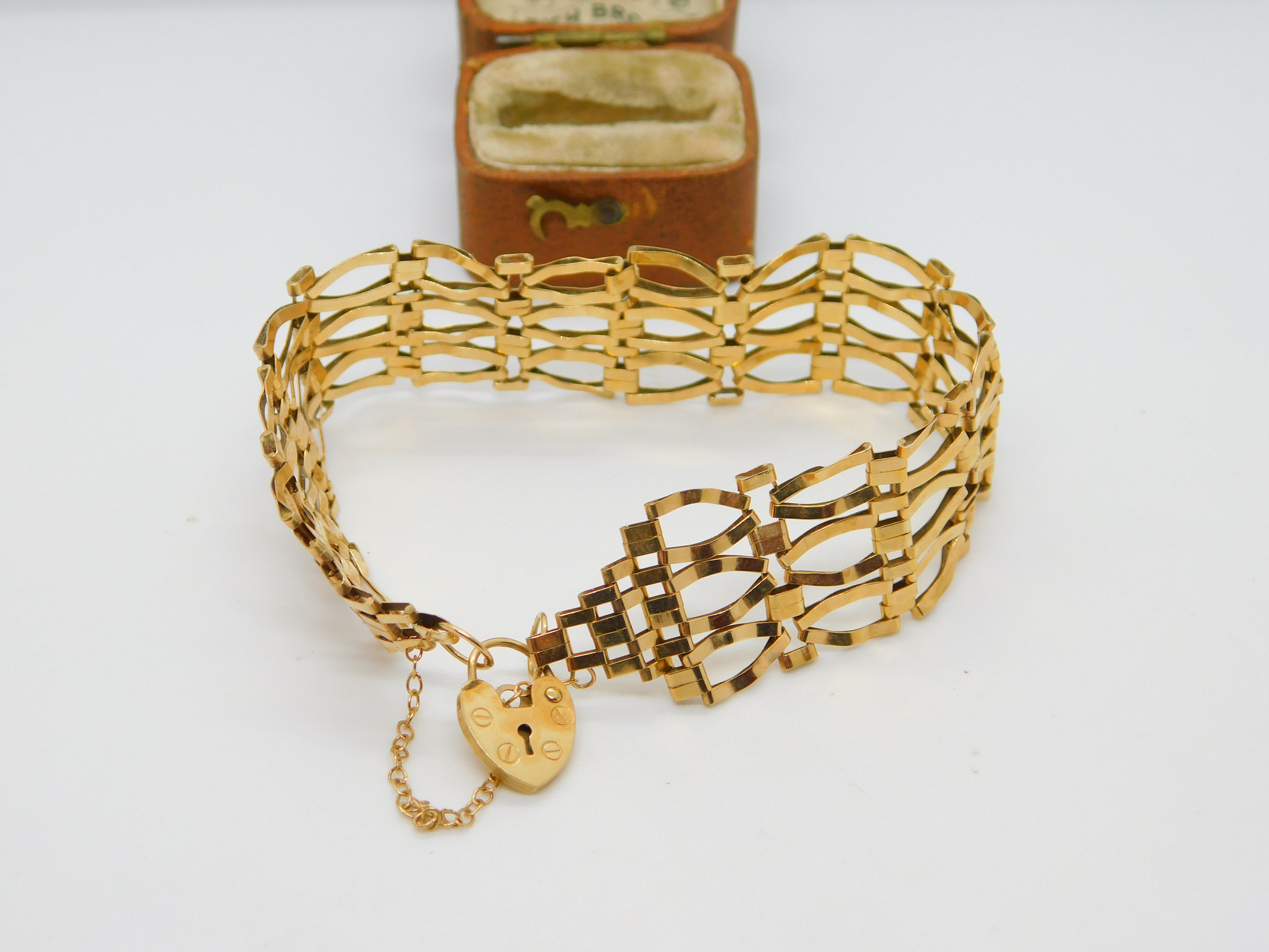 Details: A fantastic and wonderfully designed vintage 9ct yellow gold gate link charm bracelet with heart lock clasp hallmarked London 1991. This is a wonderful item that would make a perfect gift or addition to any collection. The BOX pictured is for PRESENTATION ONLY and is NOT included in the listings but used to frame the pictures unless specifically stated otherwise.