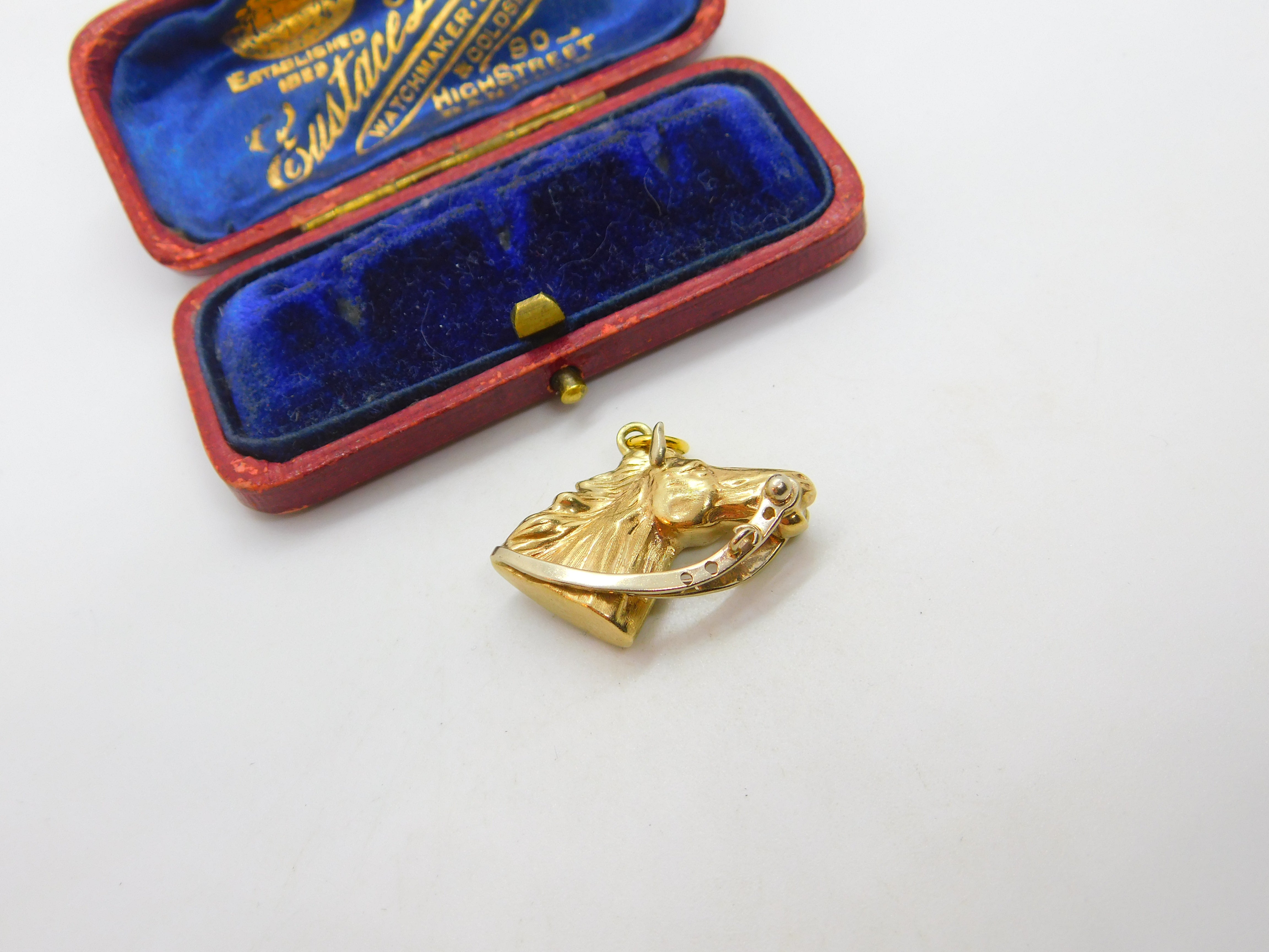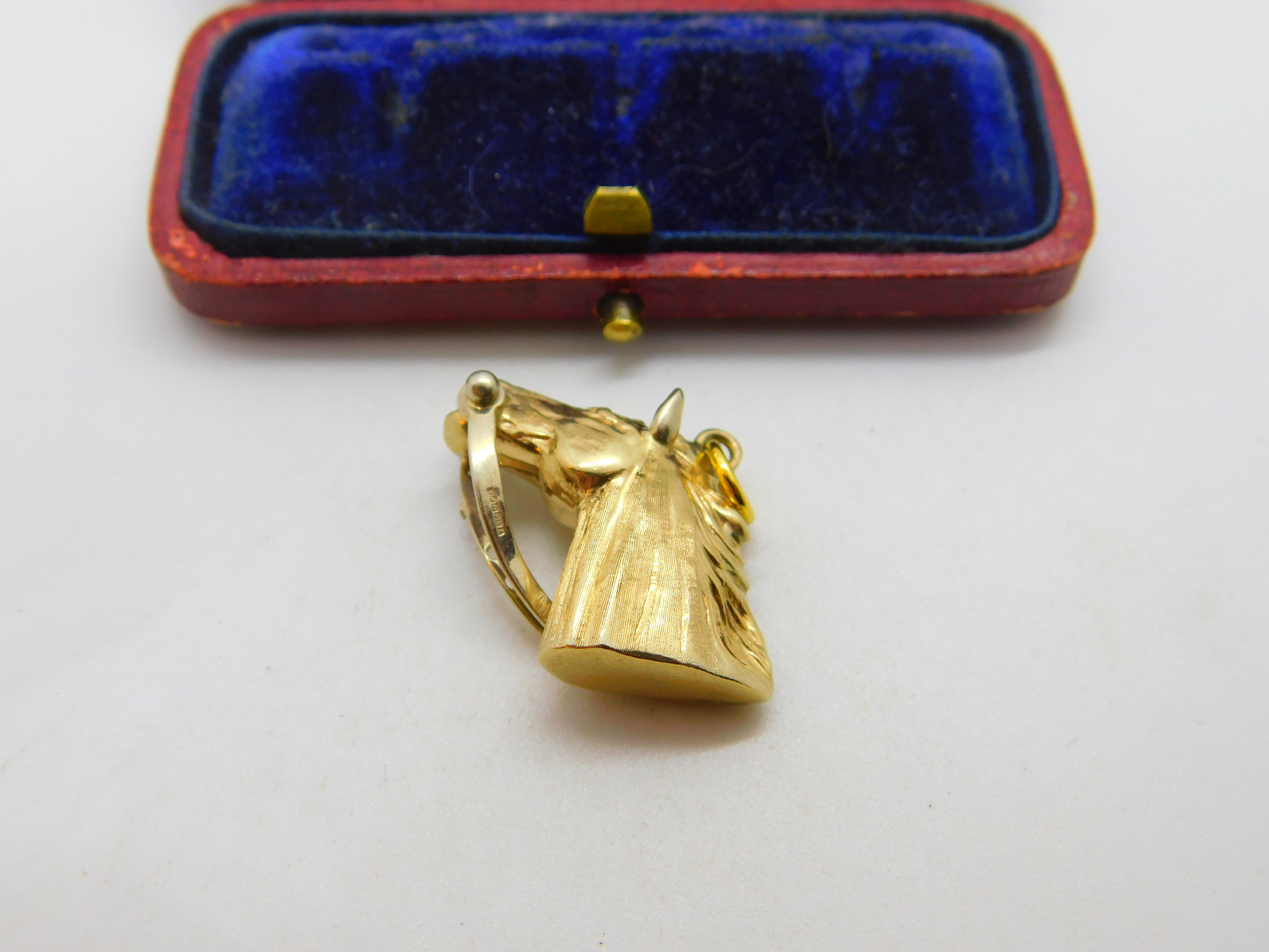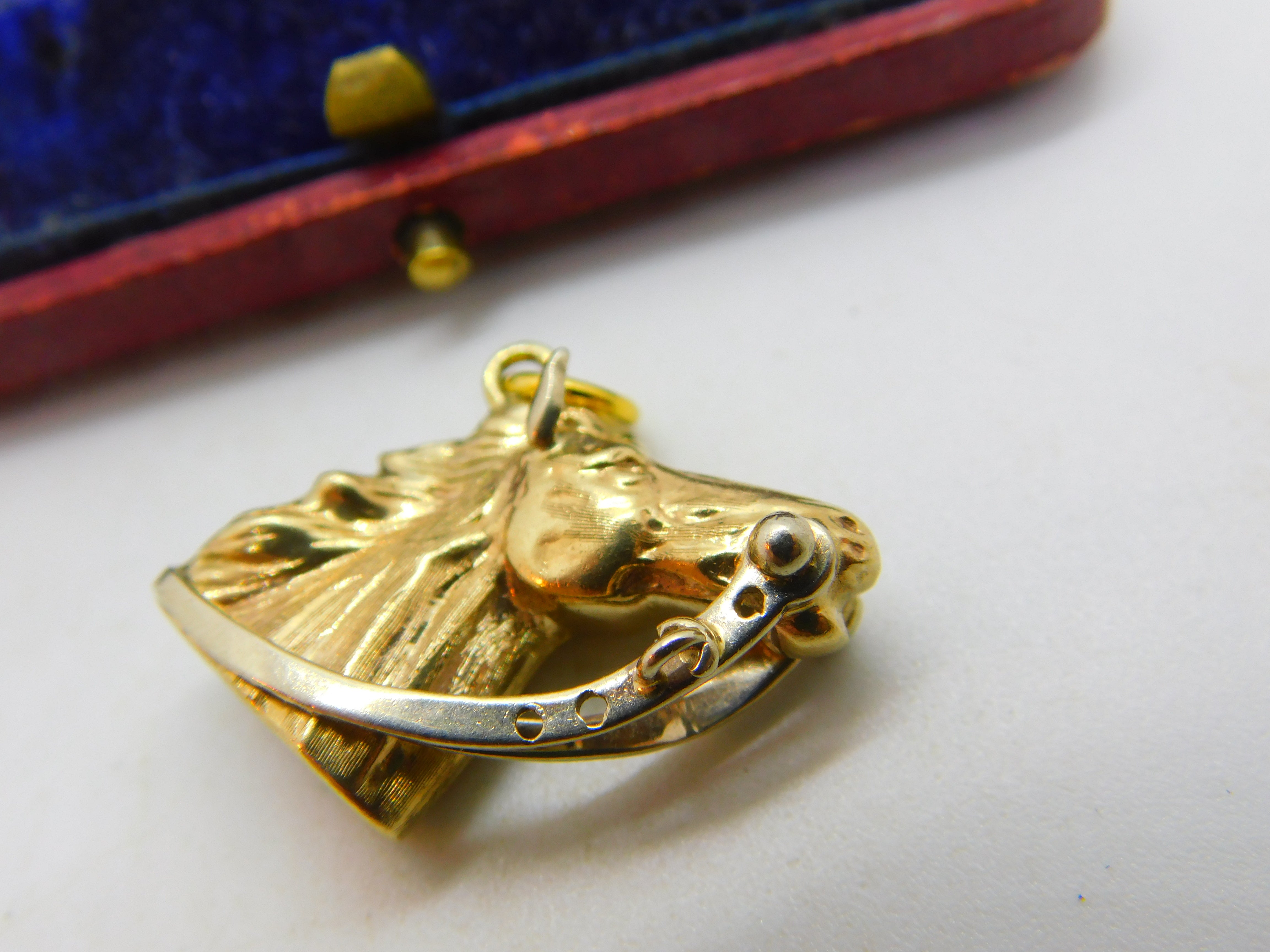 Details: A fantastic and wonderfully designed vintage 9ct yellow gold race horse's head charm or pendant hallmarked Birmingham 1979 to the reigns. This is a wonderful item that would make a perfect gift or addition to any collection. The BOX pictured is for PRESENTATION ONLY and is NOT included in the listings but used to frame the pictures unless specifically stated otherwise.