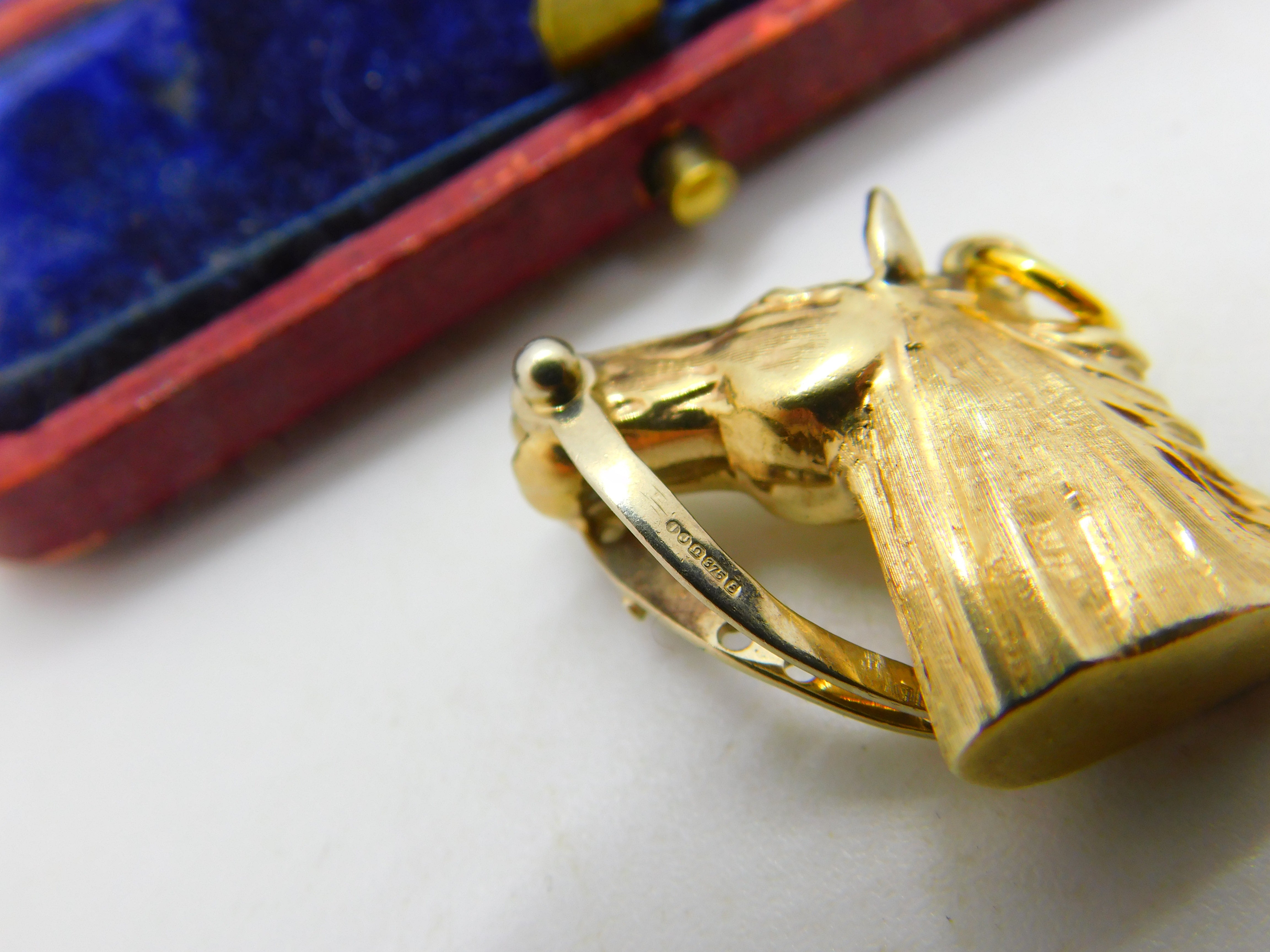 9ct Yellow Gold Large Race Horse's Head Charm Pendant 1979 Birmingham