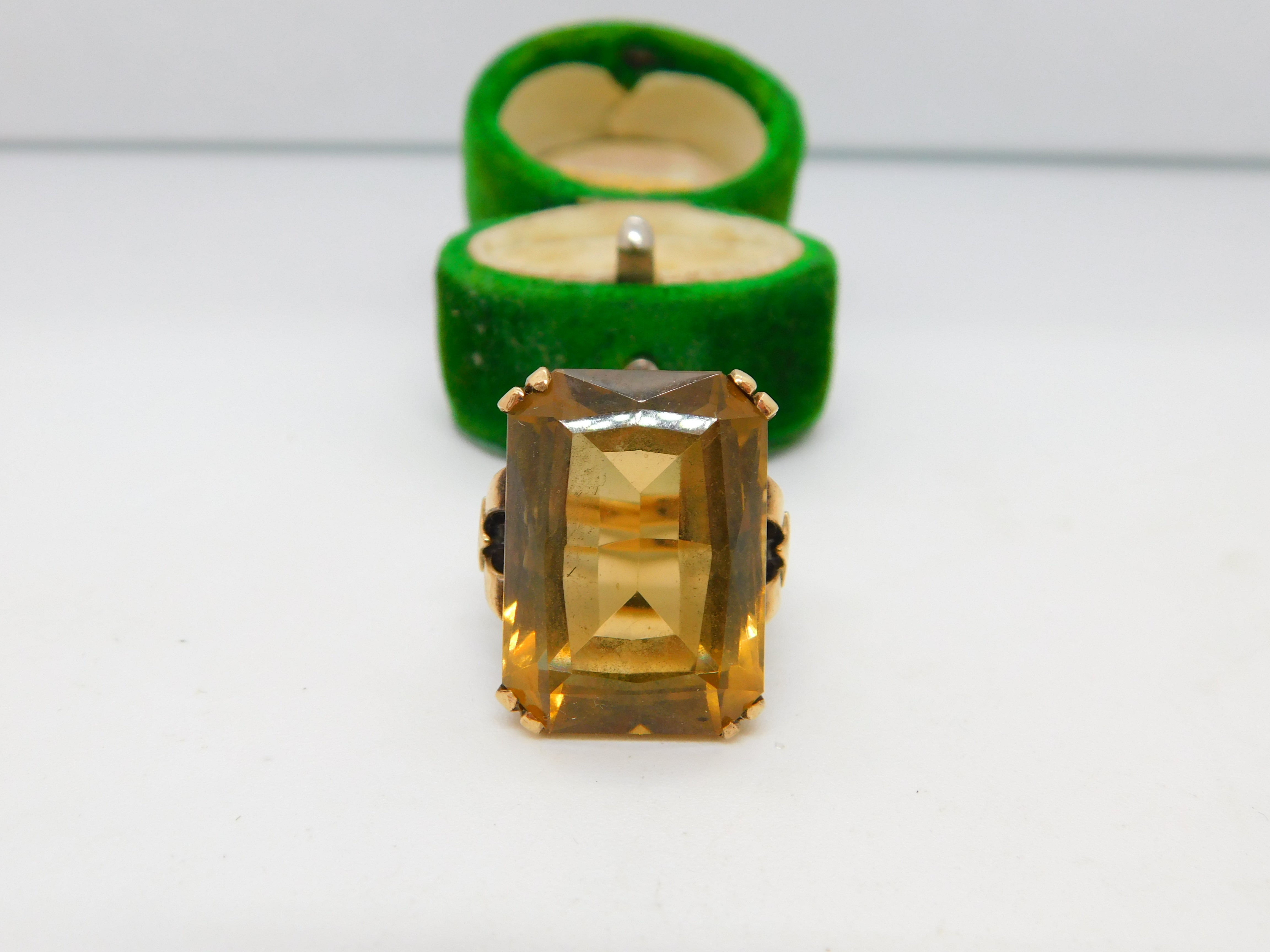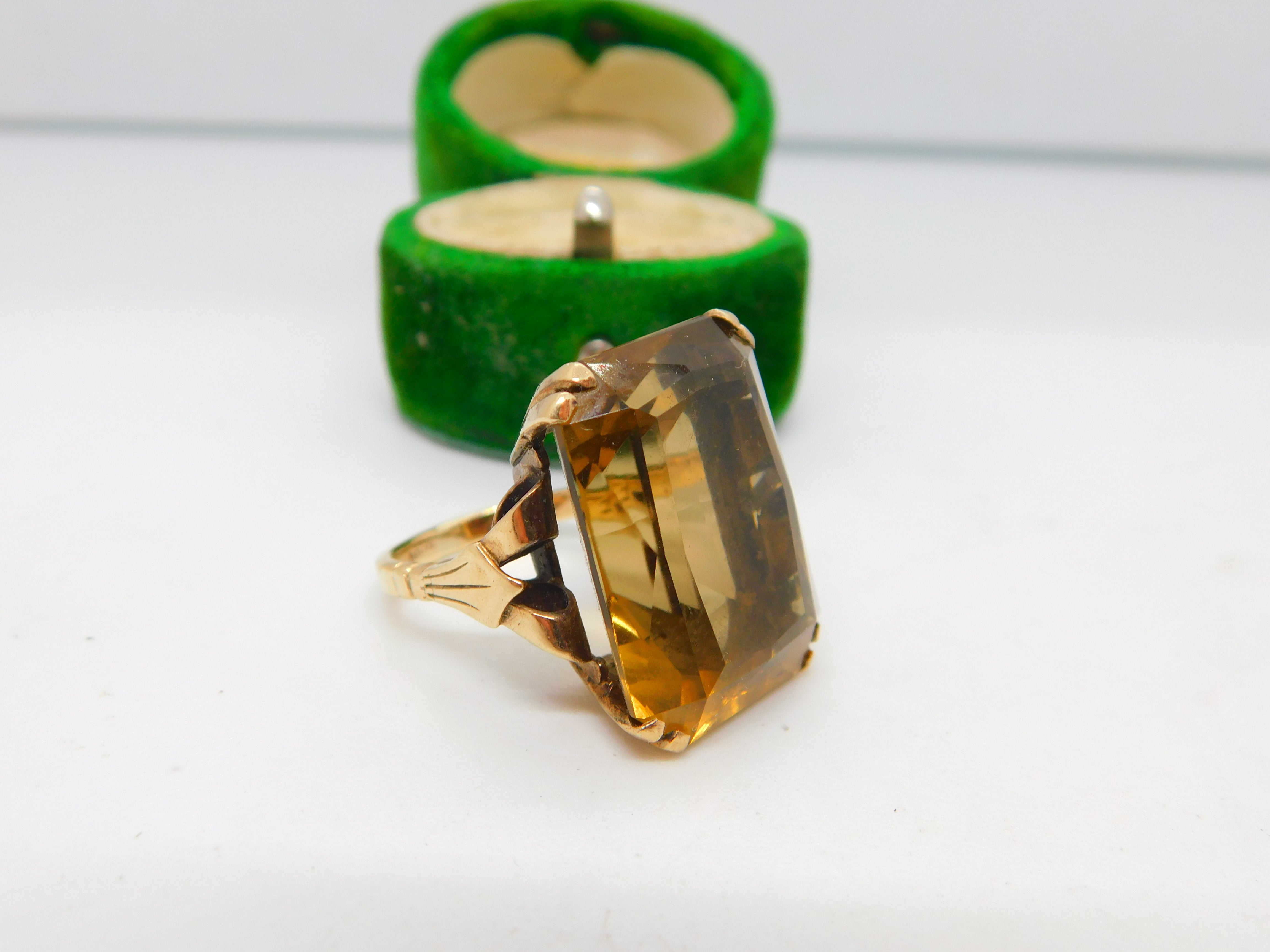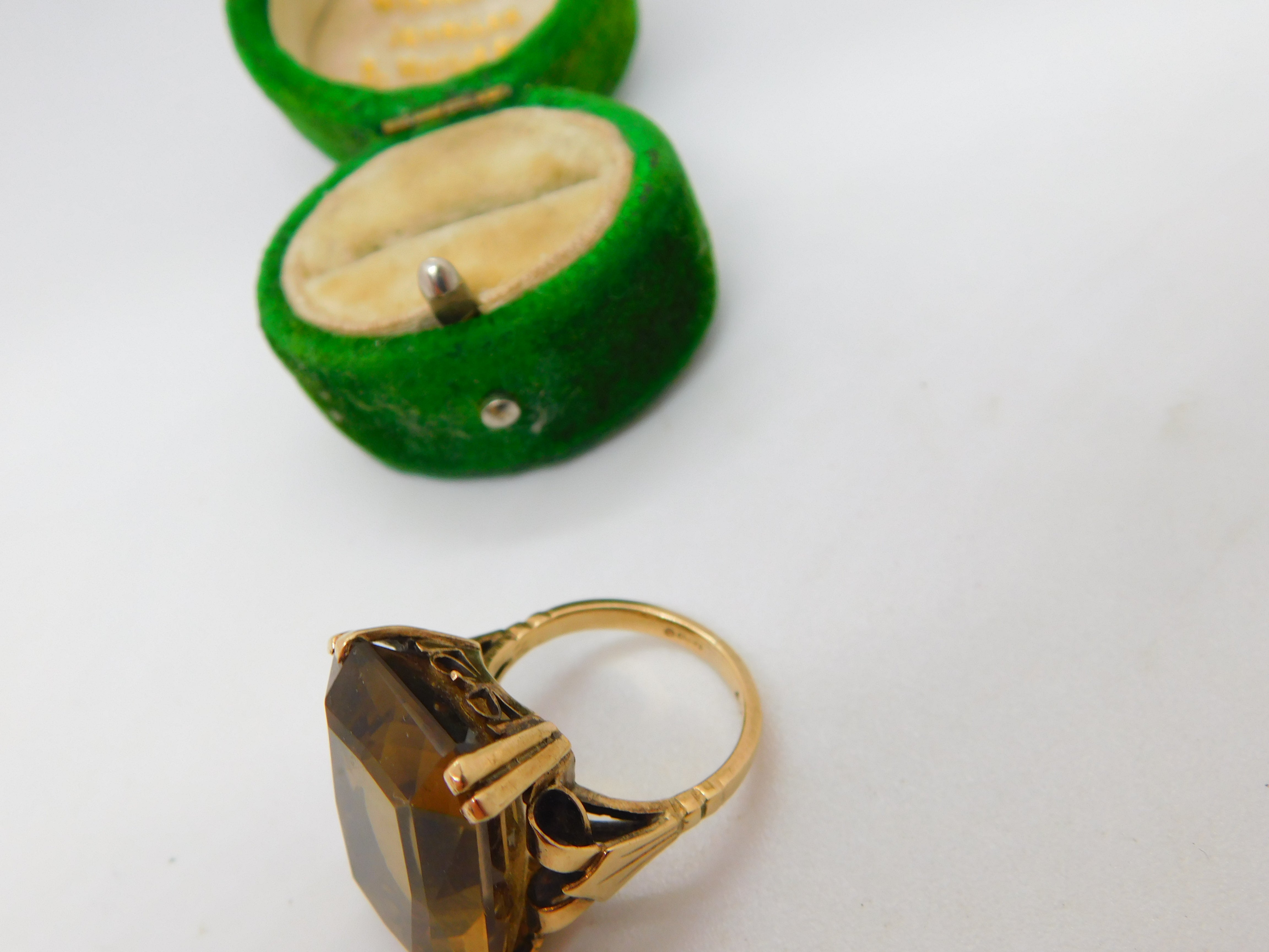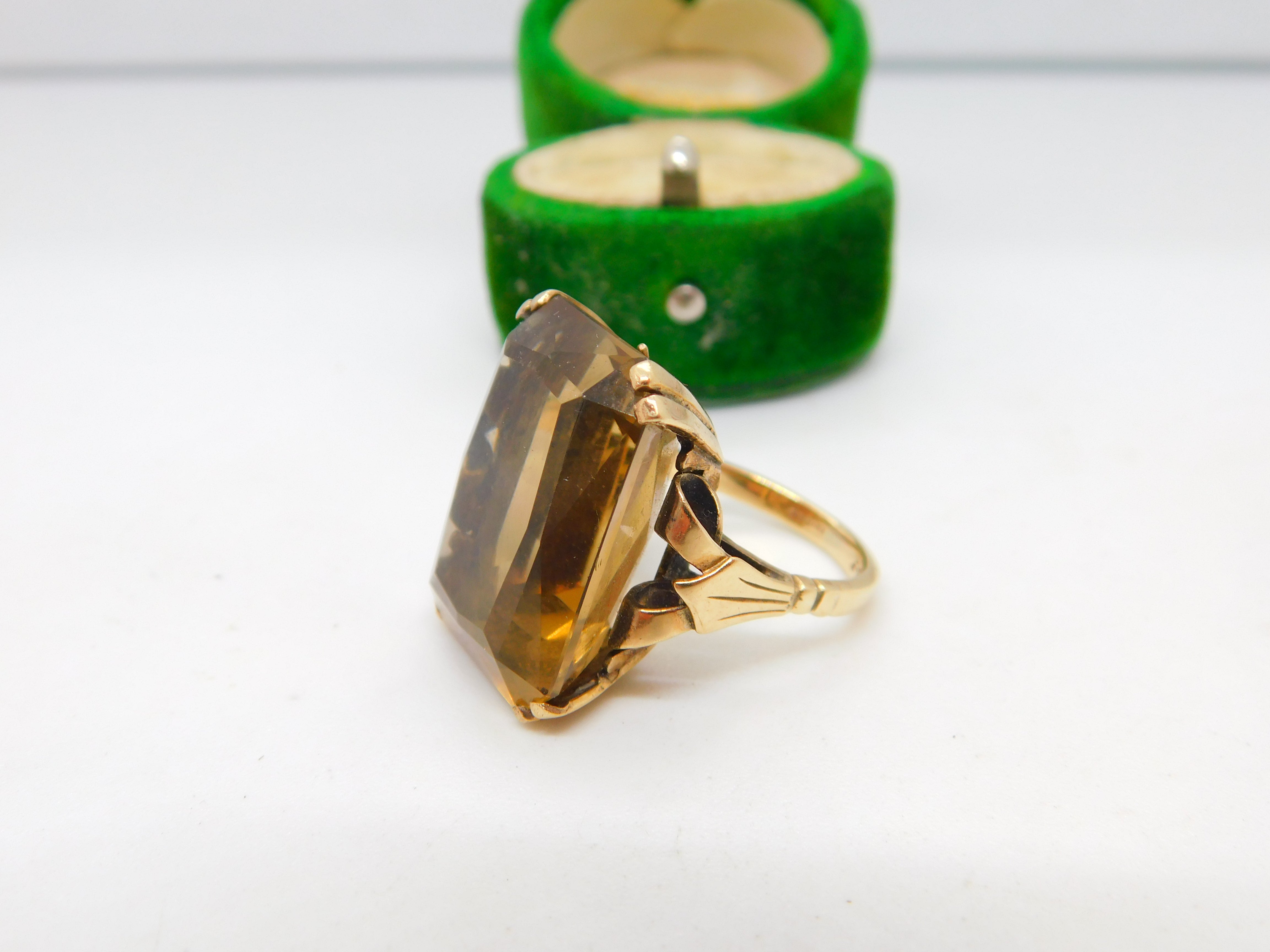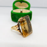 9ct Yellow Gold & Large Smoky Quartz Cocktail Ring Vintage 1977 London