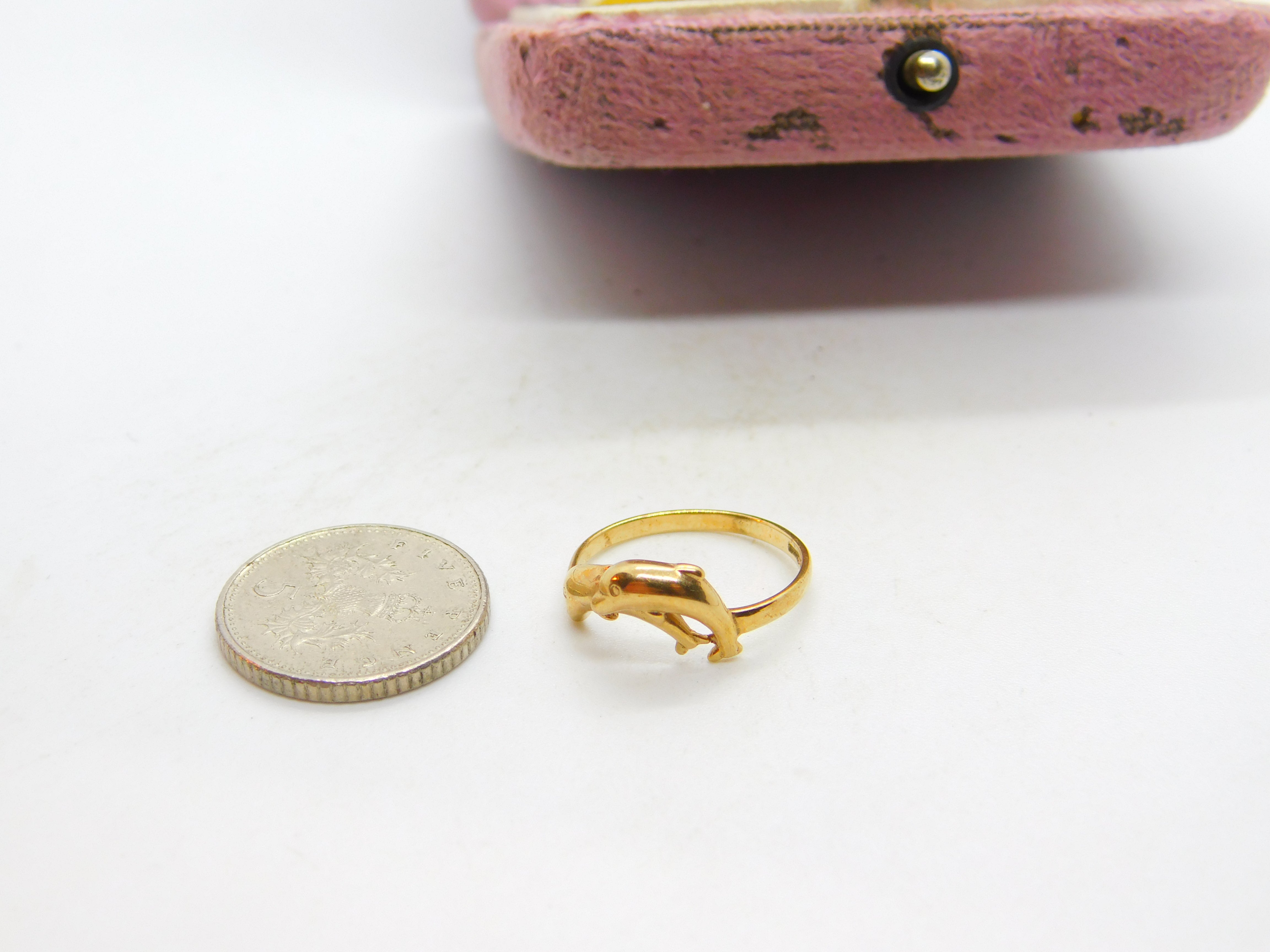 9ct Yellow Gold Leaping Dolphin Band Ring Vintage c1970 Birmingham