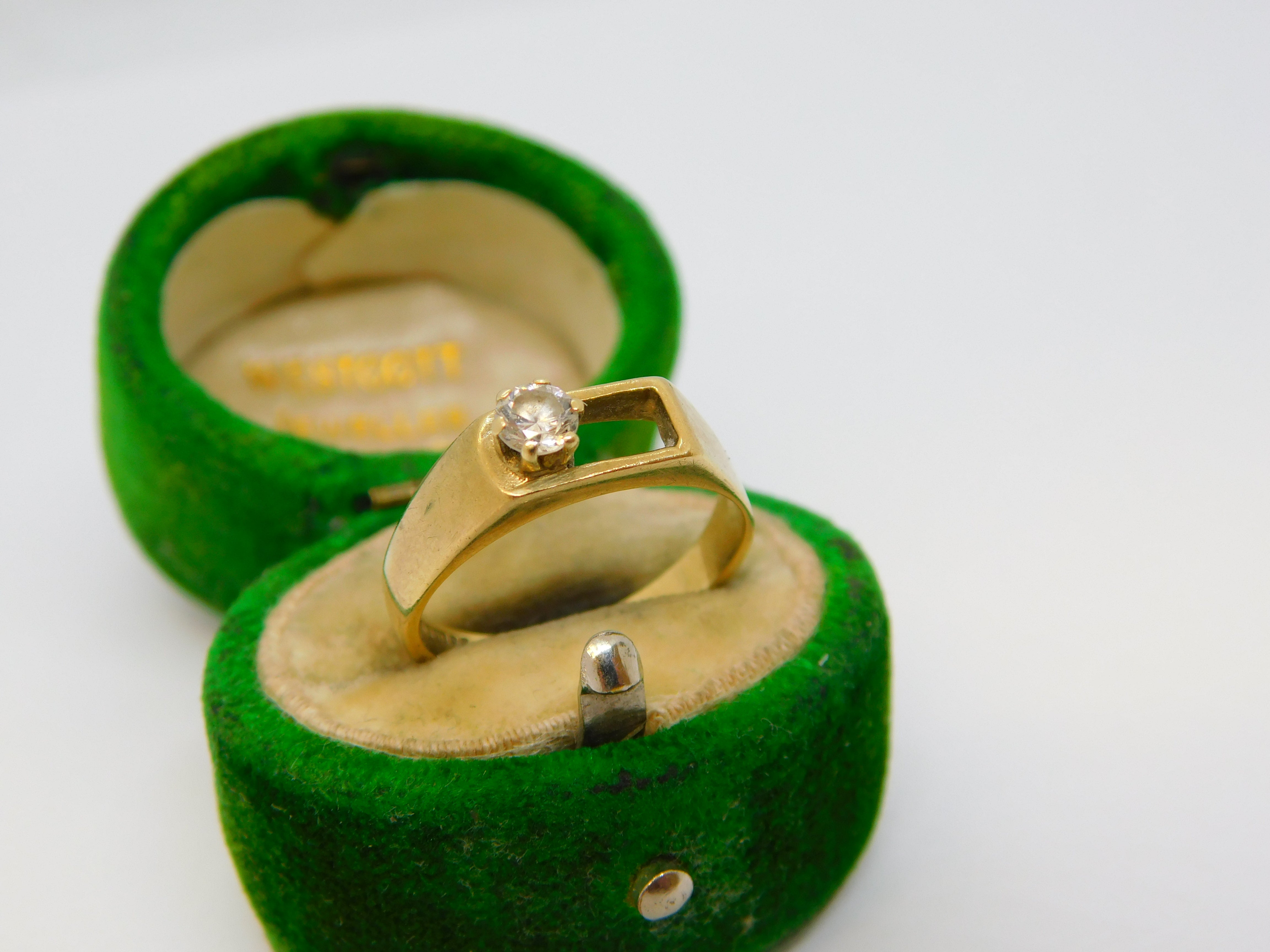 Details: A fantastic and wonderfully designed vintage 9ct yellow gold modernist band ring set with spinel in abstract style hallmarked Birmingham 1982. This is a wonderful item that would make a perfect gift or addition to any collection. The BOX pictured is for PRESENTATION ONLY and is NOT included in the listings but used to frame the pictures unless specifically stated otherwise.