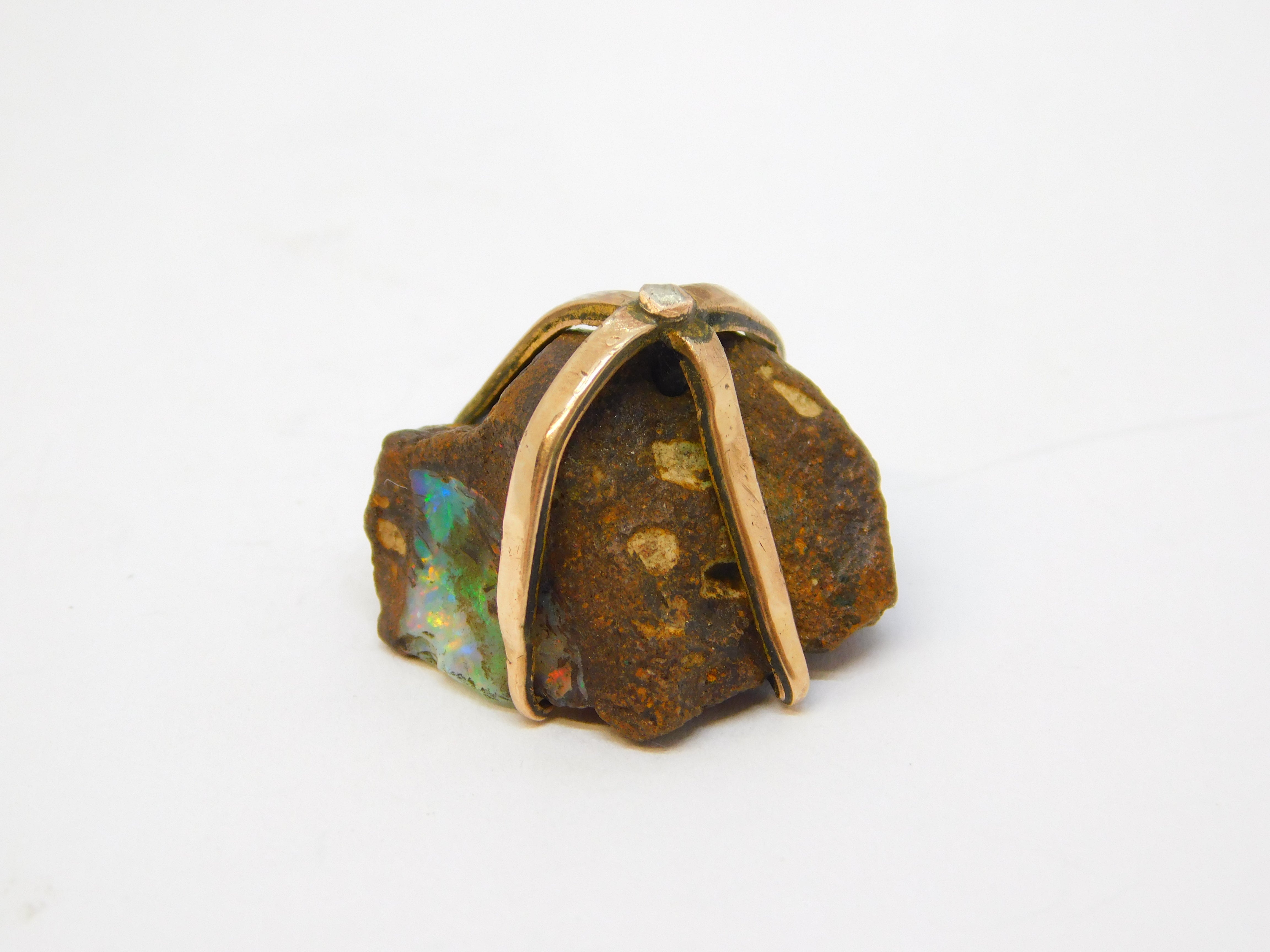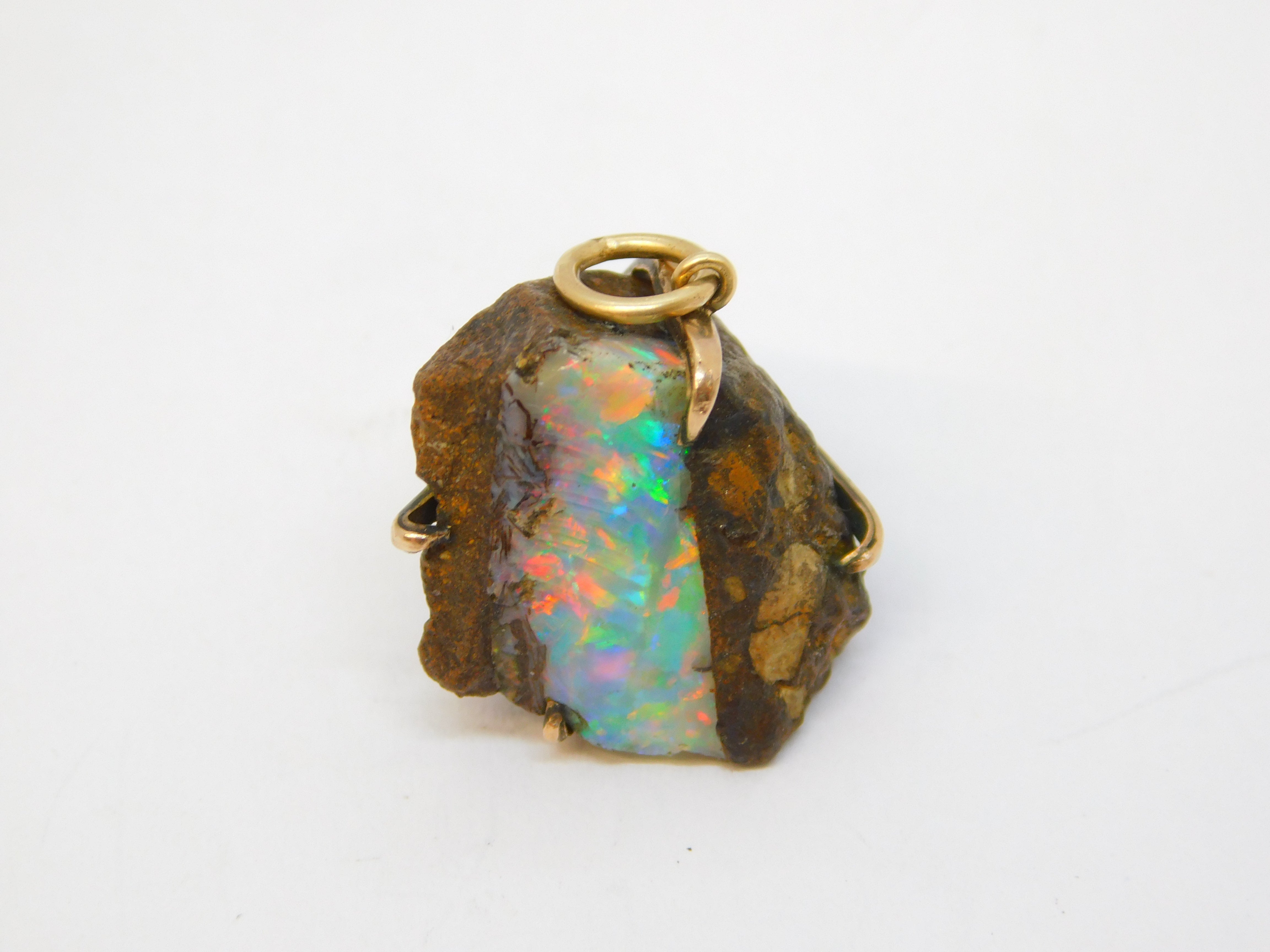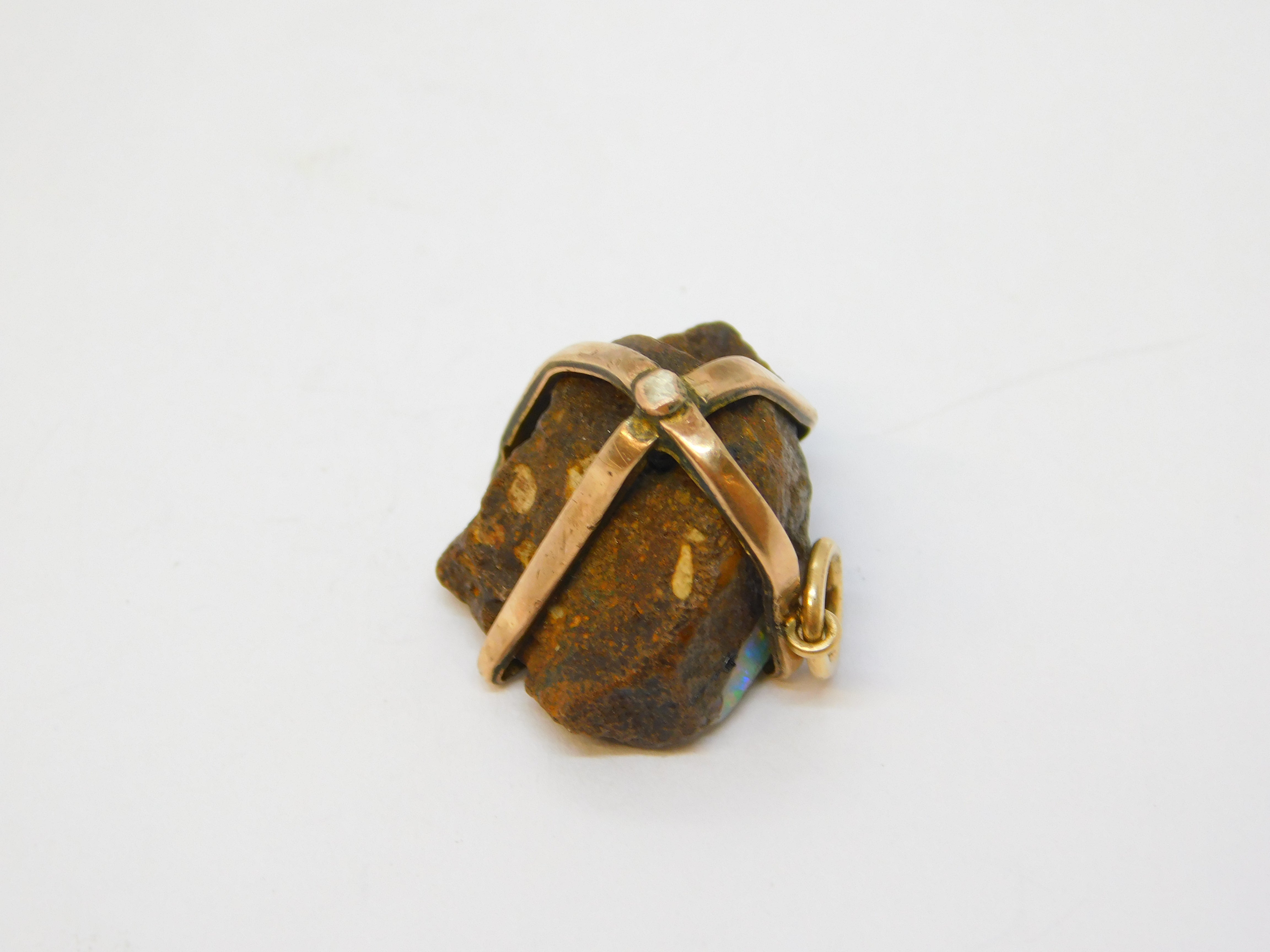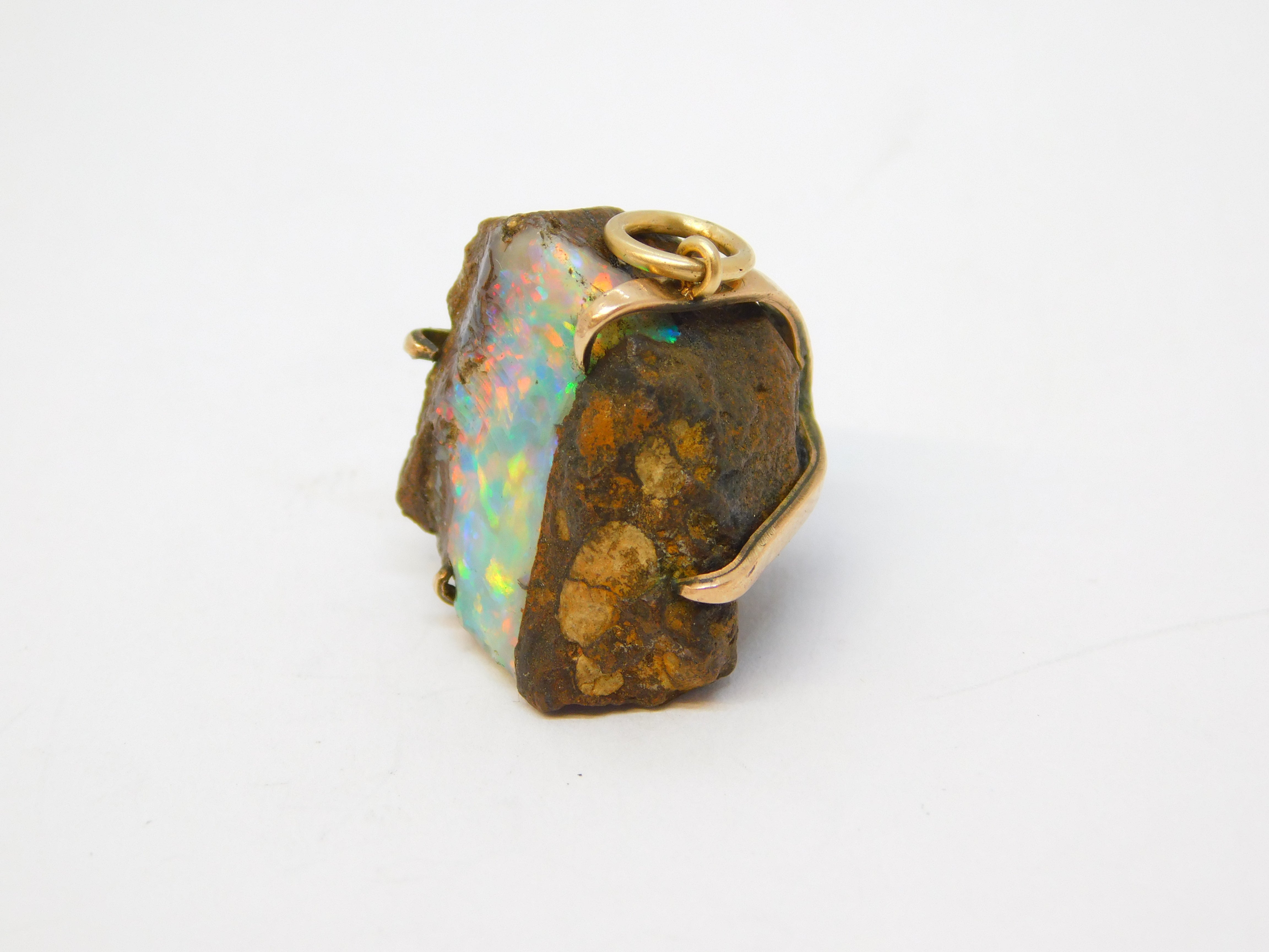 9ct Yellow Gold Mounted True Boulder Opal Set Drop Pendant Antique c1920
