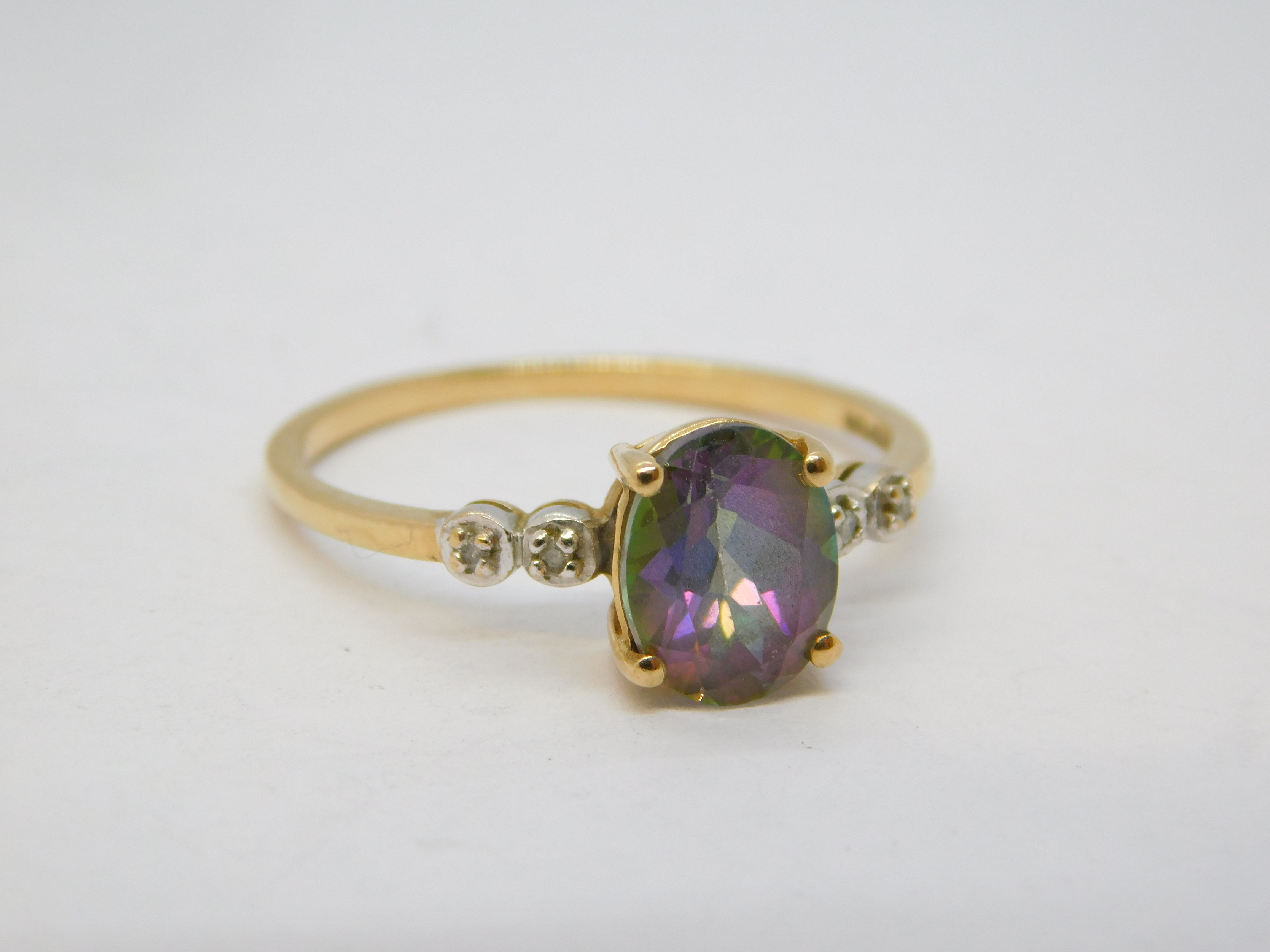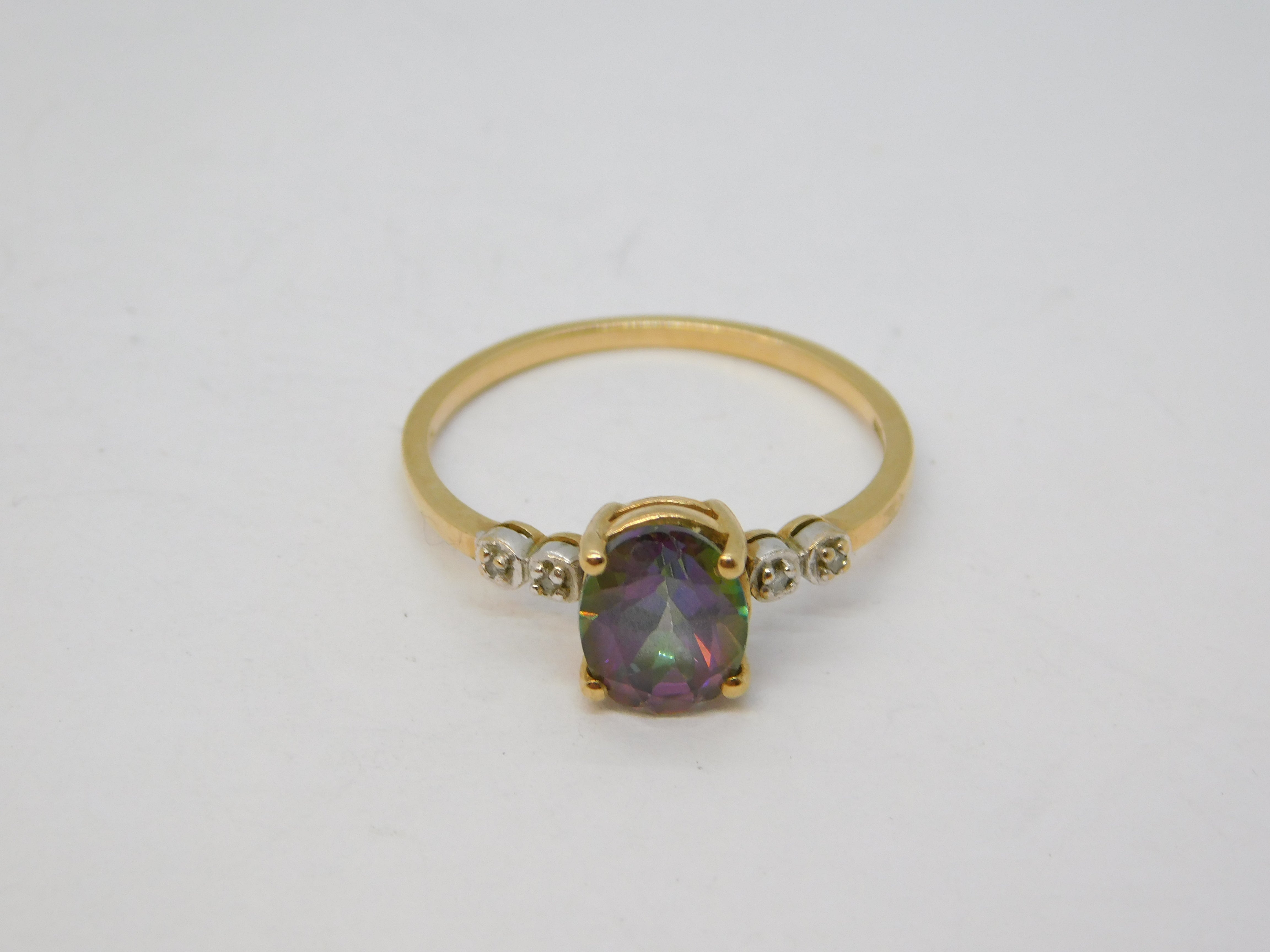 9ct Yellow Gold, Mystic Topaz & Diamond Dress Ring Vintage c1990 Sheffield