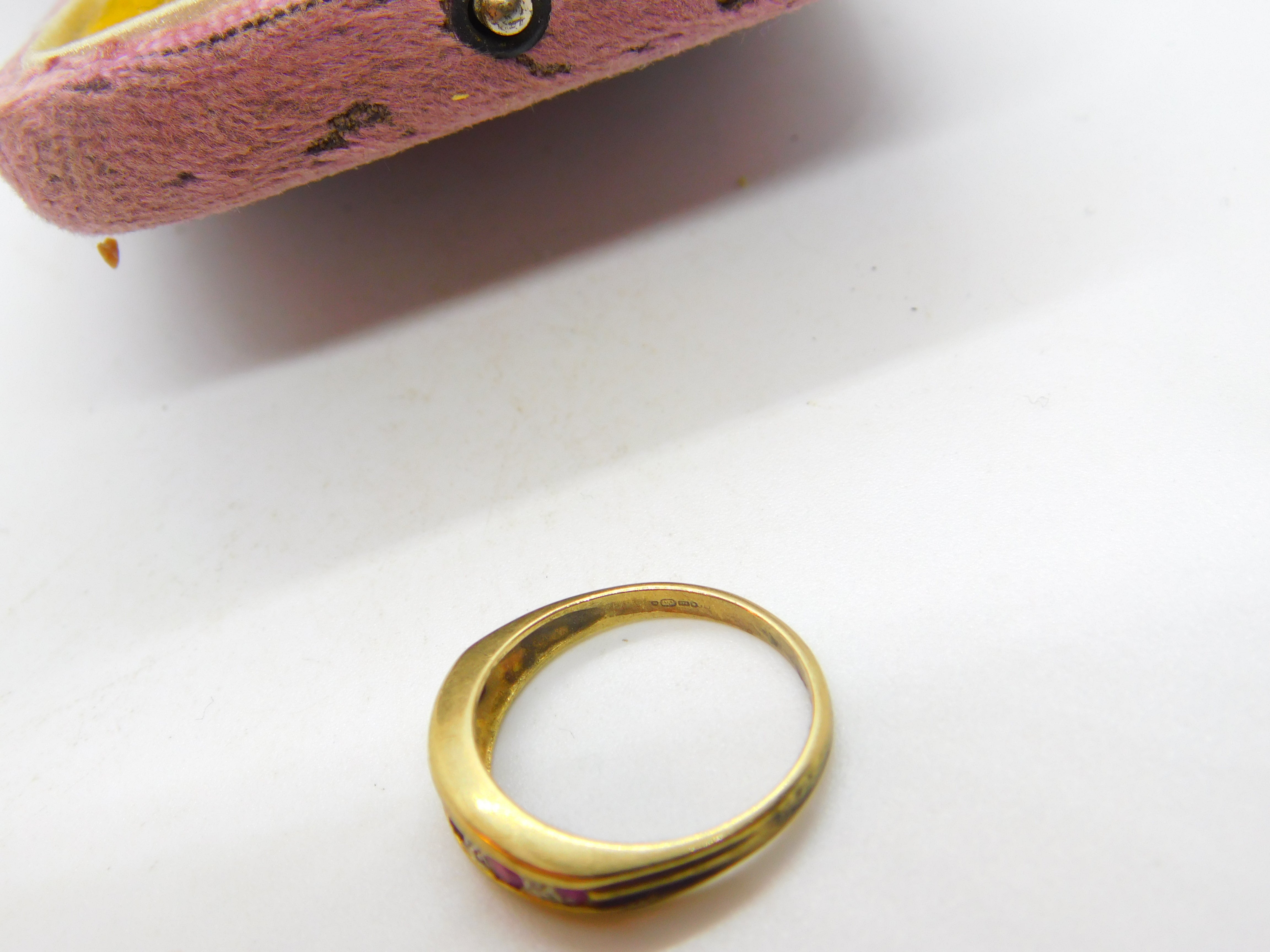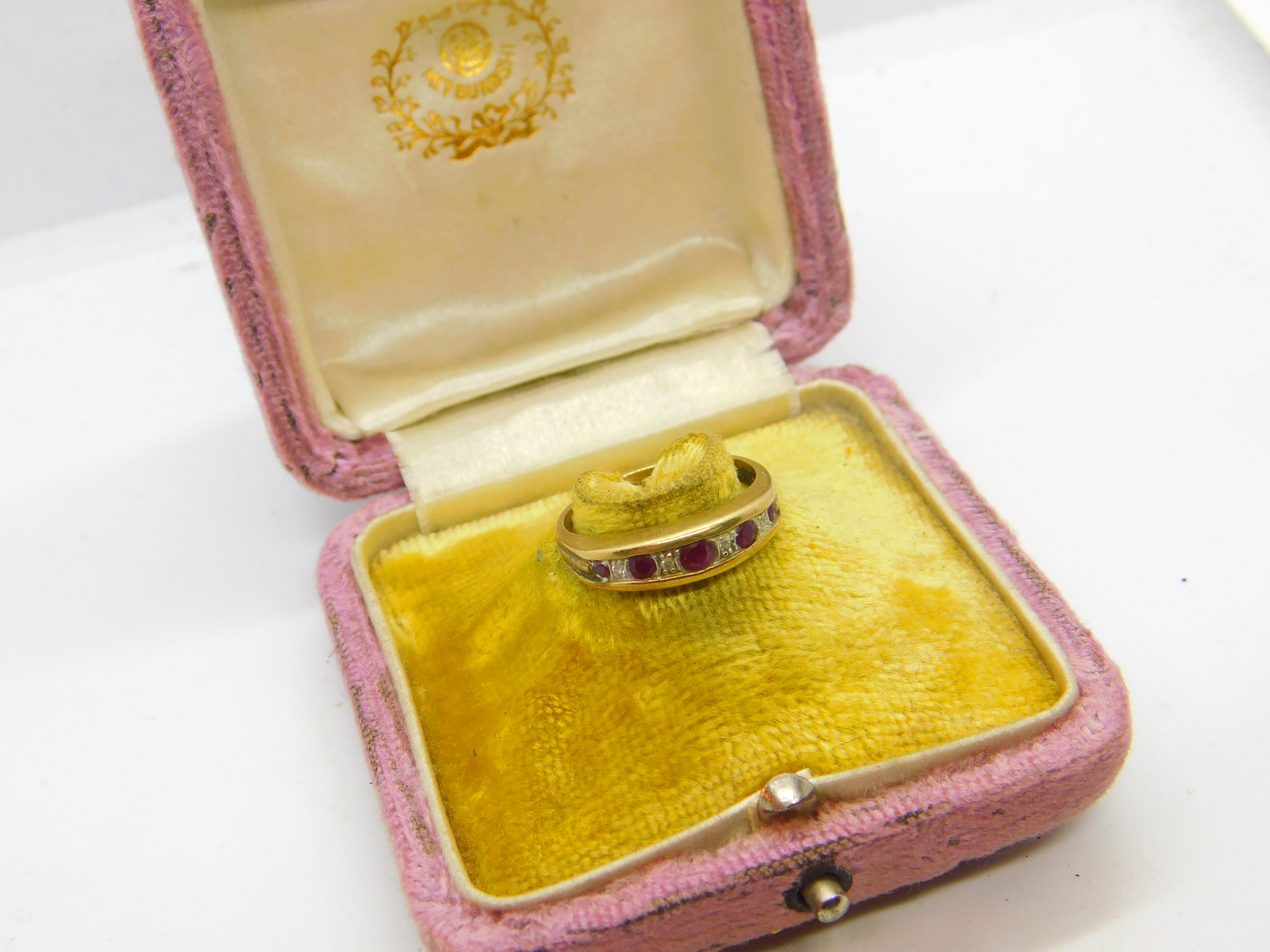 9ct Yellow Gold, Natural Ruby & Diamond Boat Ring Vintage c1970 London