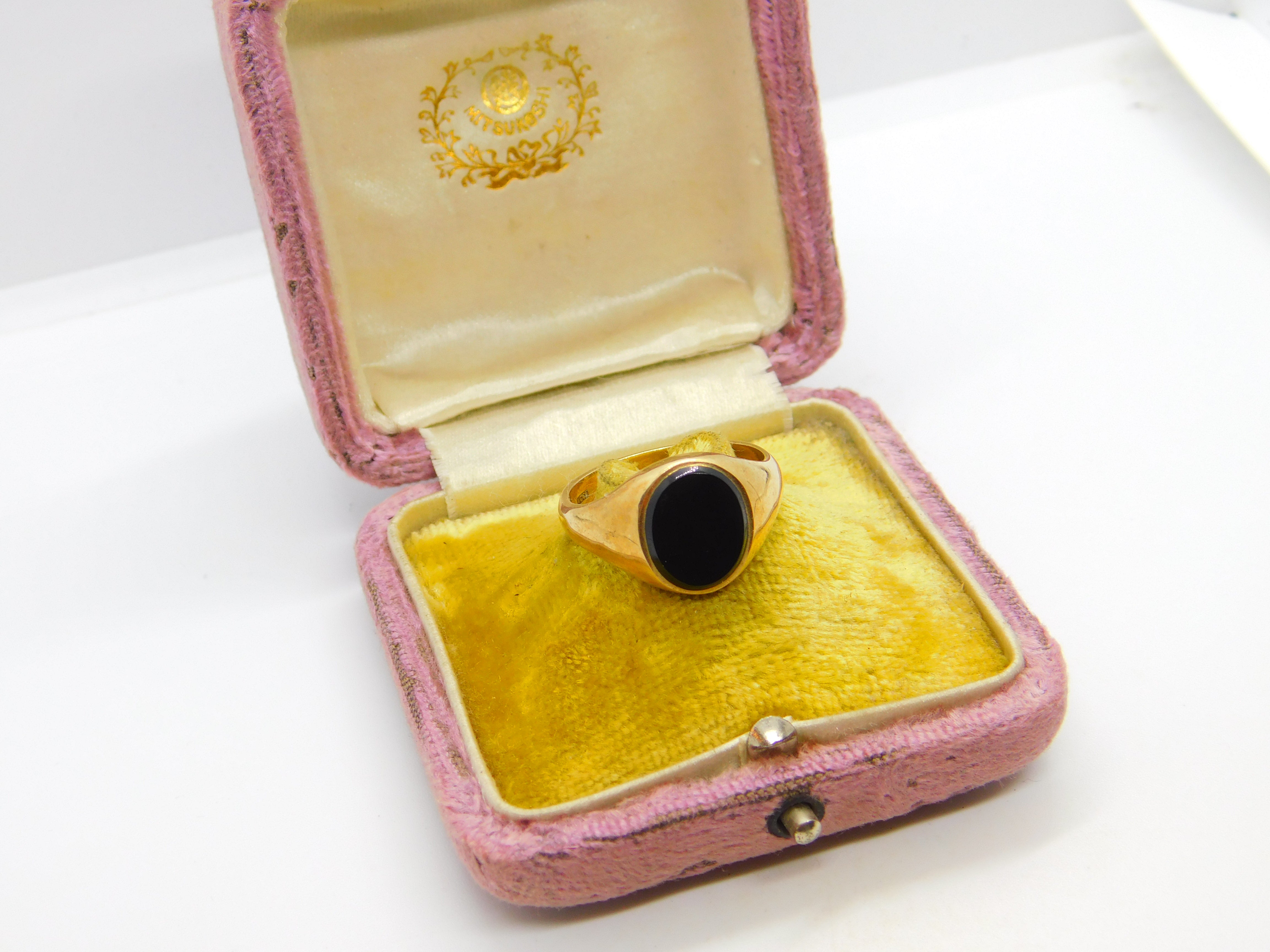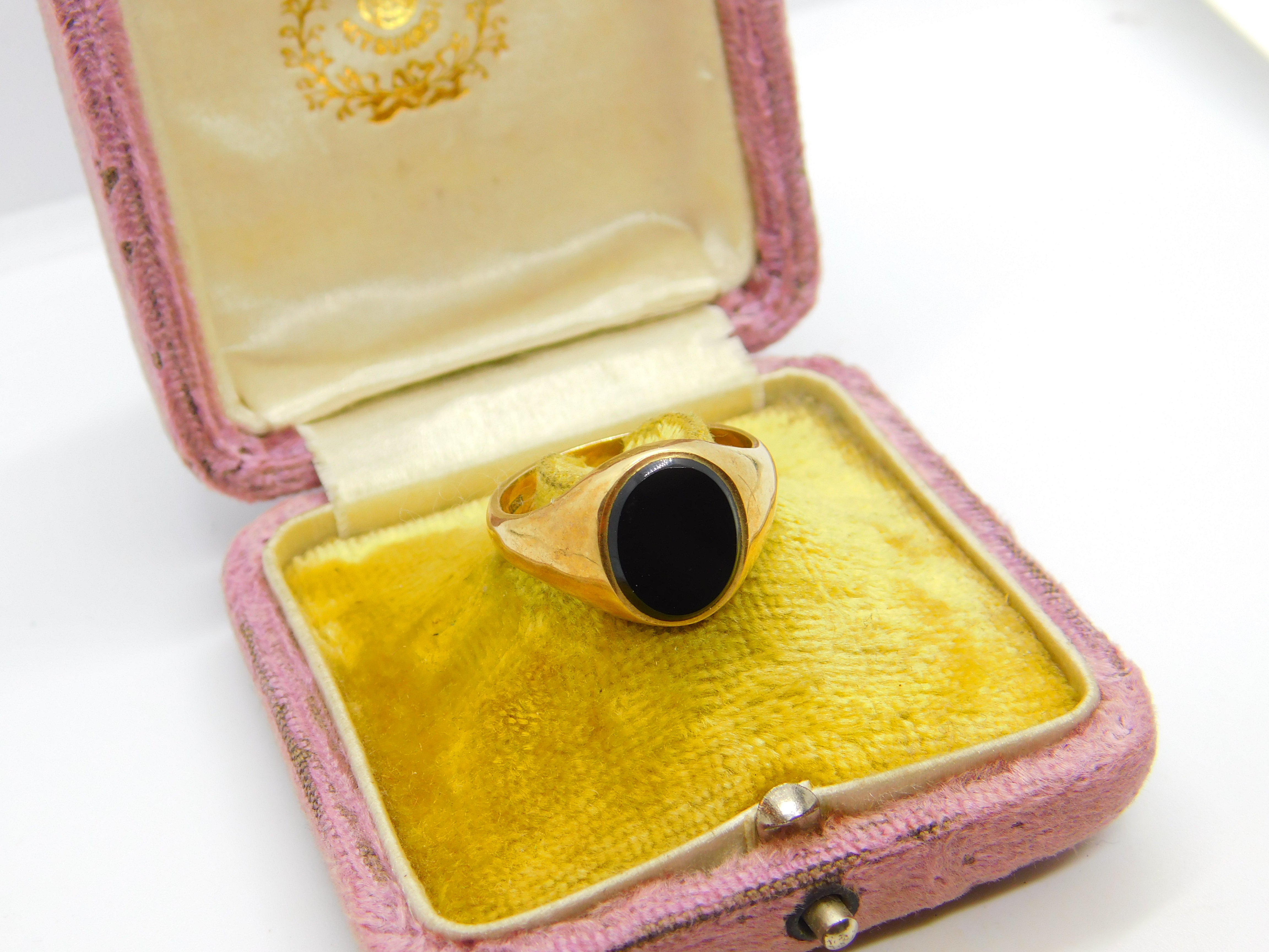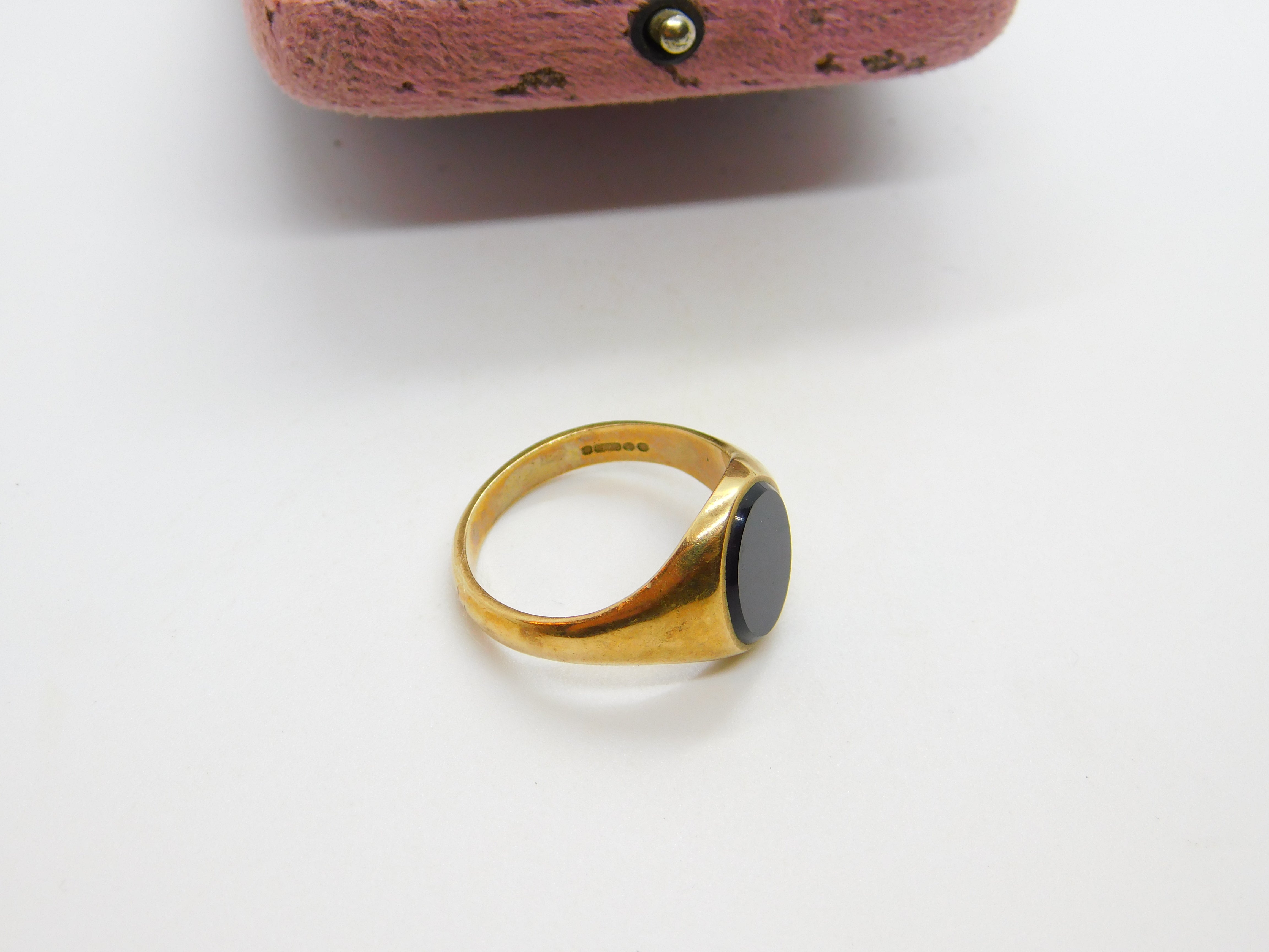 9ct Yellow Gold & Onyx Set Gents Signet Ring Vintage 1965 London