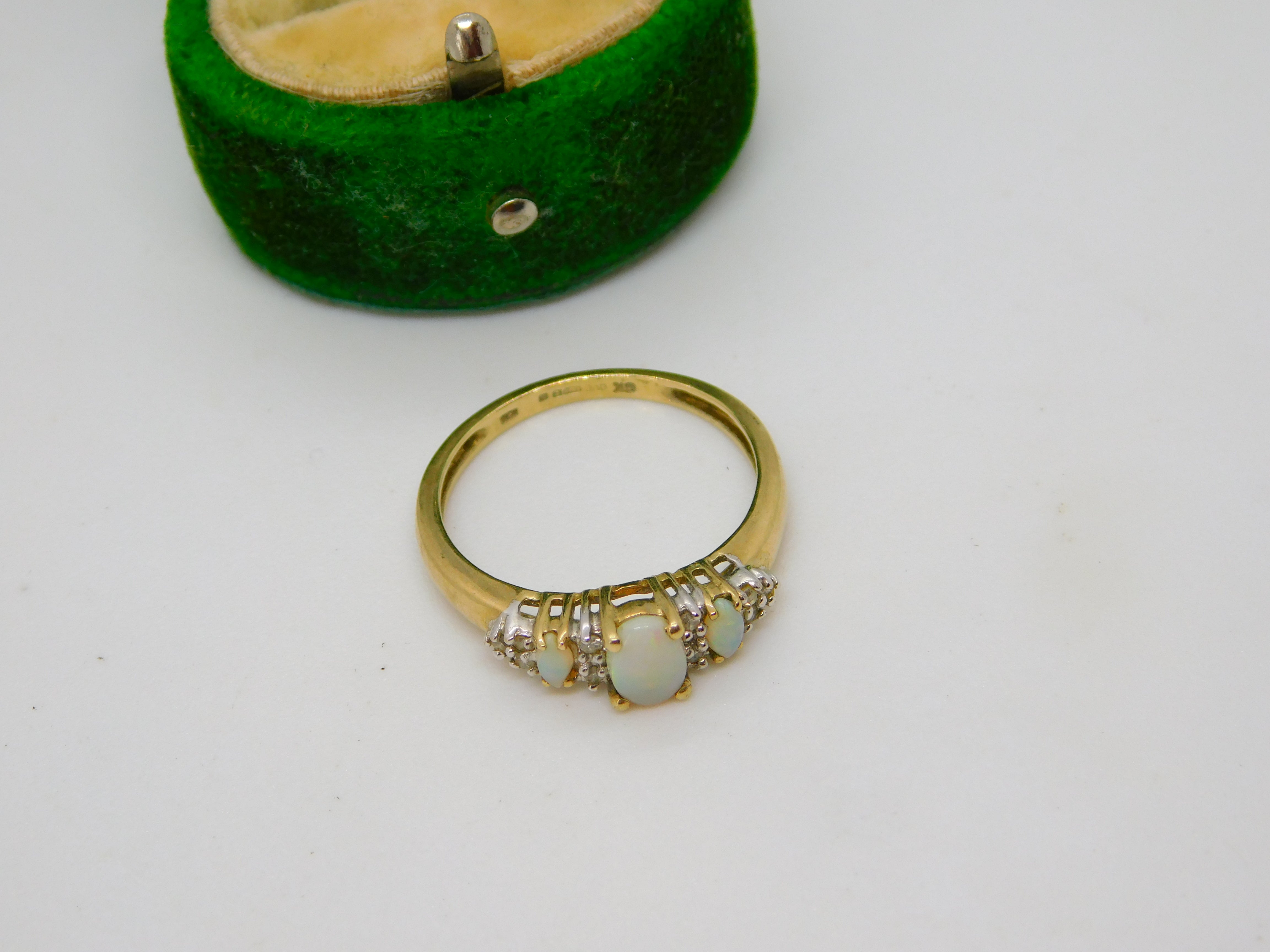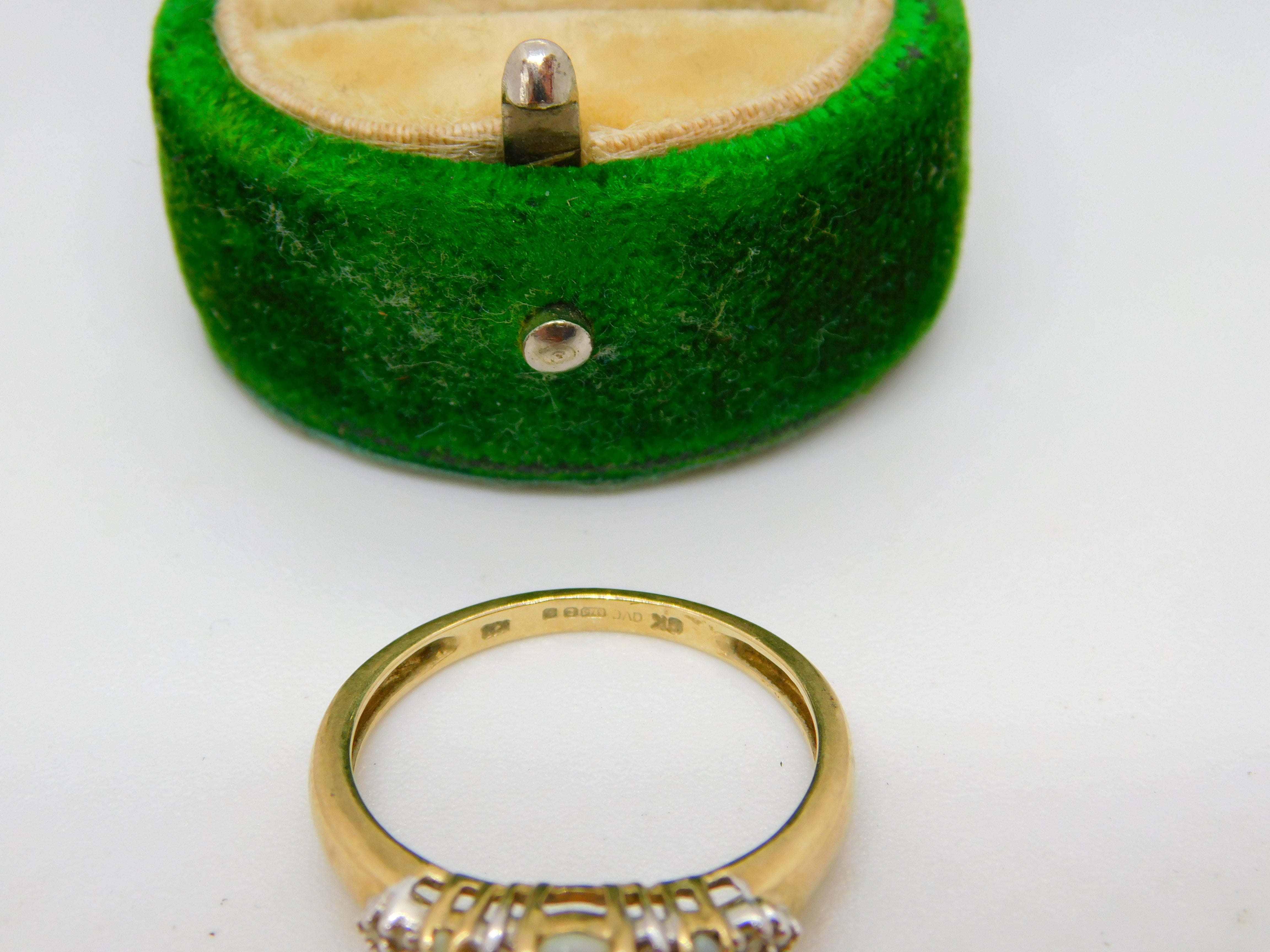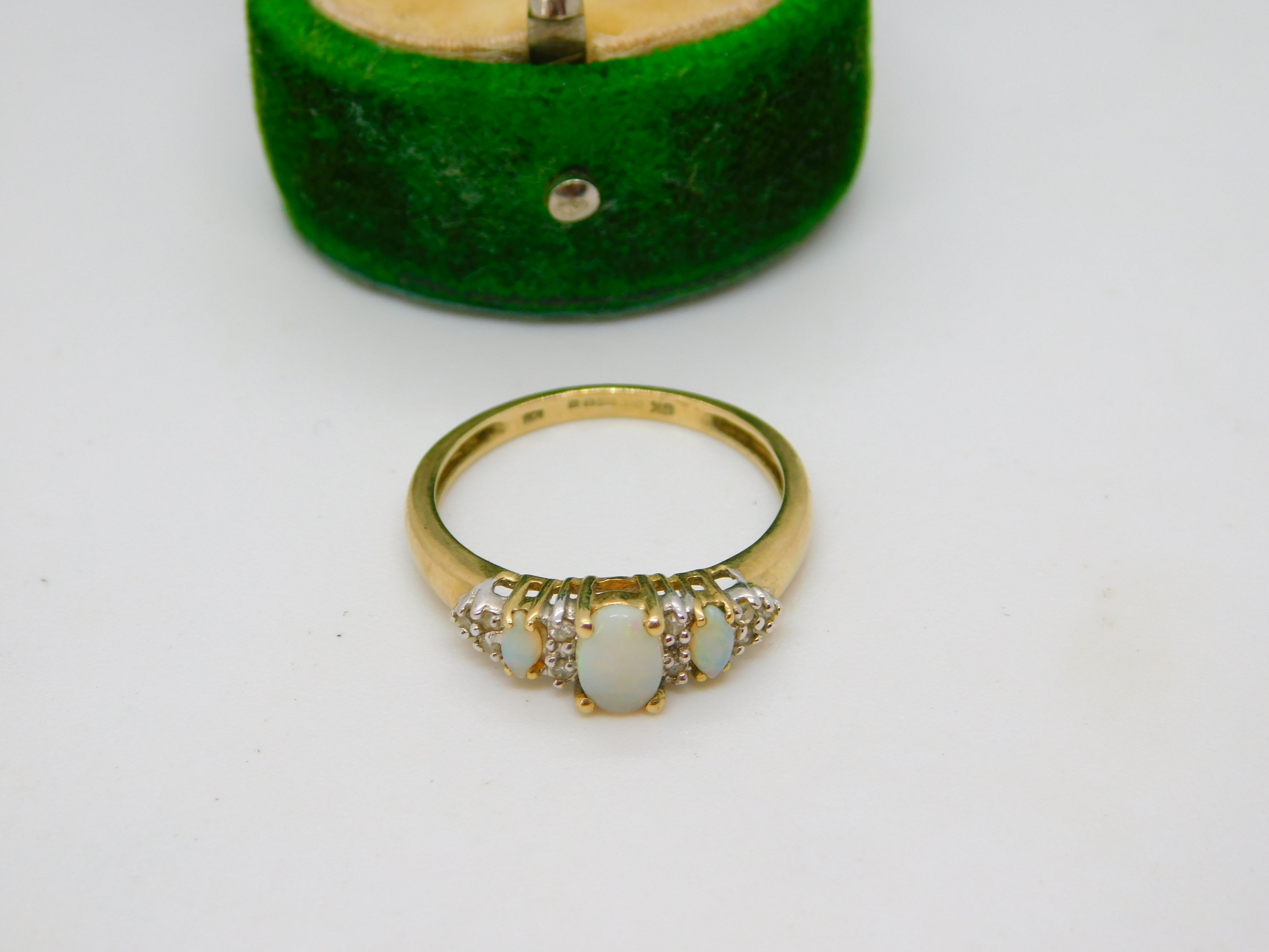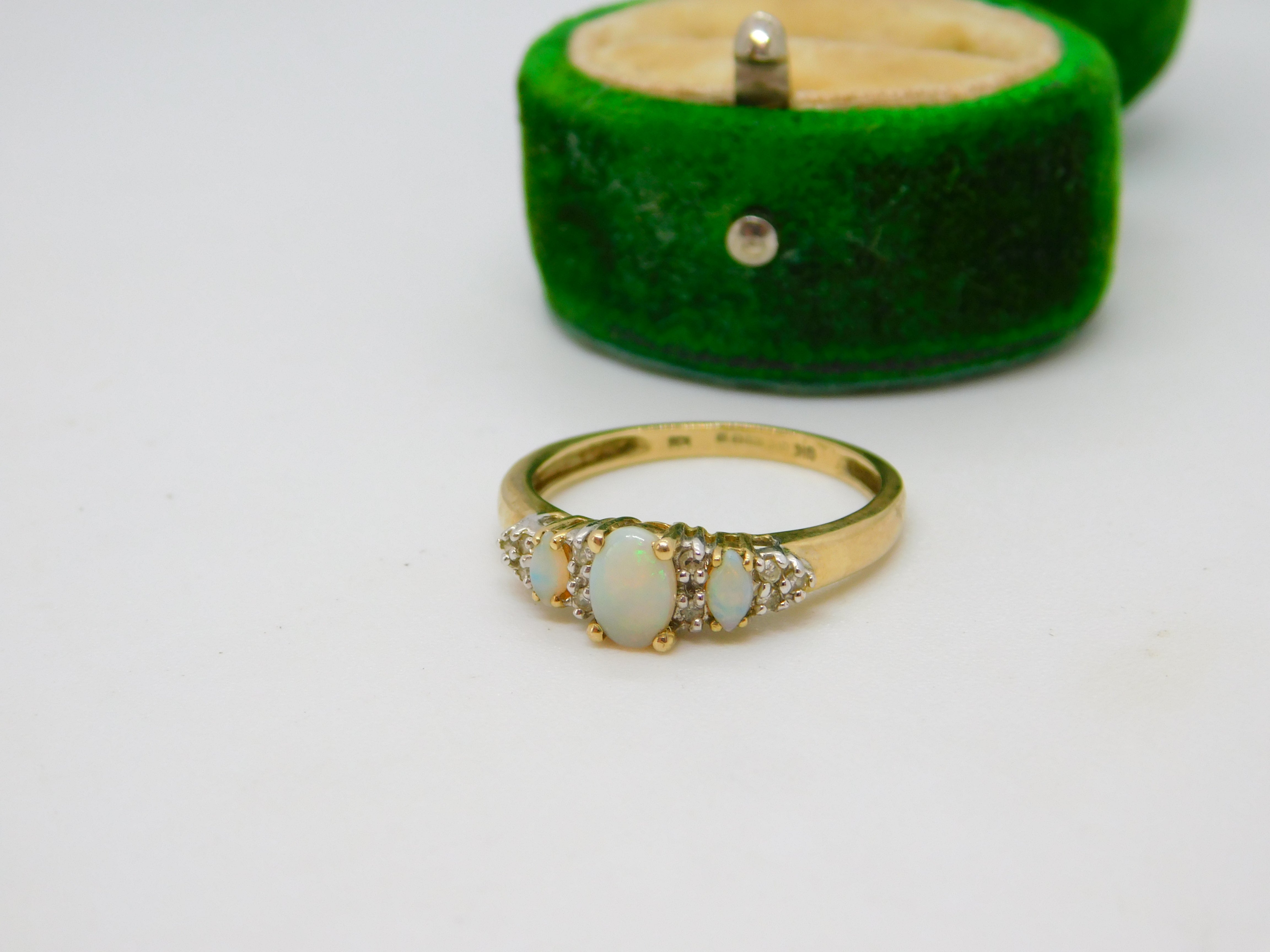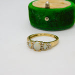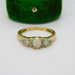 9ct Yellow Gold, Opal & White Spinel Set Dress Ring Vintage c1990 London
