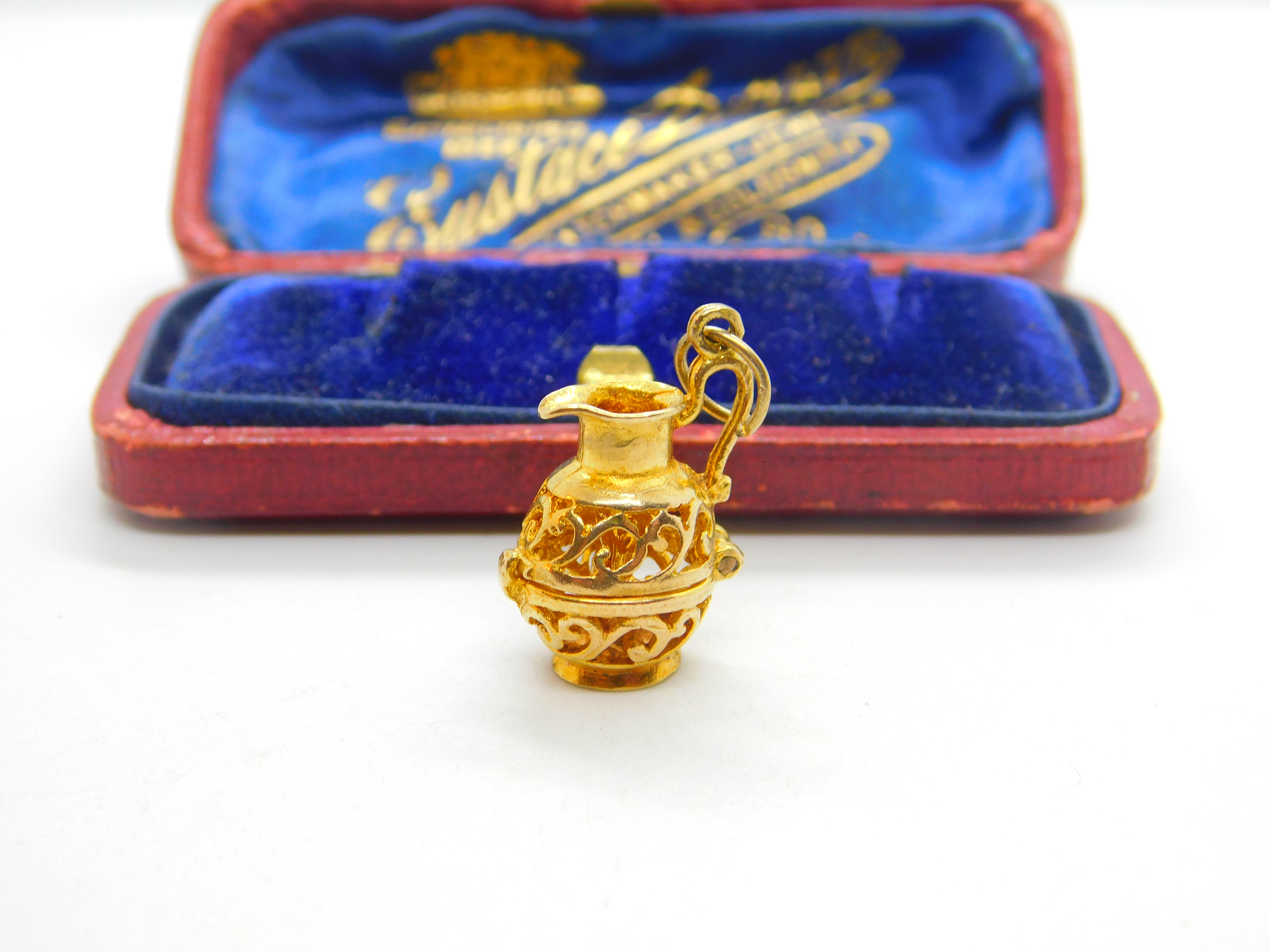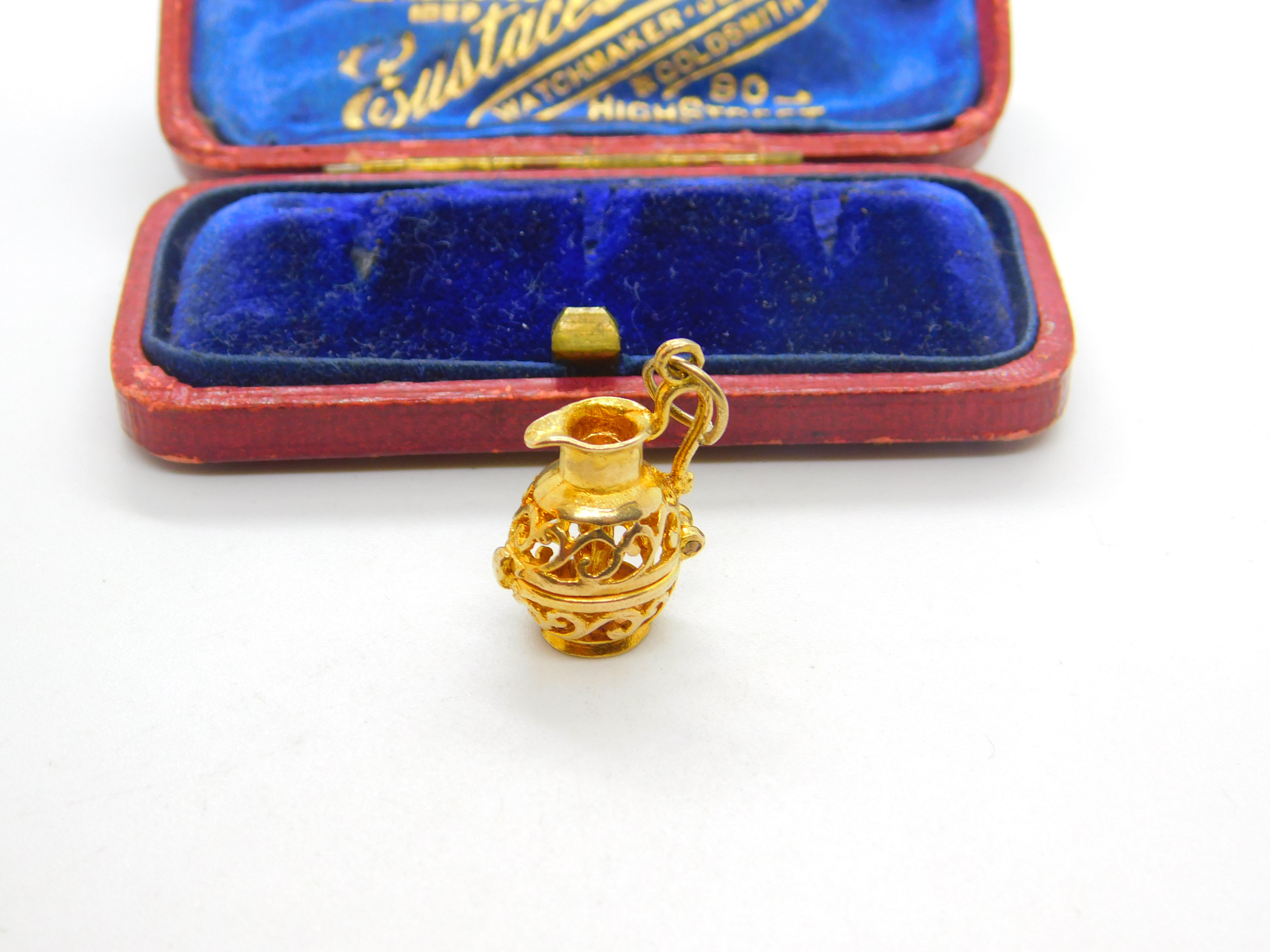 9ct Yellow Gold Opening Lady in the Wine Jug Charm 1977 Birmingham Vintage