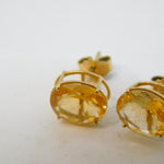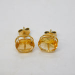 9ct Yellow Gold Orange Citrine Set Stud Earrings Vintage c1970