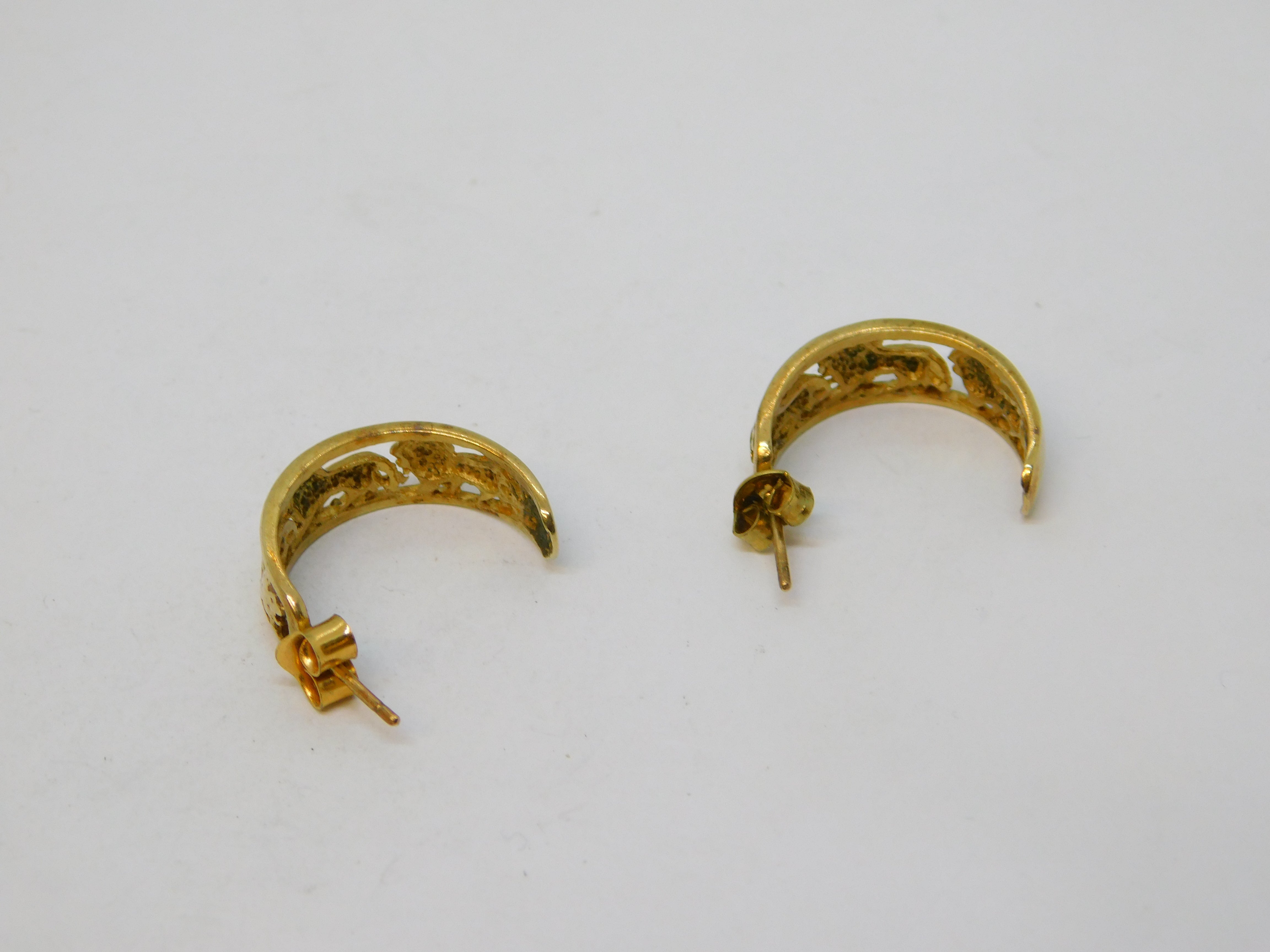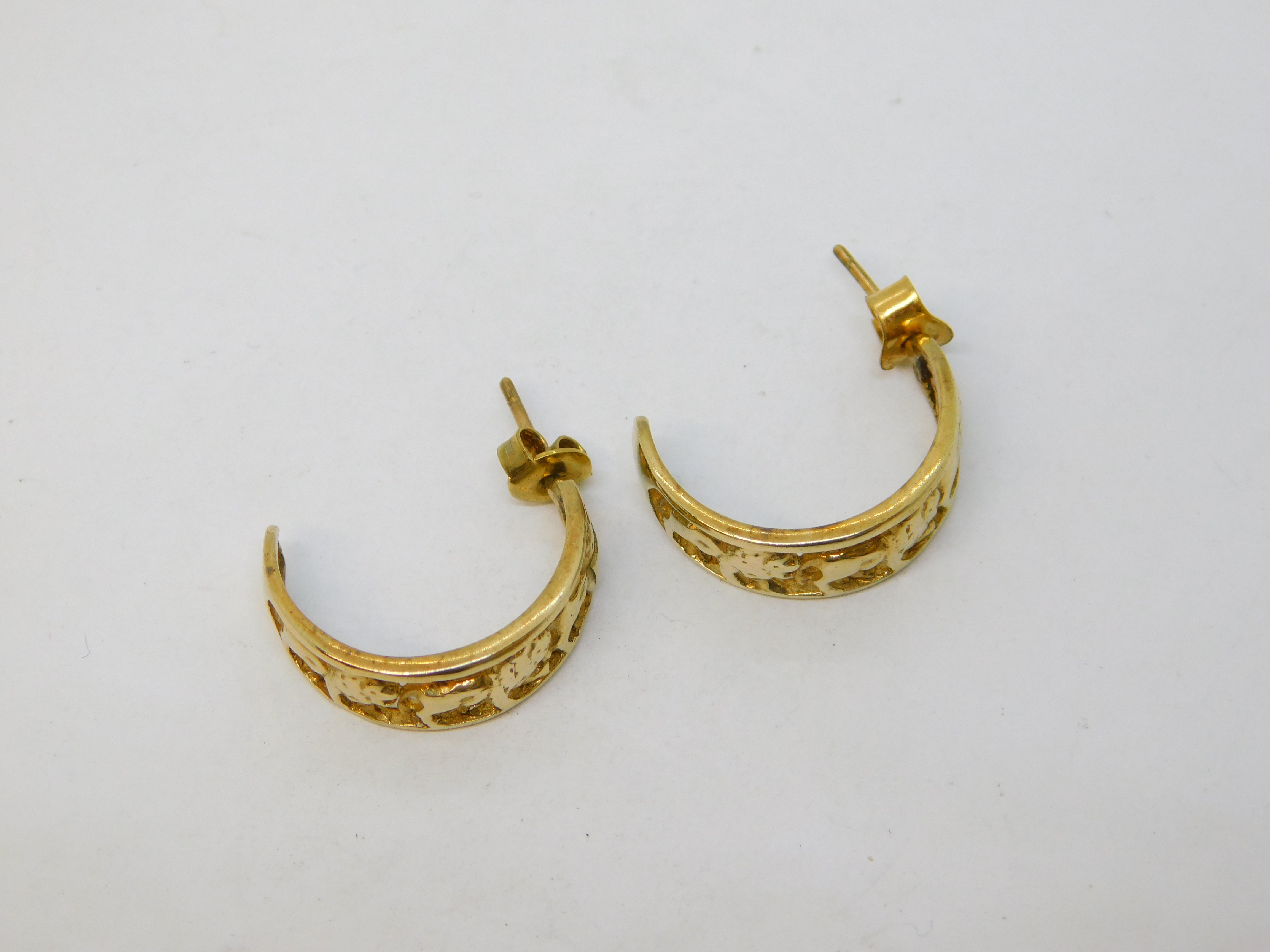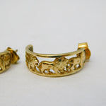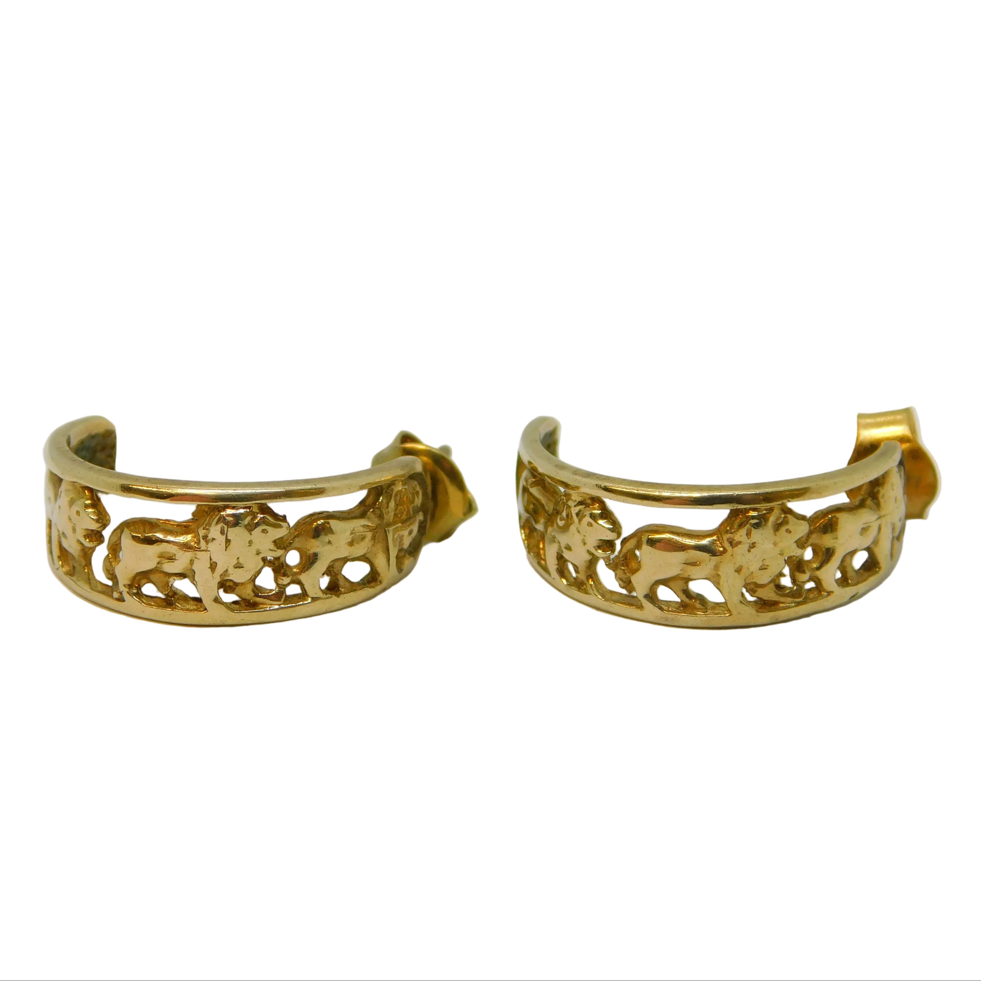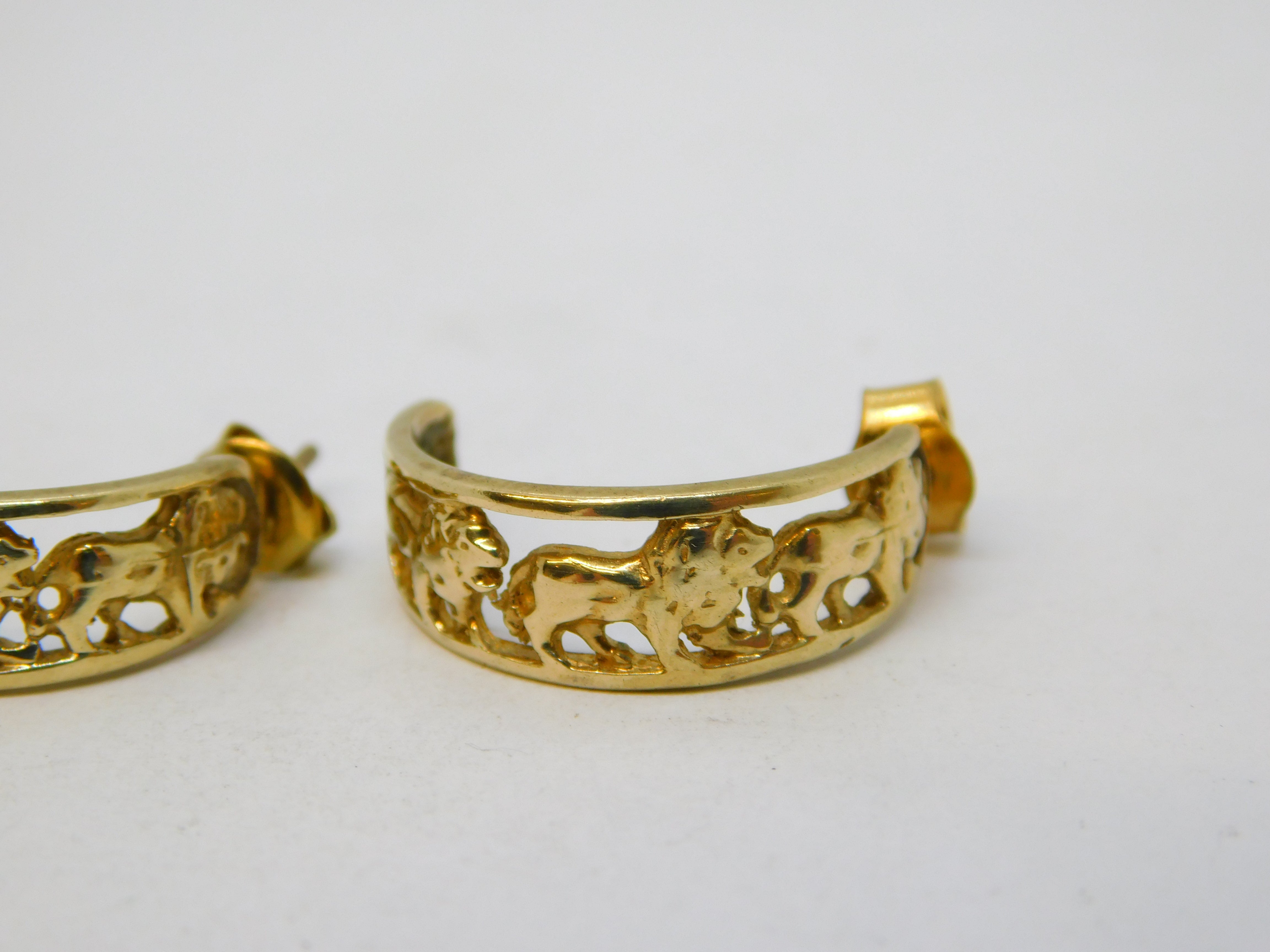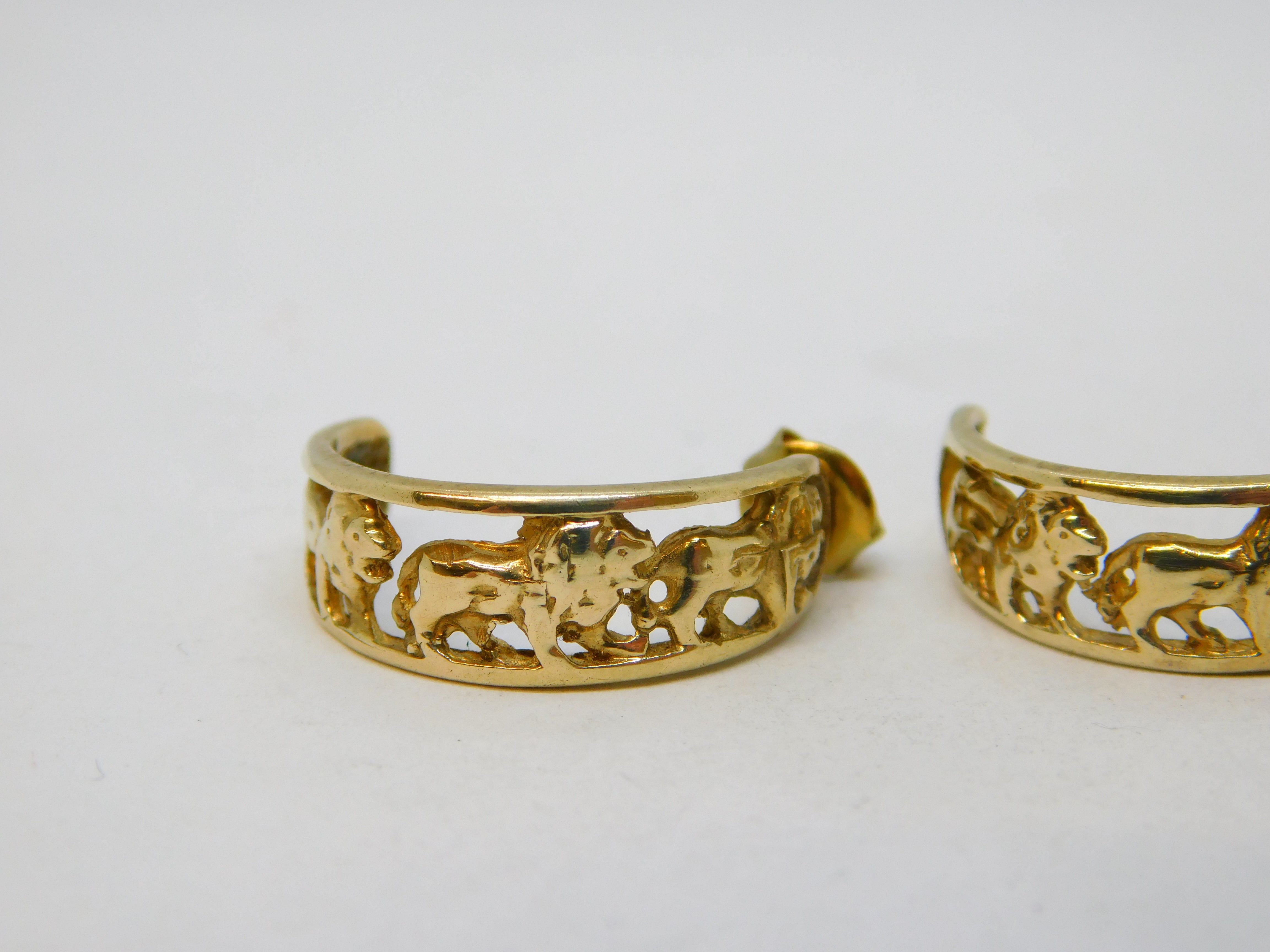 9ct Yellow Gold Pair of Walking Lion Hoop Earrings Vintage c1970s