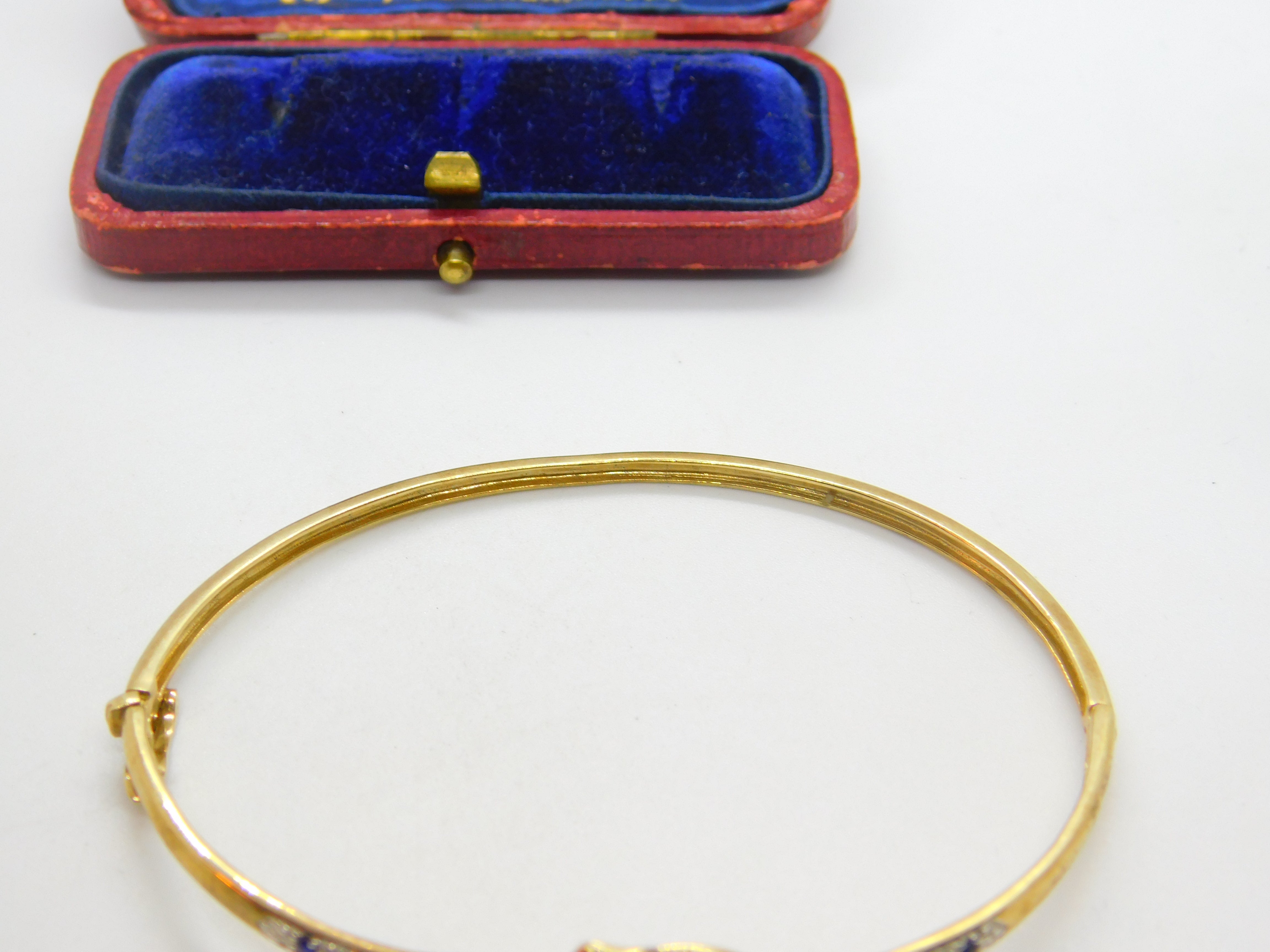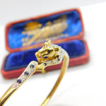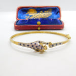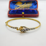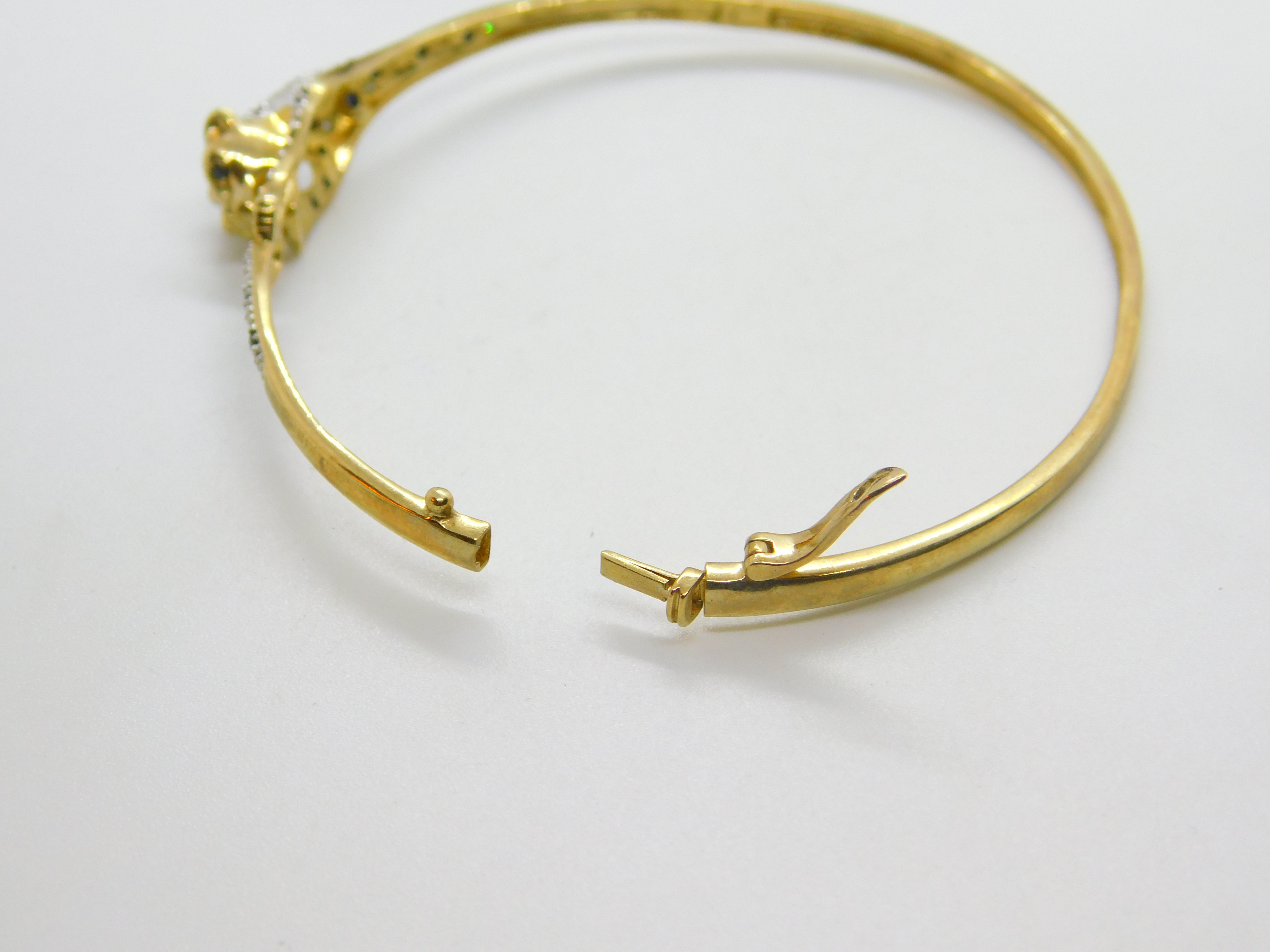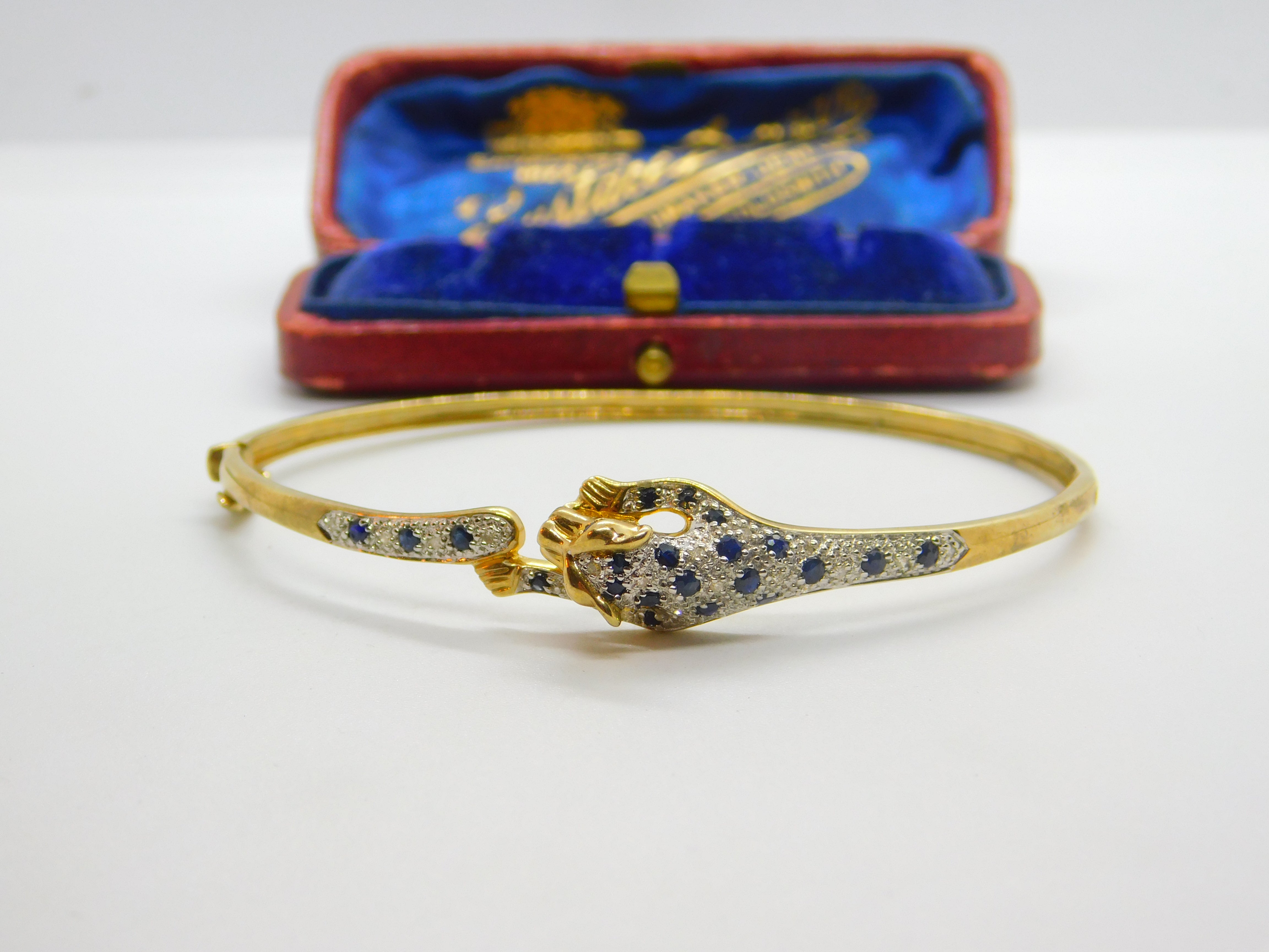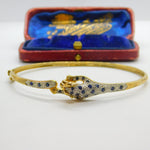 9ct Yellow Gold, Pave Set Sapphire & Diamond Leaping Panther Bangle Bracelet