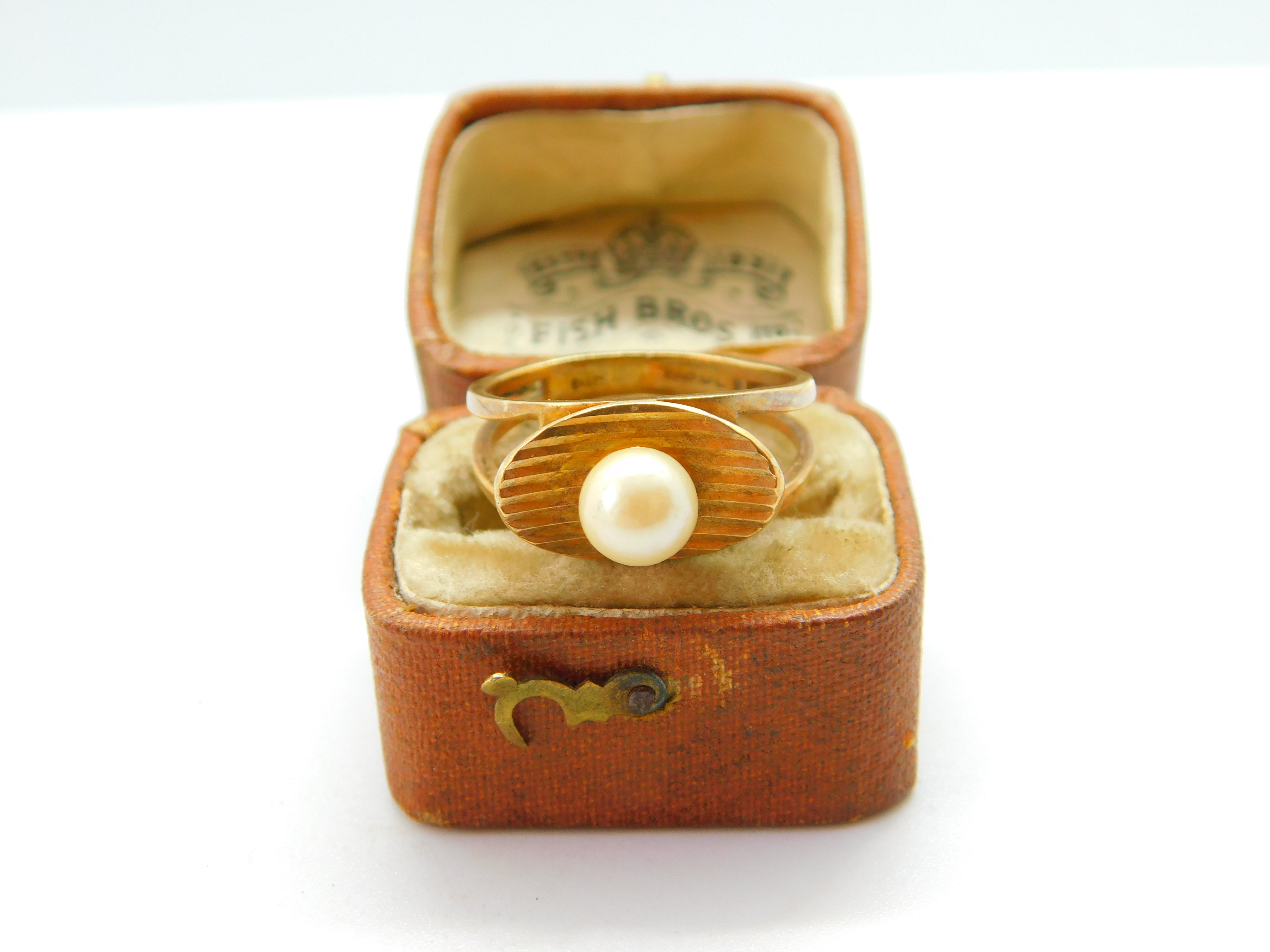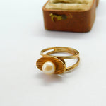 9ct Yellow Gold & Pearl Set Modernist Statement Ring 1967 London Vintage