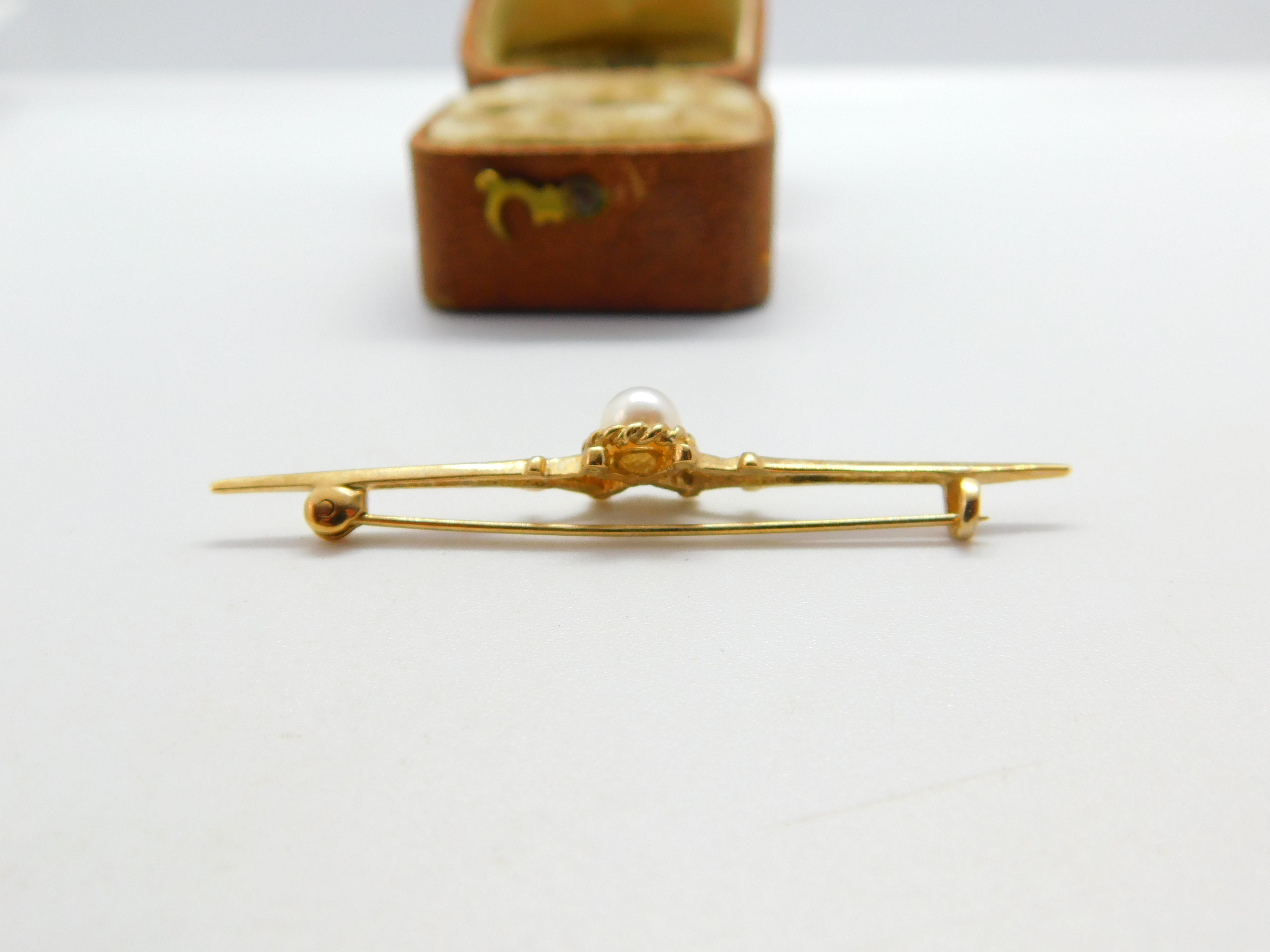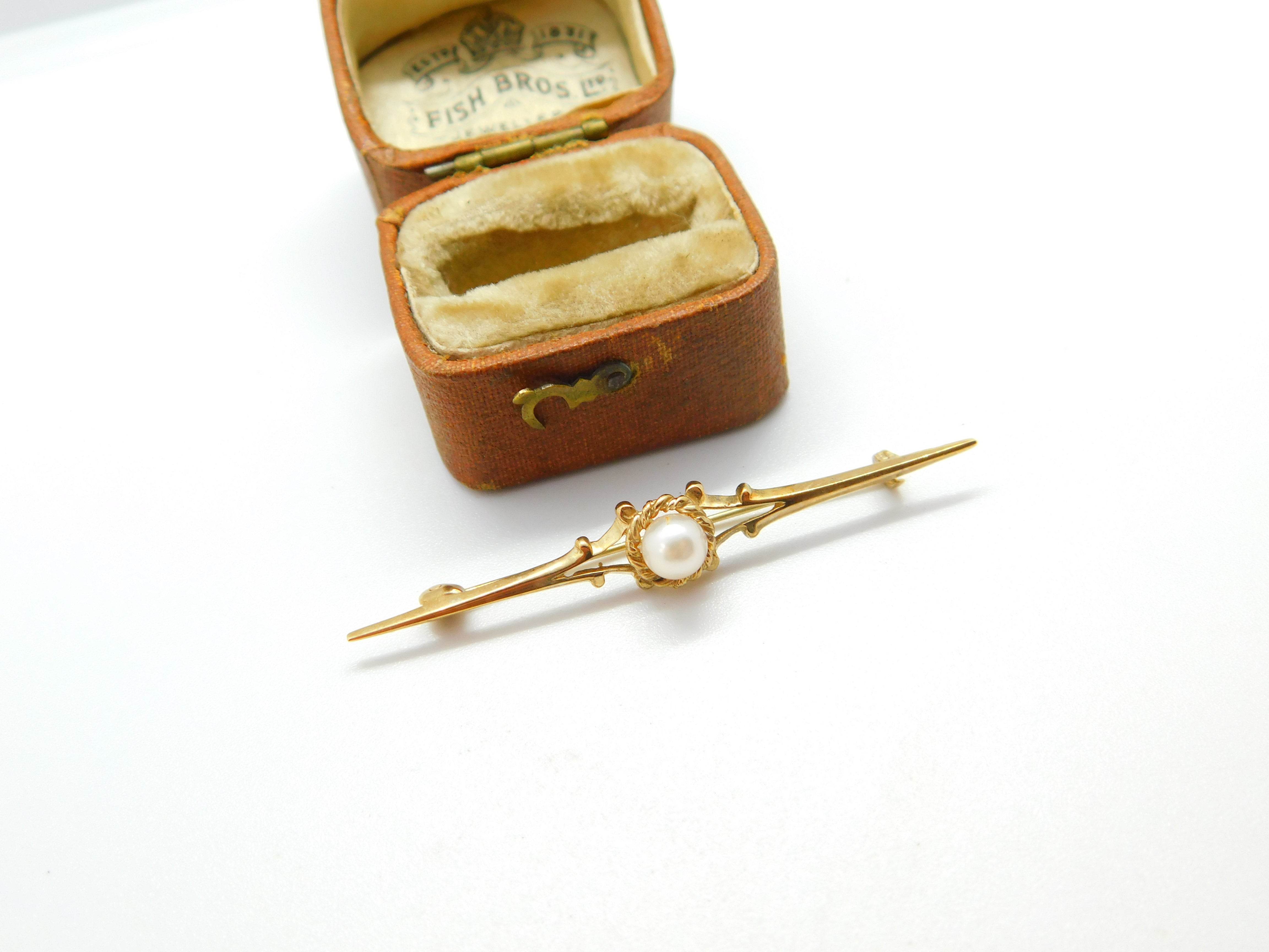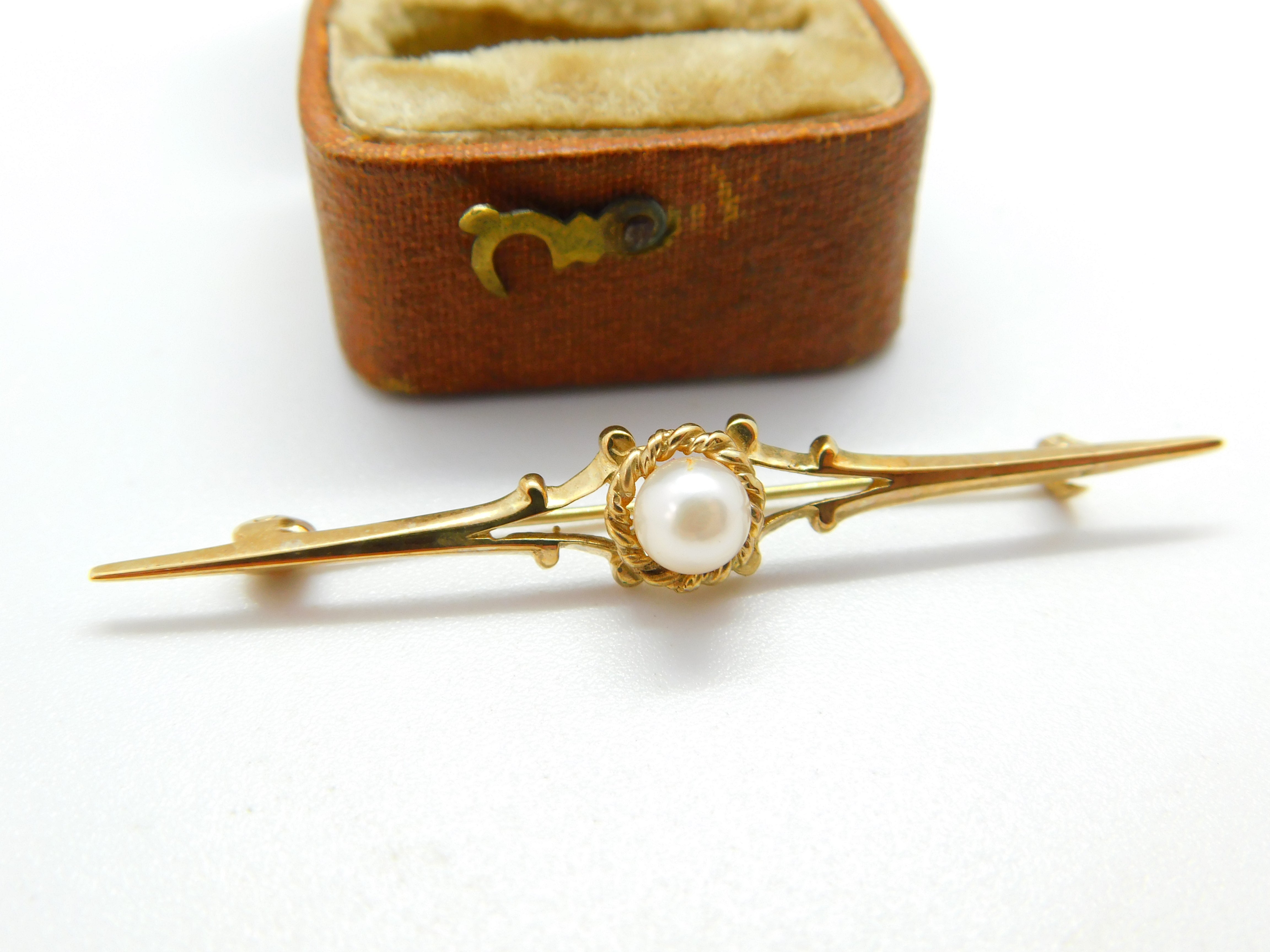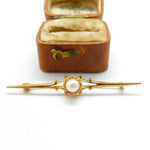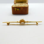 9ct Yellow Gold & Pearl Set Sweetheart Bar Brooch Antique c1930 Art Deco