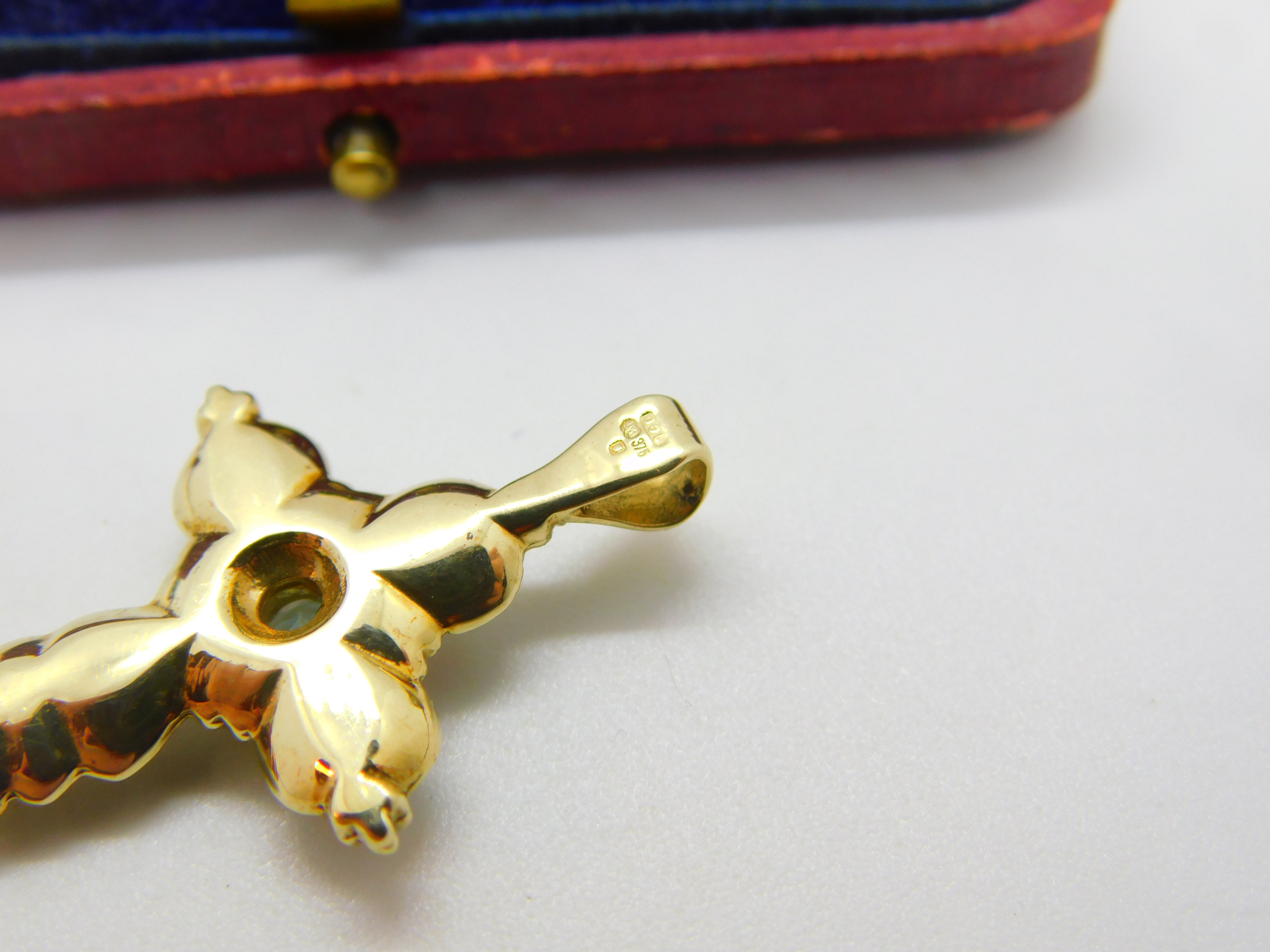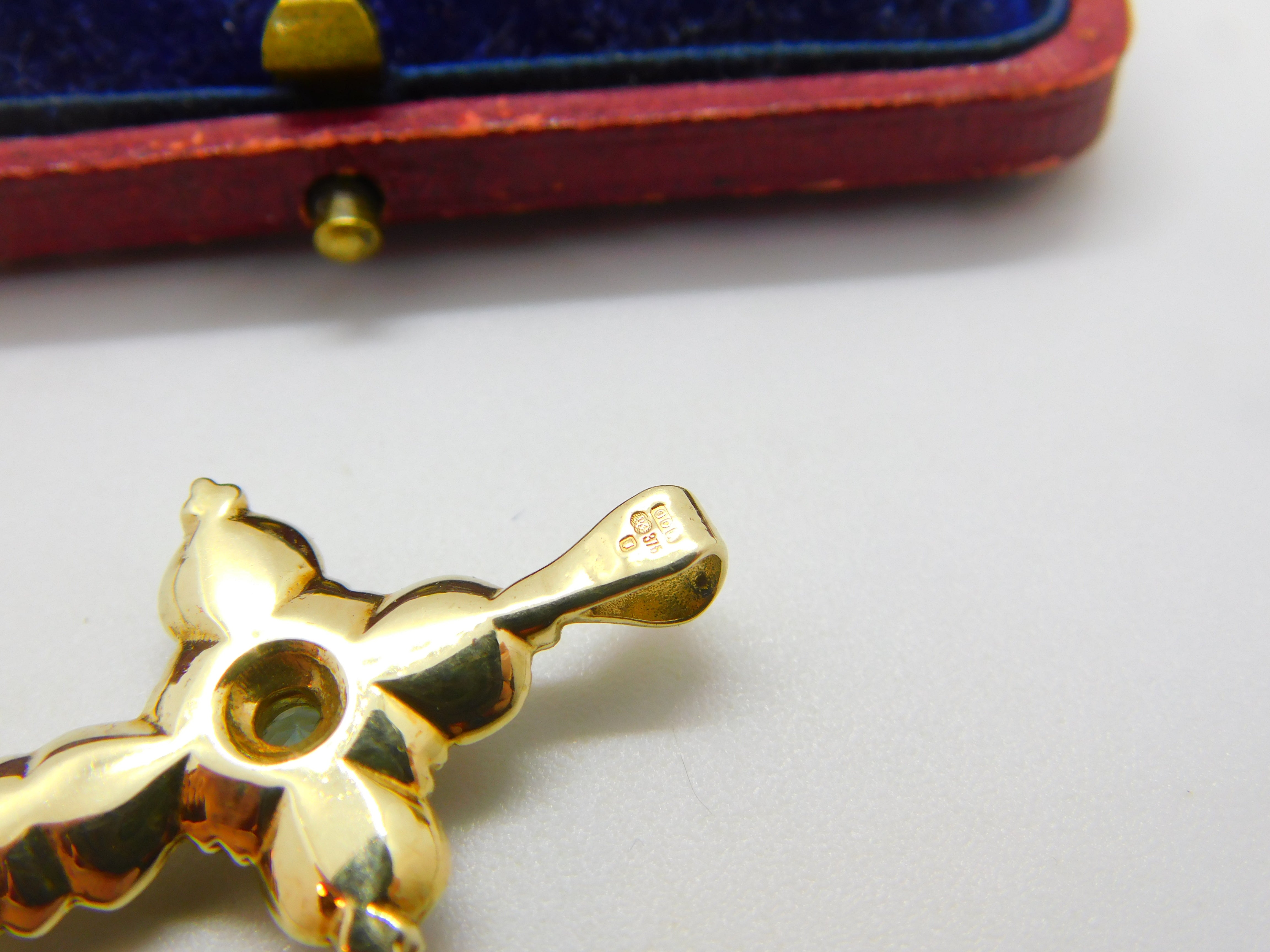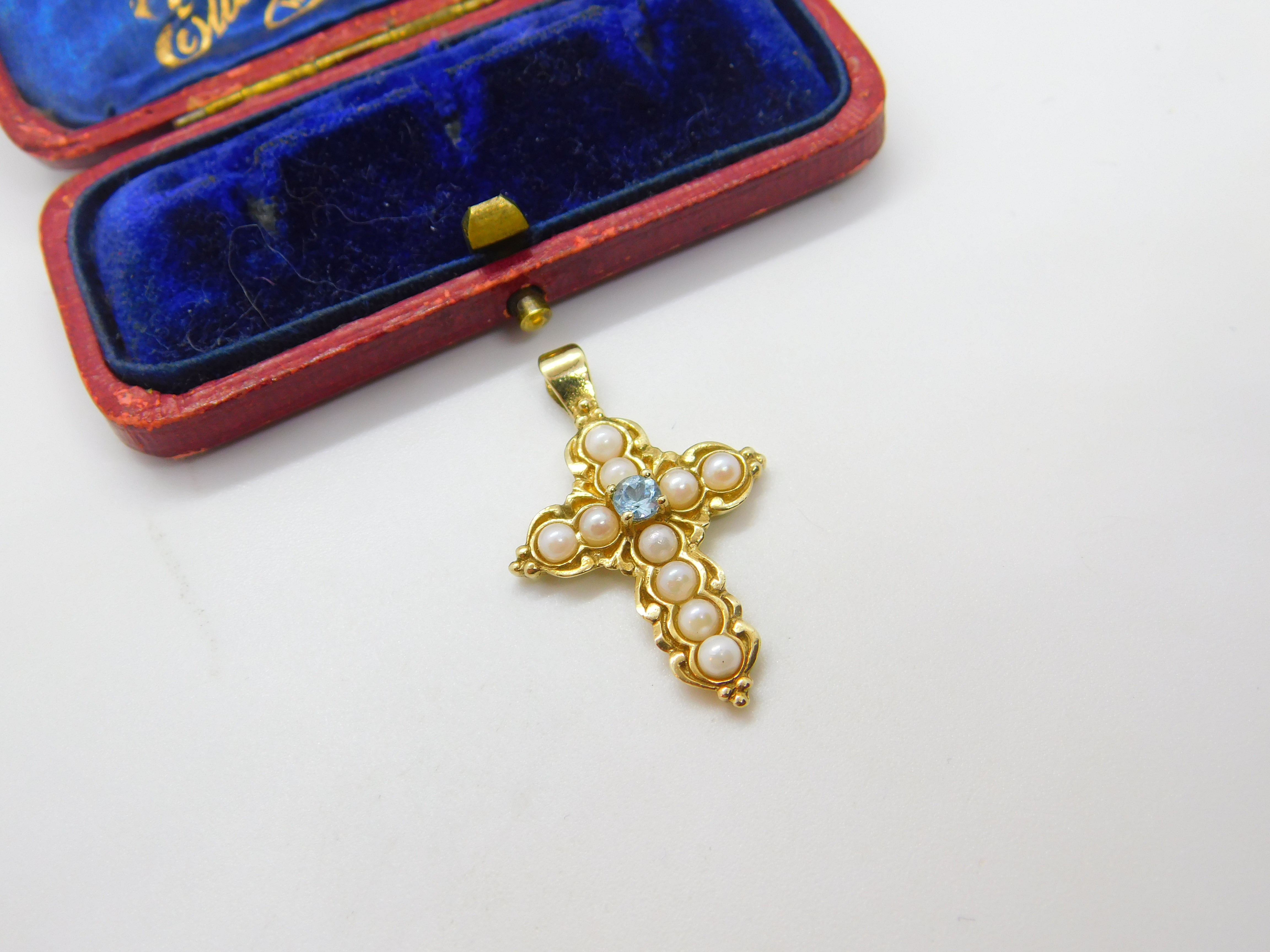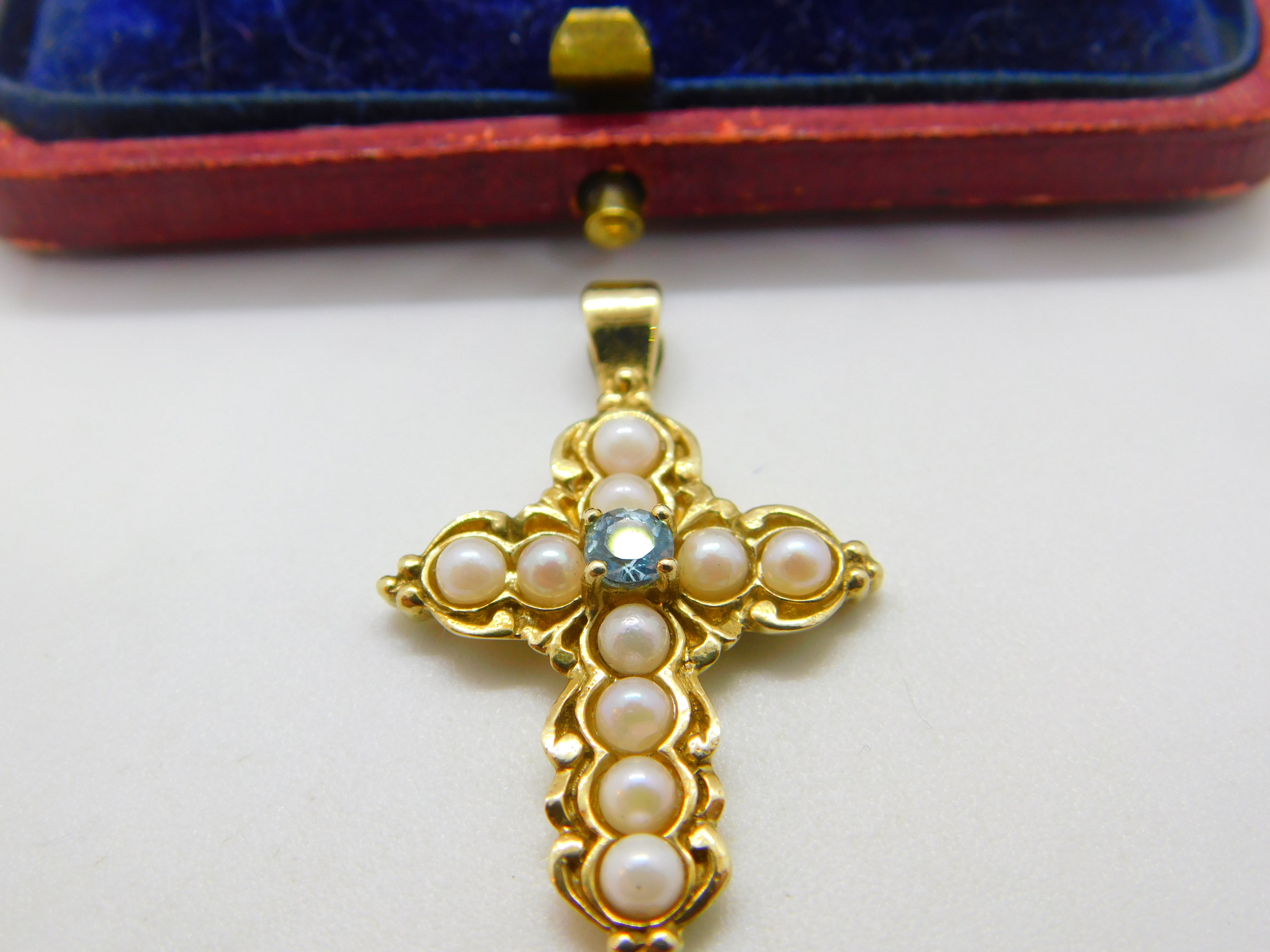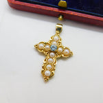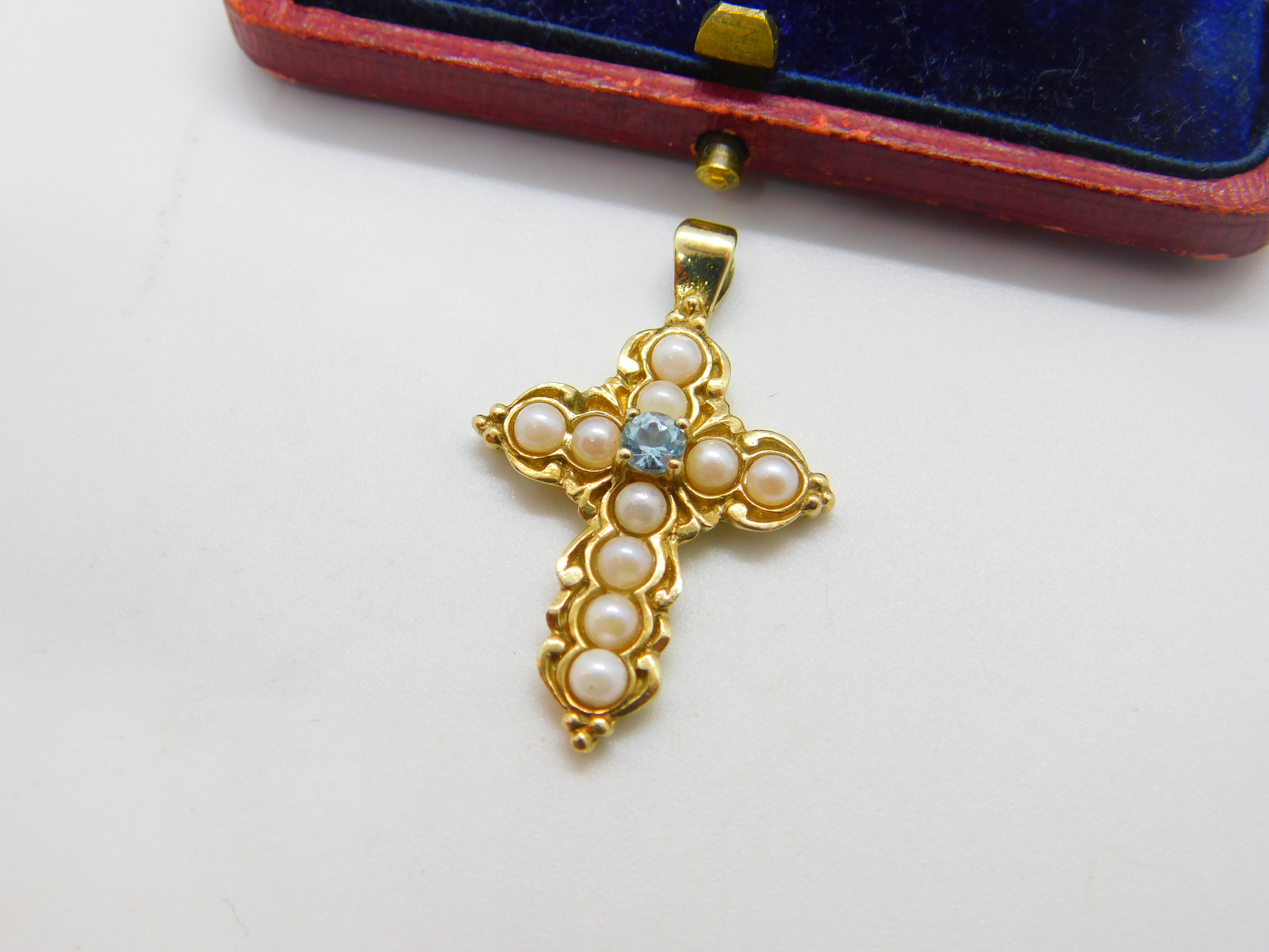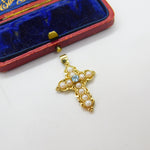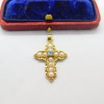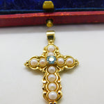9ct Yellow Gold, Pearl & Topaz Set Cross Pendant Vintage c1970 London