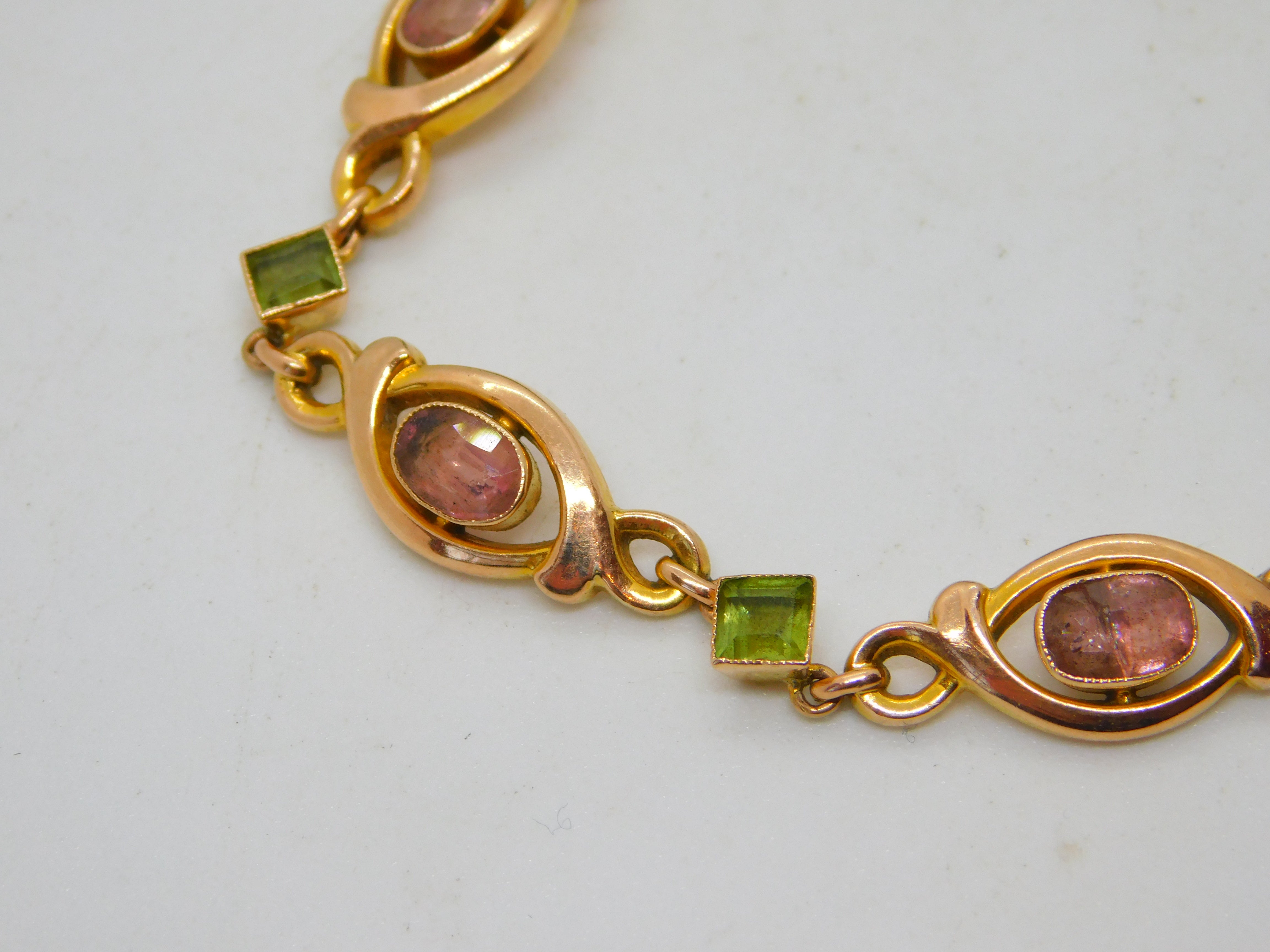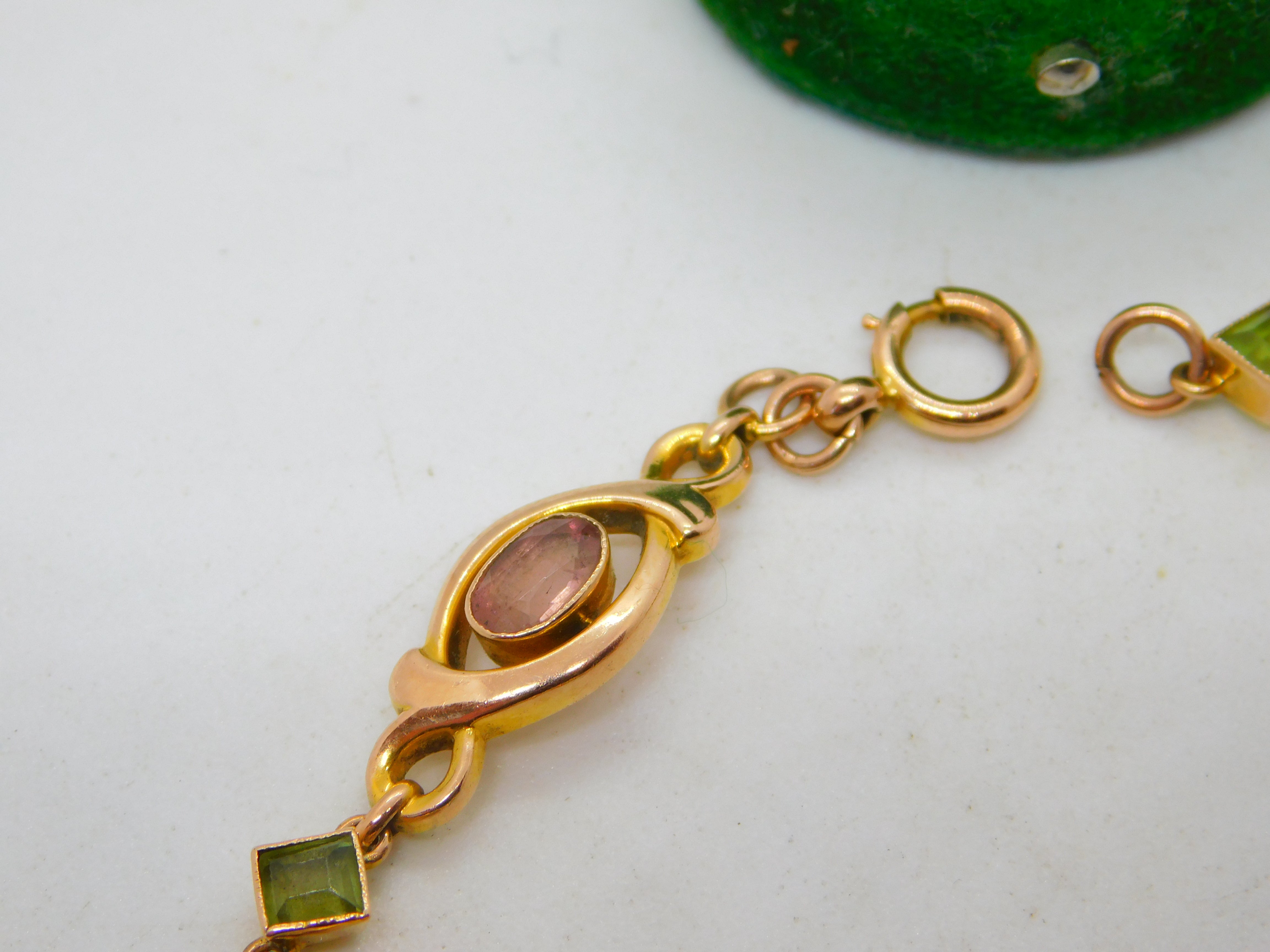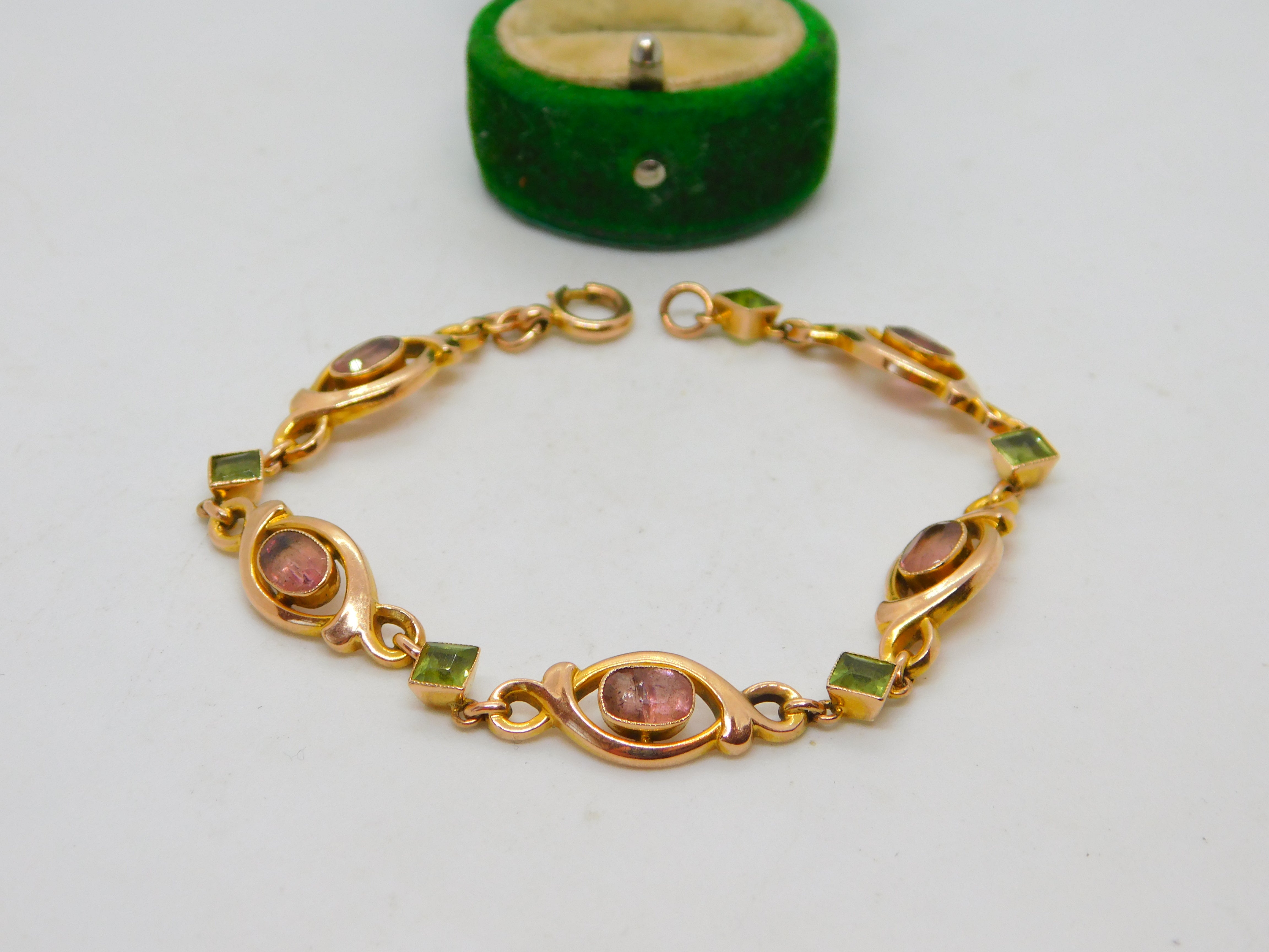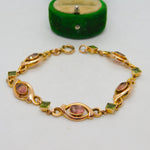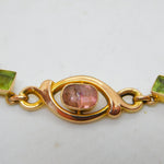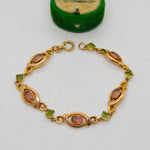 9ct Yellow Gold, Pink Topaz & Peridot Floral Dress Bracelet Antique c1930 Deco