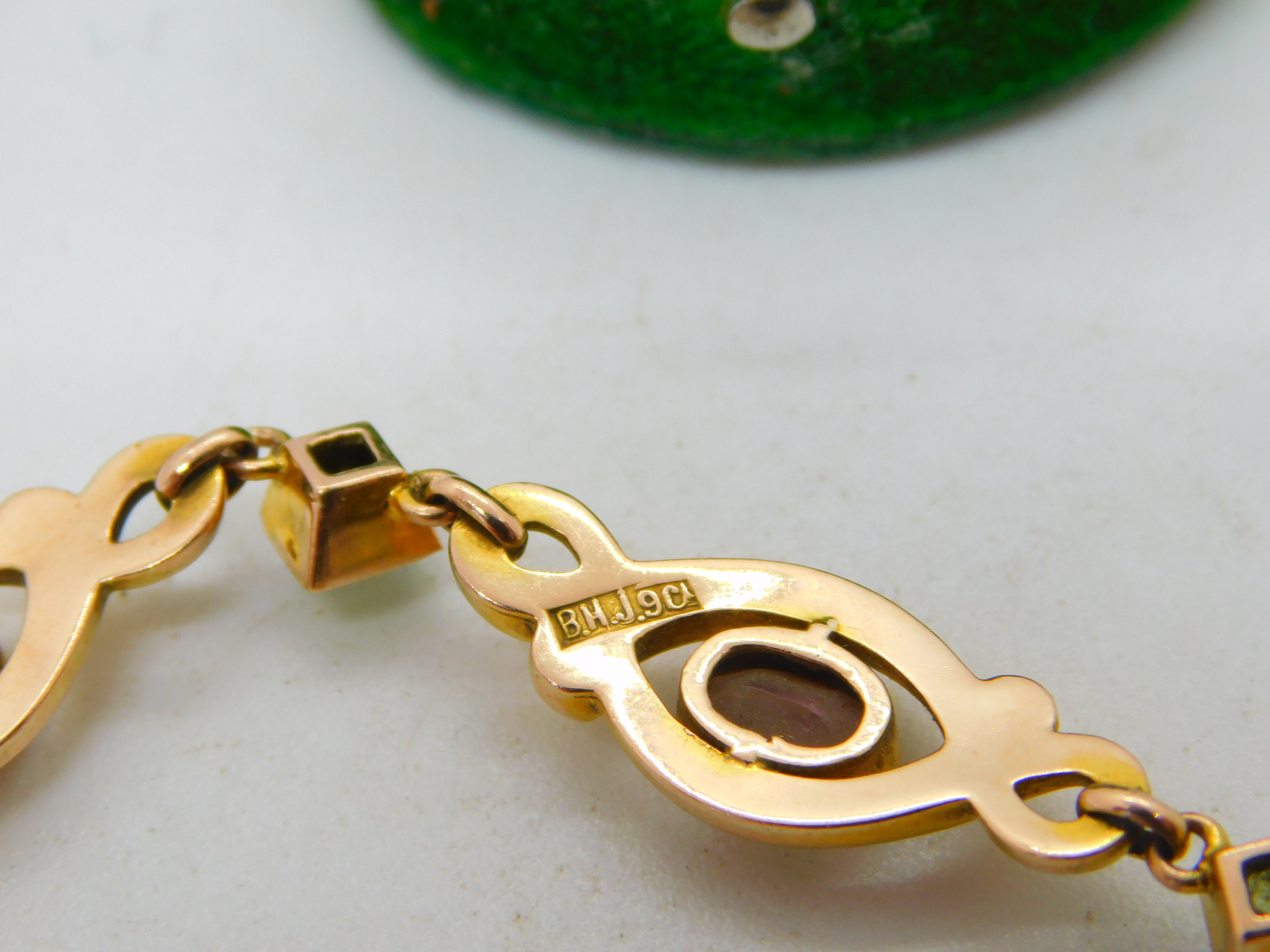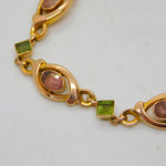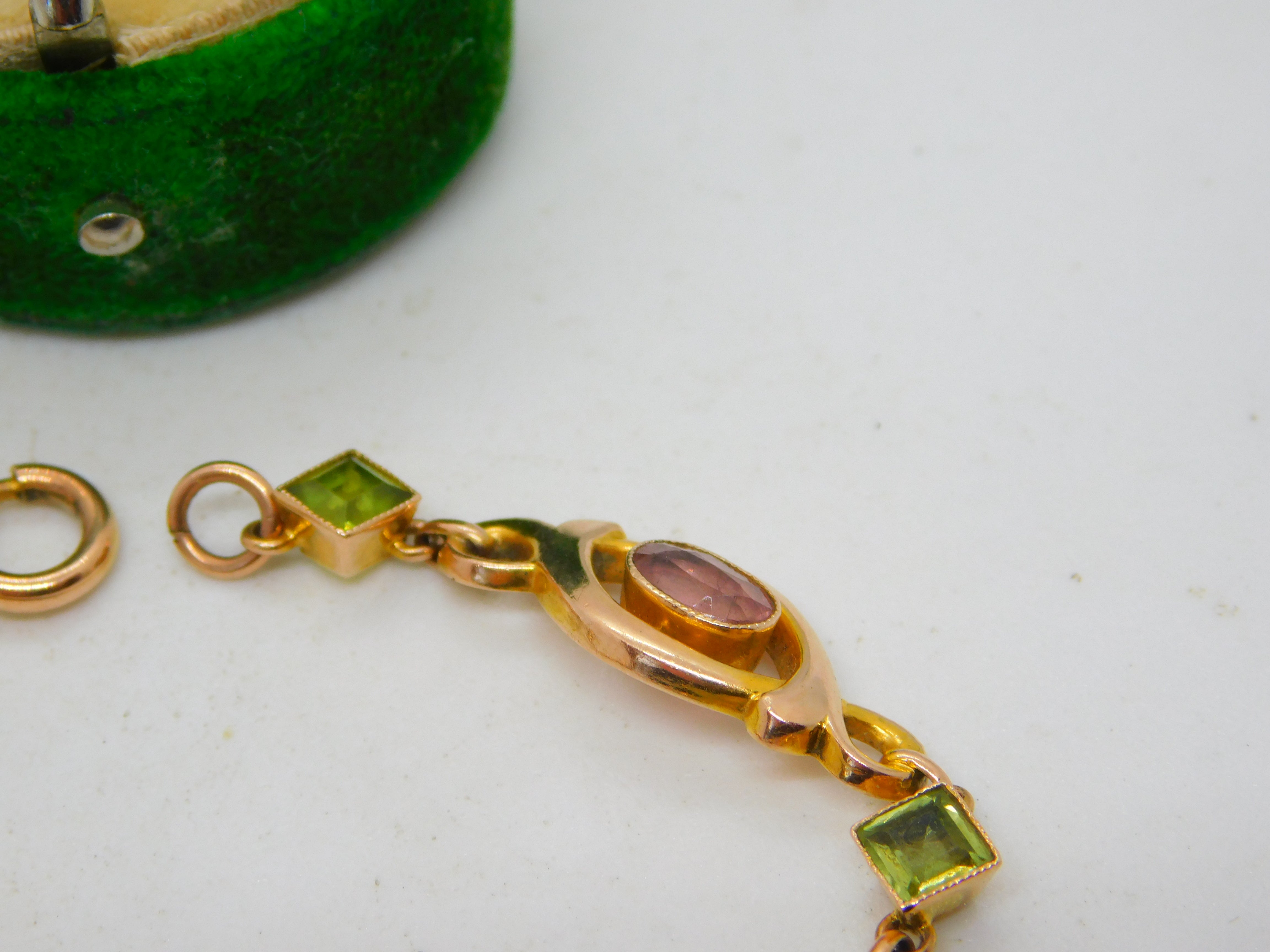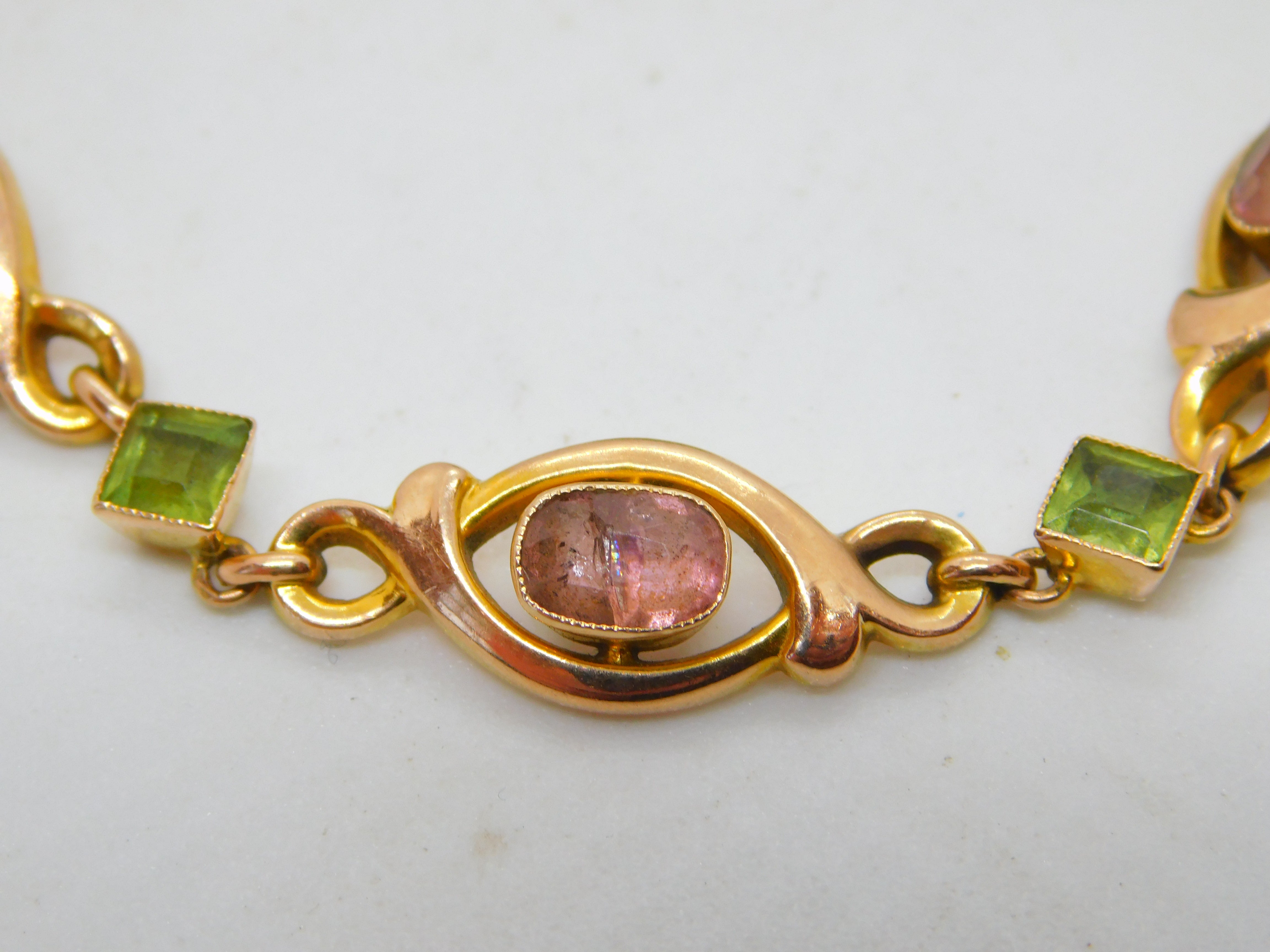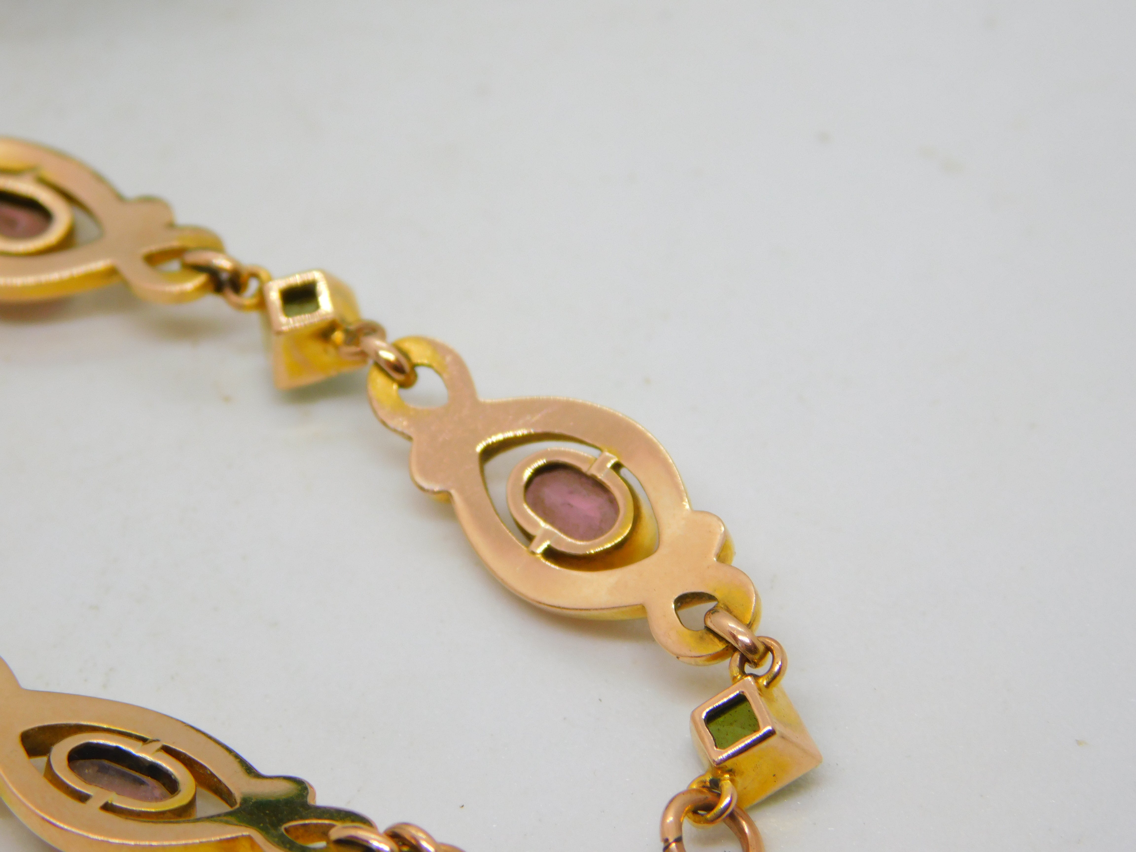 9ct Yellow Gold, Pink Topaz & Peridot Floral Dress Bracelet Antique c1930 Deco