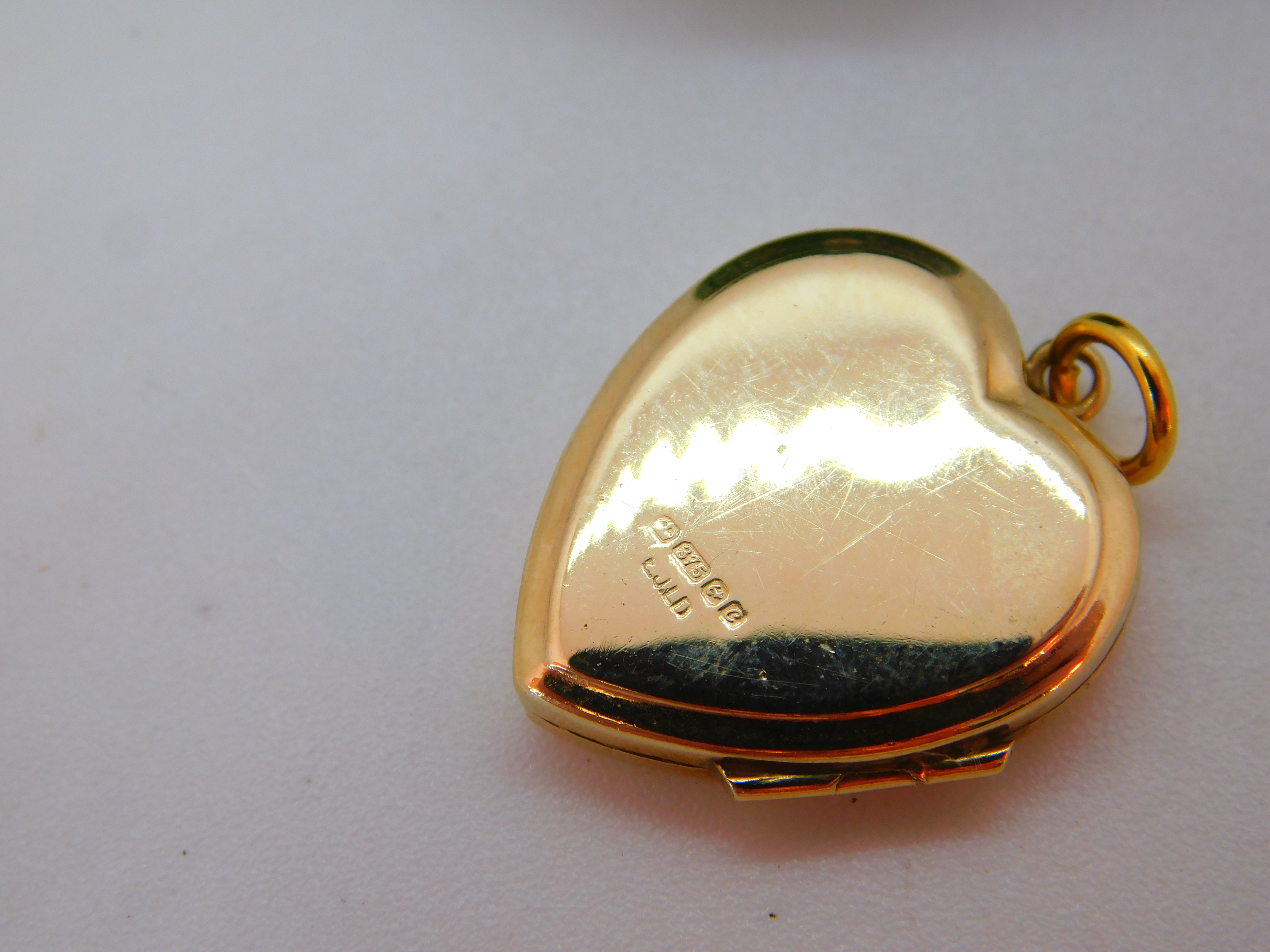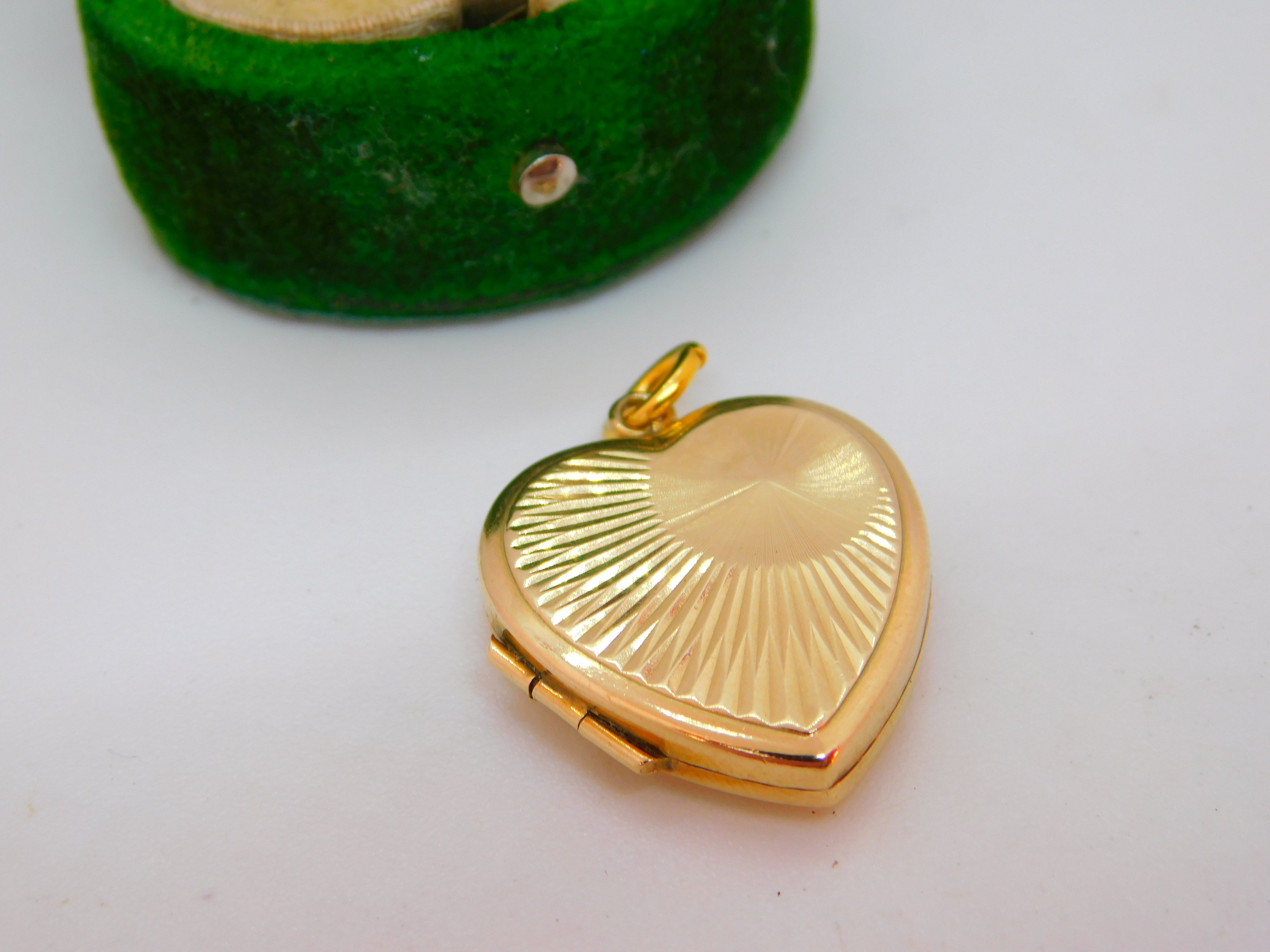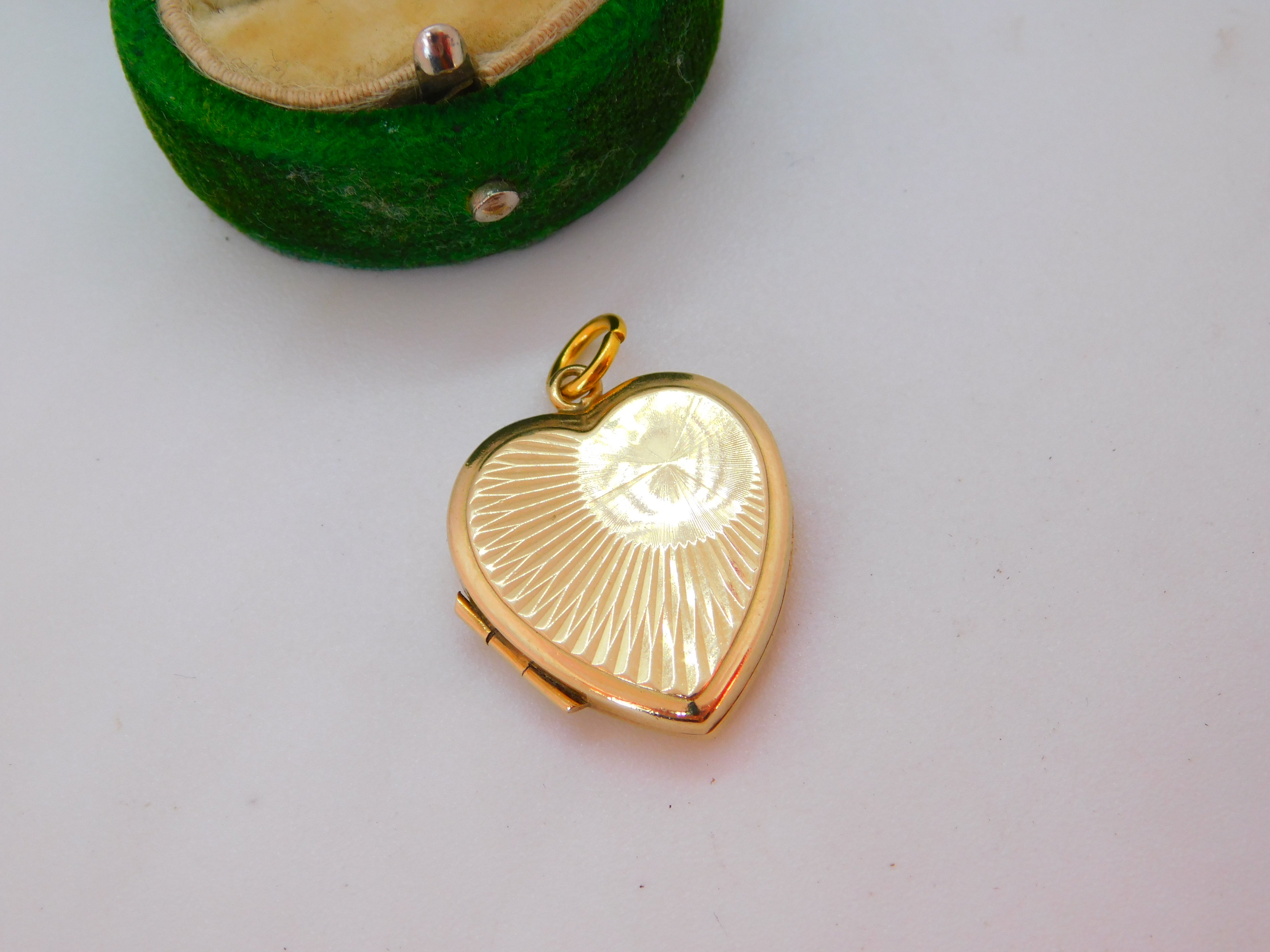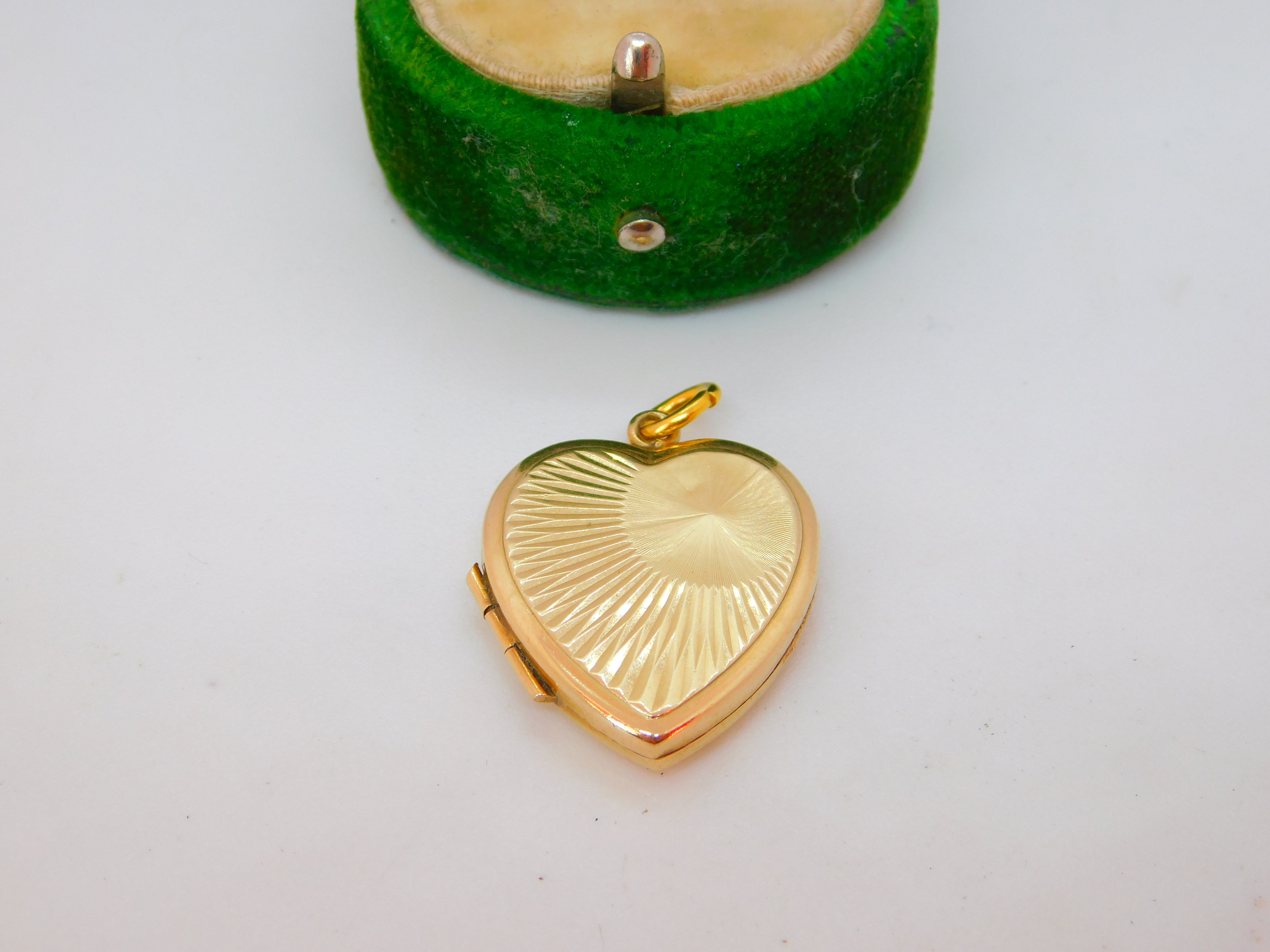 9ct Yellow Gold Rising Sun Heart Locket Pendant Vintage 1977 Birmingham