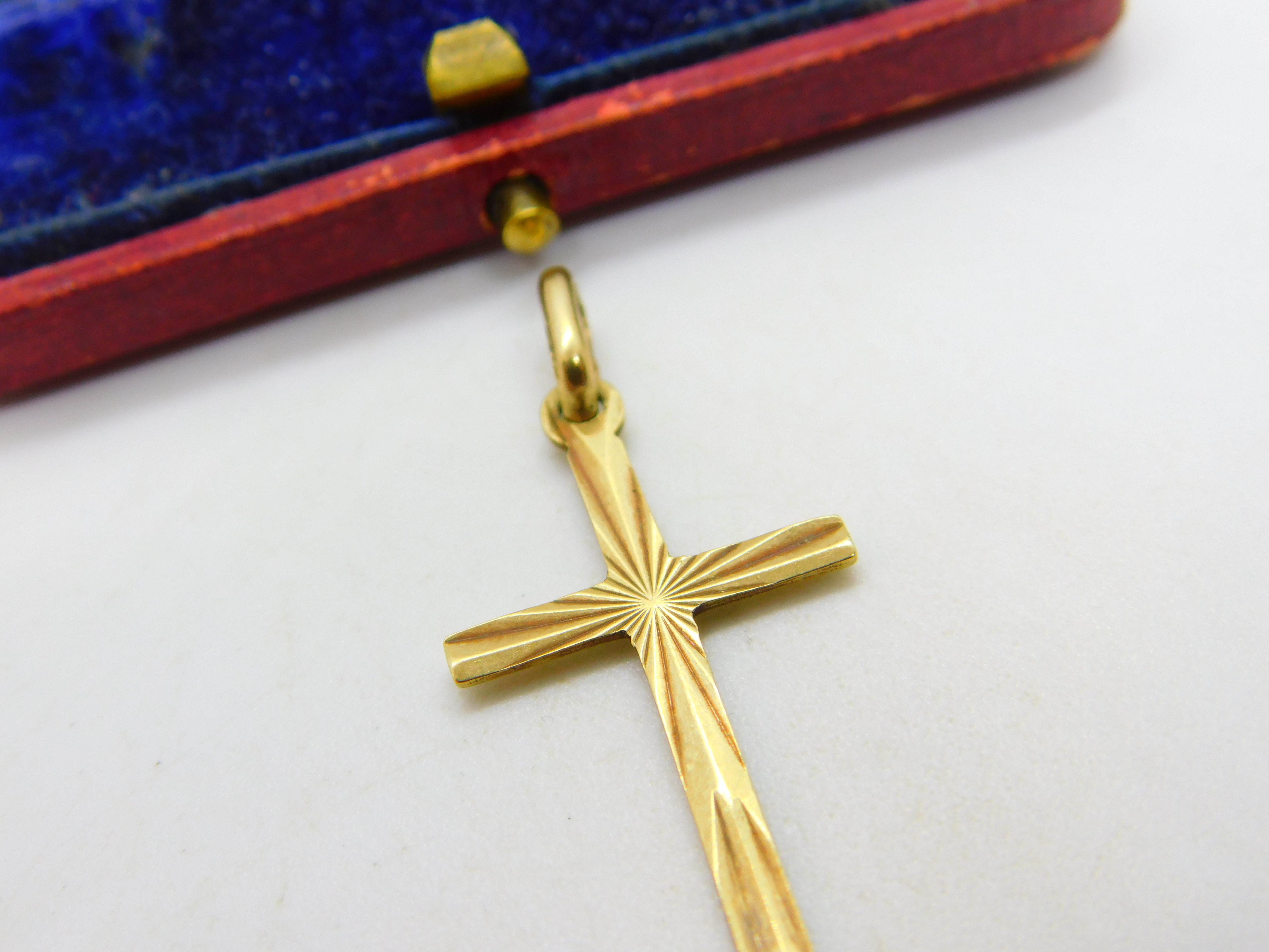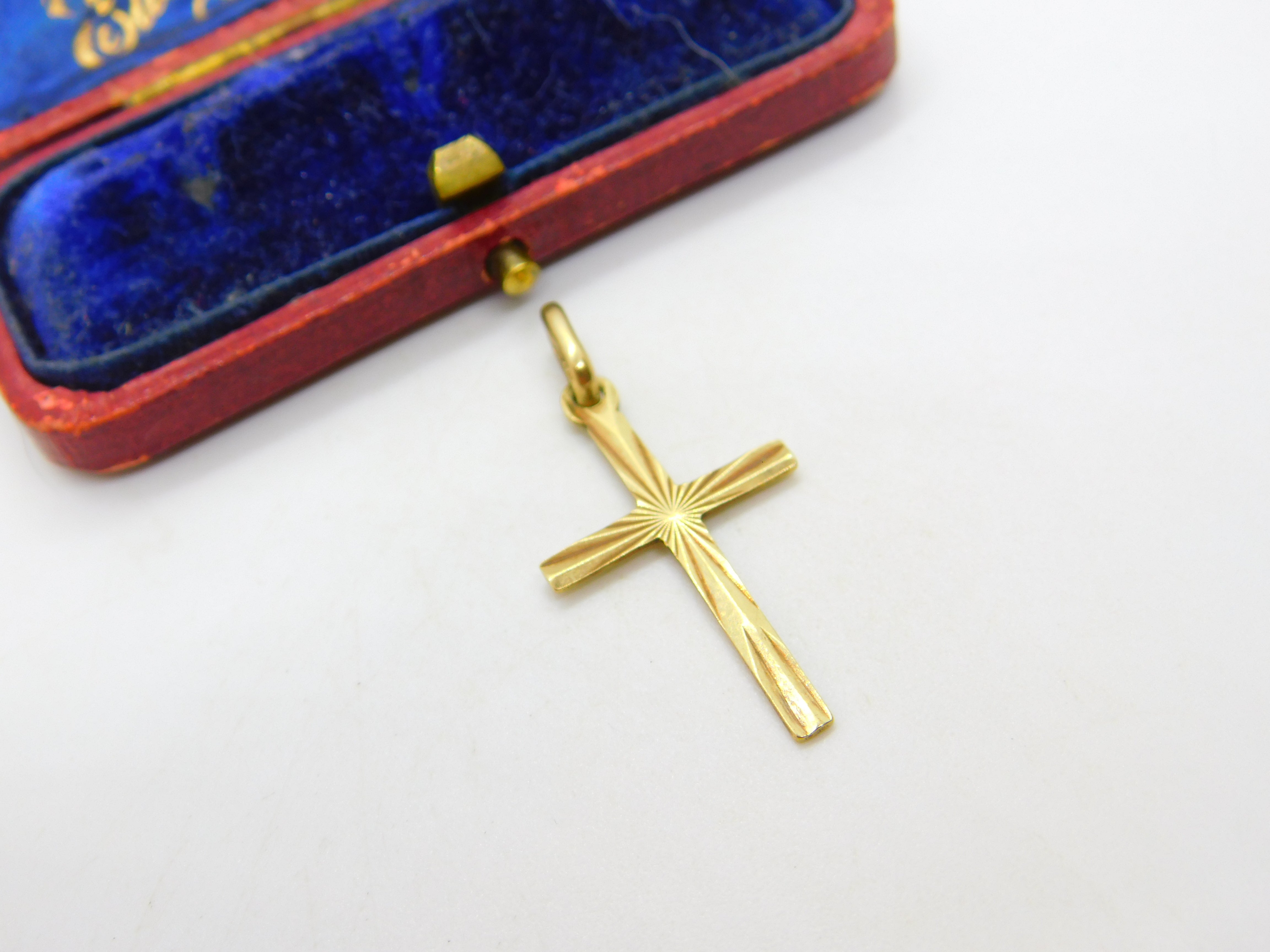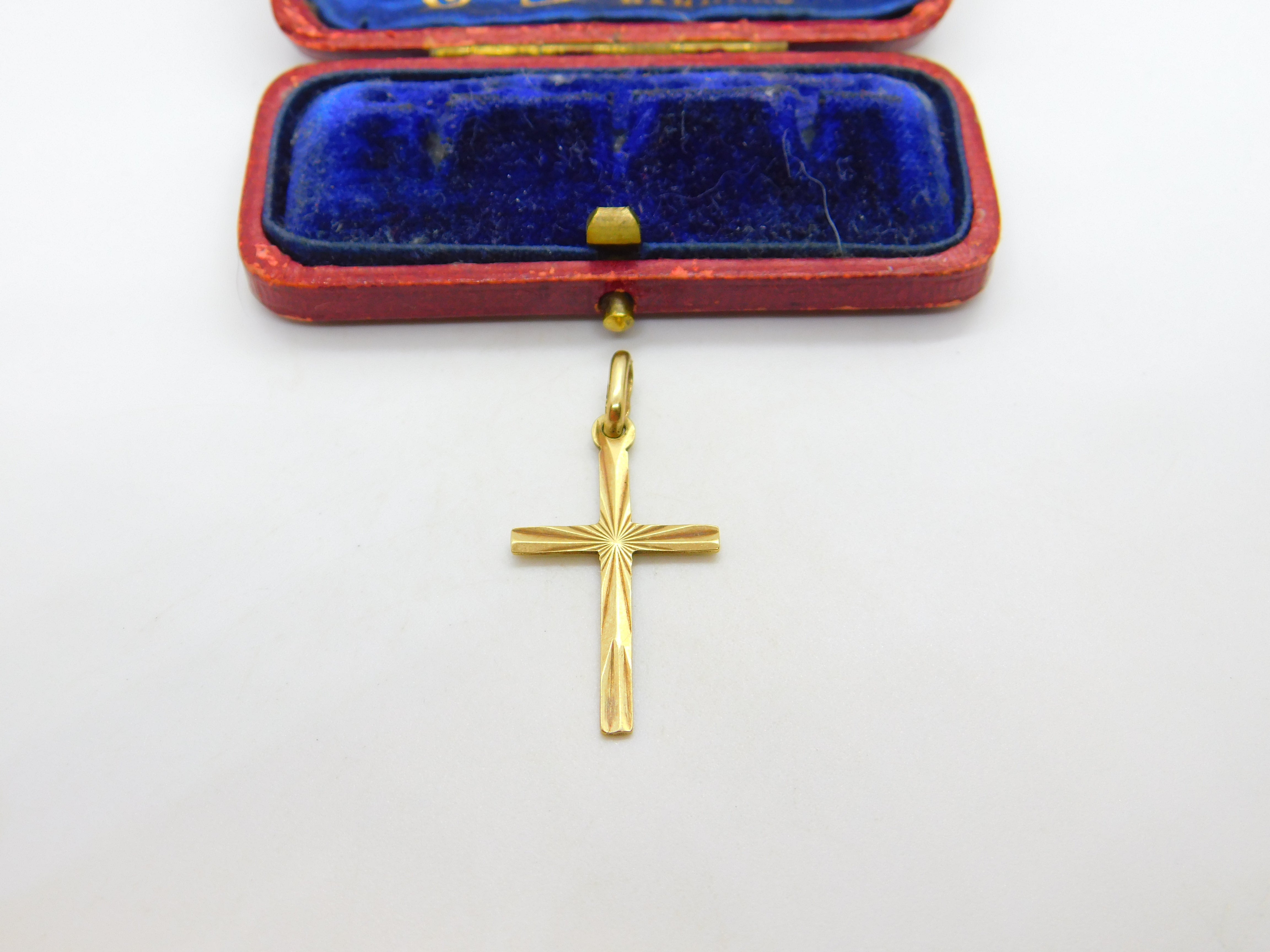 9ct Yellow Gold Rising Sun Pattern Cross Pendant Vintage c1970