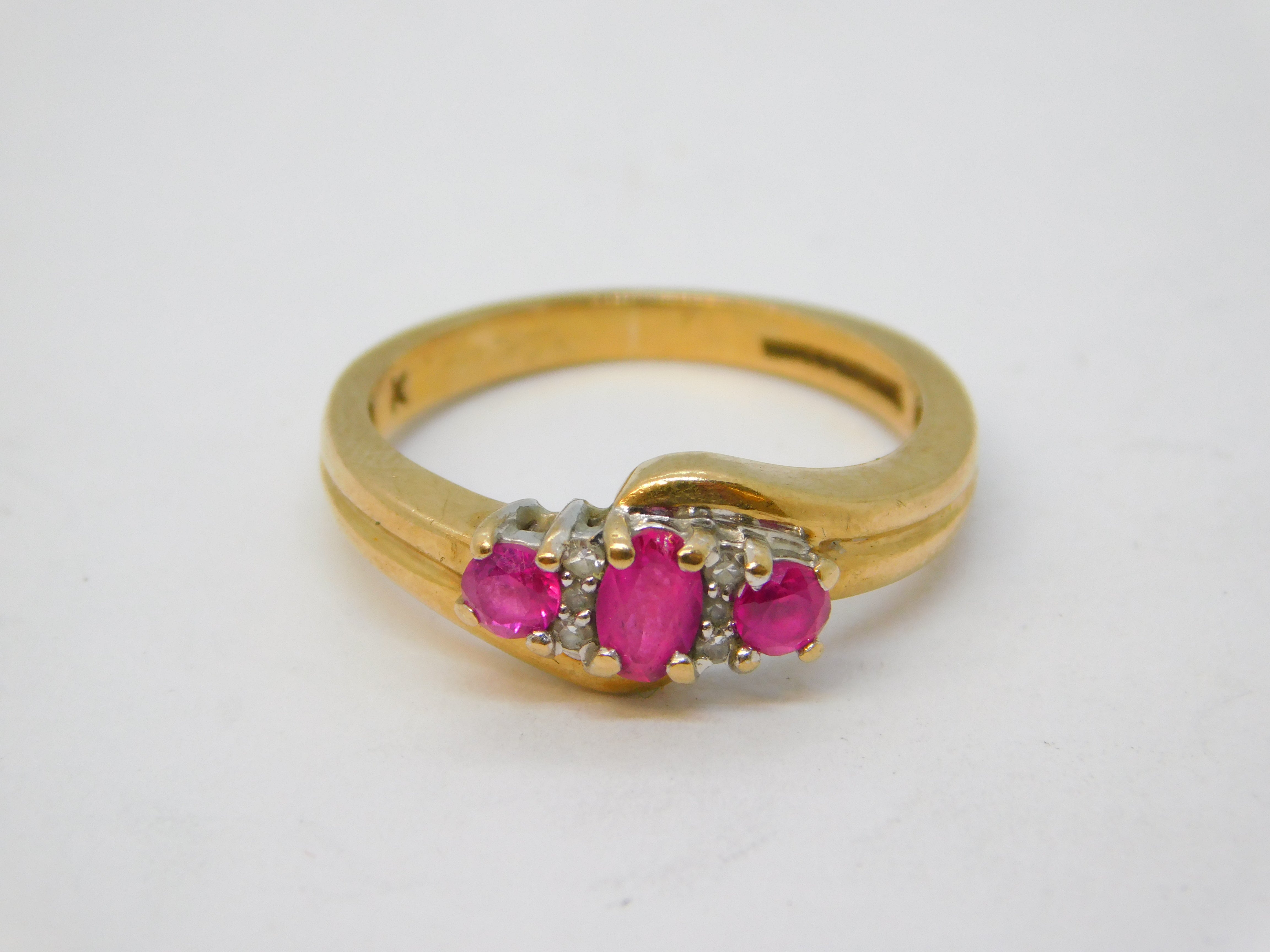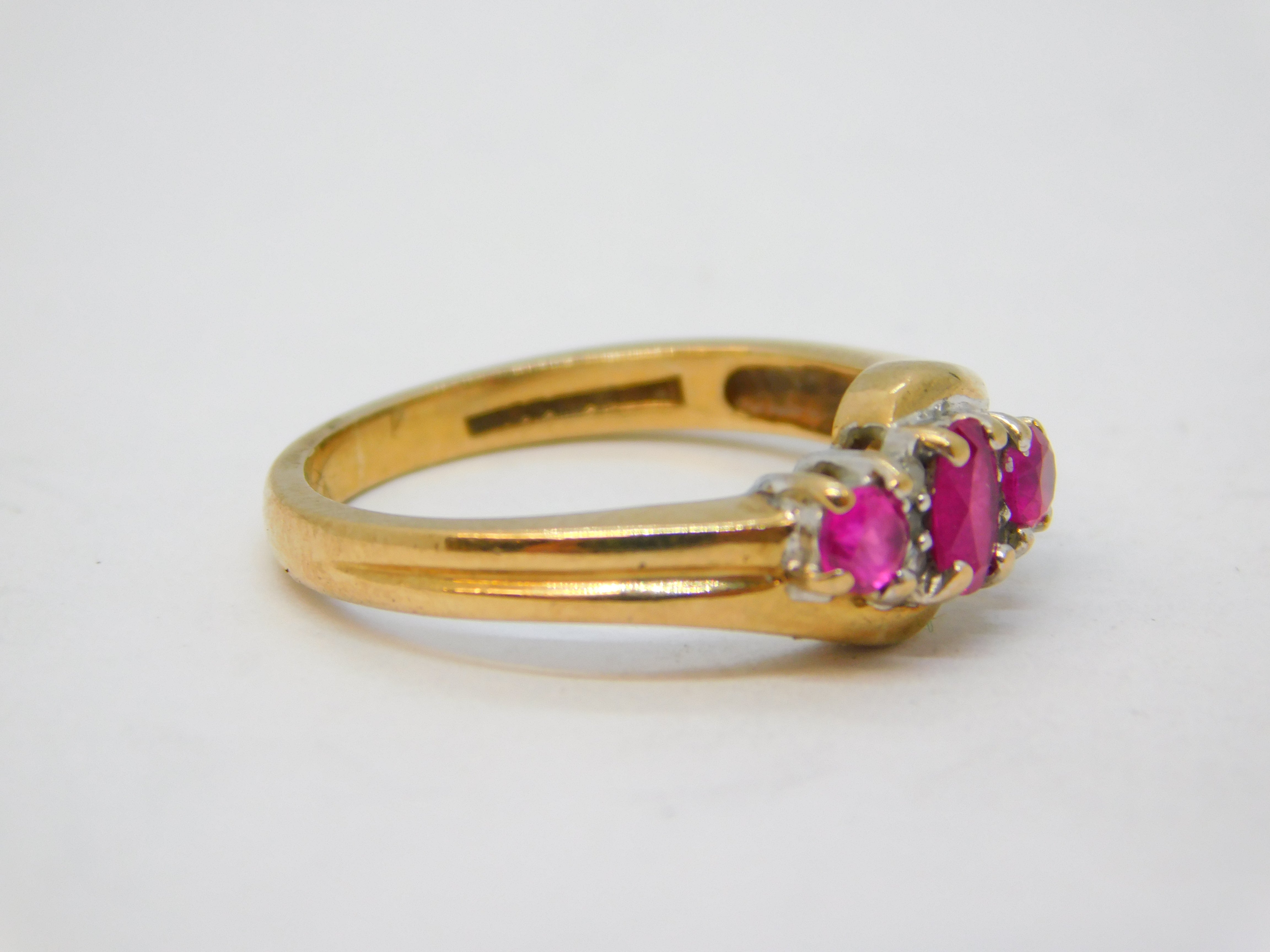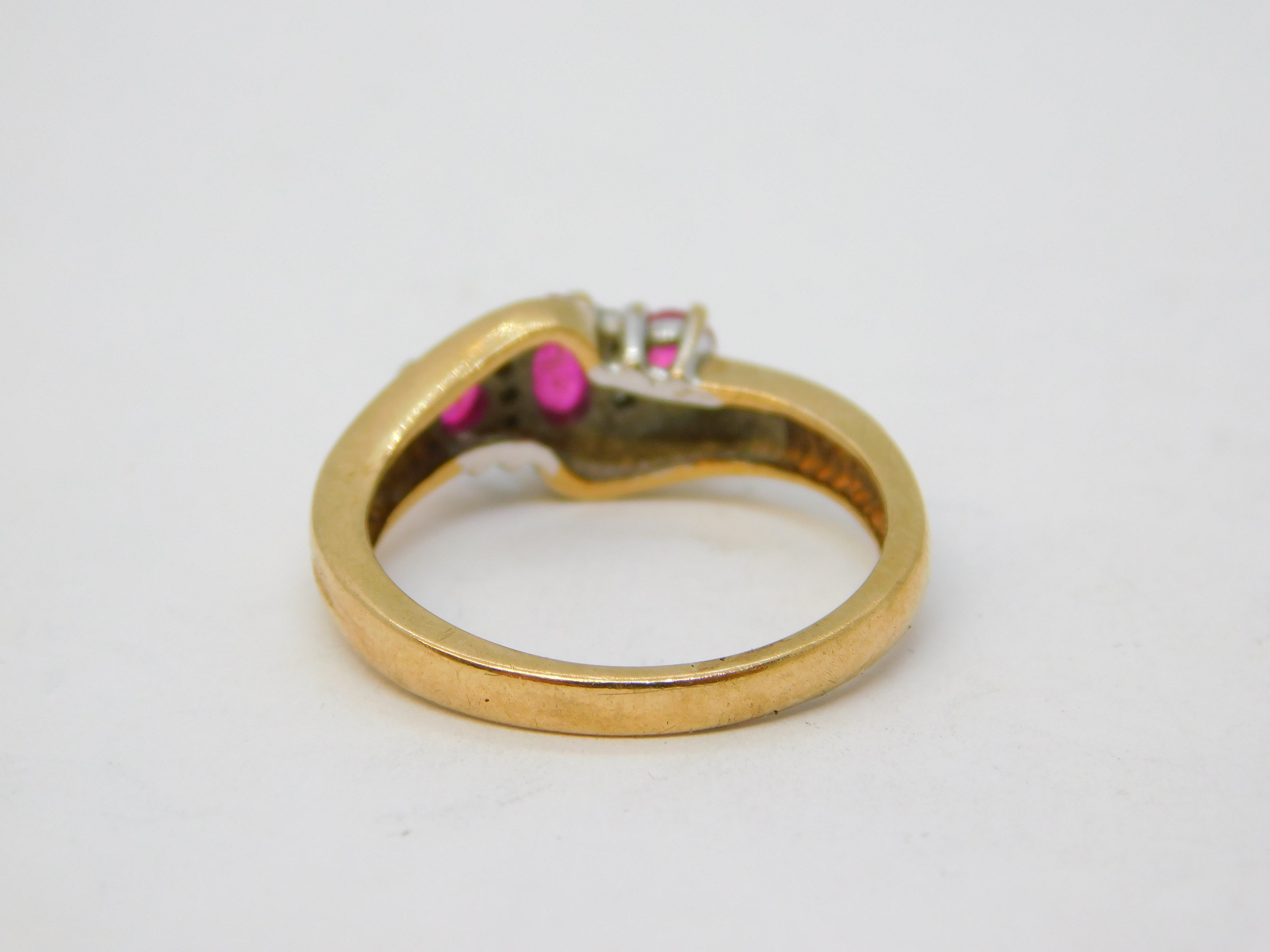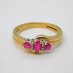 9ct Yellow Gold, Ruby & Diamond Crossover Dress Ring Vintage Birmingham