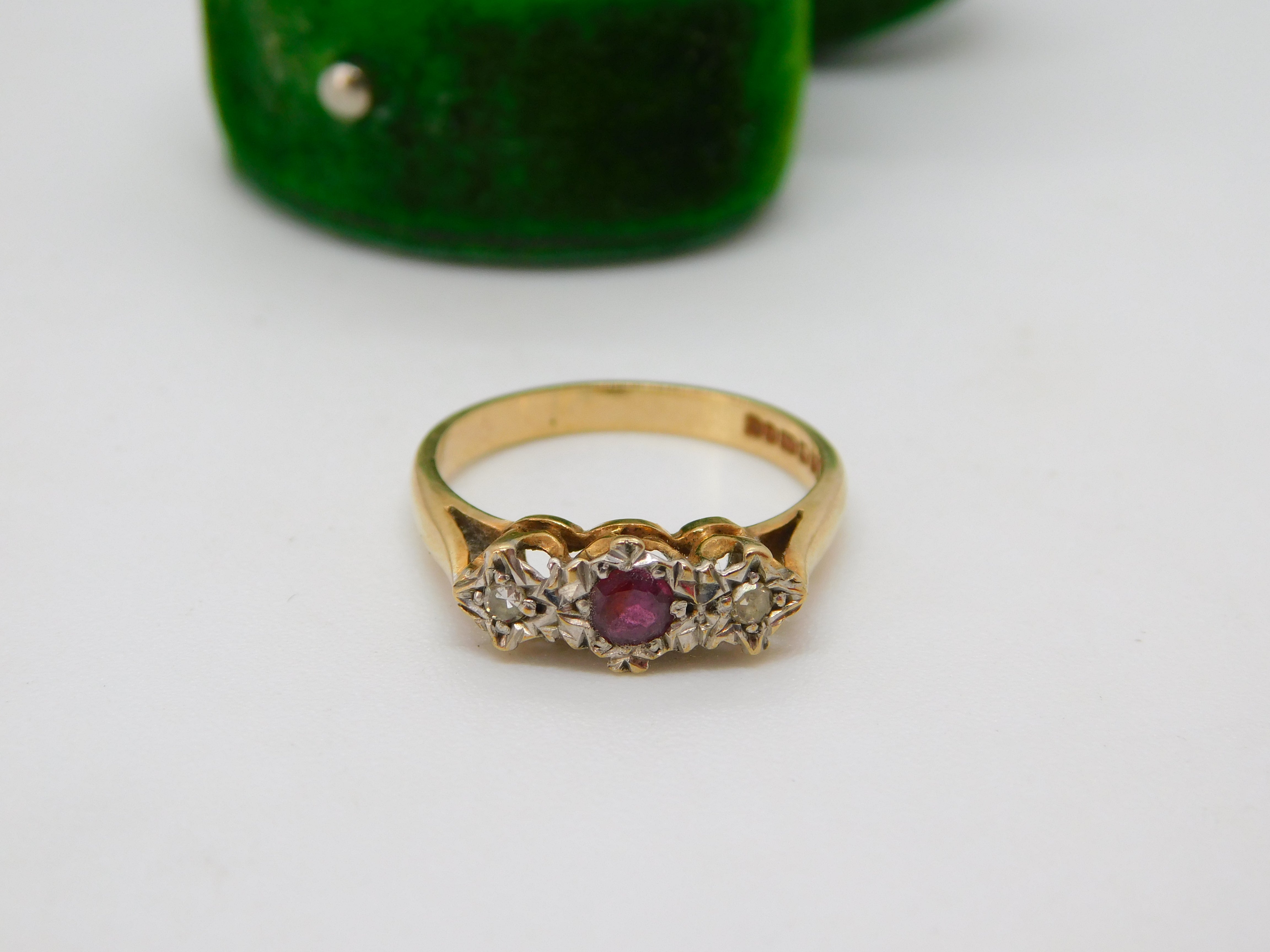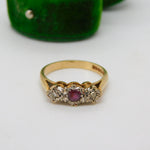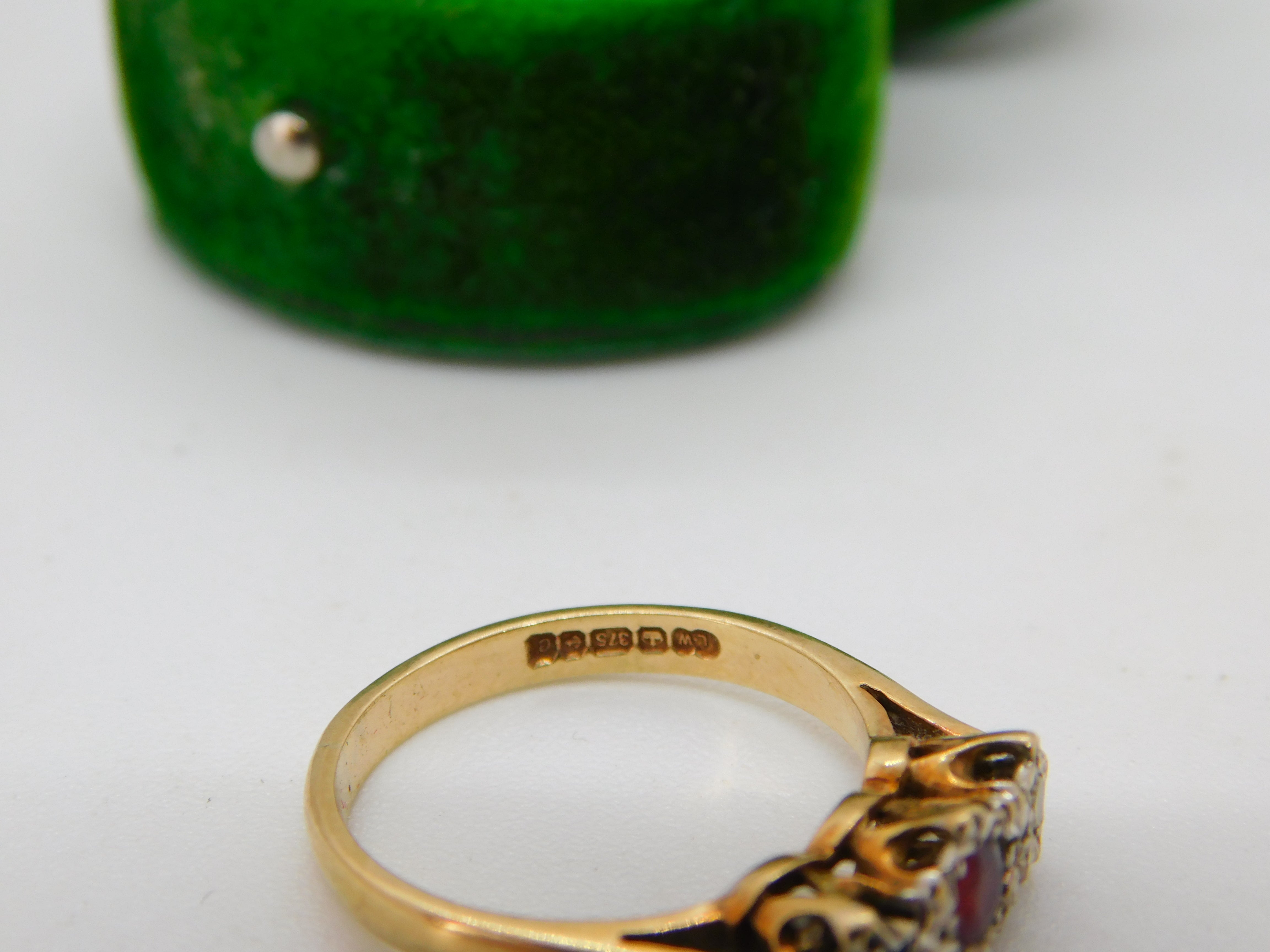 9ct Yellow Gold, Ruby & Diamond Dress Ring Vintage 1977 Birmingham