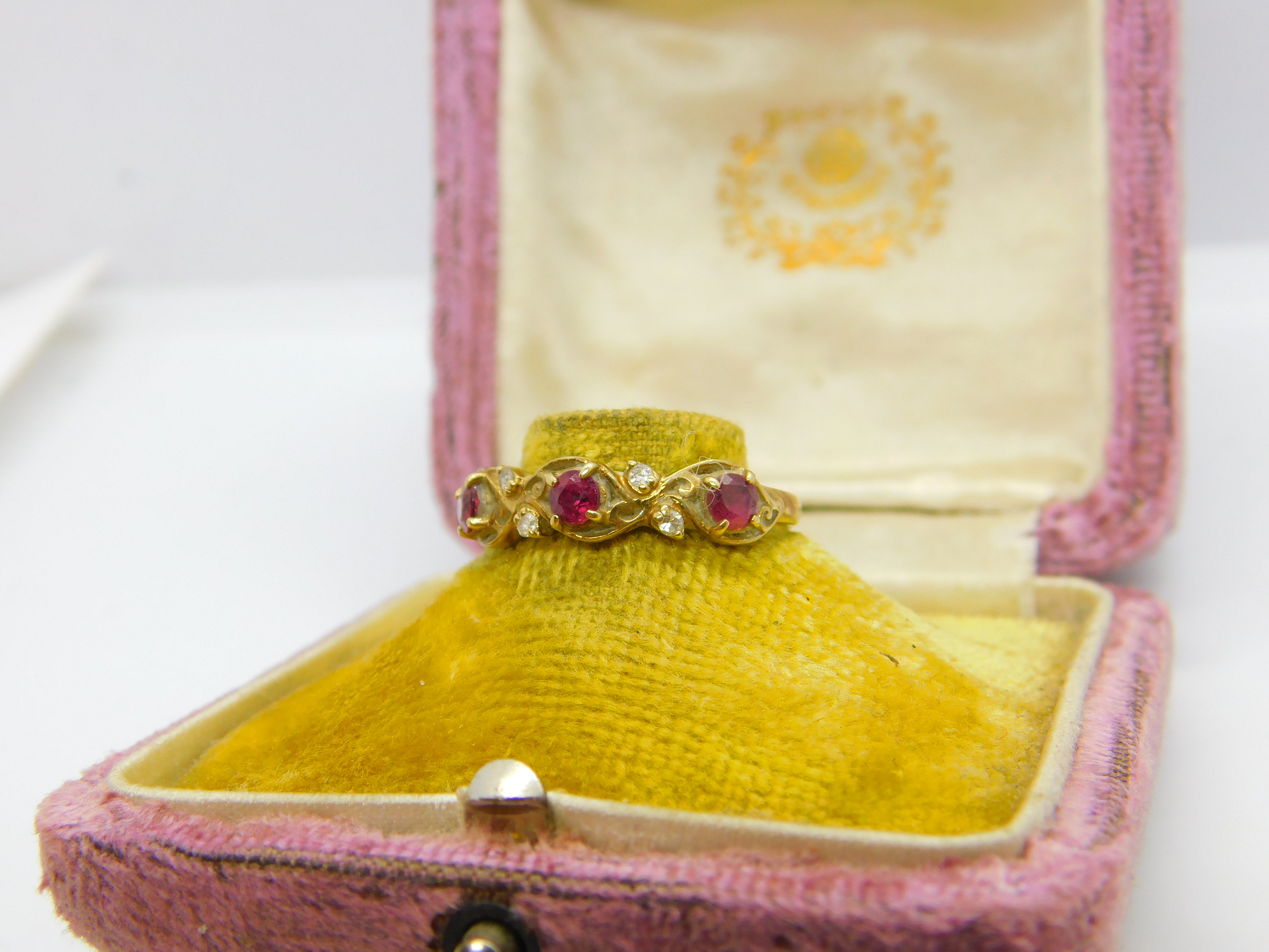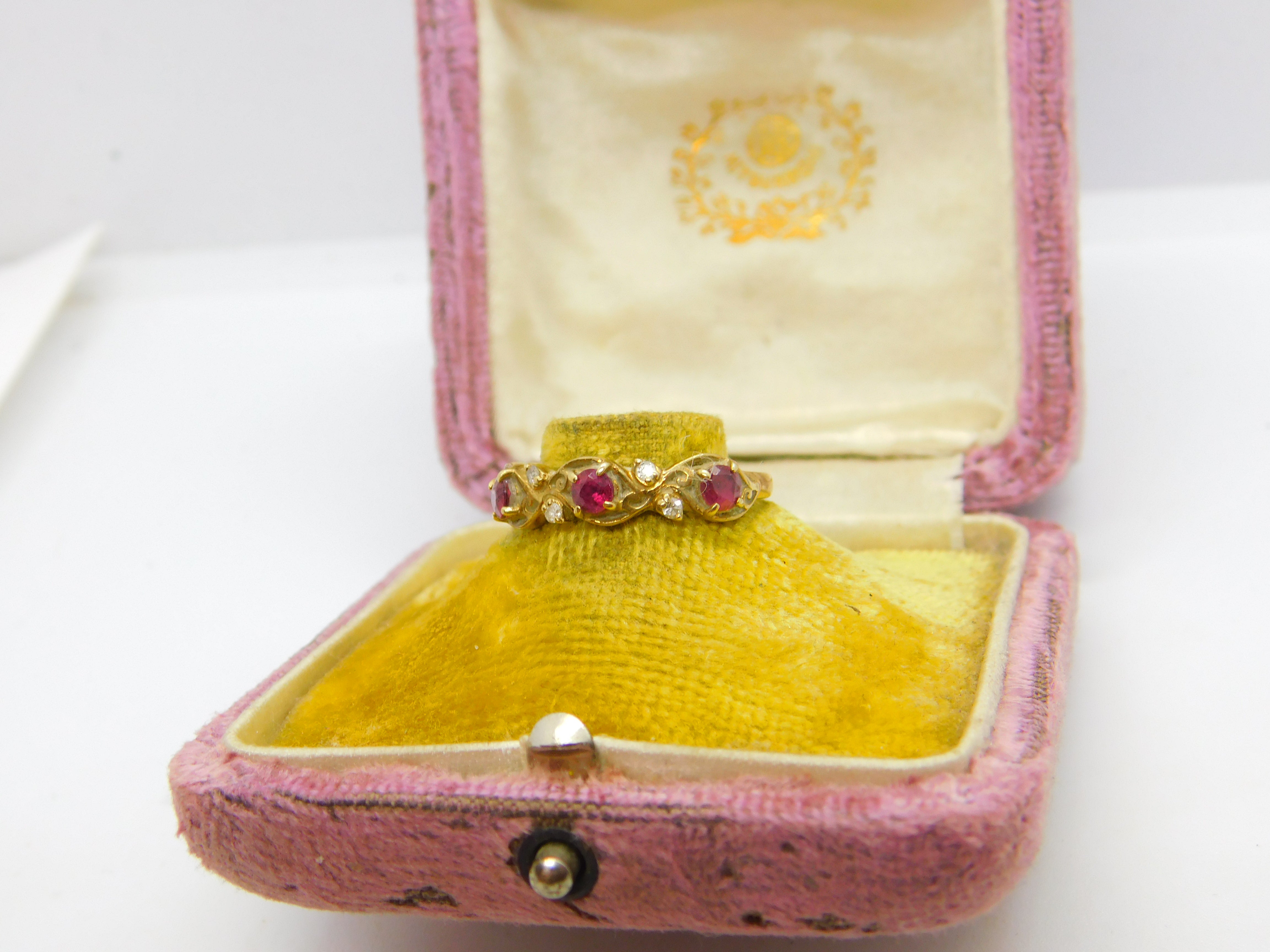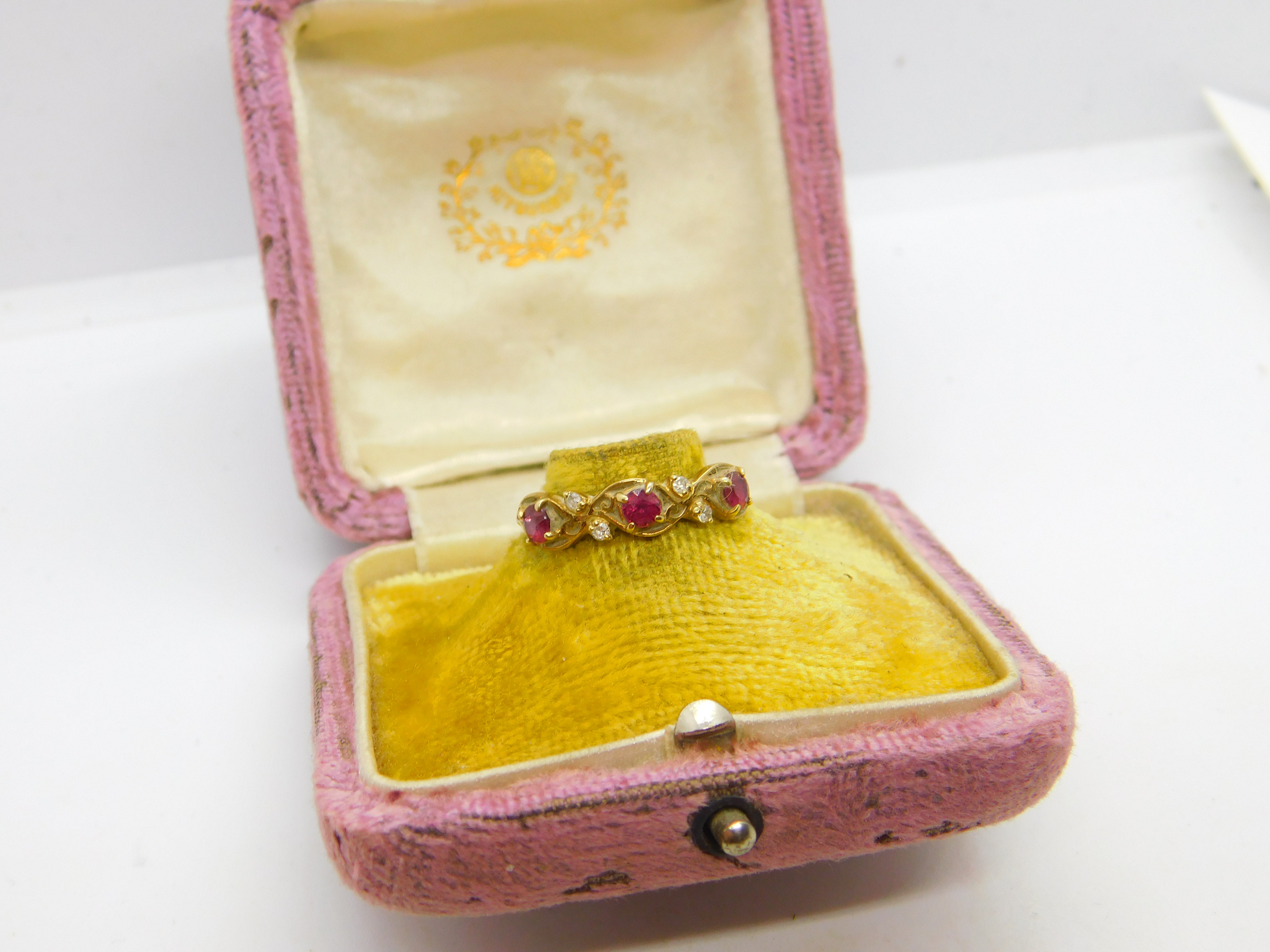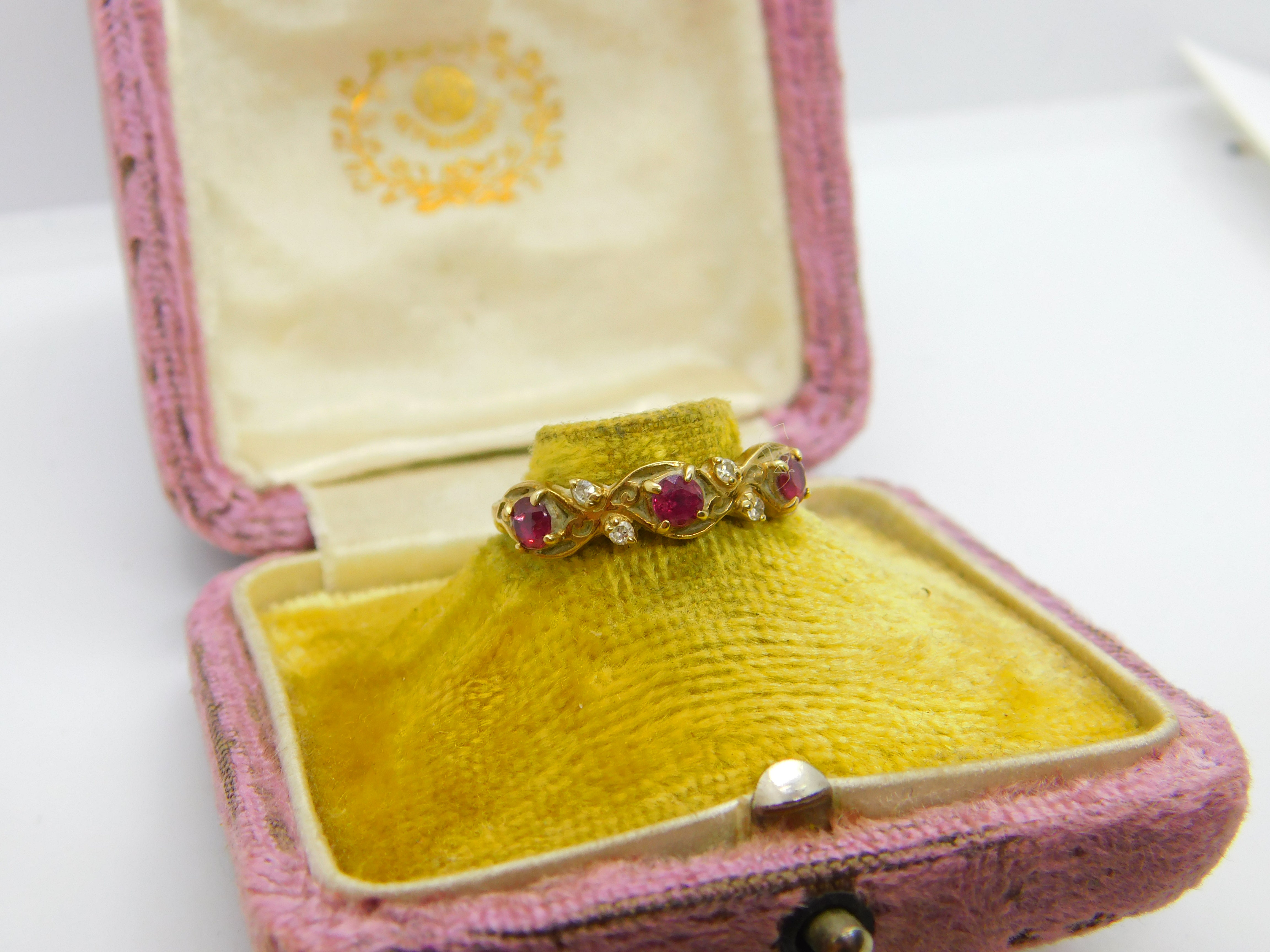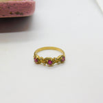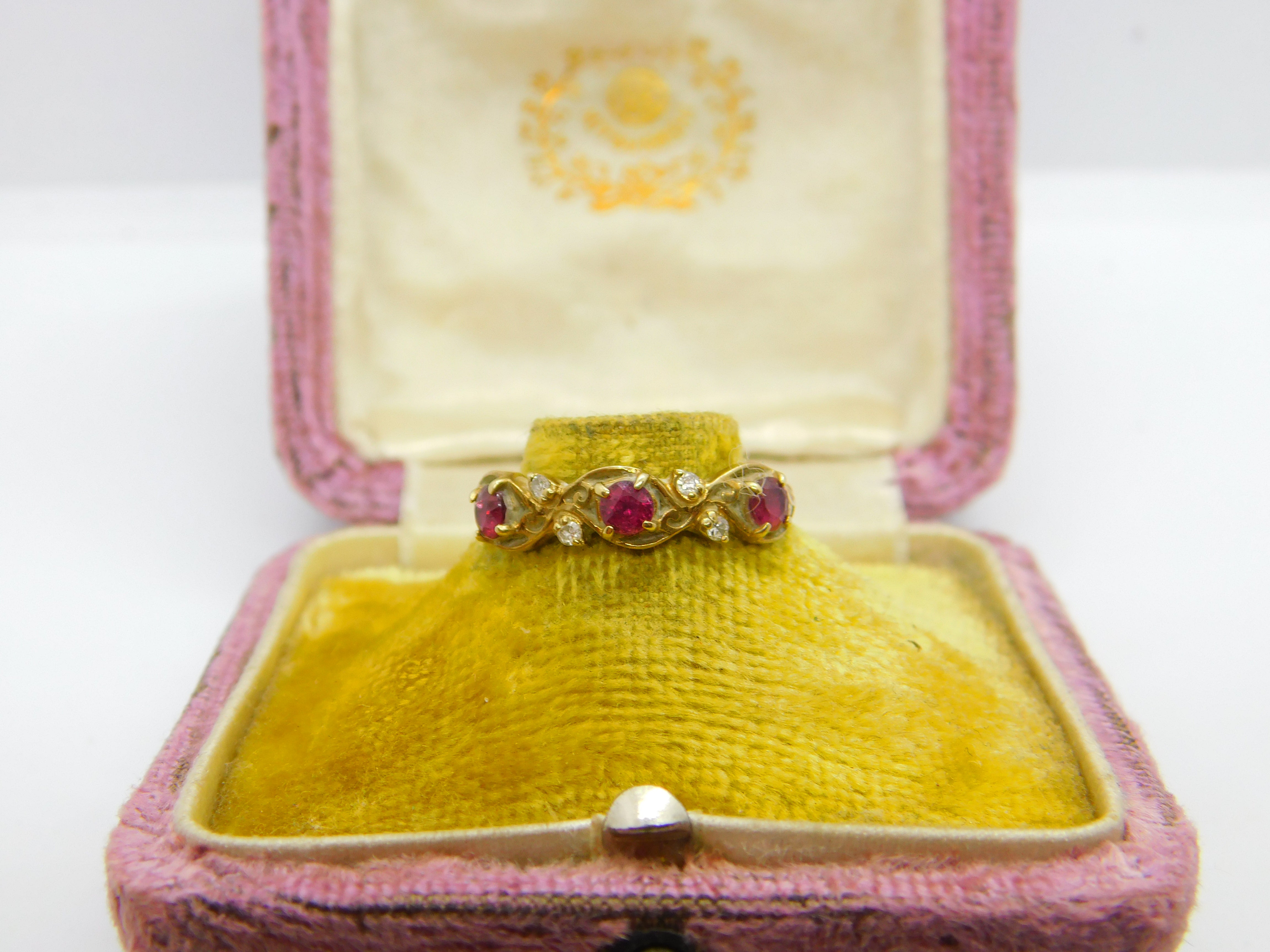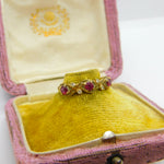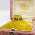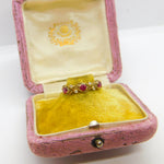 9ct Yellow Gold, Ruby & Diamond Set Nouveau Leaf Ring 1980 London Vintage