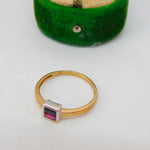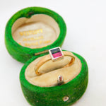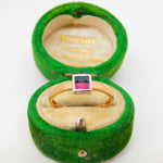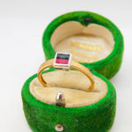 9ct Yellow Gold, Ruby & Garnet Square Solitaire Ring Vintage c1980