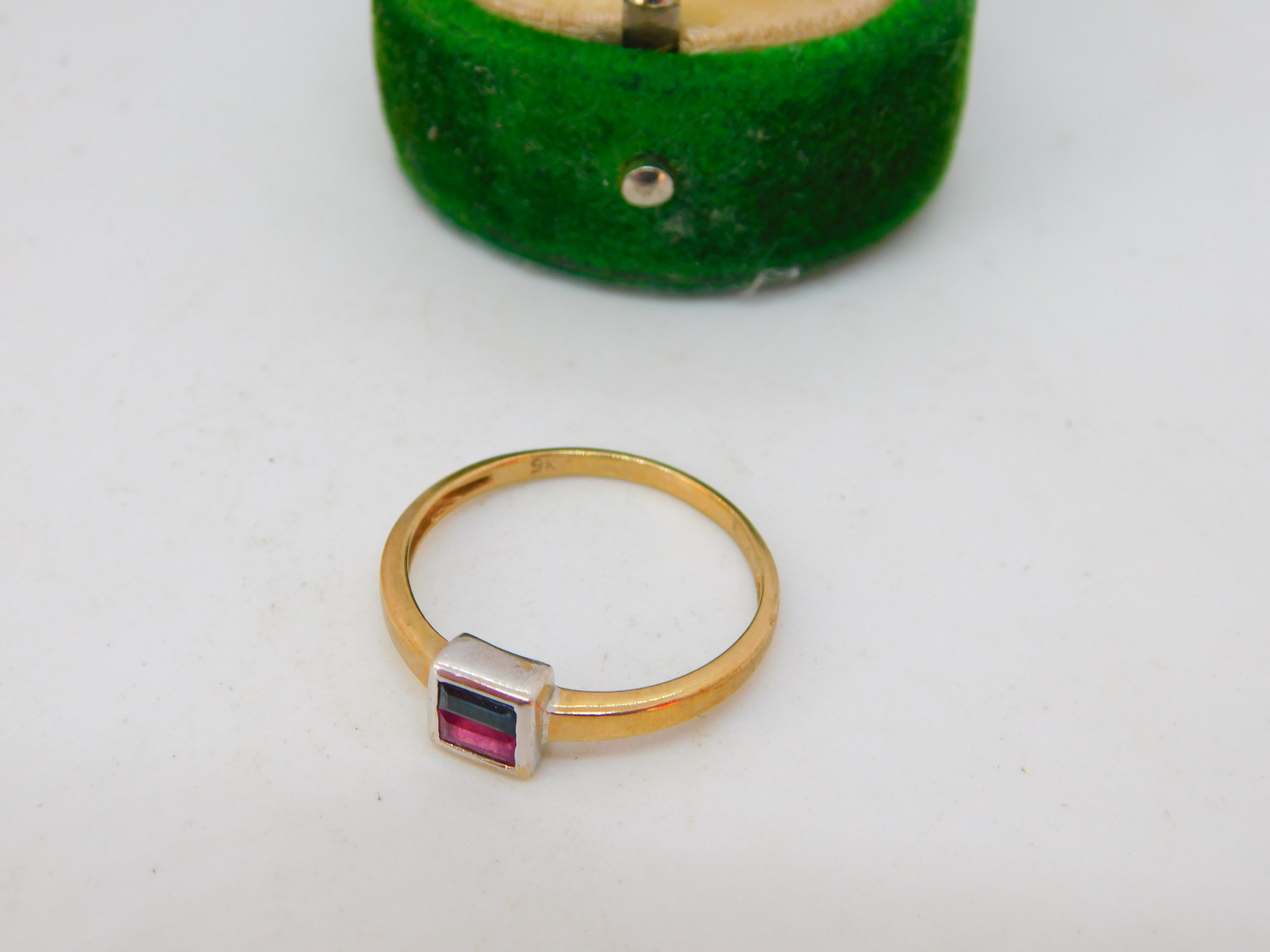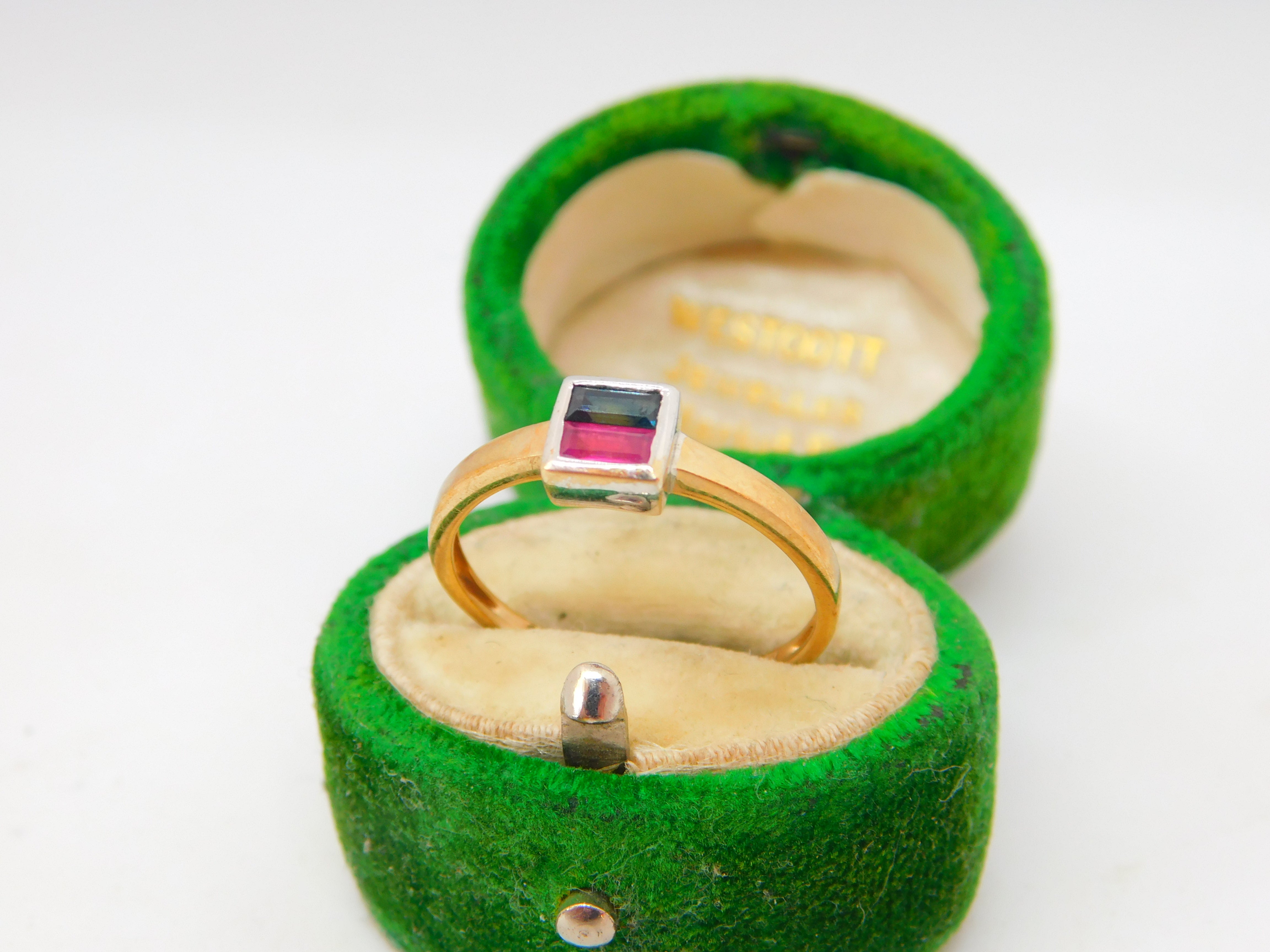 Details: A fantastic and wonderfully designed vintage 9ct yellow gold baguette cut ruby & garnet square solitaire ring hallmarked to the interior c1980. This is a wonderful item that would make a perfect gift or addition to any collection. The BOX pictured is for PRESENTATION ONLY and is NOT included in the listings but used to frame the pictures unless specifically stated otherwise.