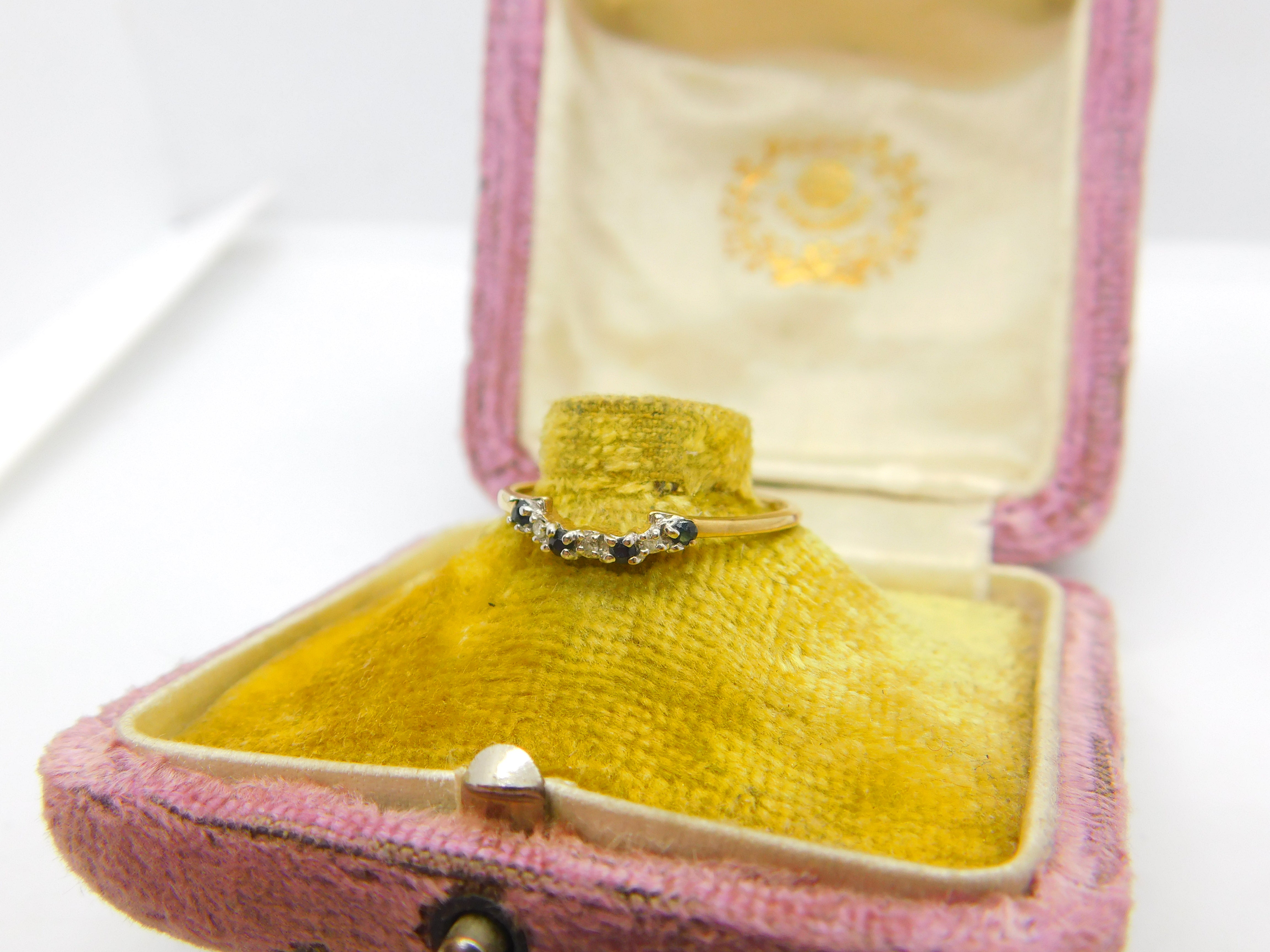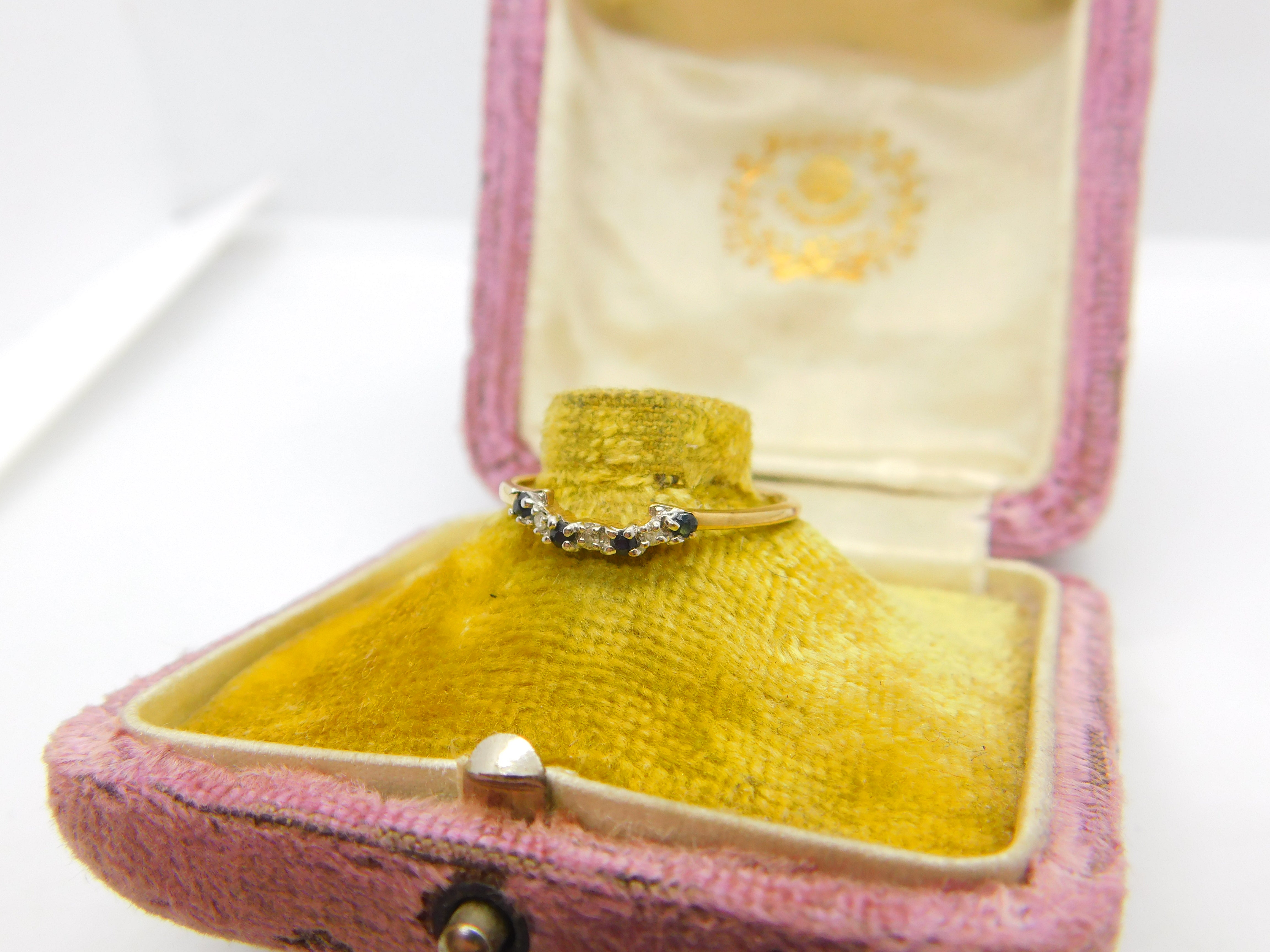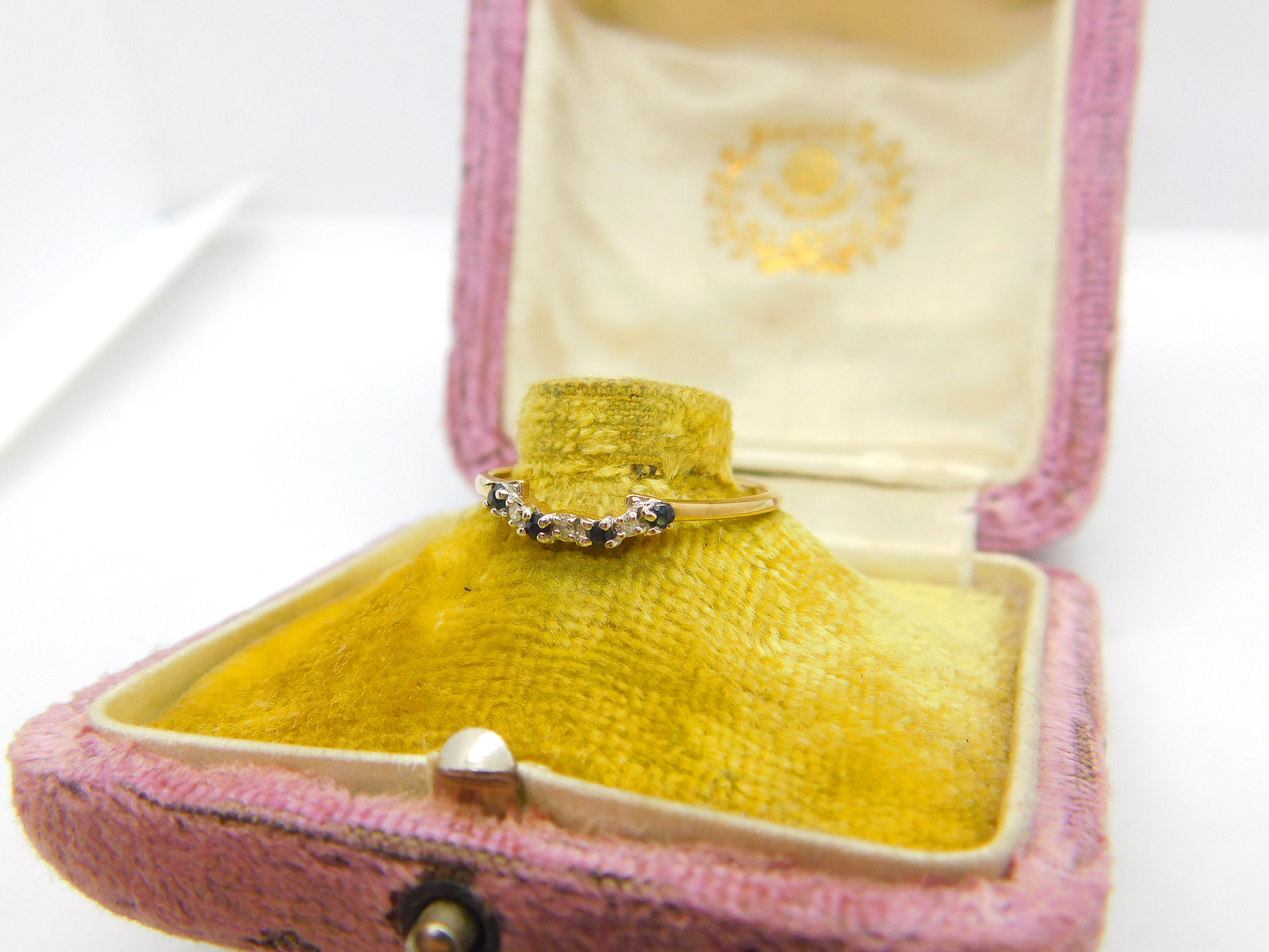 9ct Yellow Gold, Sapphire & Diamond Band Ring Vintage c1980 Sheffield