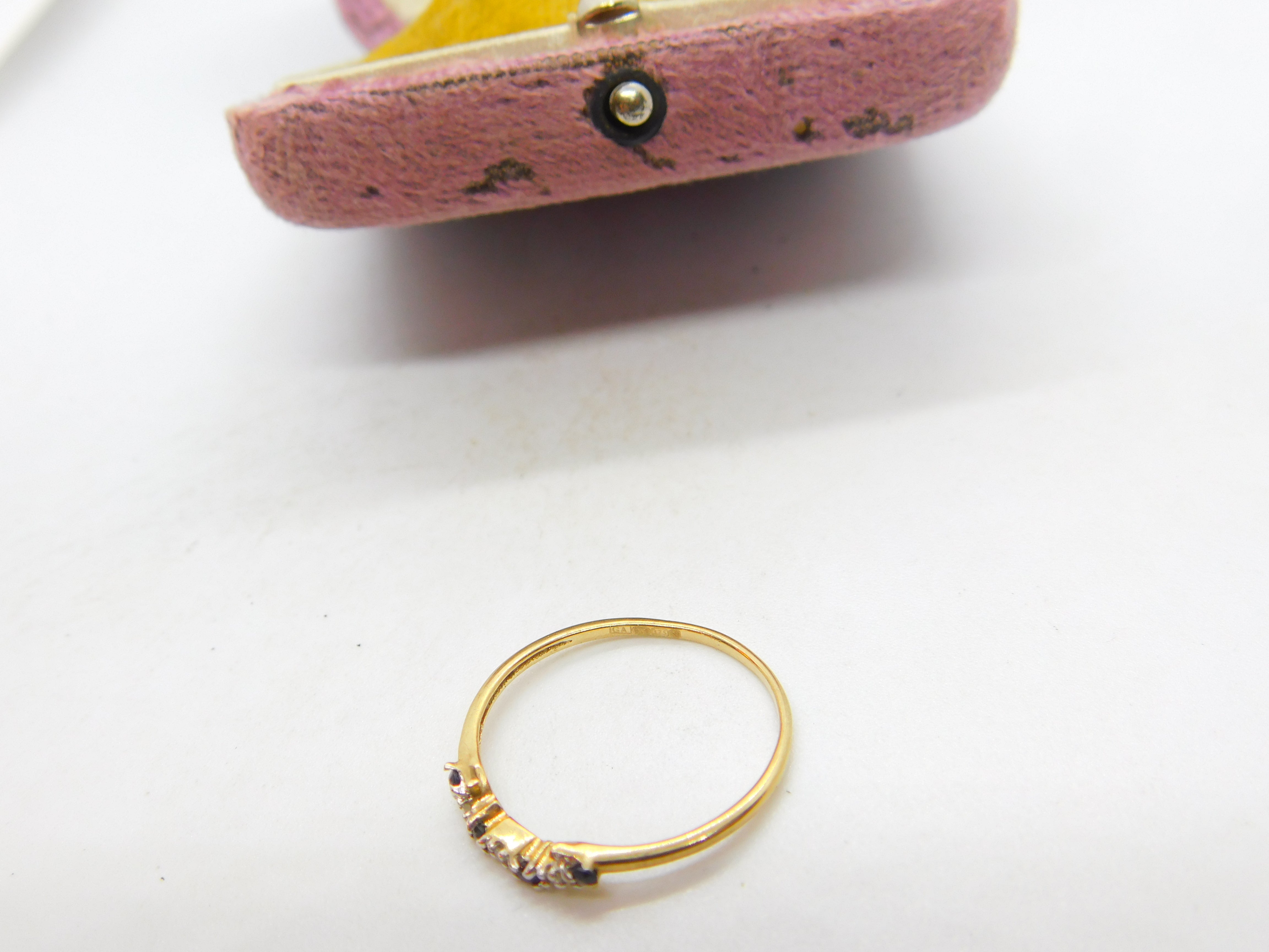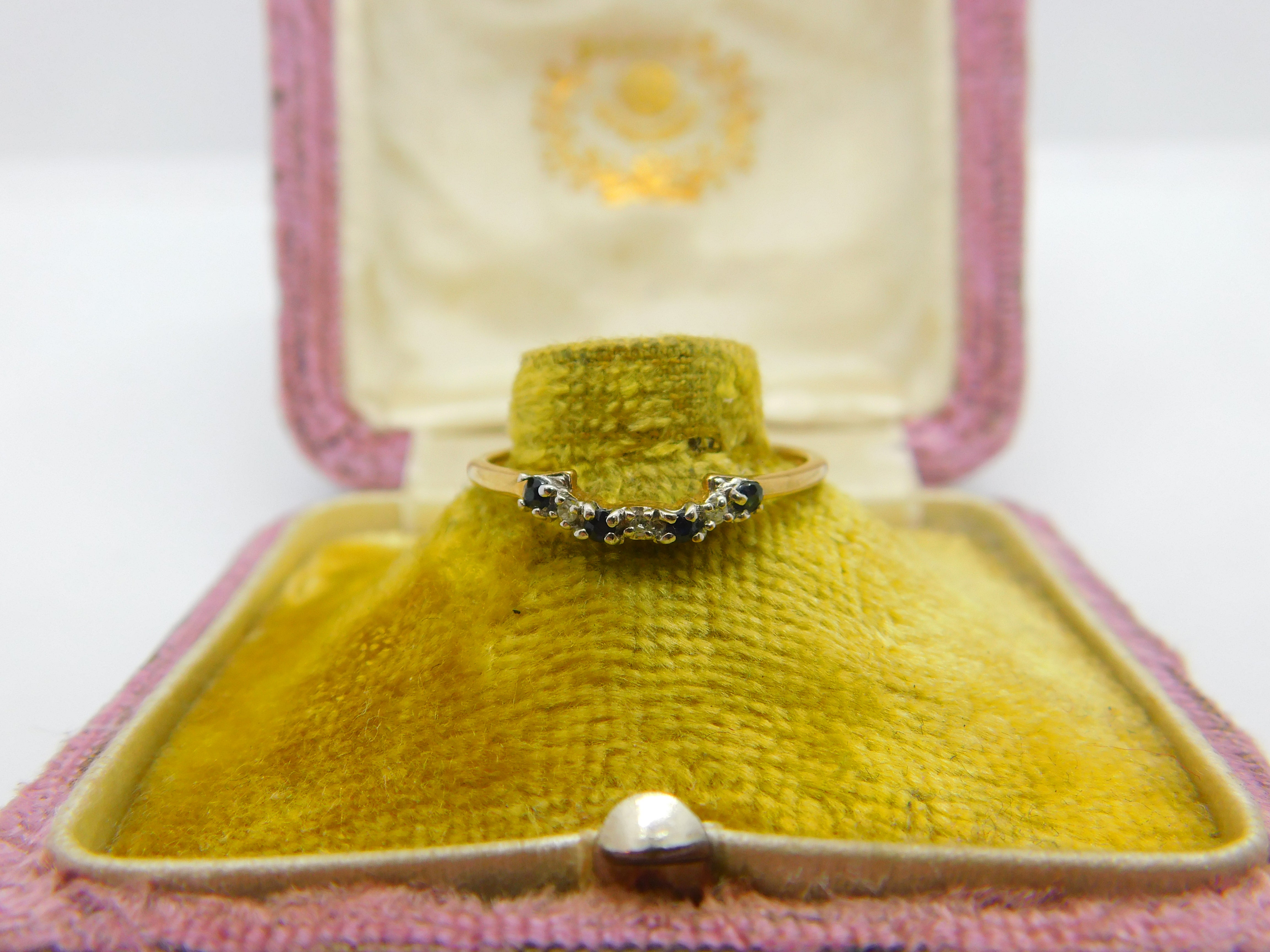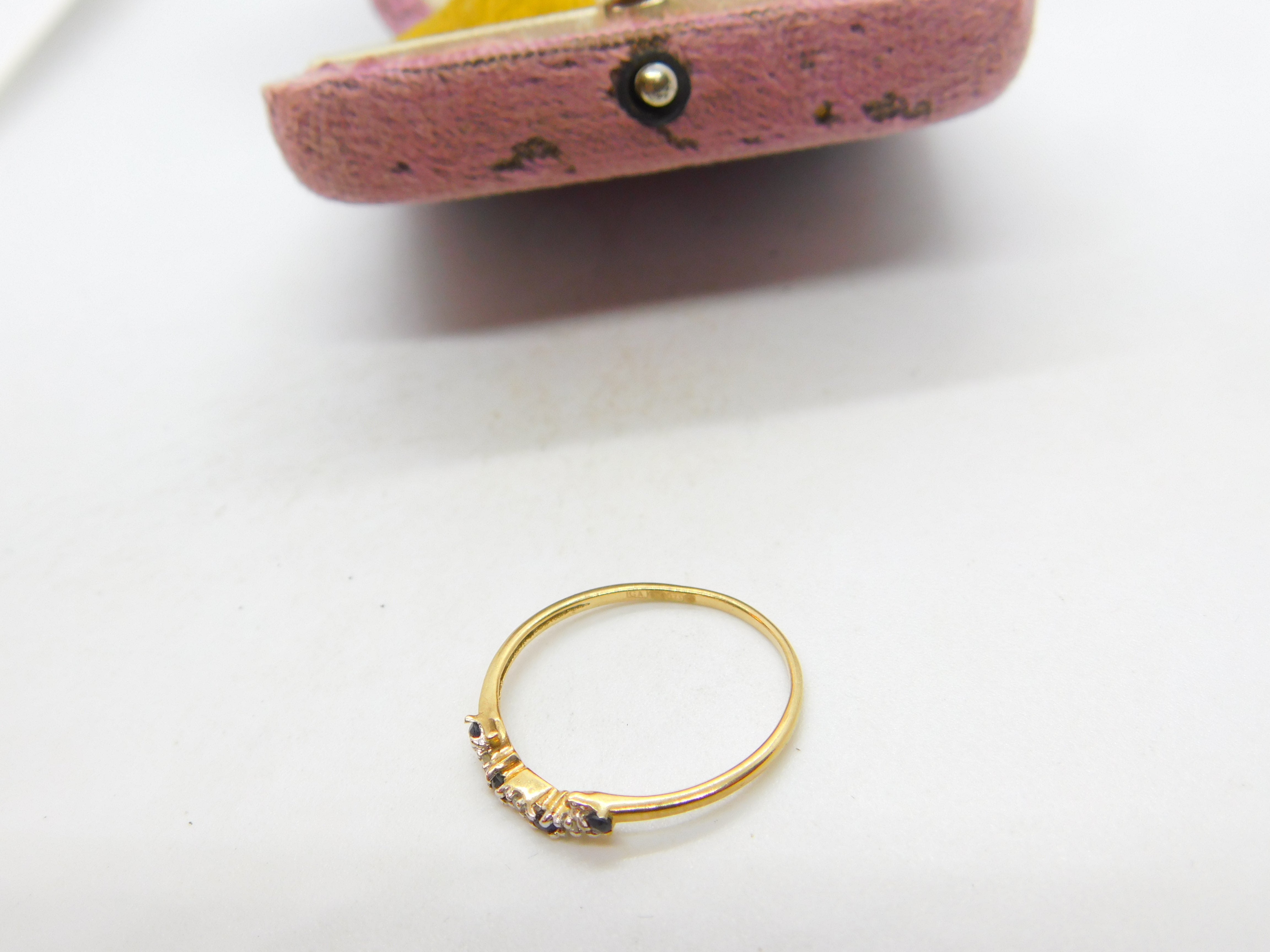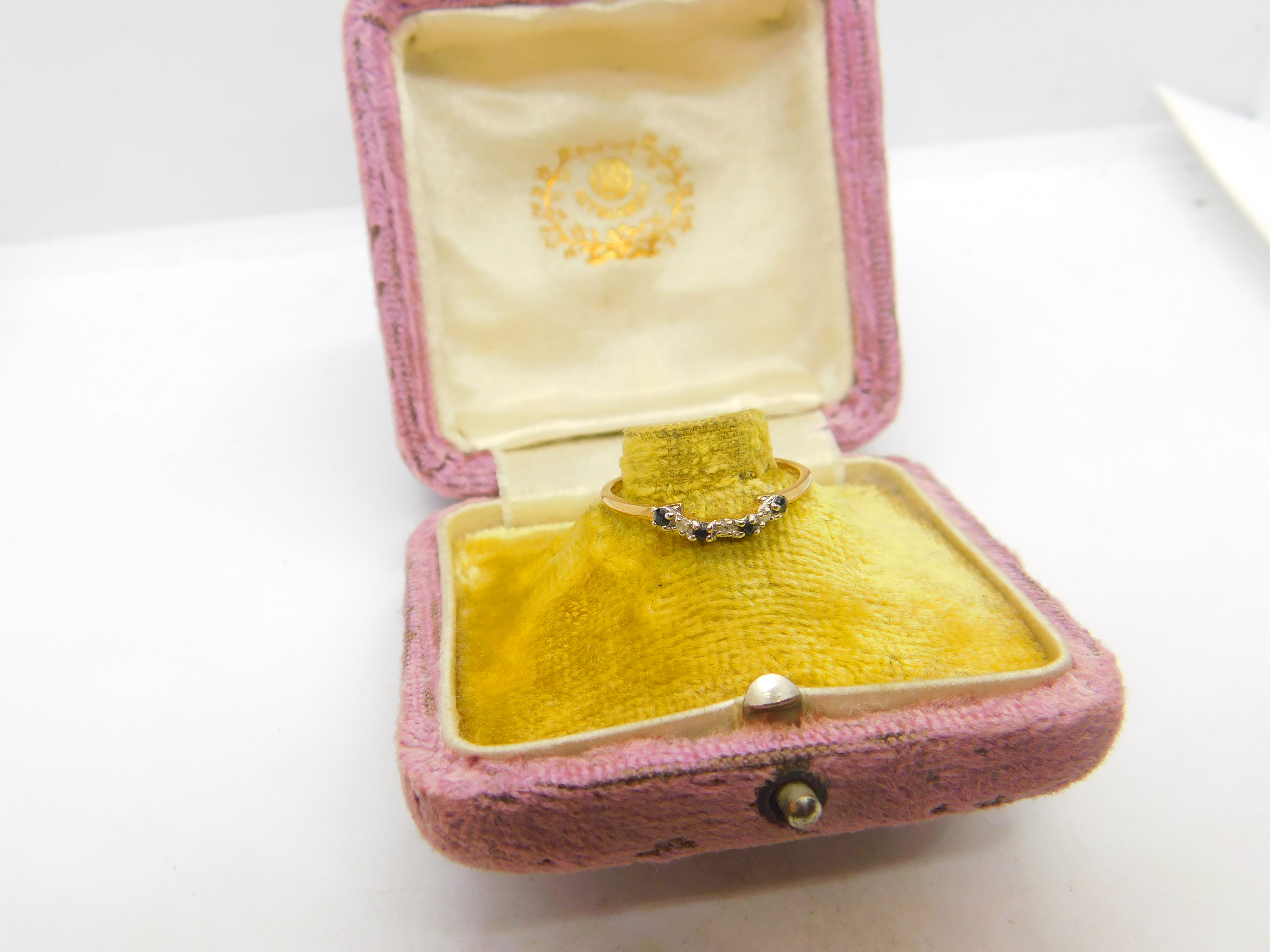 9ct Yellow Gold, Sapphire & Diamond Band Ring Vintage c1980 Sheffield