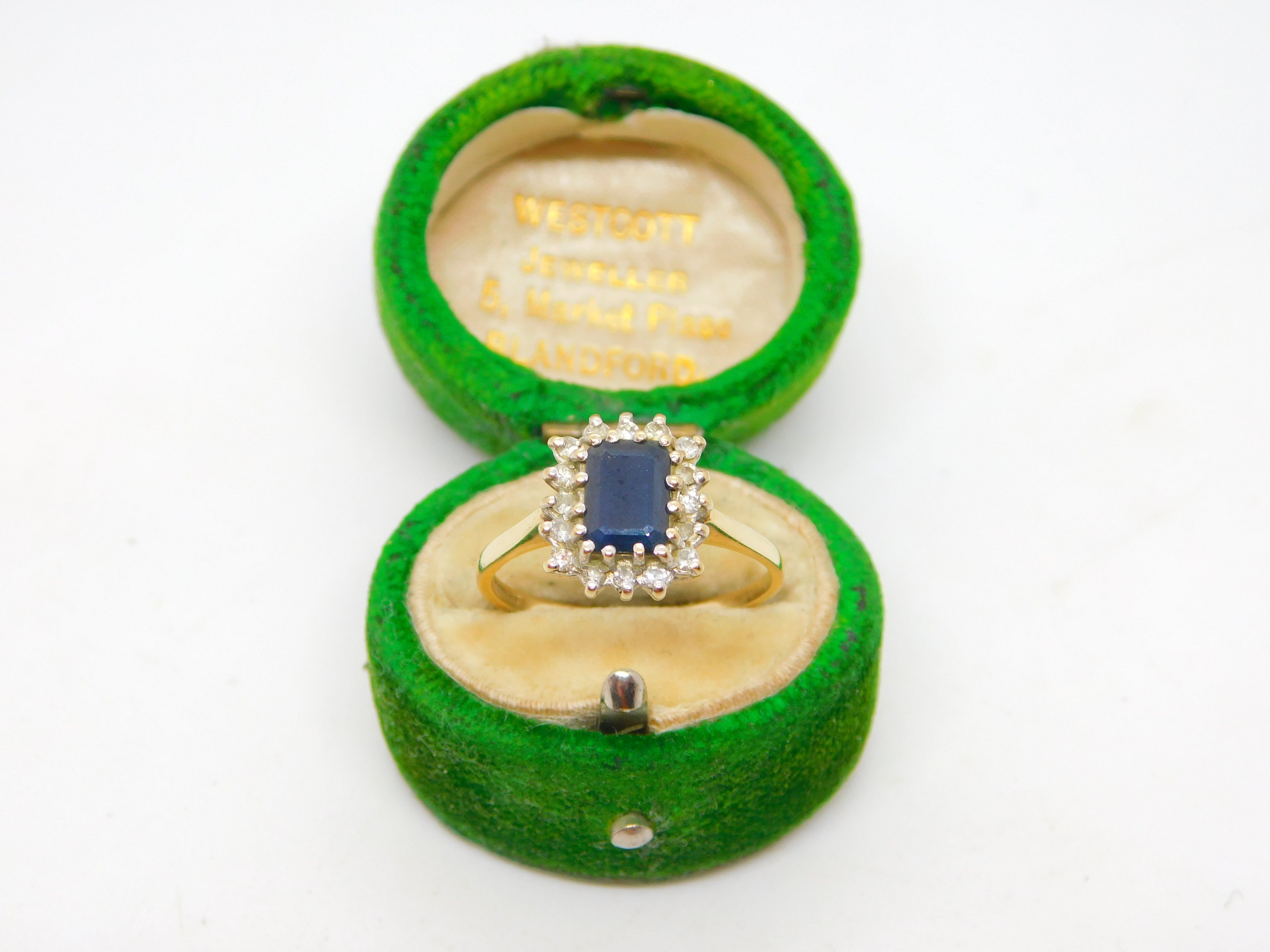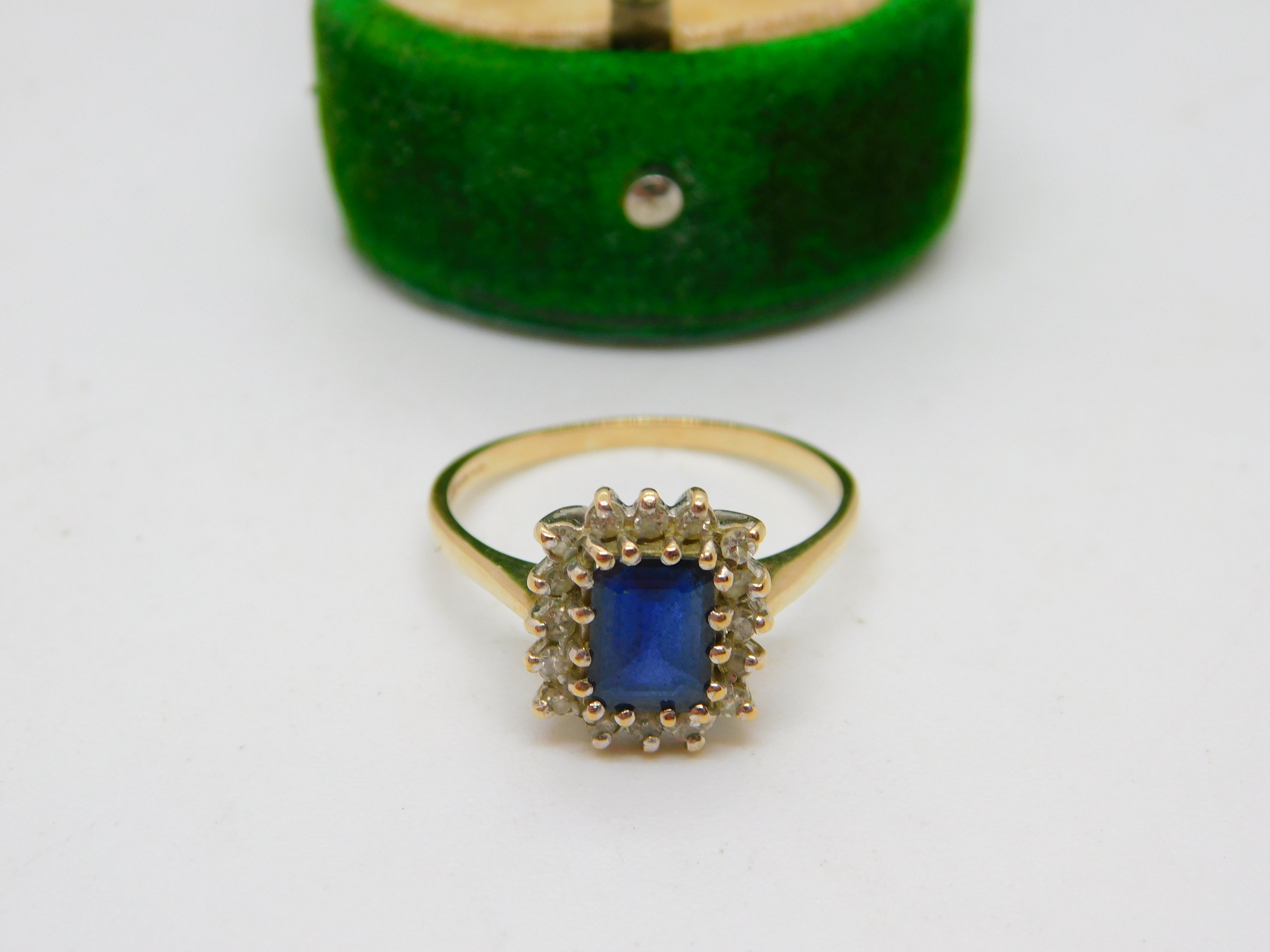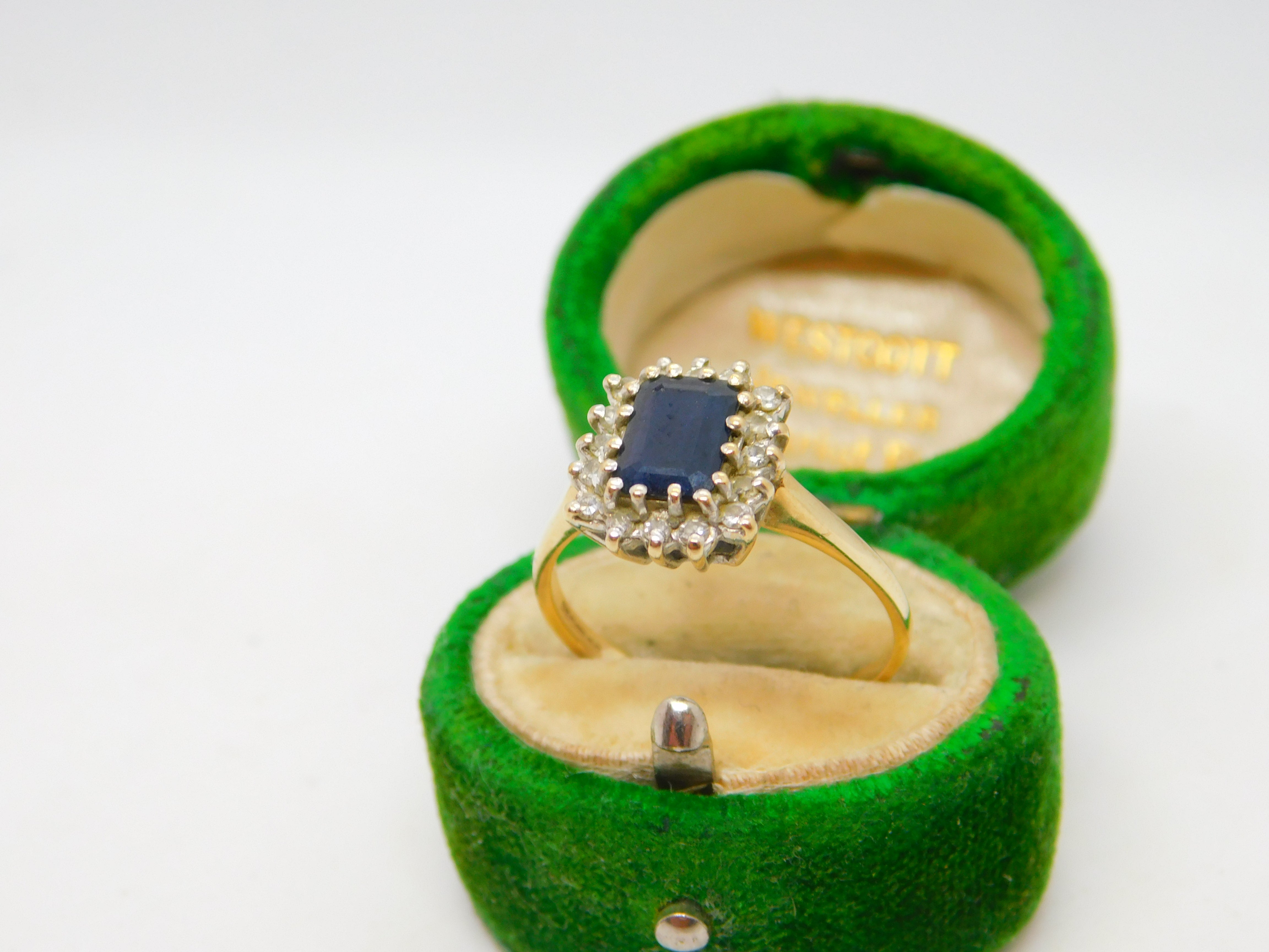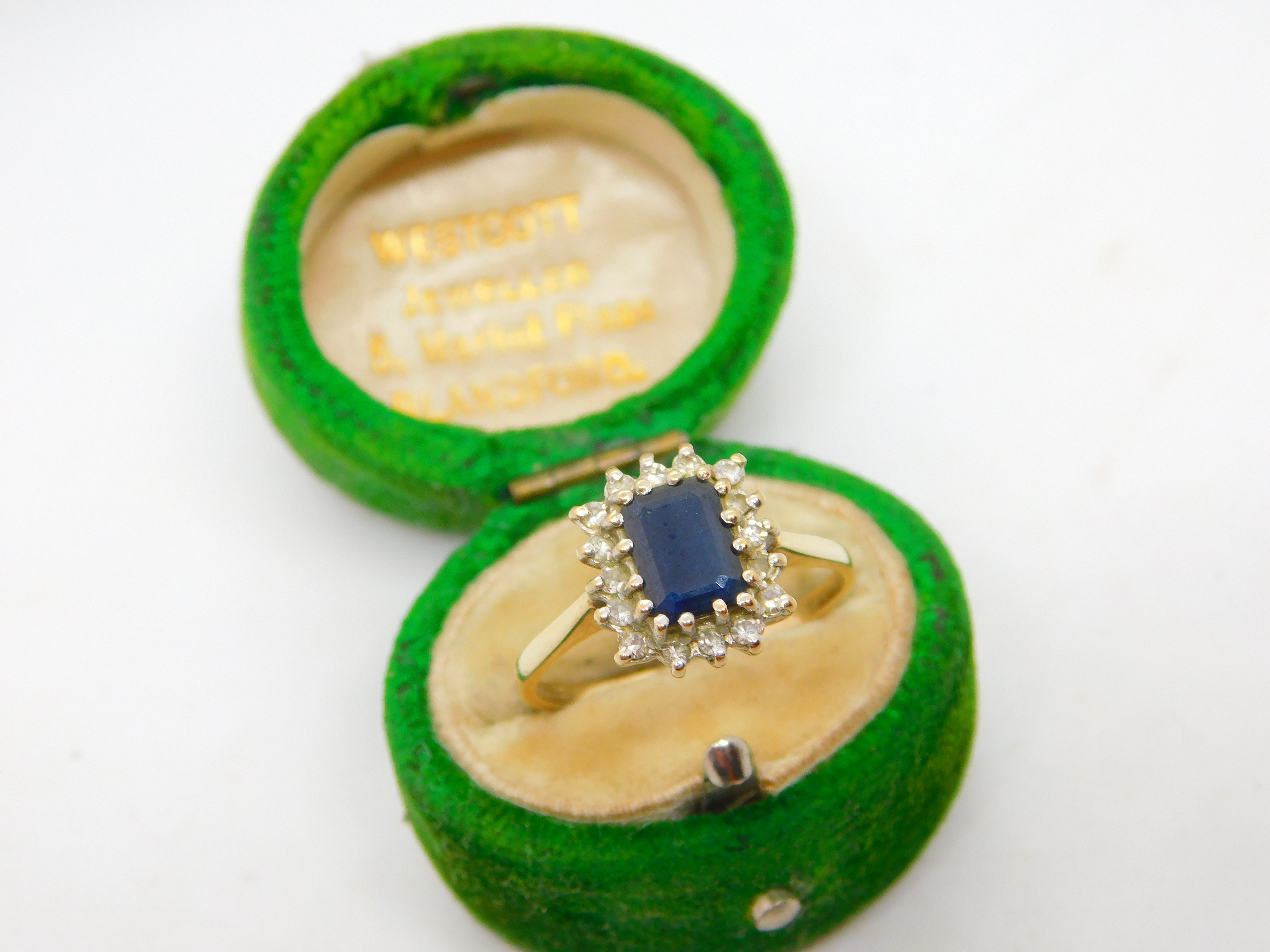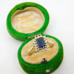 9ct Yellow Gold, Sapphire & Diamond Engagement Ring Vintage c1970 Birmingham