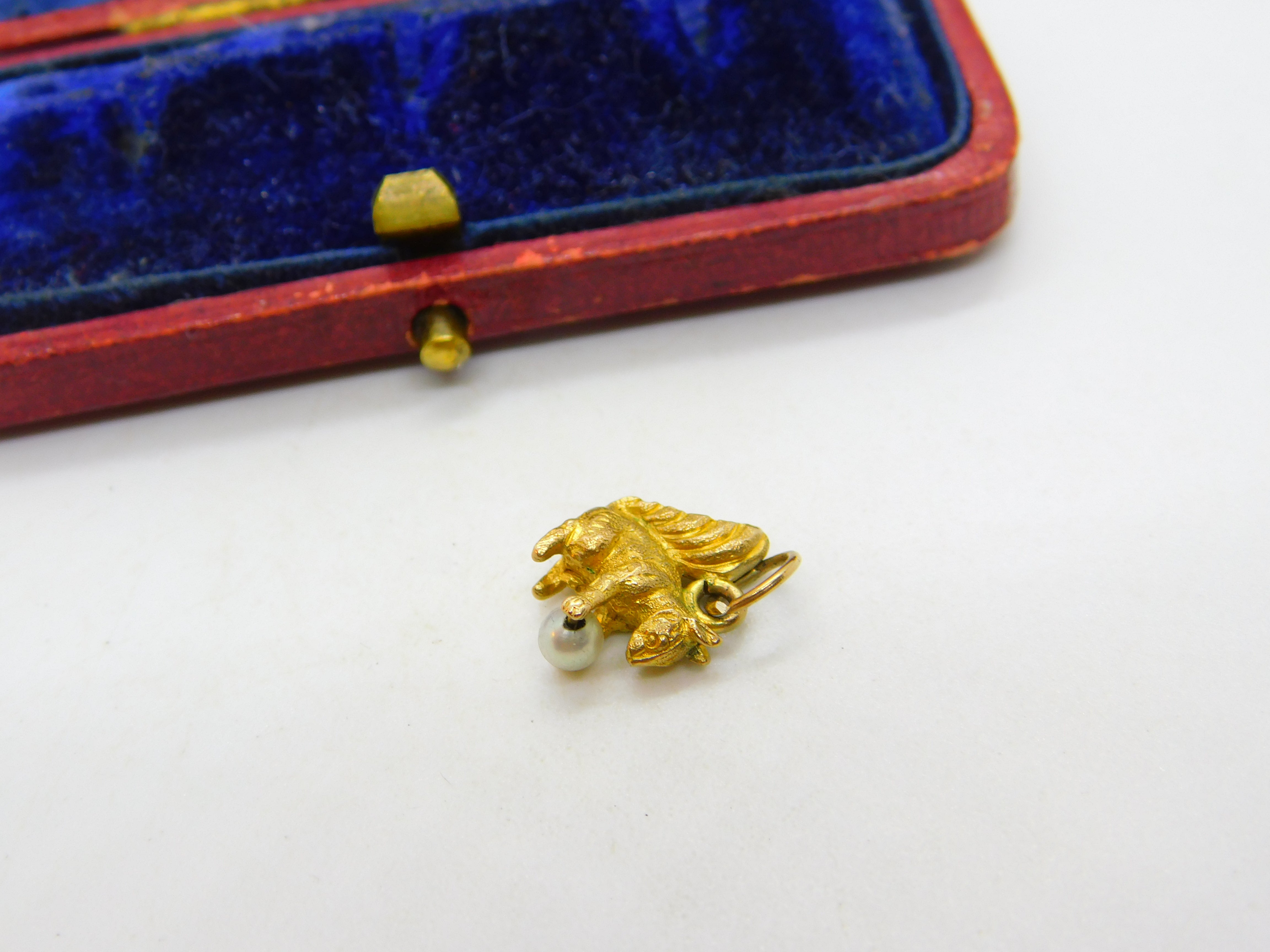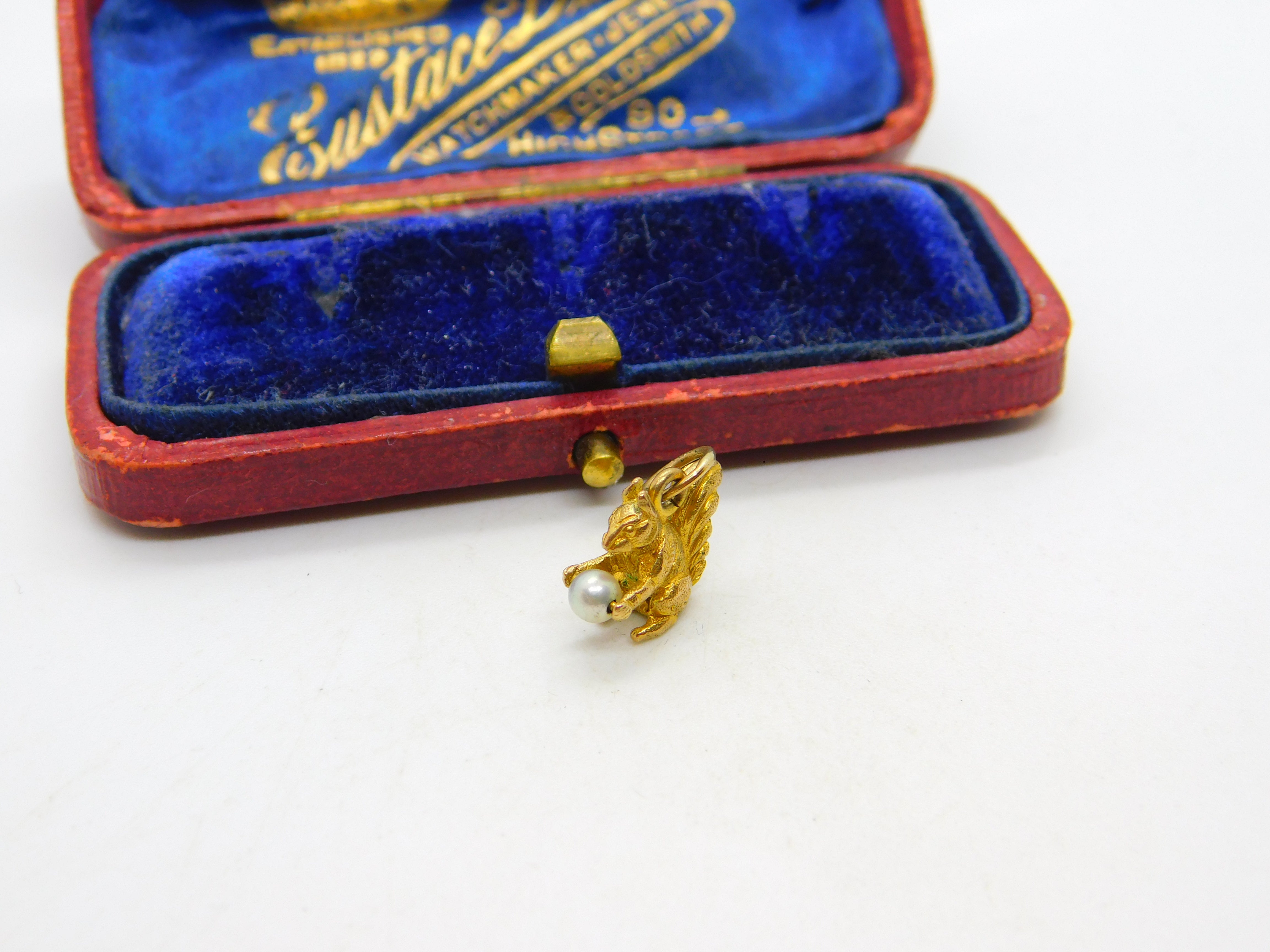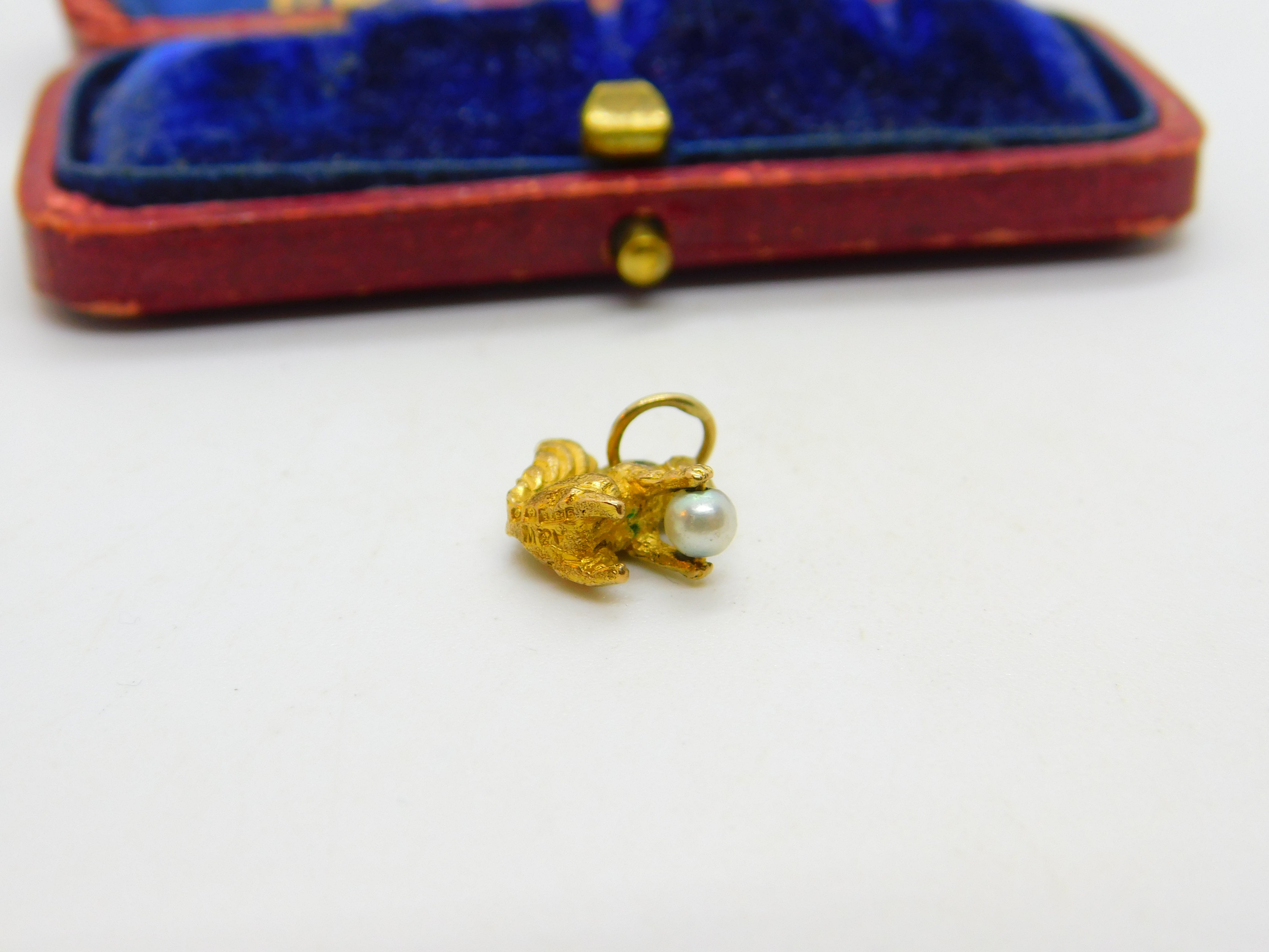 9ct Yellow Gold Squirrel with the Pearl Nut Charm Pendant 1963 Birmingham