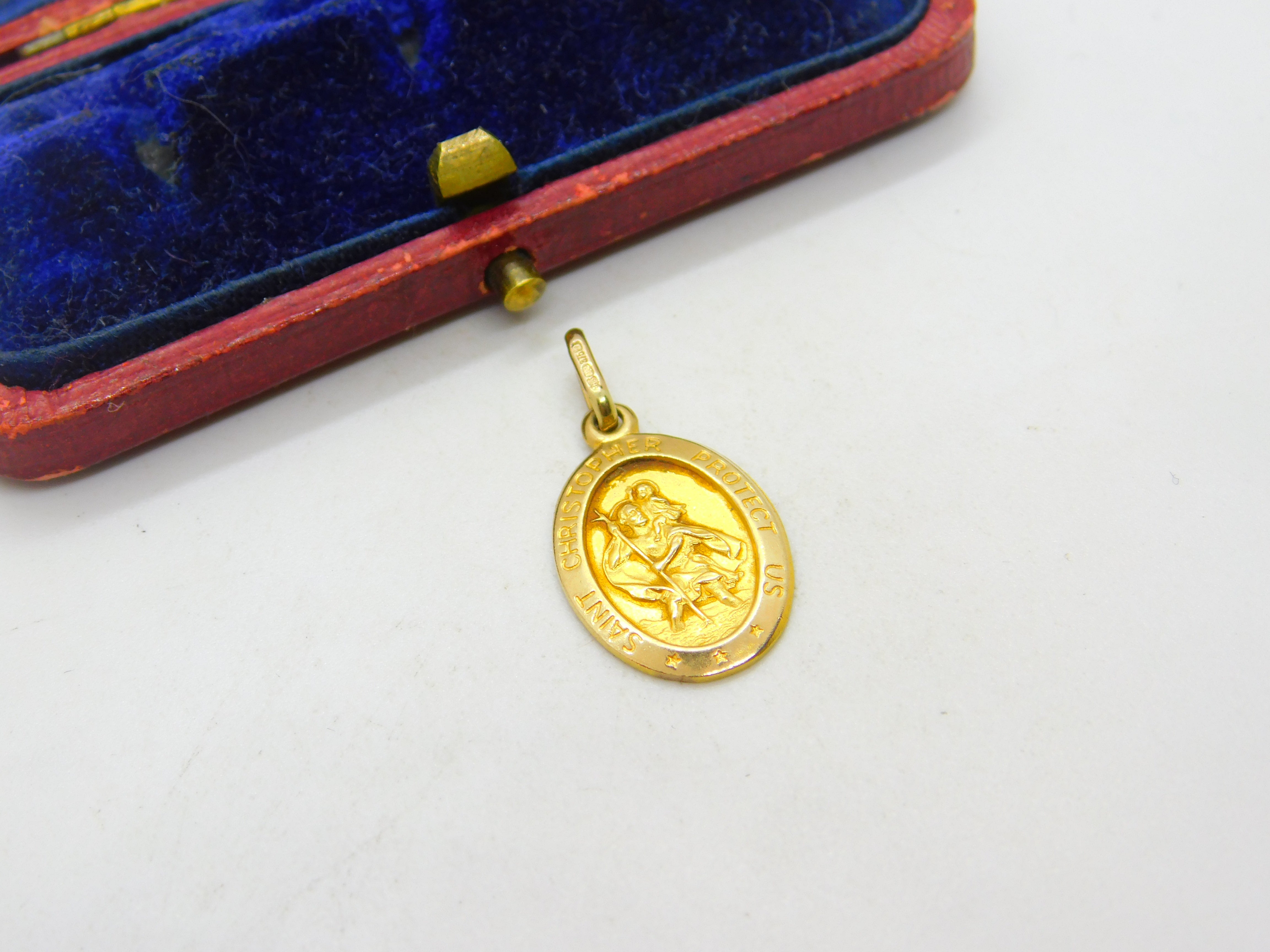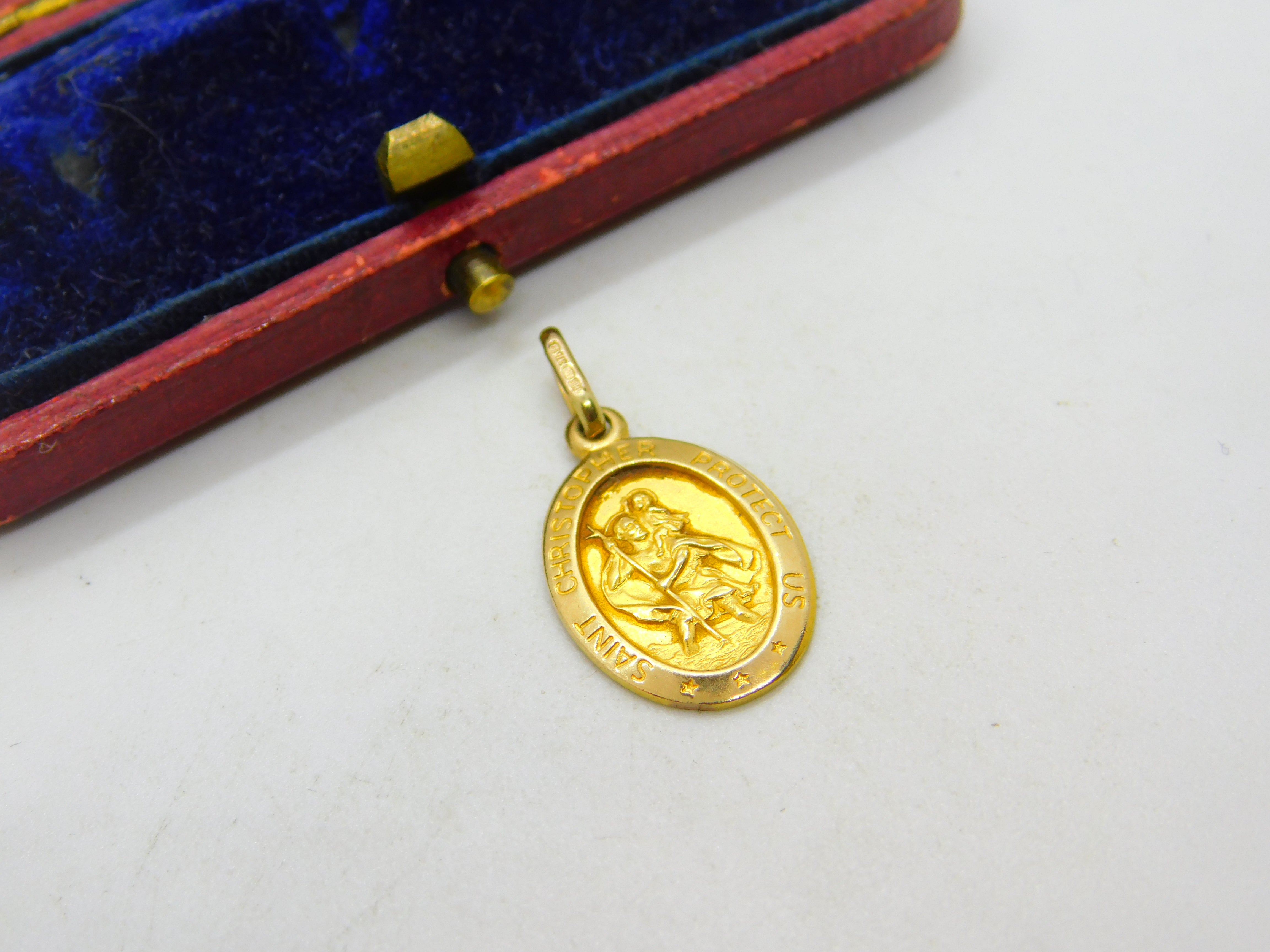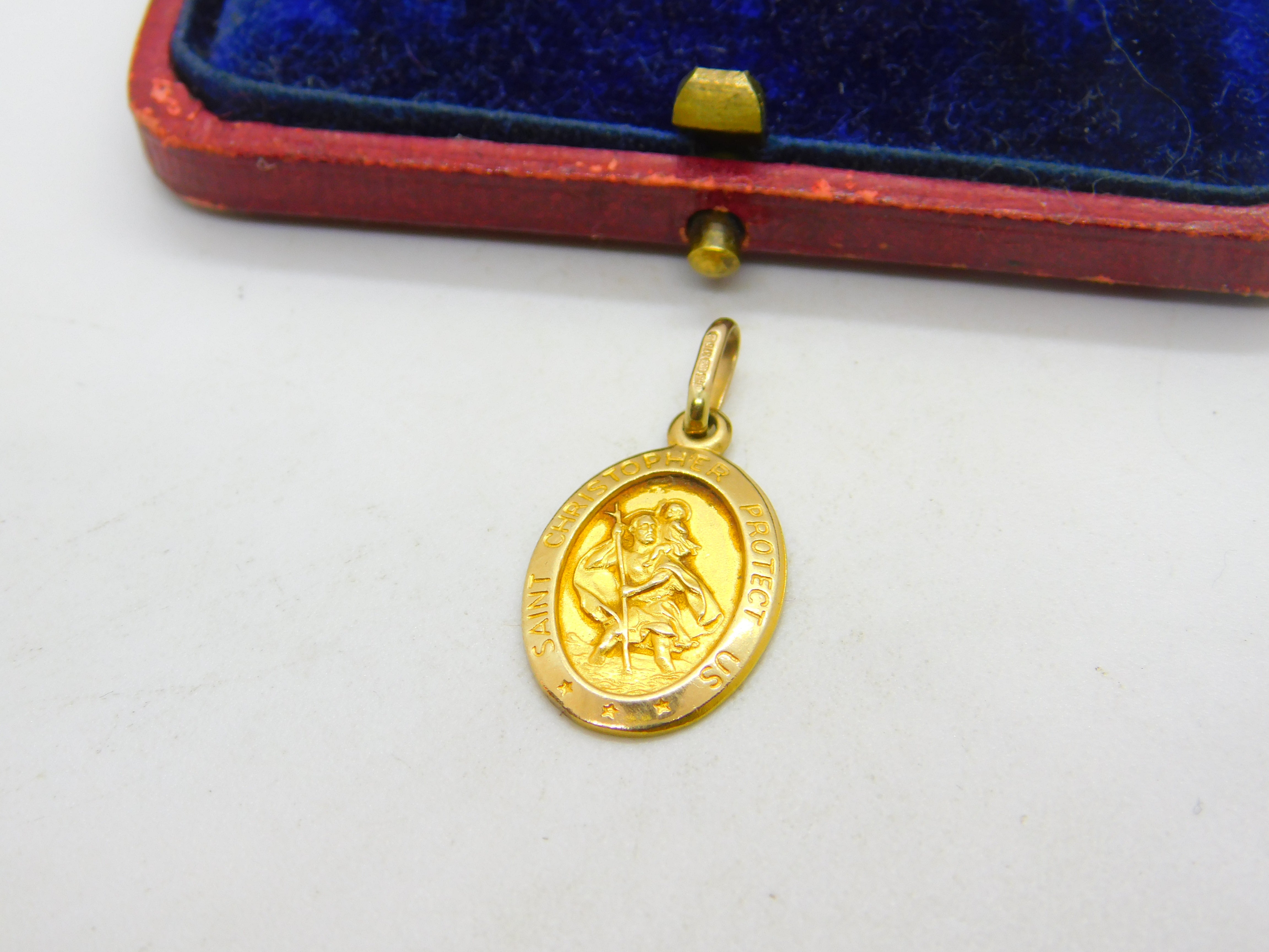 9ct Yellow Gold St Christopher Protect Us Charm Pendant Vintage c1970