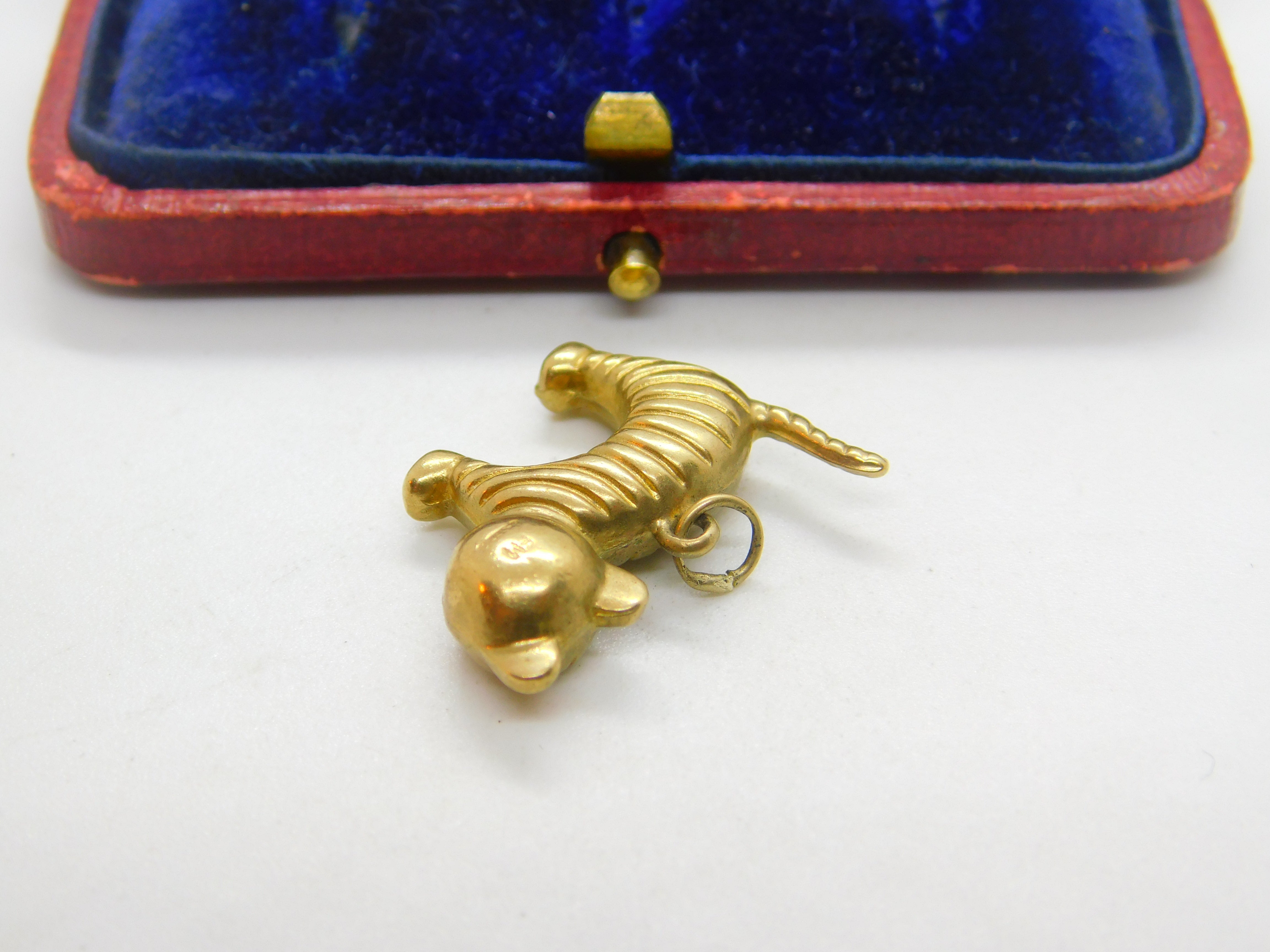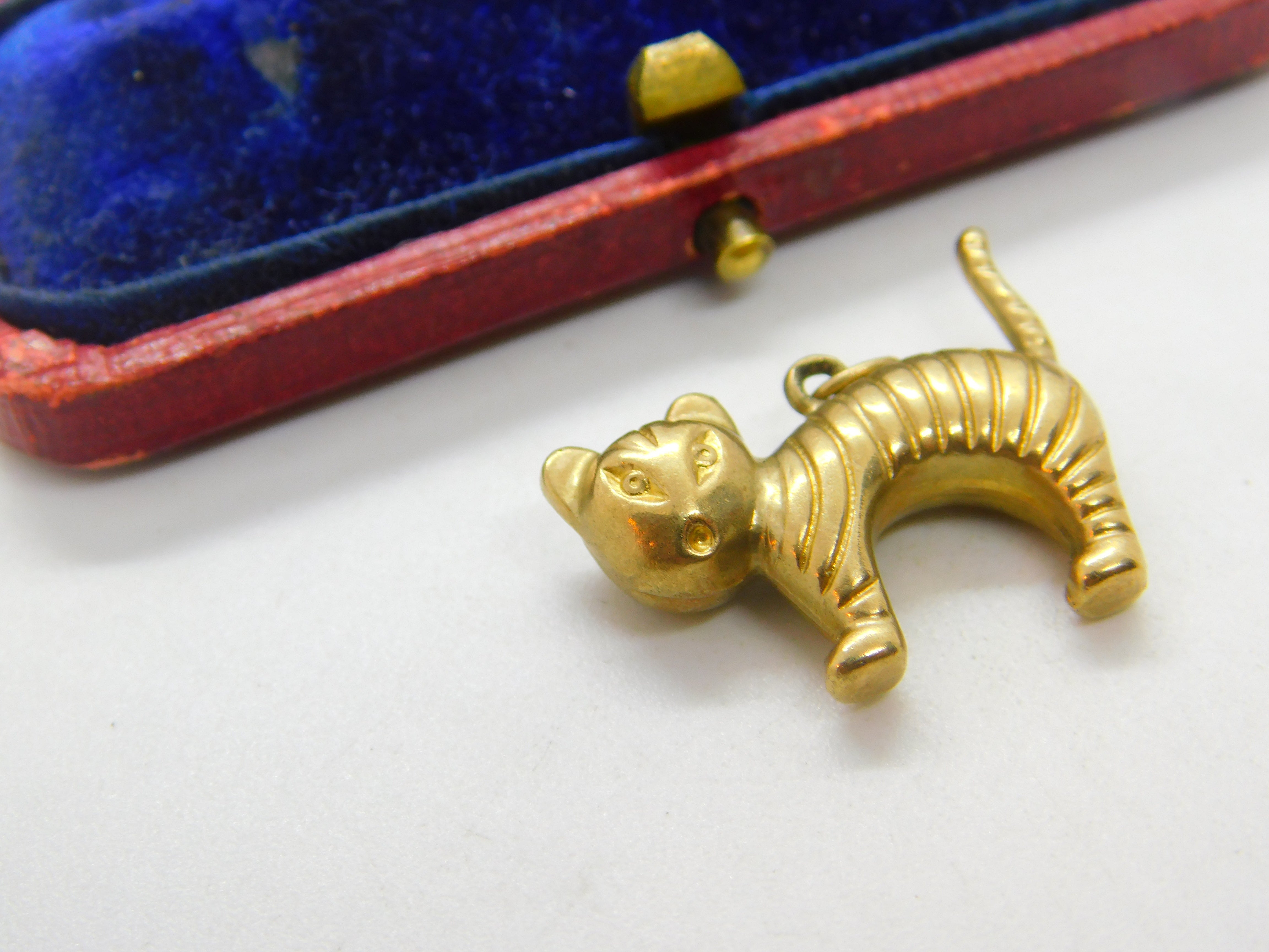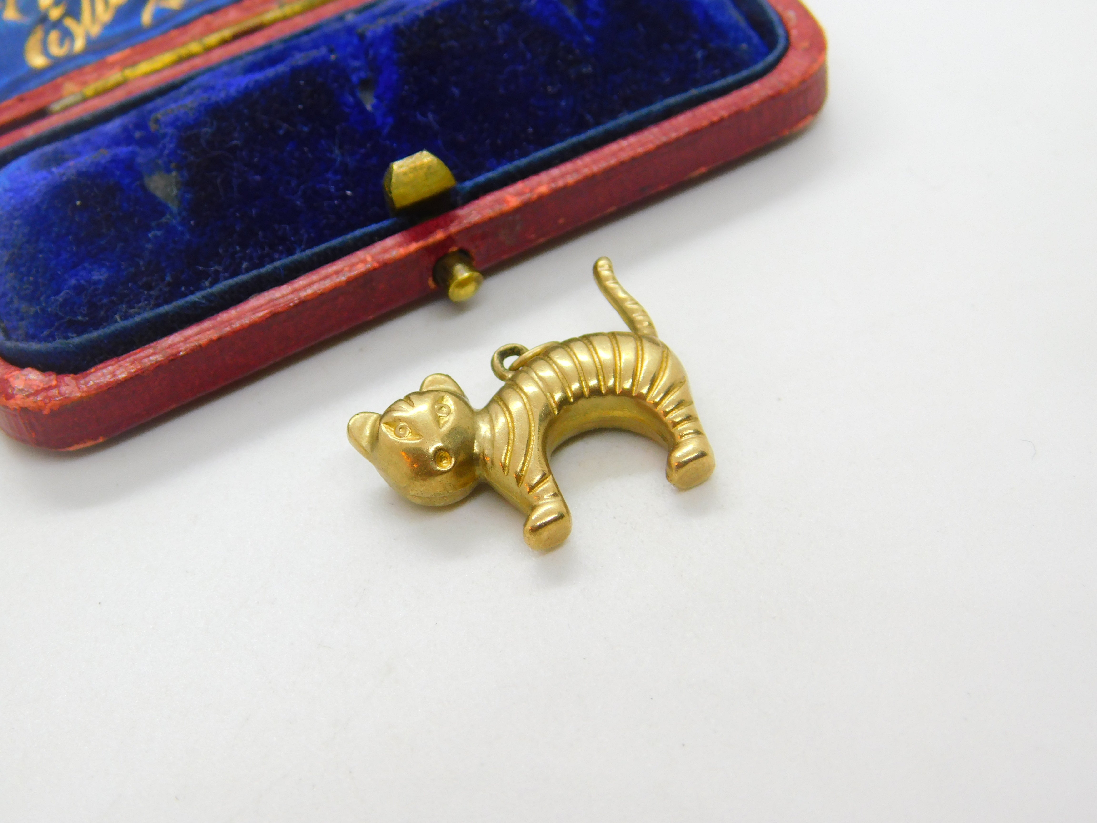 9ct Yellow Gold Startled Cat Kitten Charm Pendant Vintage c1970 Birmingham