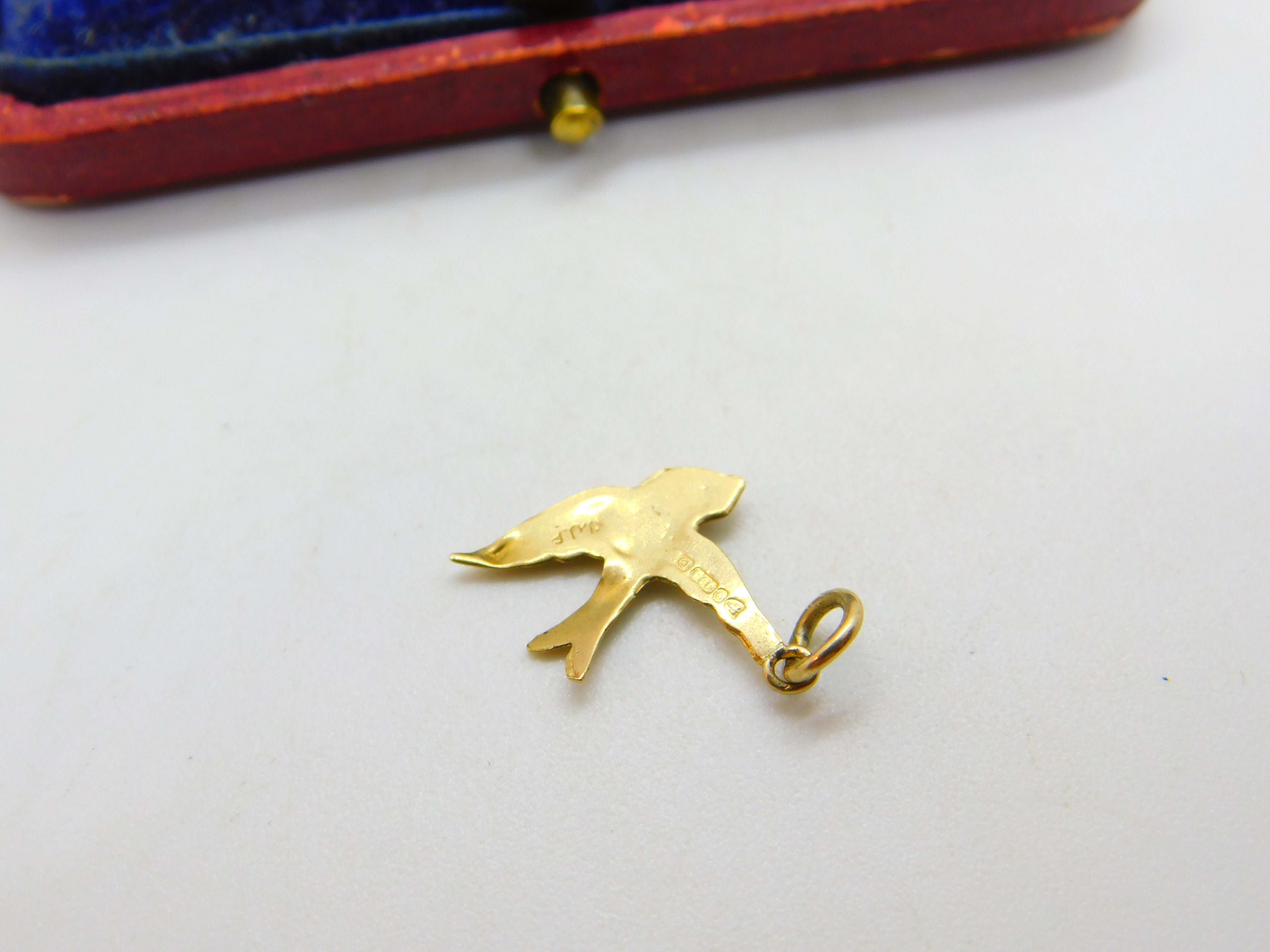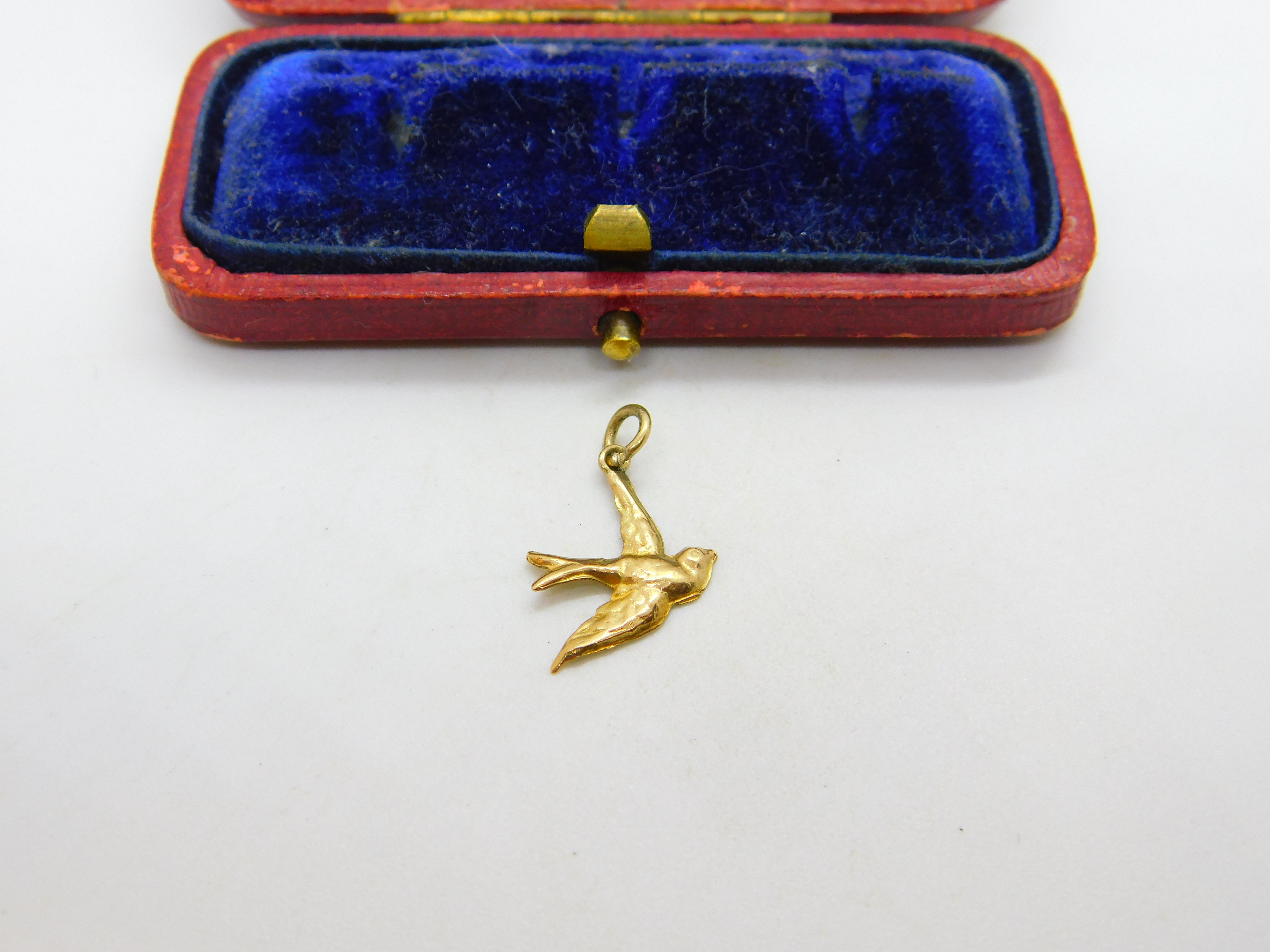 9ct Yellow Gold Swallow Bird Sweetheart Charm Pendant 1954 Chester