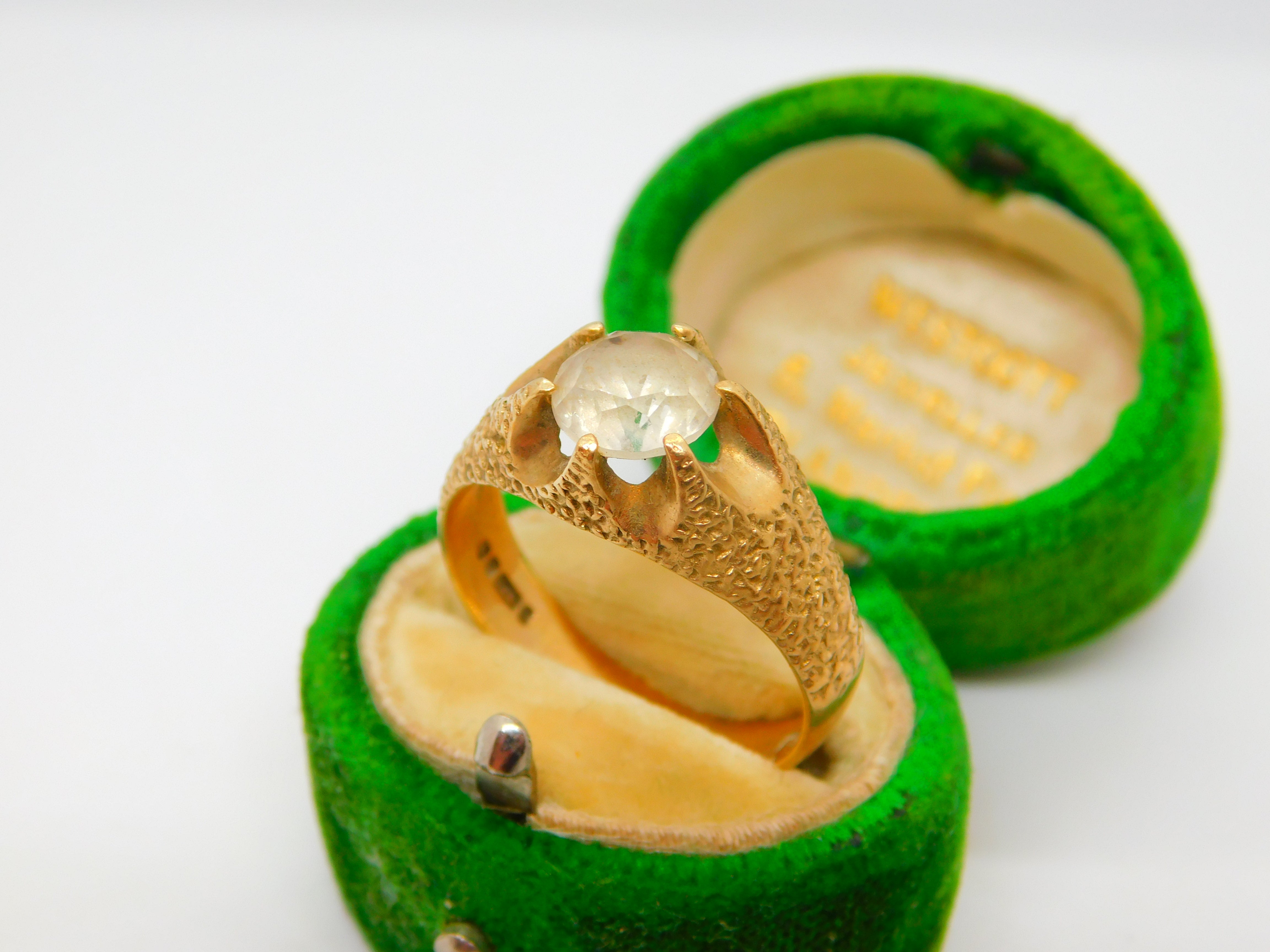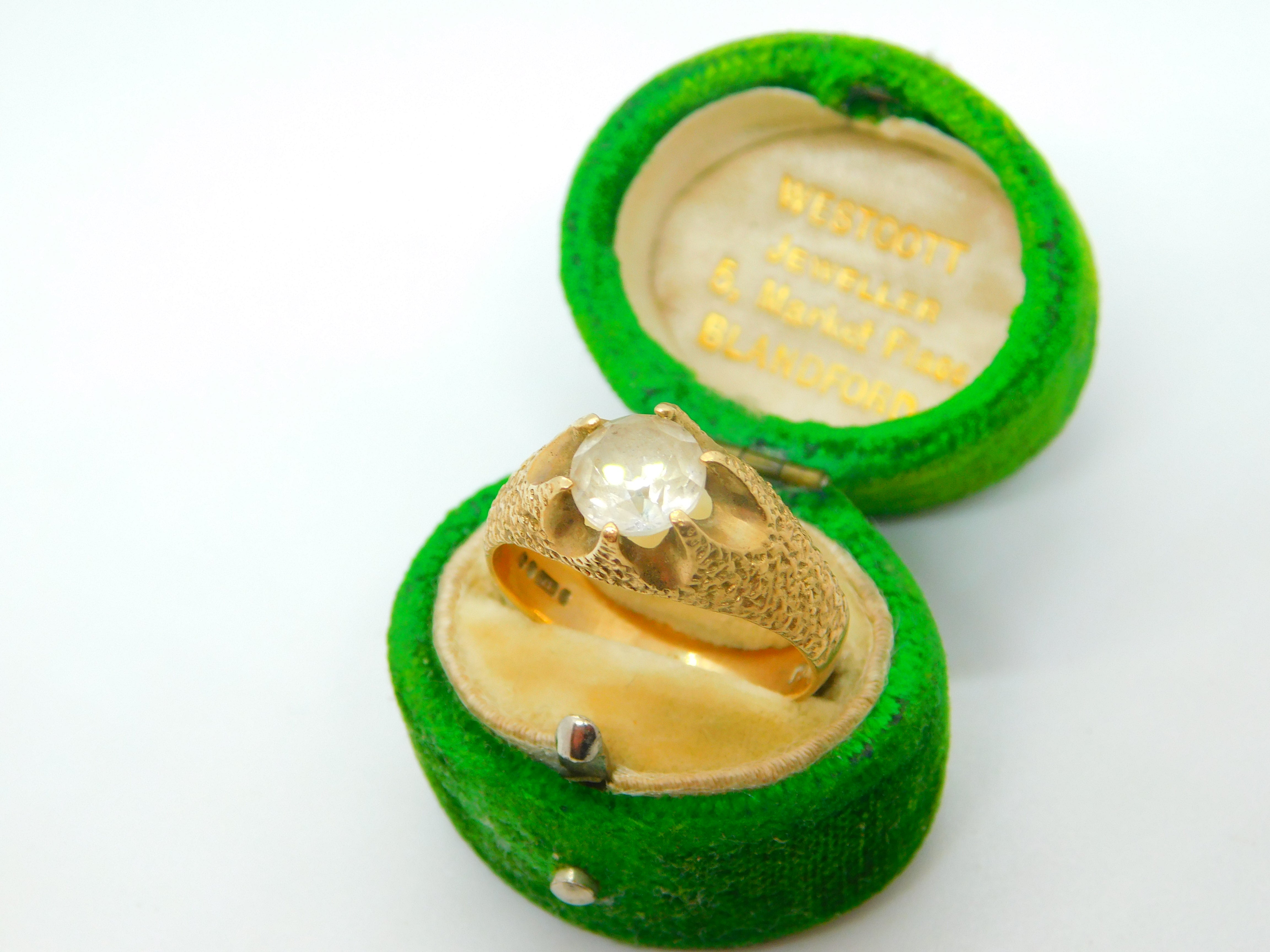 9ct Yellow Gold Textured Claw Set Spinel Dress Ring Vintage 1972 London