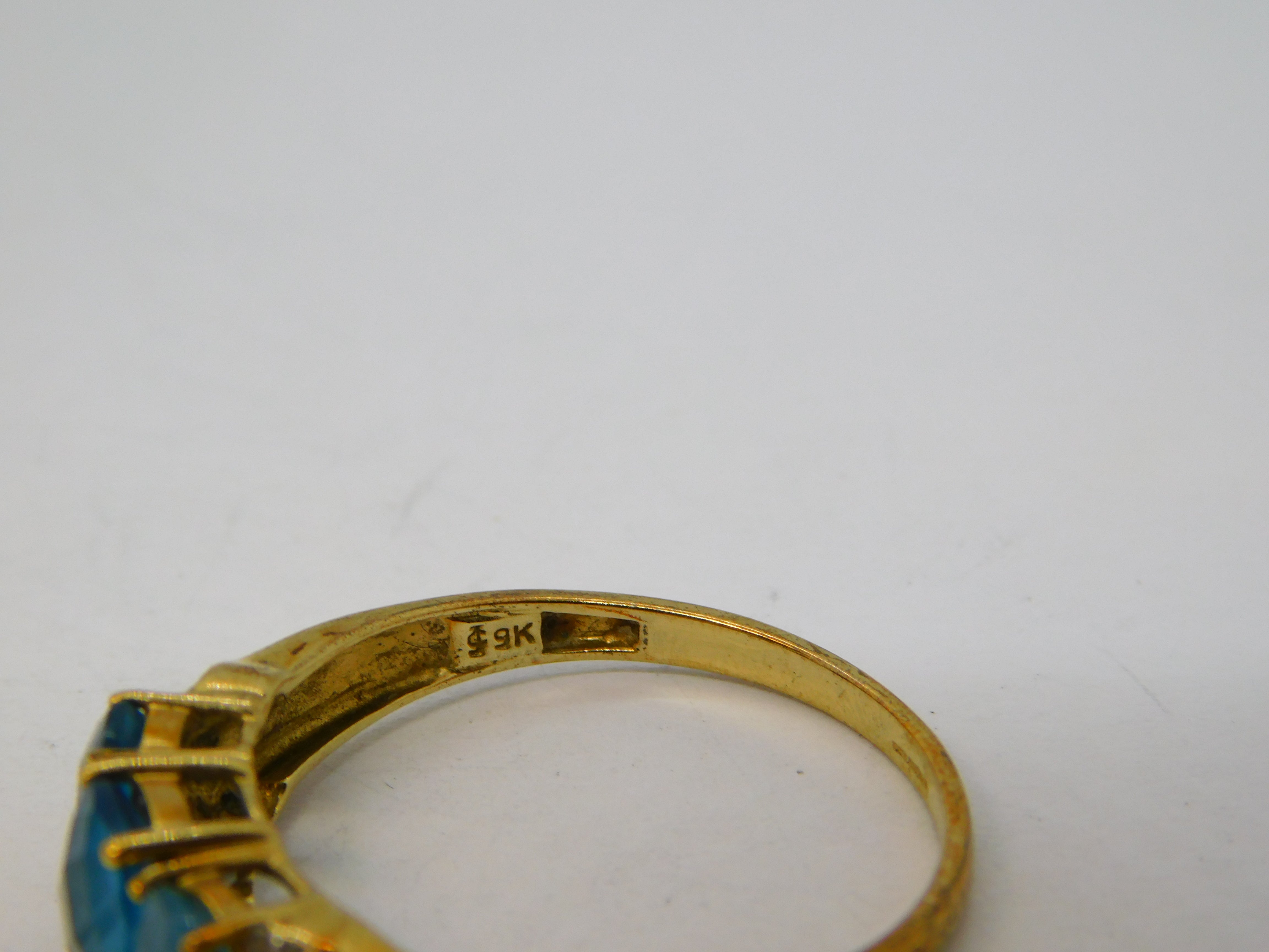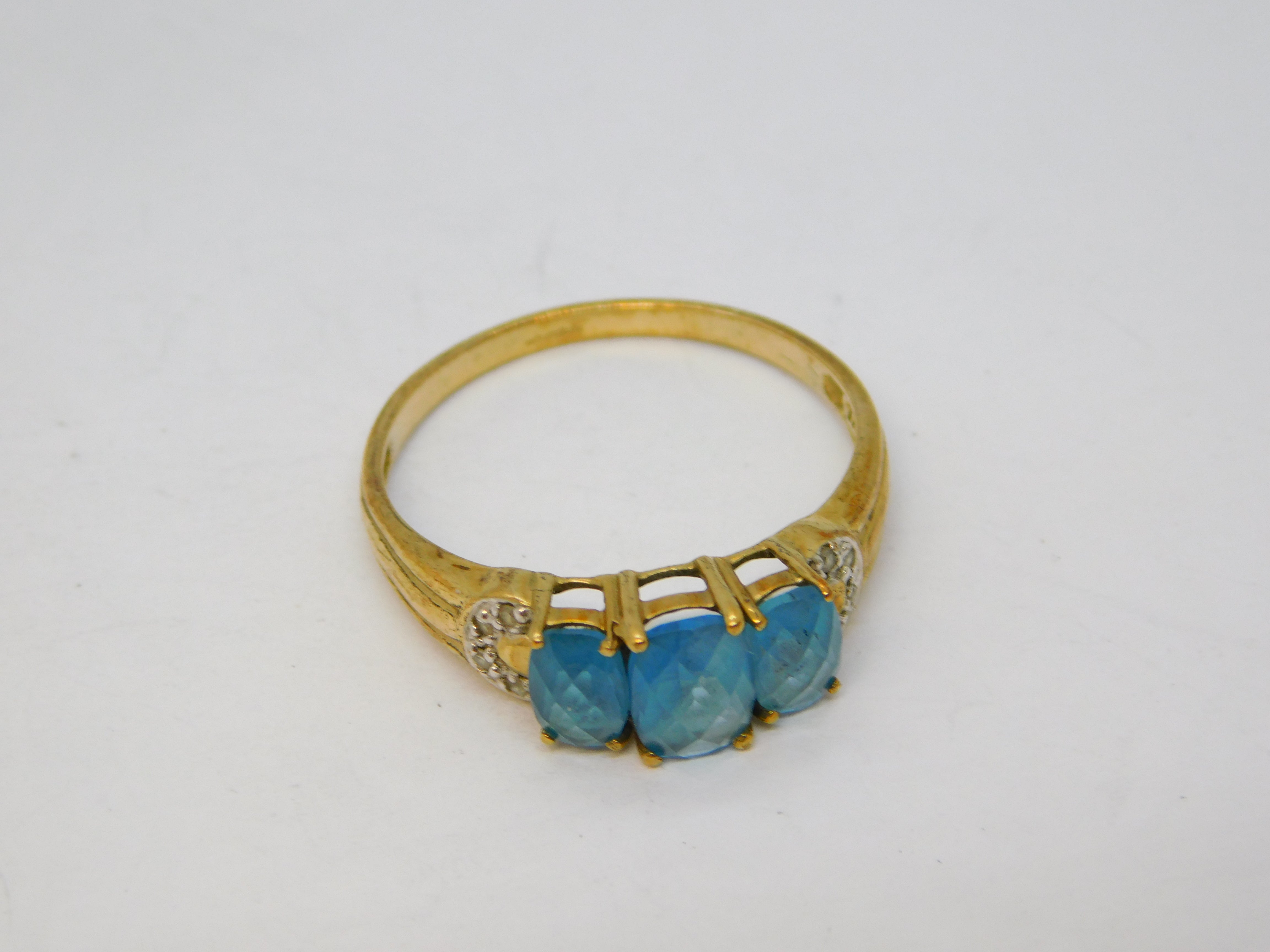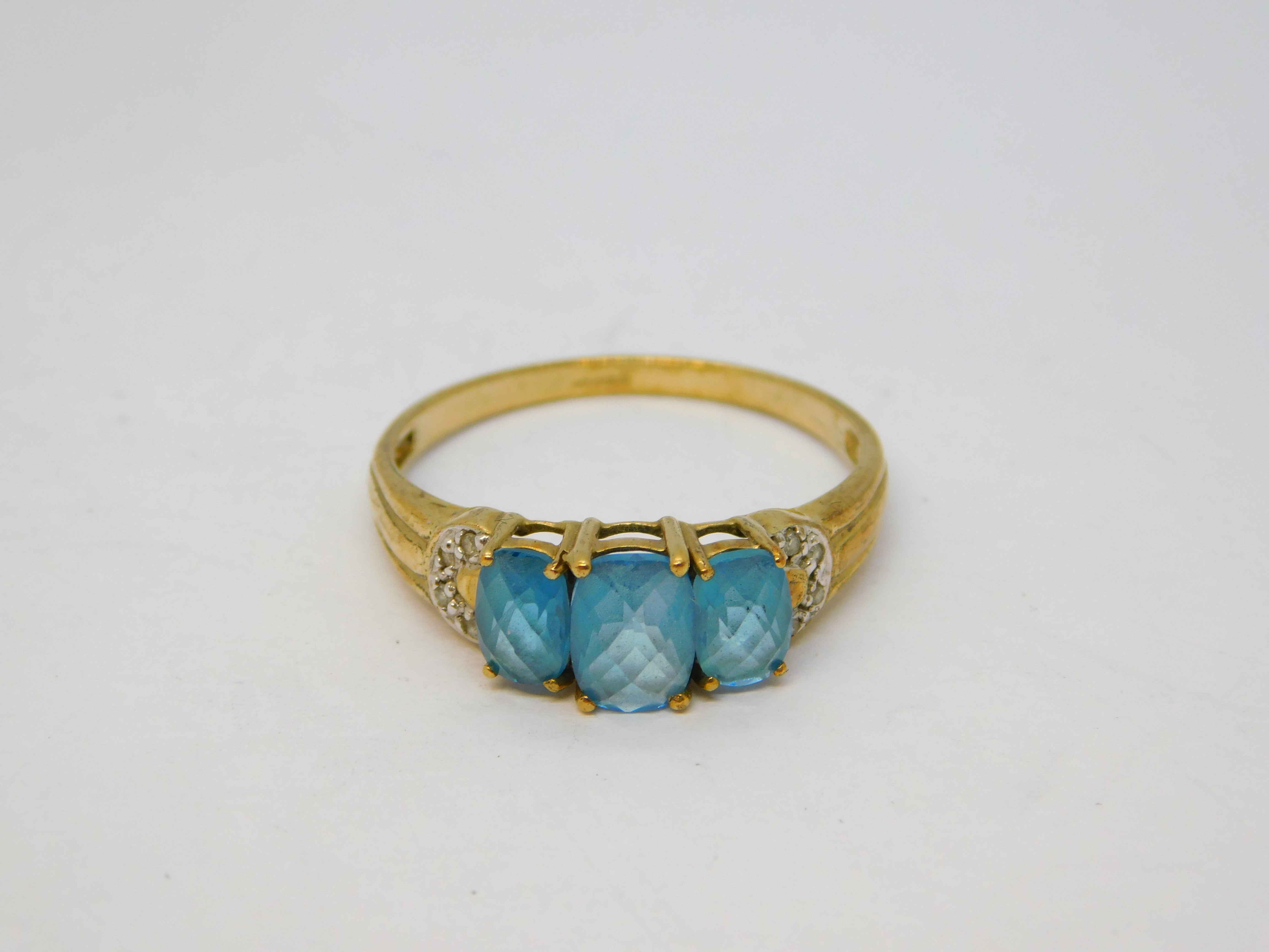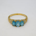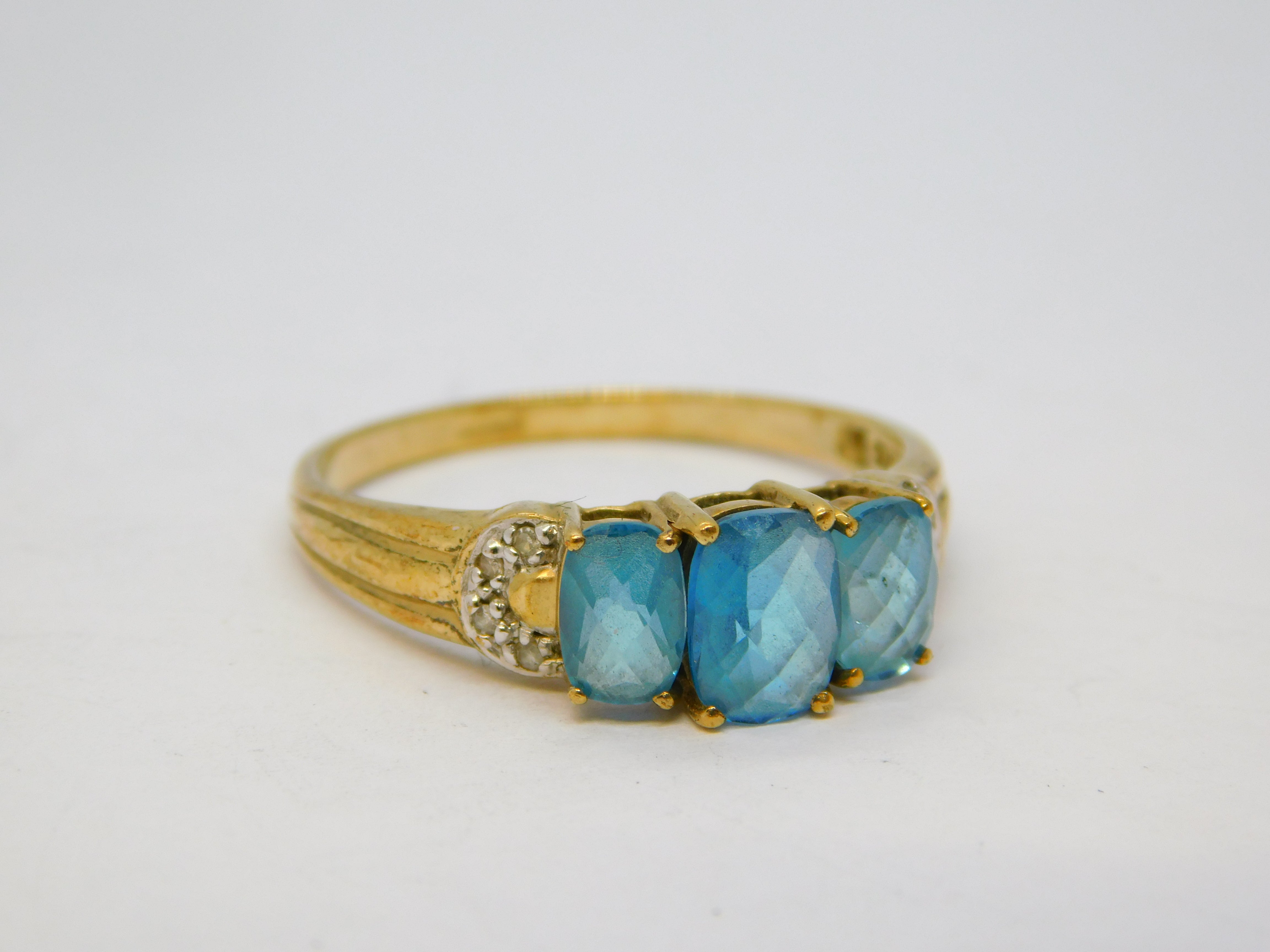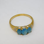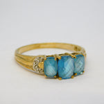 9ct Yellow Gold, Three-Stone Topaz & Diamond Dress Ring Vintage c1990