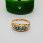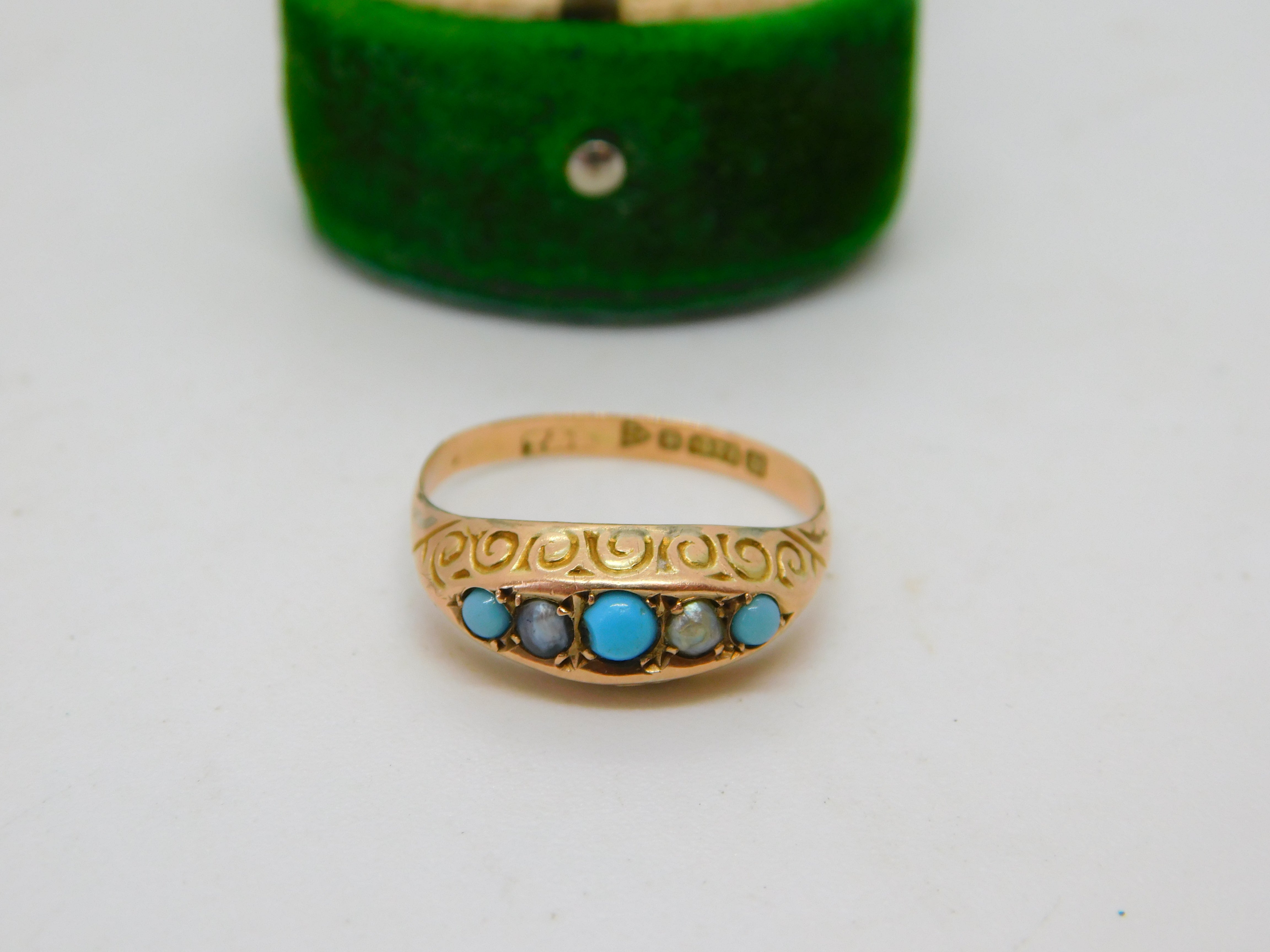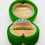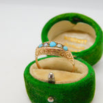 9ct Yellow Gold, Turquoise & Pearl Set Boat Ring Antique 1917 Chester Art Deco