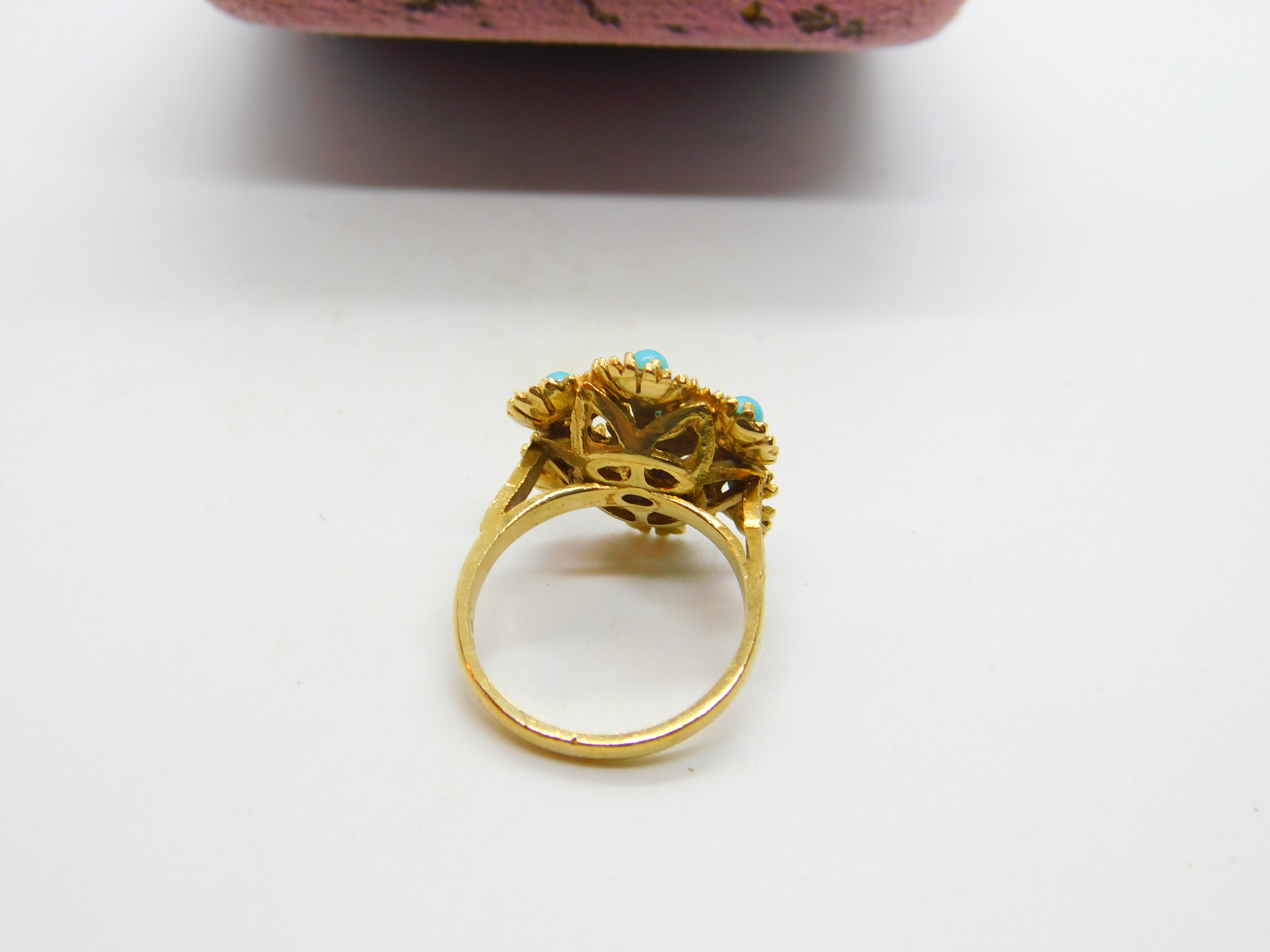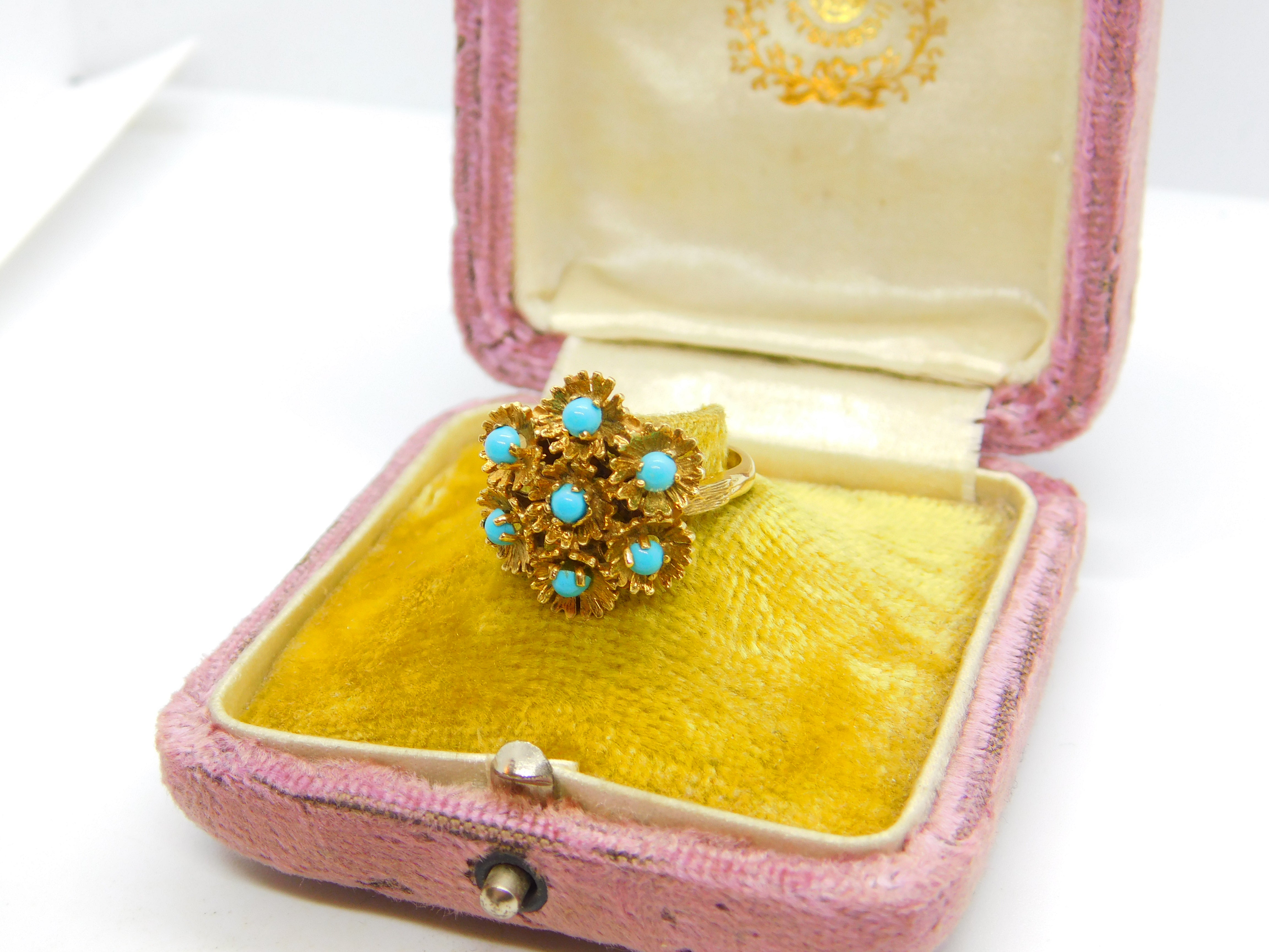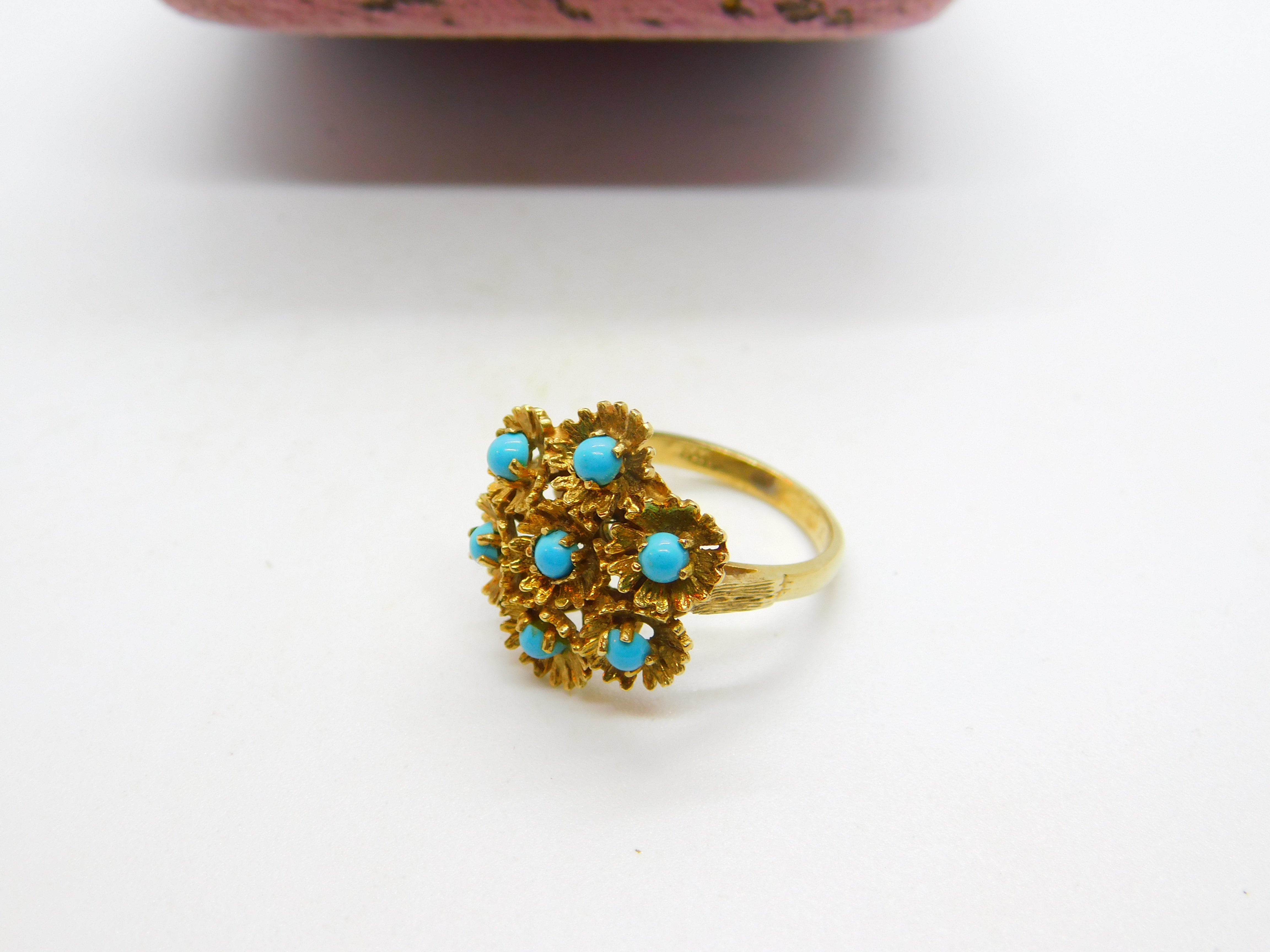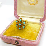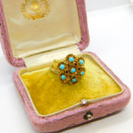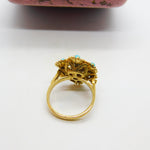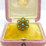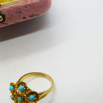 9ct Yellow Gold Turquoise Set Victorian Style Floral Ring 1971 London