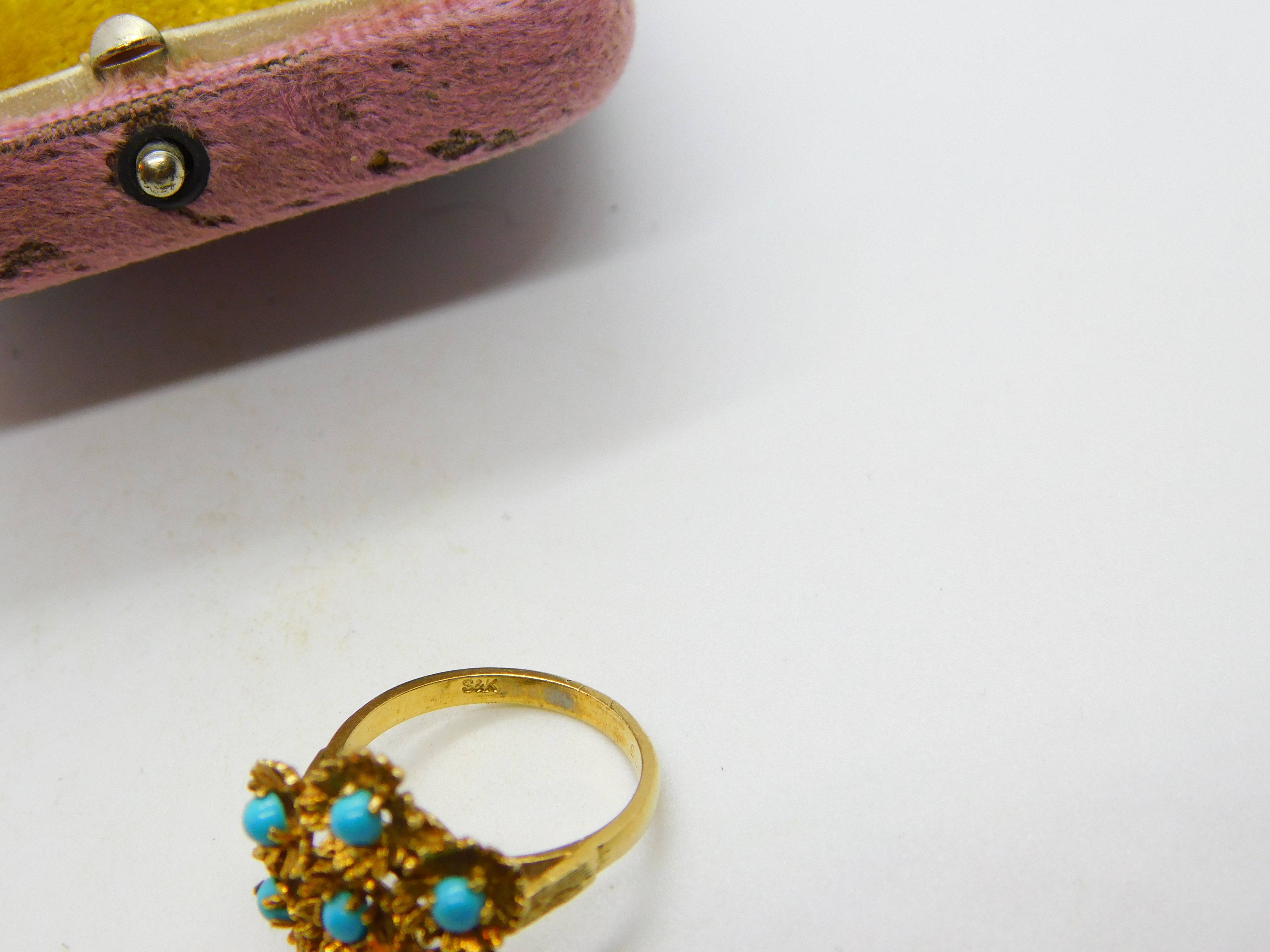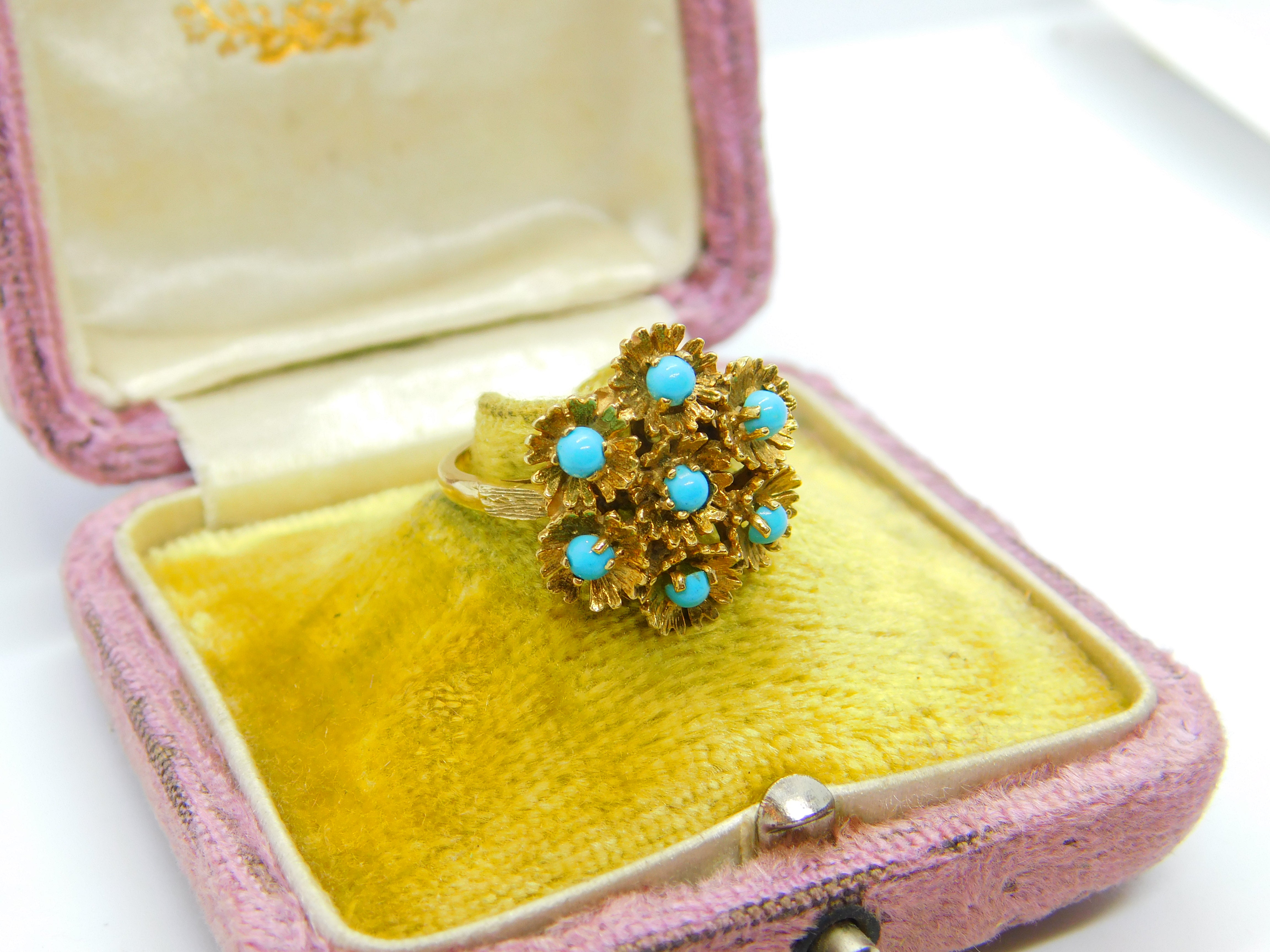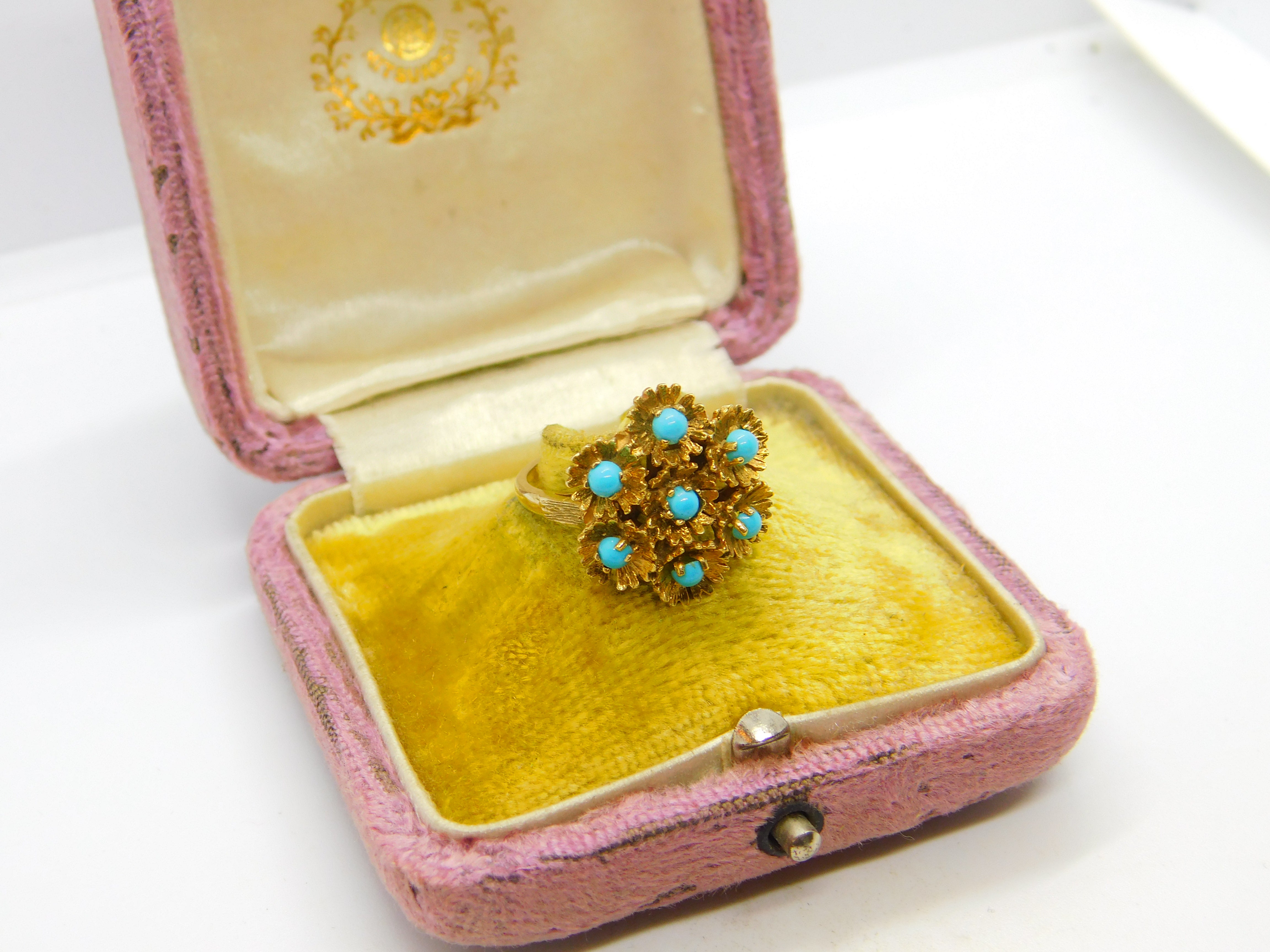 9ct Yellow Gold Turquoise Set Victorian Style Floral Ring 1971 London